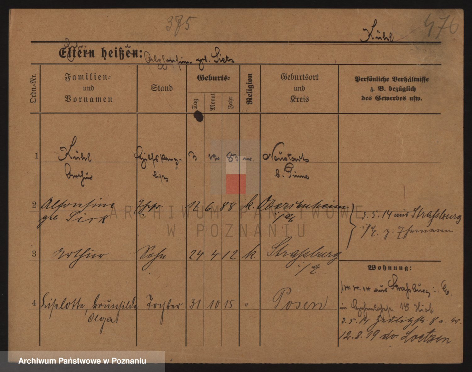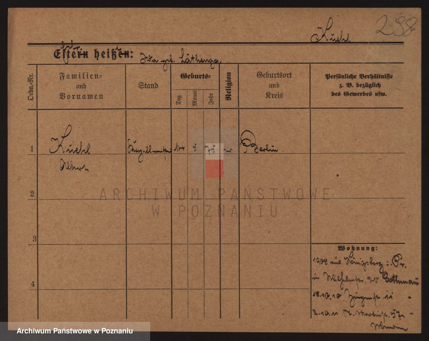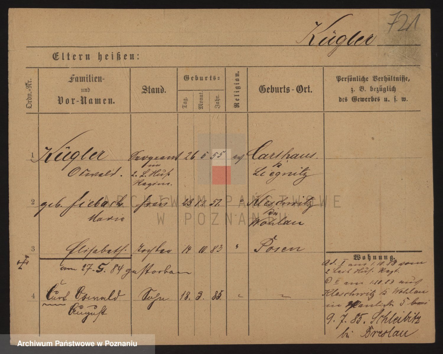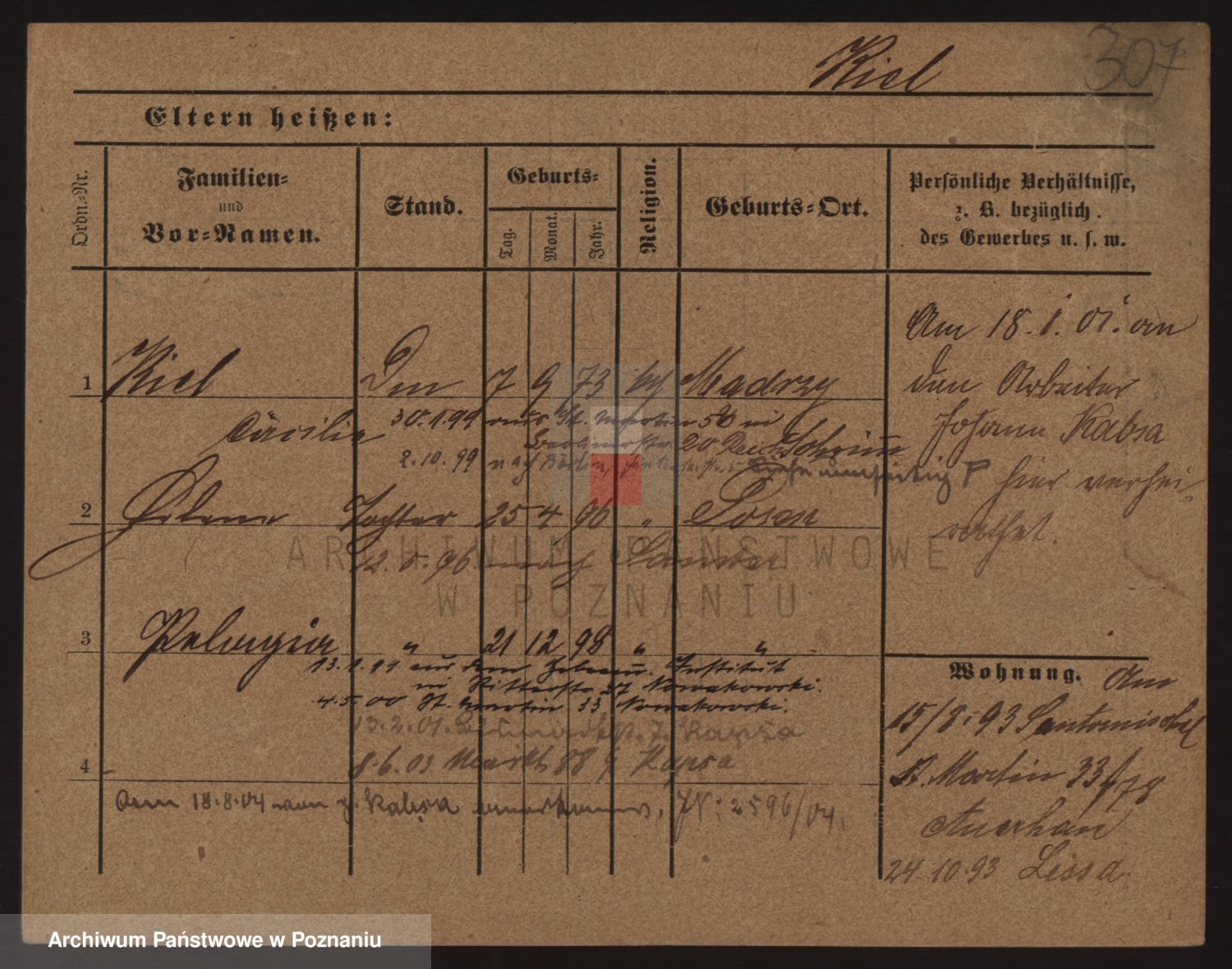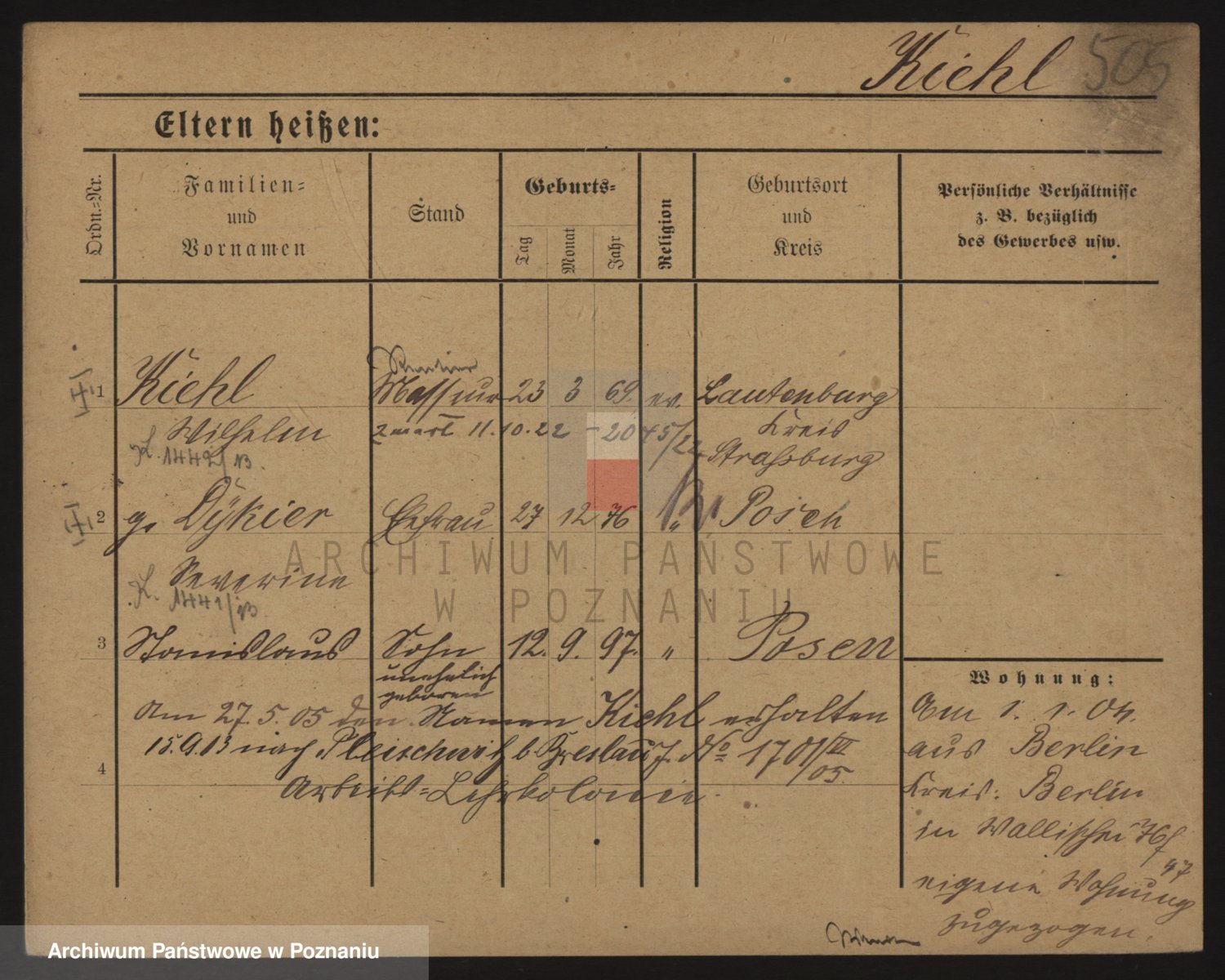 Podgląd karty osobowej dostępny jest po kliknięciu na nazwisko lub ikonkę karty. Można dokonywać powiększenia (ikony na górze) lub przechodzić między kolejnymi skanami (strzałki po bokach).