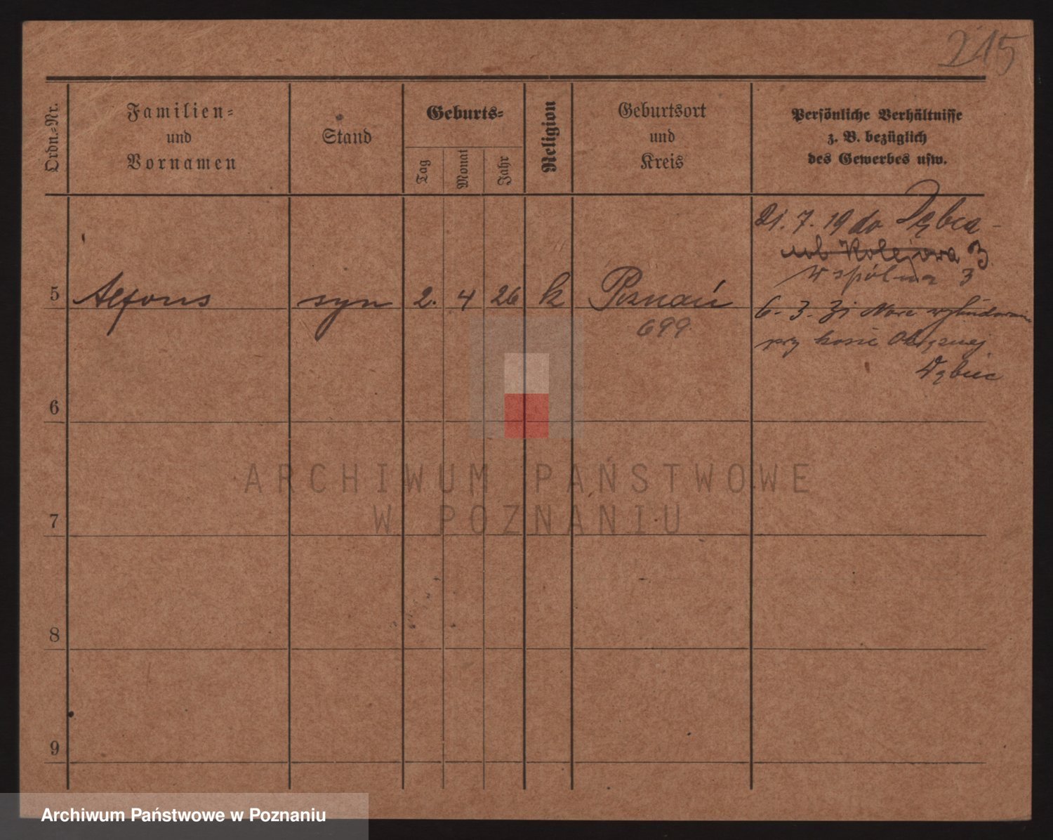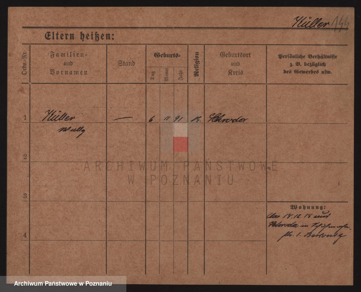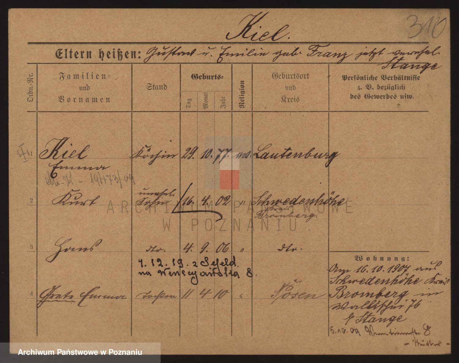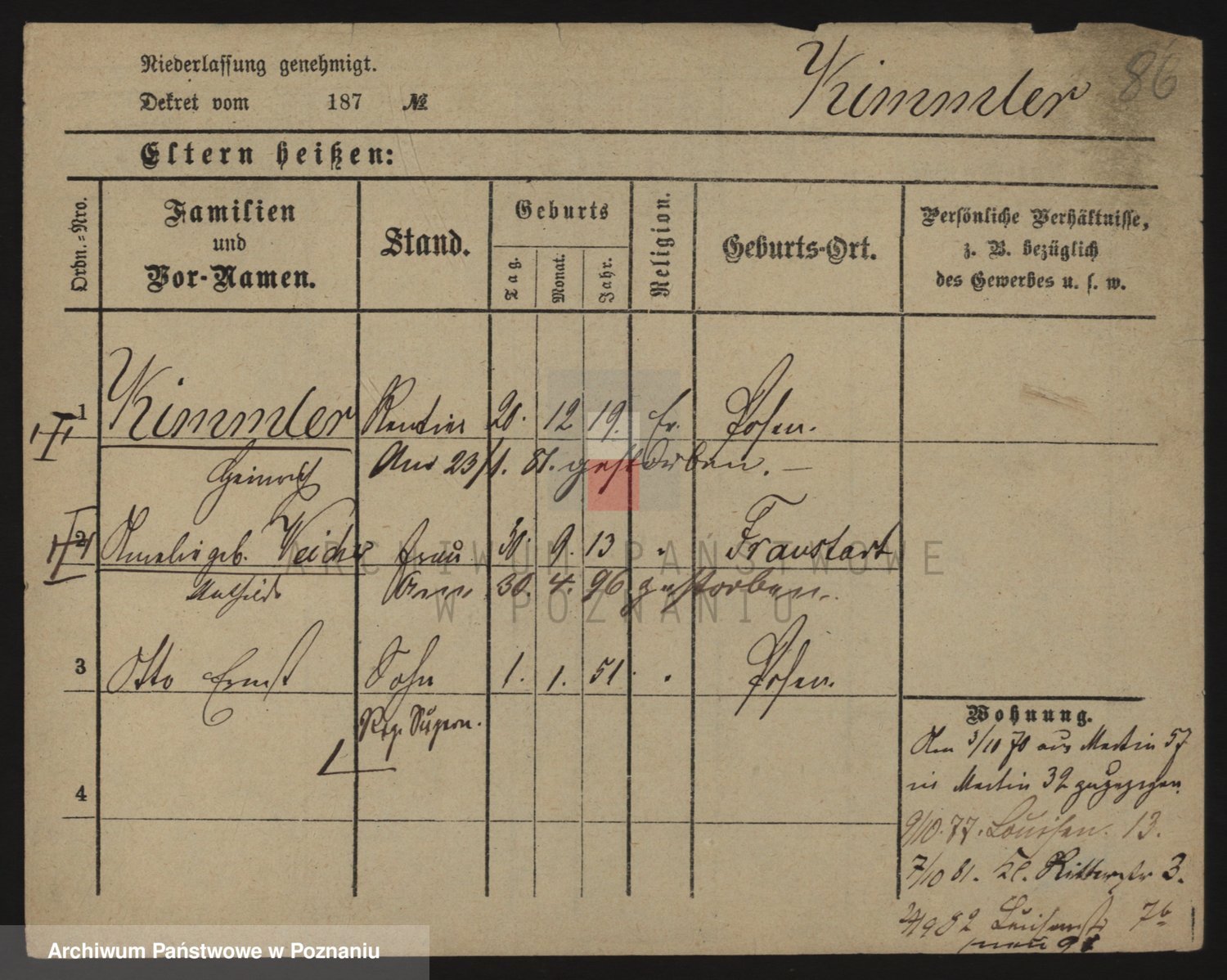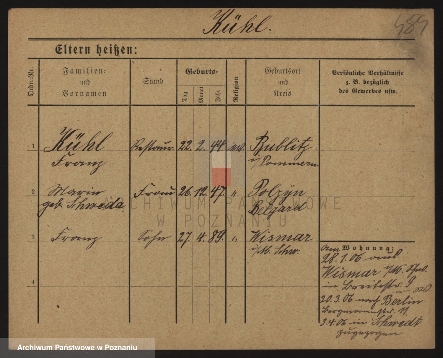 Podgląd karty osobowej dostępny jest po kliknięciu na nazwisko lub ikonkę karty. Można dokonywać powiększenia (ikony na górze) lub przechodzić między kolejnymi skanami (strzałki po bokach).
