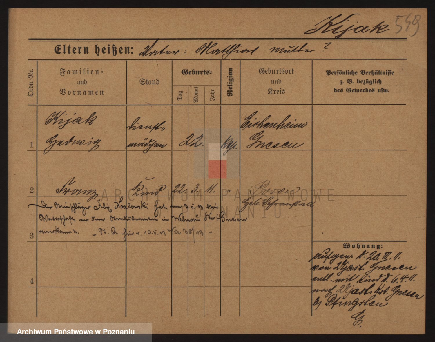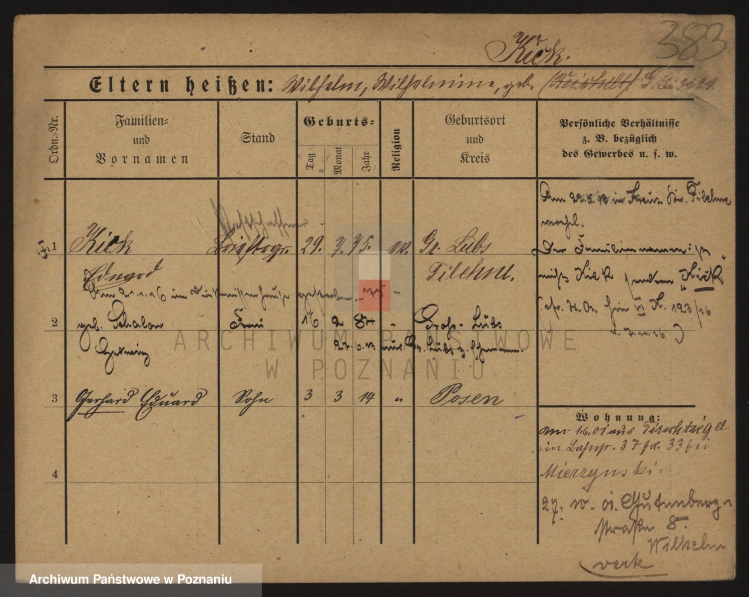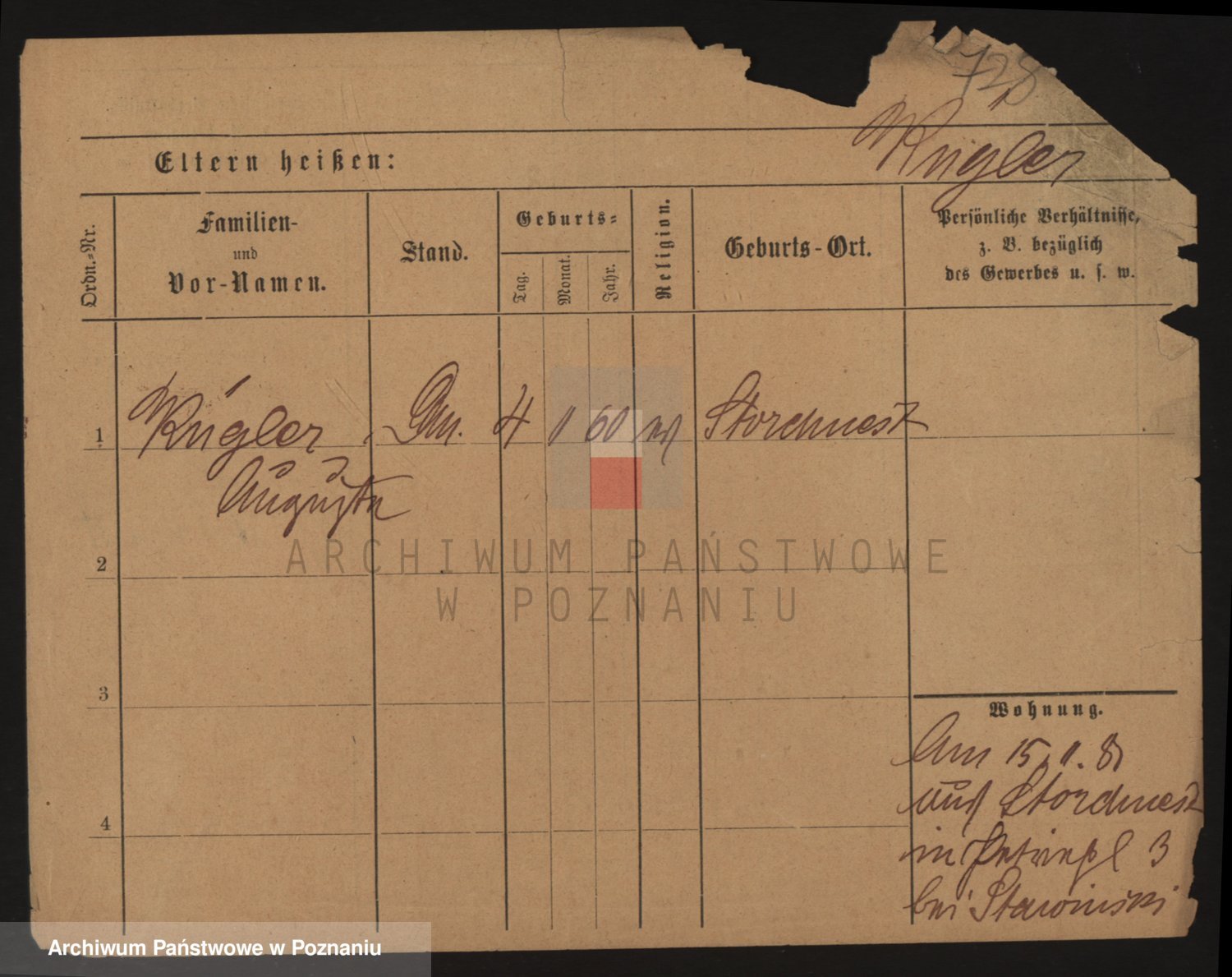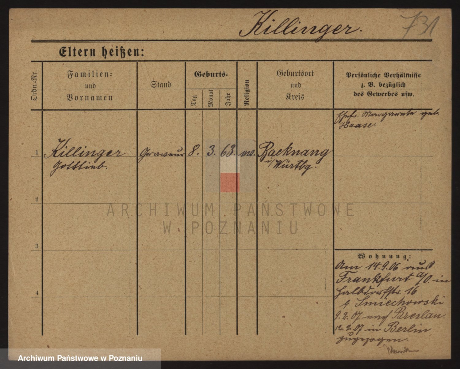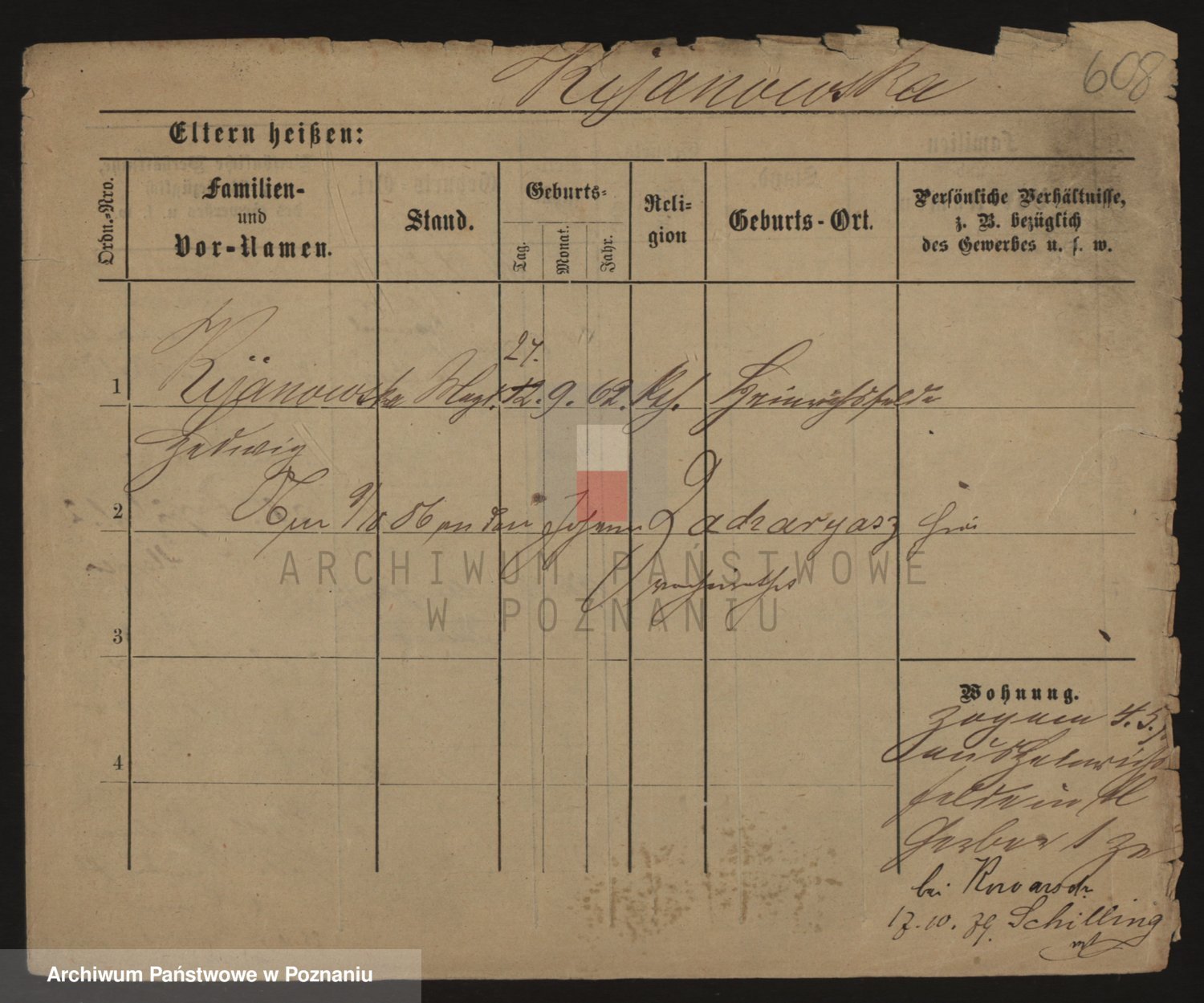 Podgląd karty osobowej dostępny jest po kliknięciu na nazwisko lub ikonkę karty. Można dokonywać powiększenia (ikony na górze) lub przechodzić między kolejnymi skanami (strzałki po bokach).