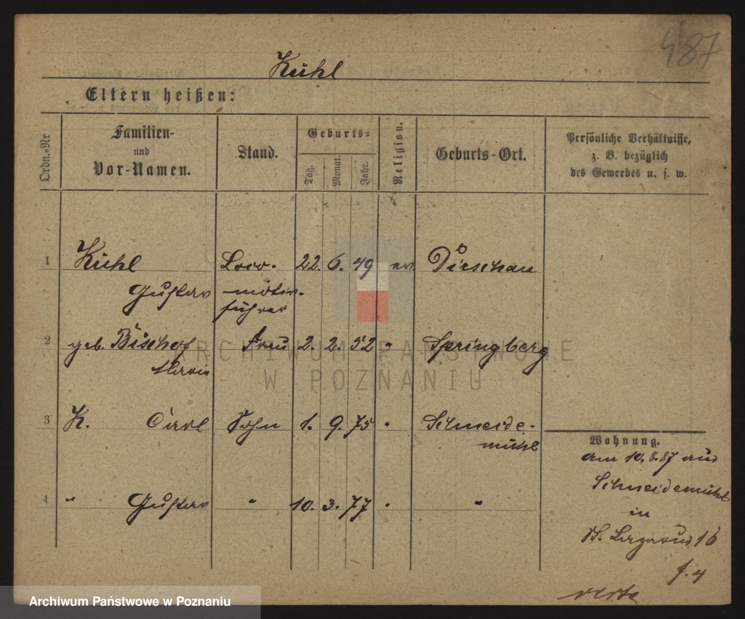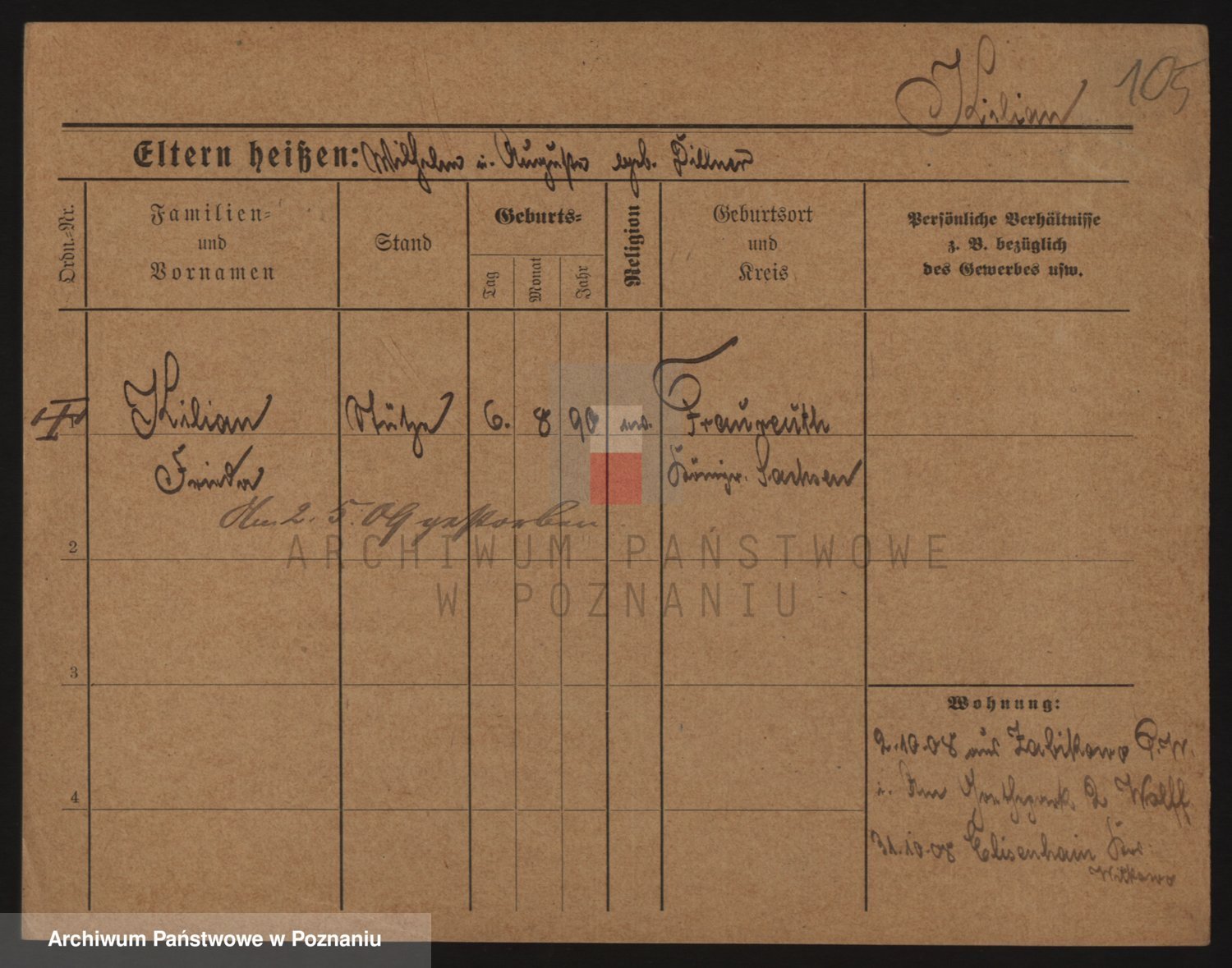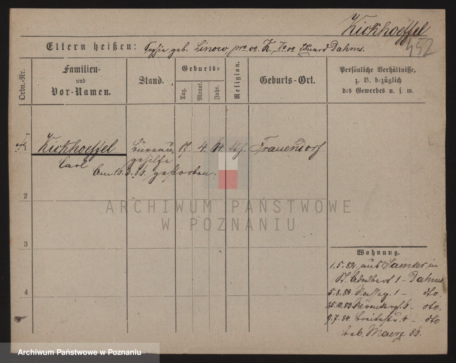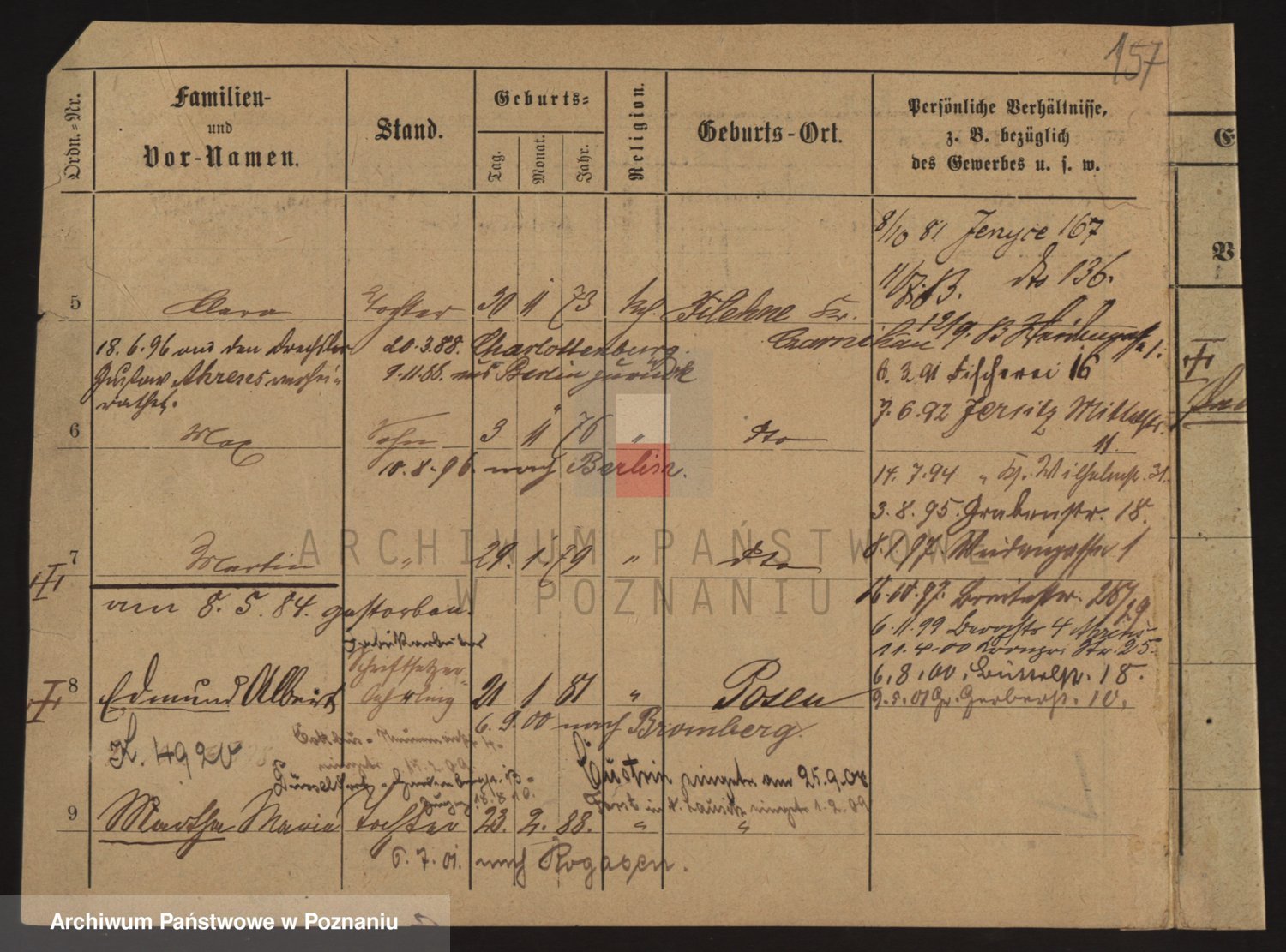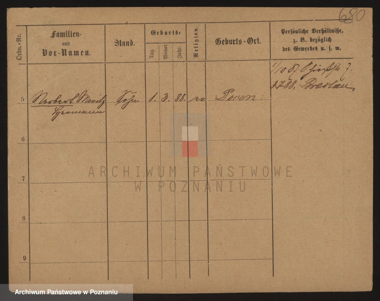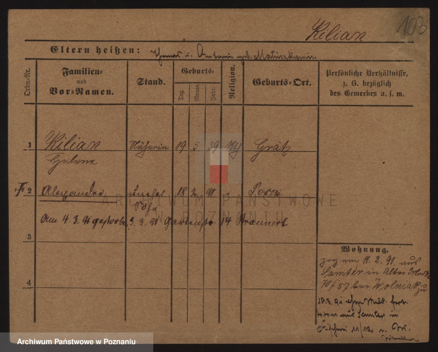 Podgląd karty osobowej dostępny jest po kliknięciu na nazwisko lub ikonkę karty. Można dokonywać powiększenia (ikony na górze) lub przechodzić między kolejnymi skanami (strzałki po bokach).