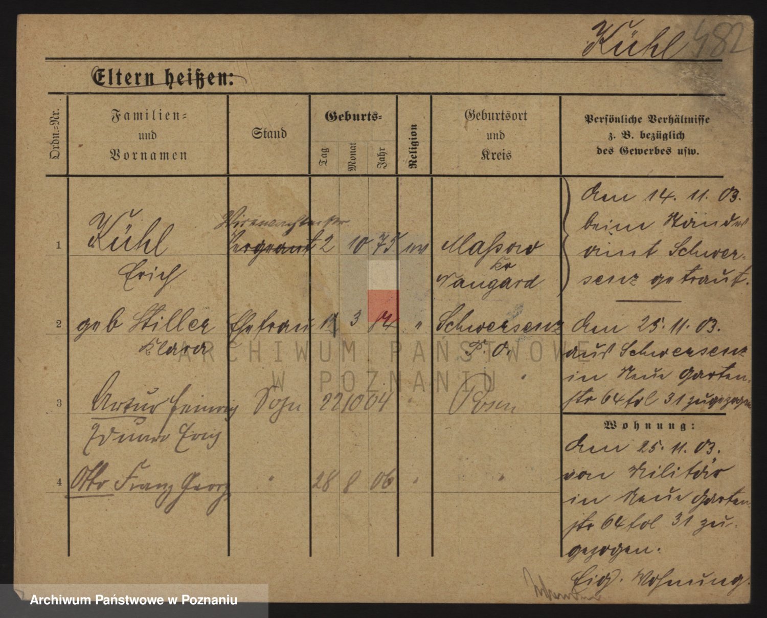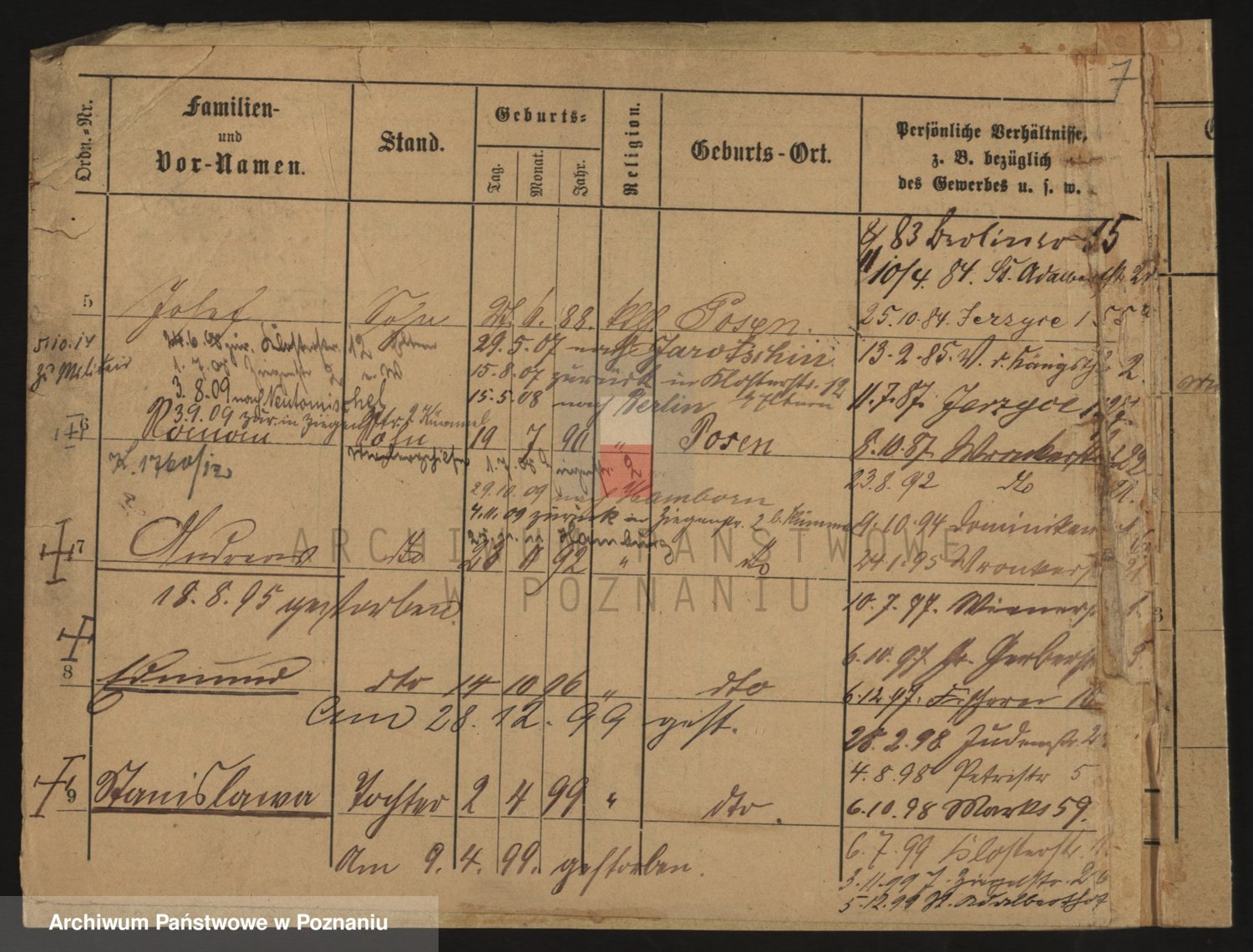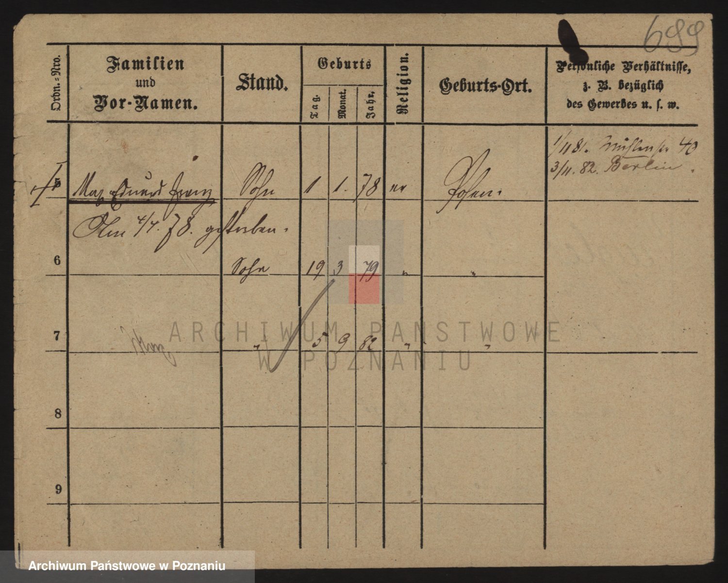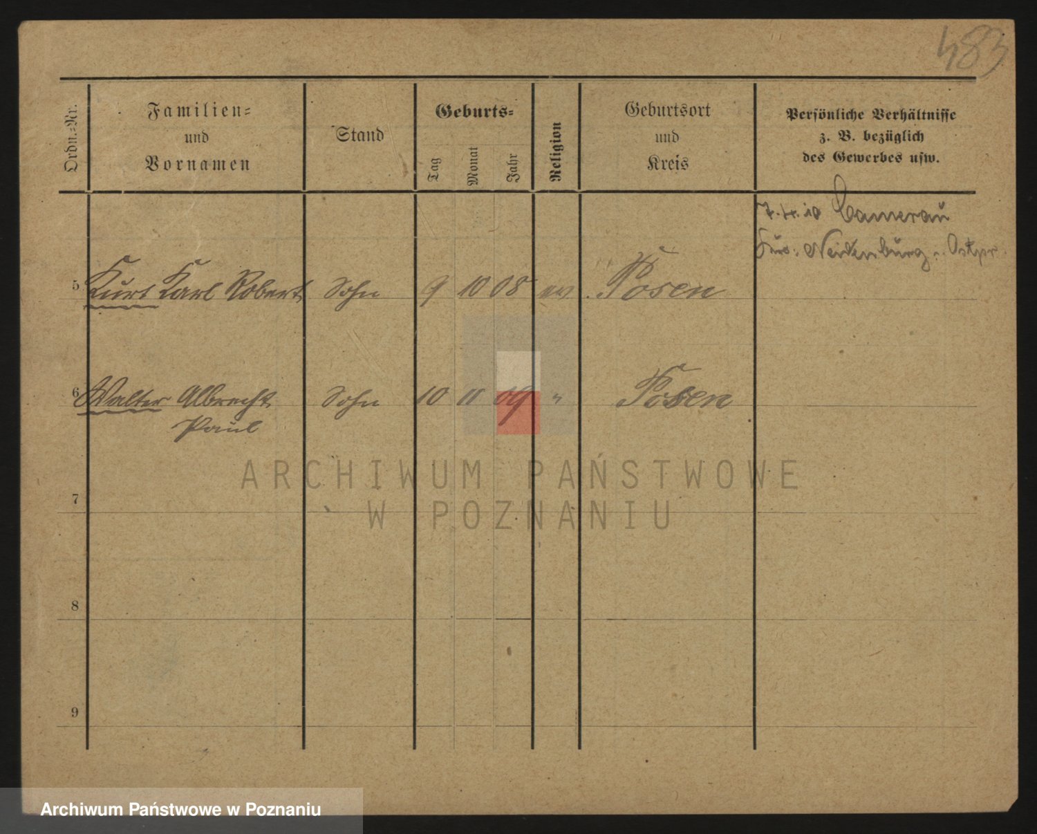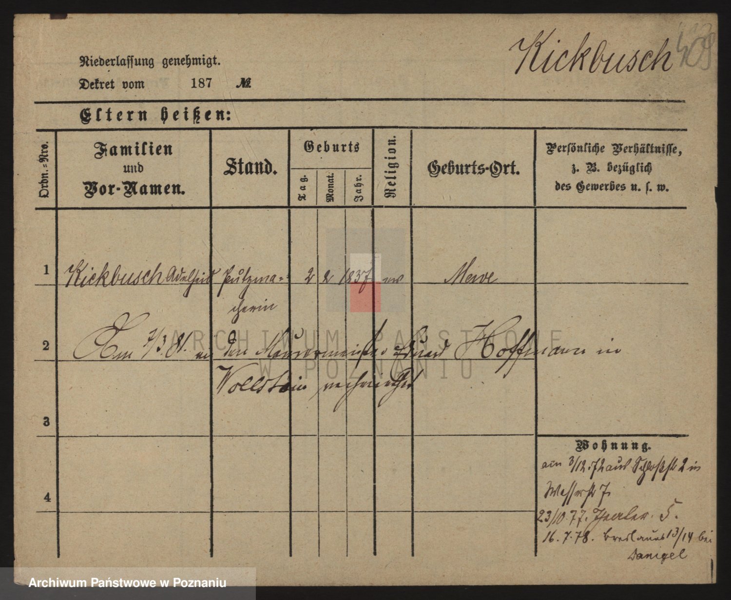 Podgląd karty osobowej dostępny jest po kliknięciu na nazwisko lub ikonkę karty. Można dokonywać powiększenia (ikony na górze) lub przechodzić między kolejnymi skanami (strzałki po bokach).
