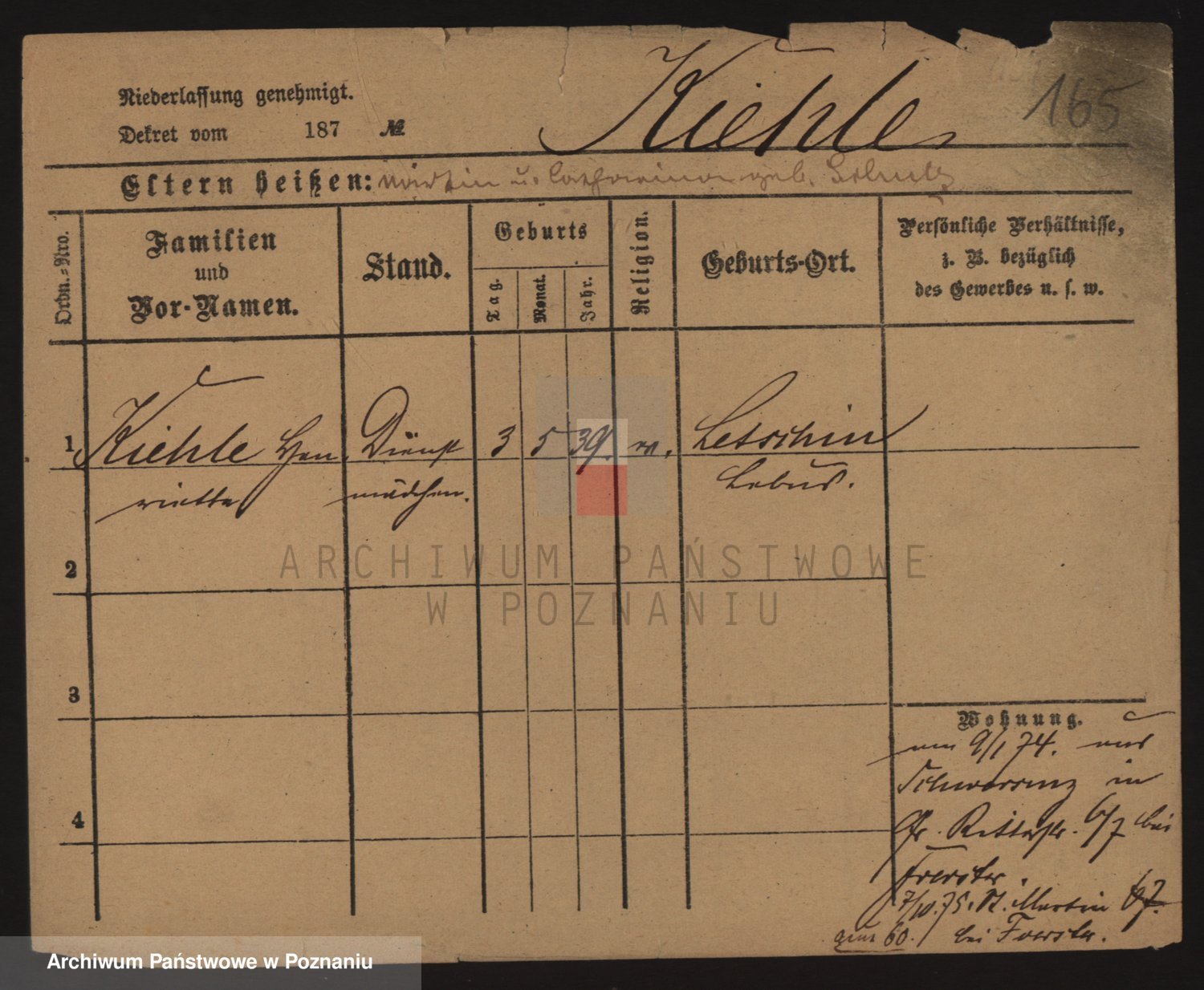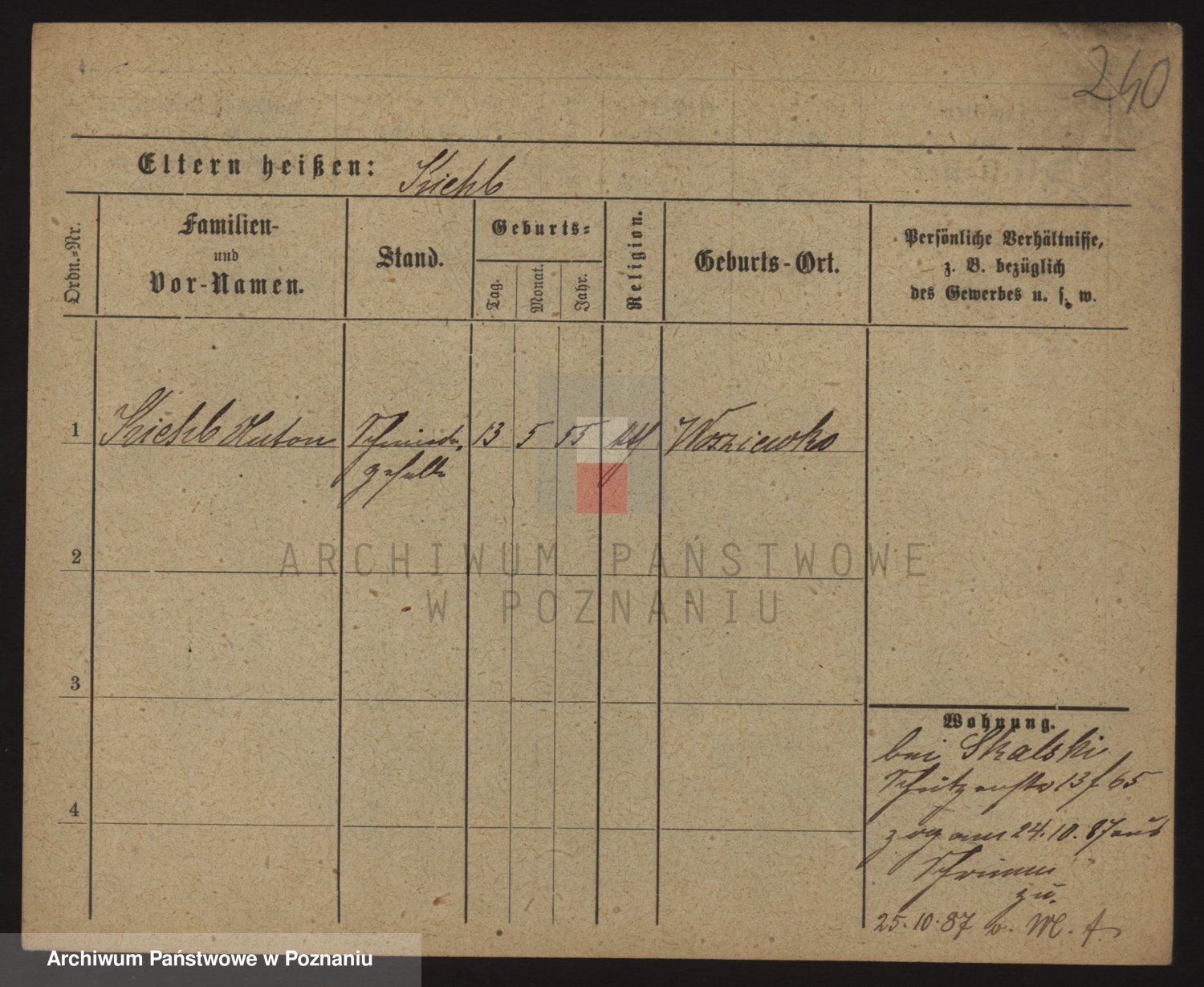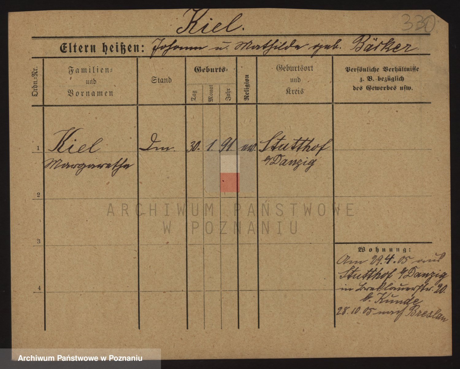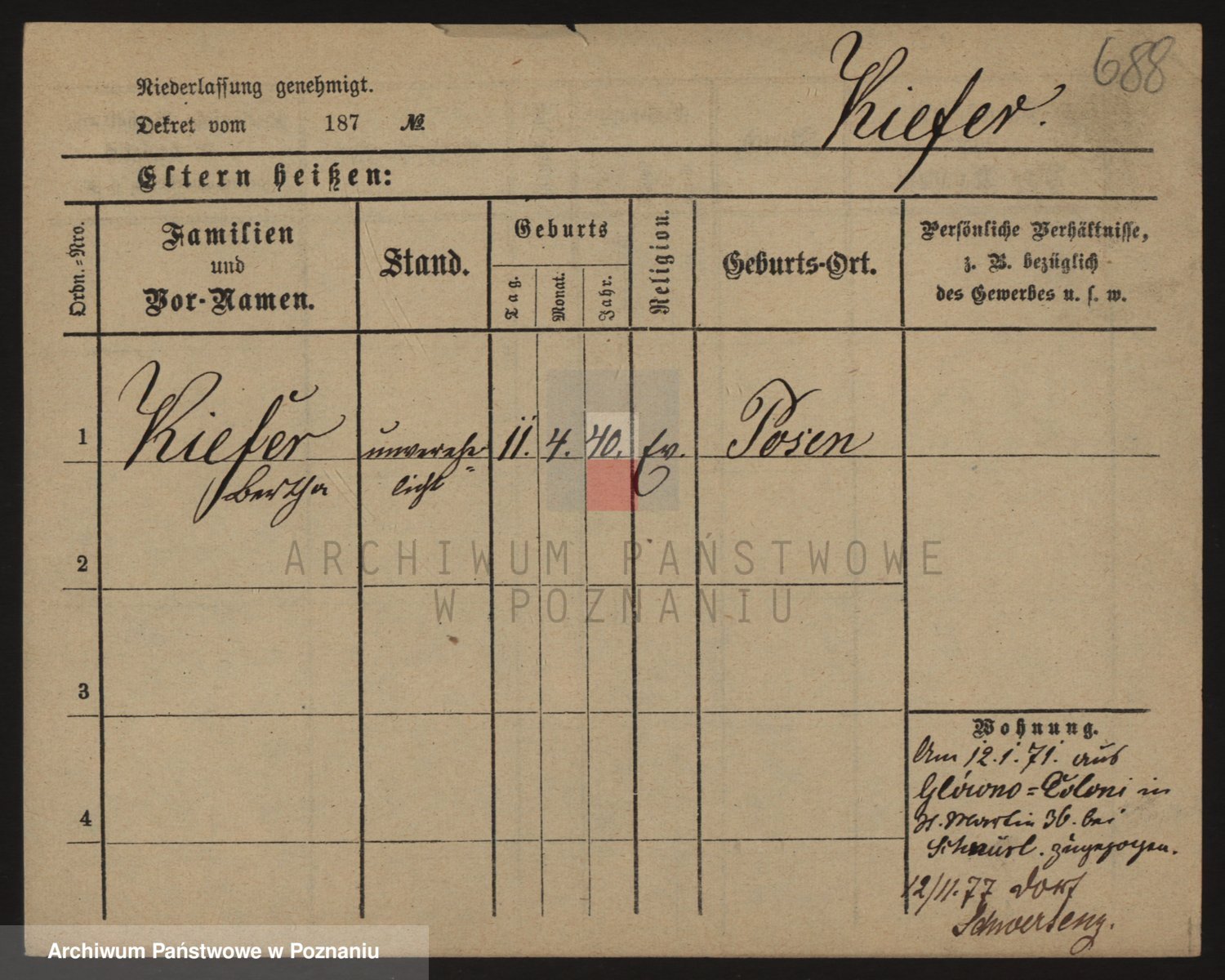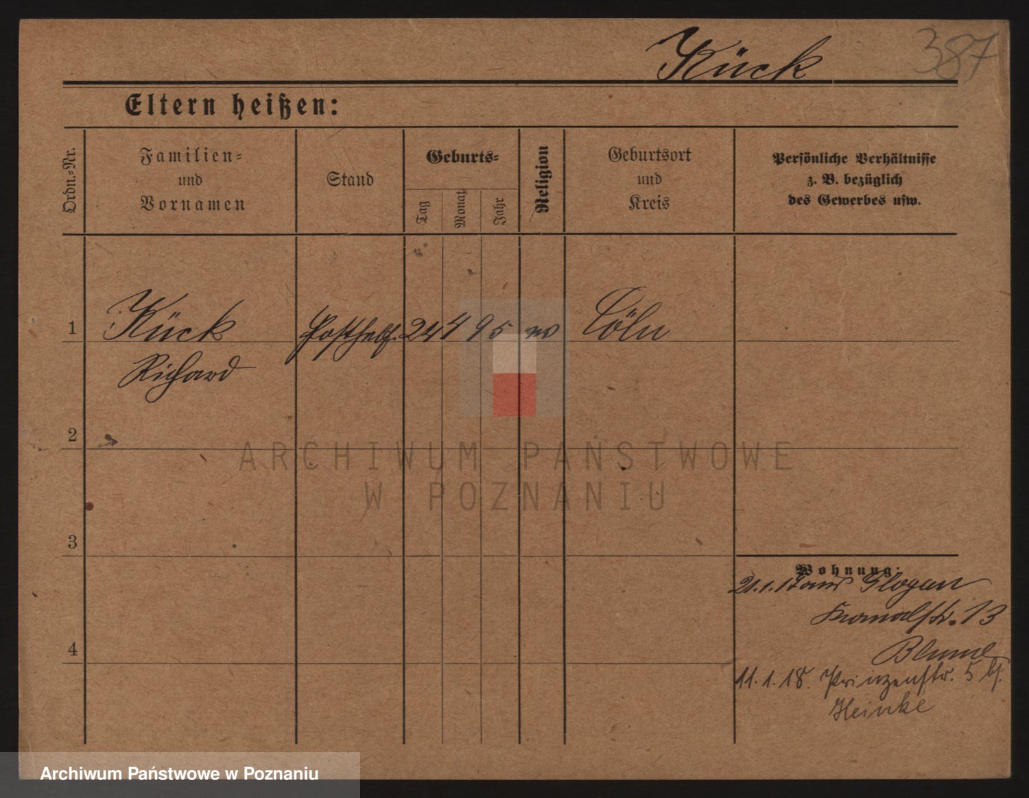 Podgląd karty osobowej dostępny jest po kliknięciu na nazwisko lub ikonkę karty. Można dokonywać powiększenia (ikony na górze) lub przechodzić między kolejnymi skanami (strzałki po bokach).