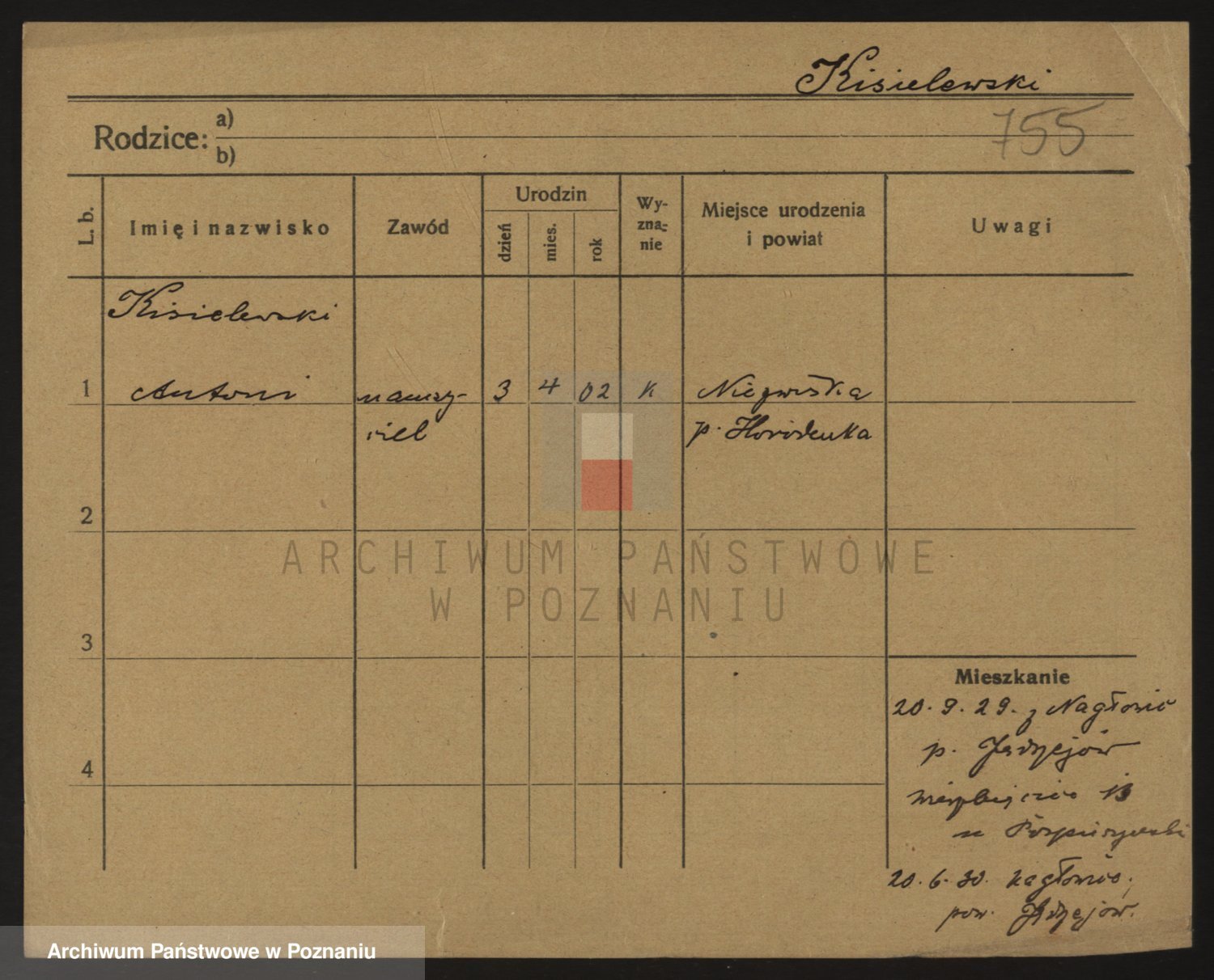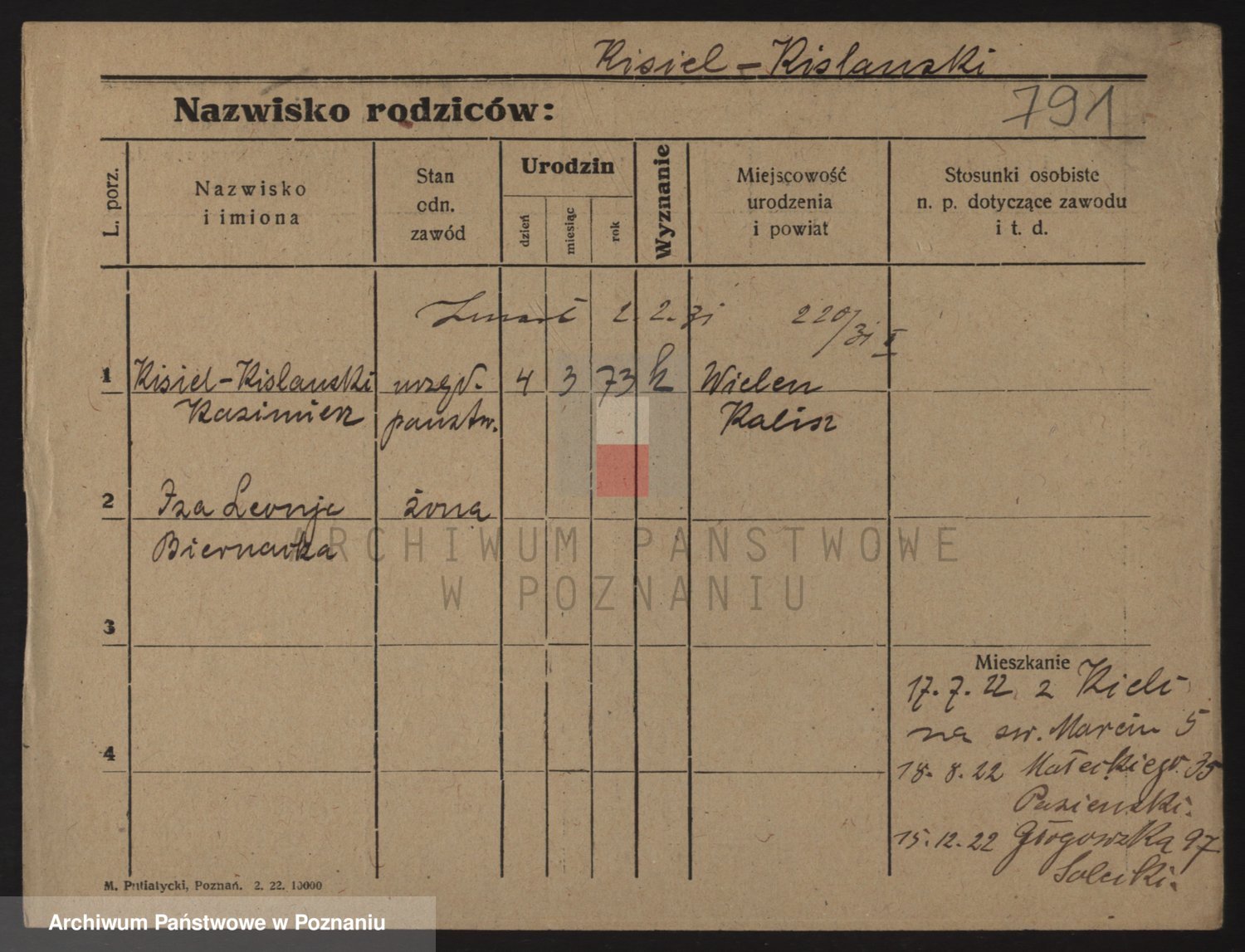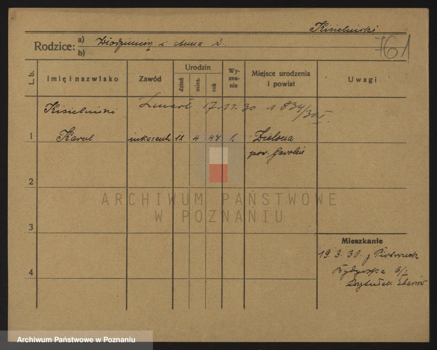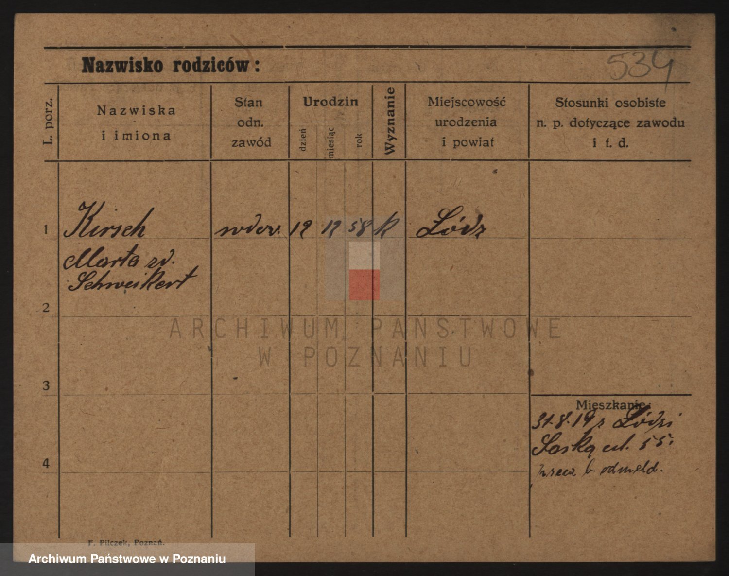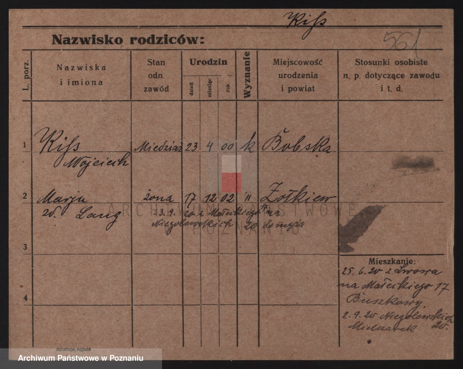 Podgląd karty osobowej dostępny jest po kliknięciu na nazwisko lub ikonkę karty. Można dokonywać powiększenia (ikony na górze) lub przechodzić między kolejnymi skanami (strzałki po bokach).