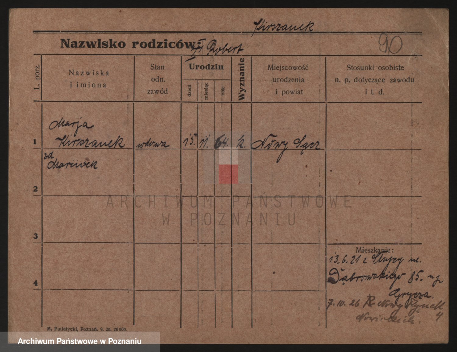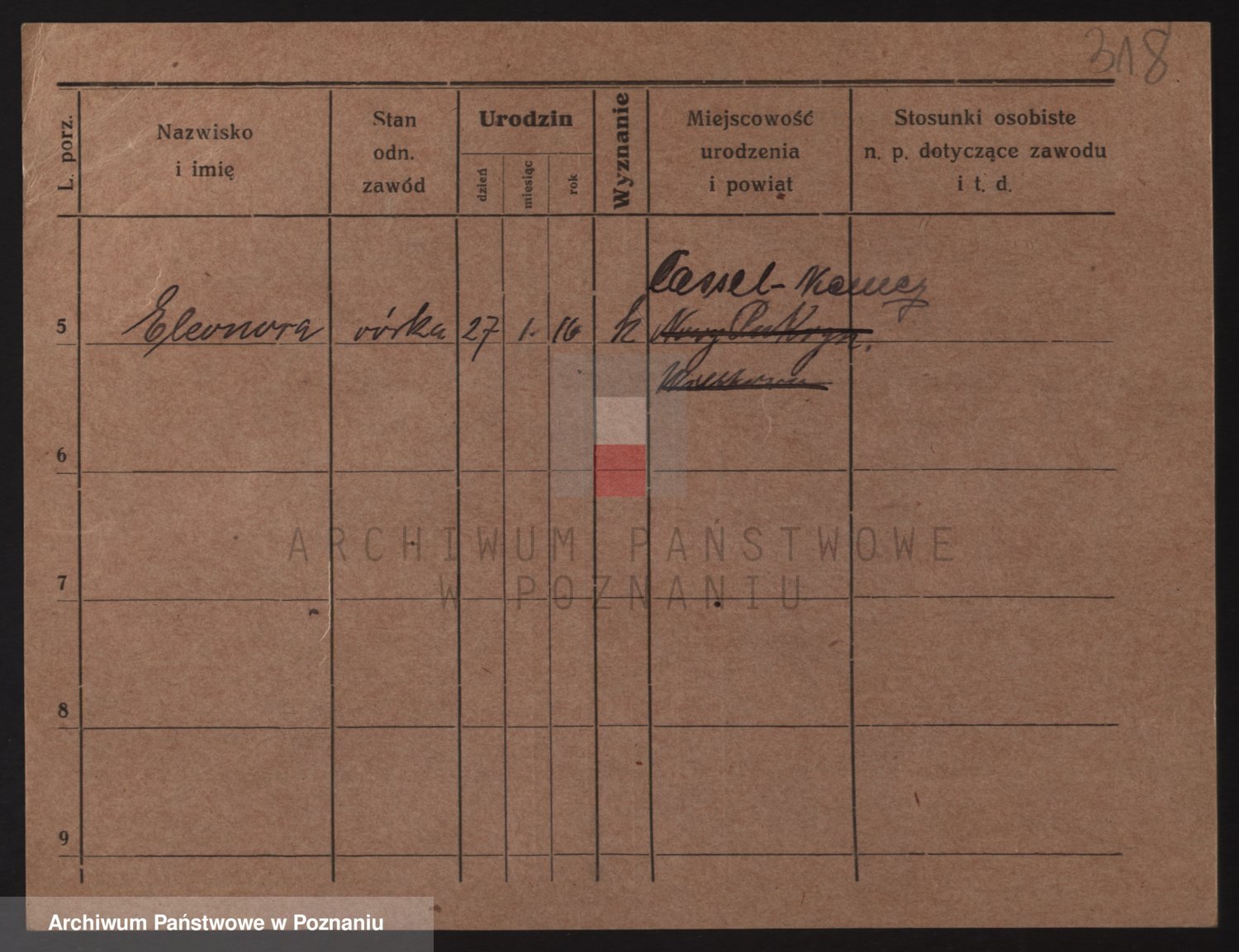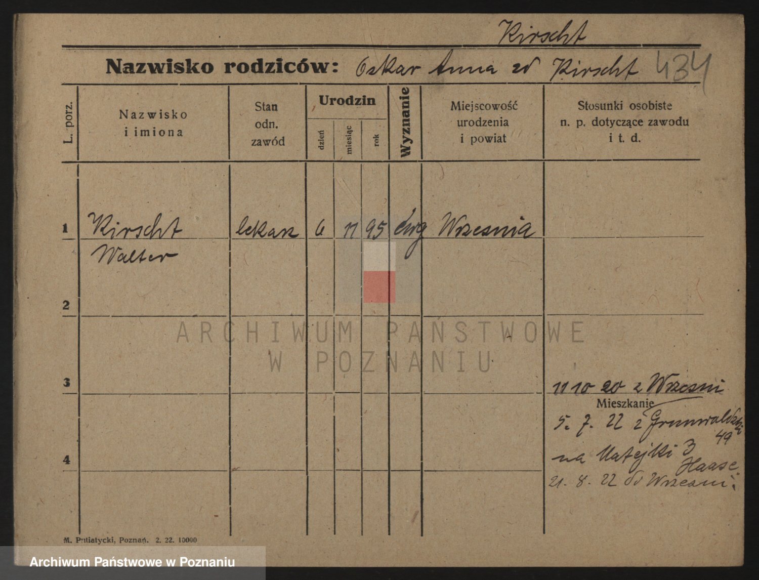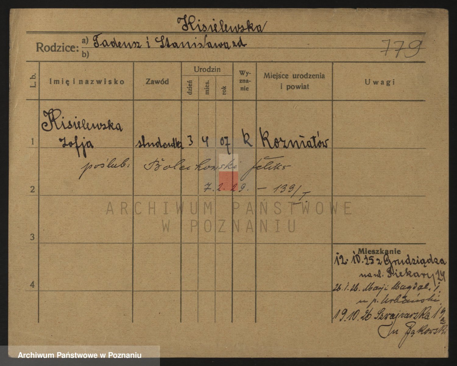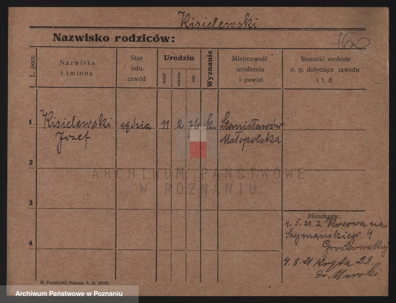 Podgląd karty osobowej dostępny jest po kliknięciu na nazwisko lub ikonkę karty. Można dokonywać powiększenia (ikony na górze) lub przechodzić między kolejnymi skanami (strzałki po bokach).