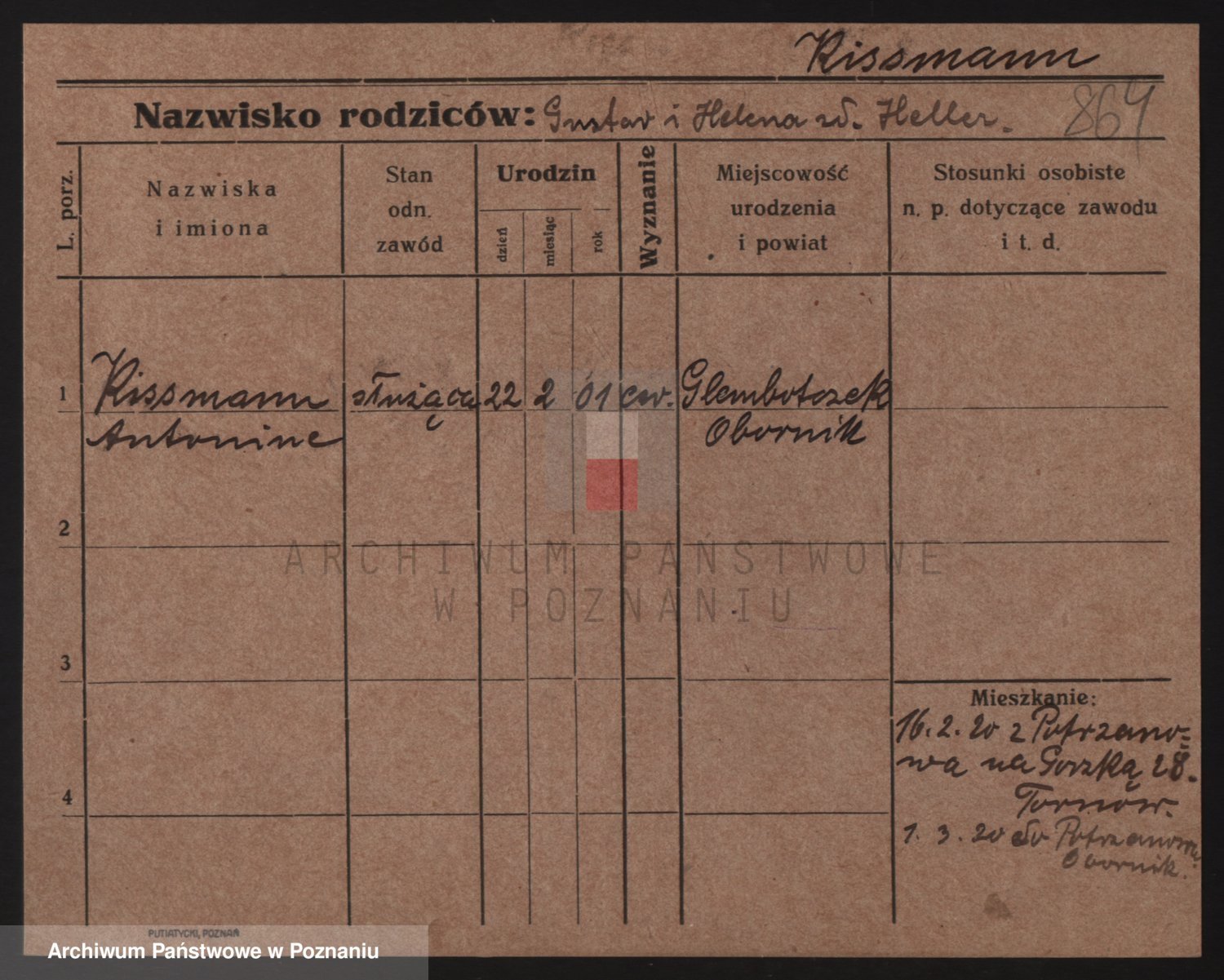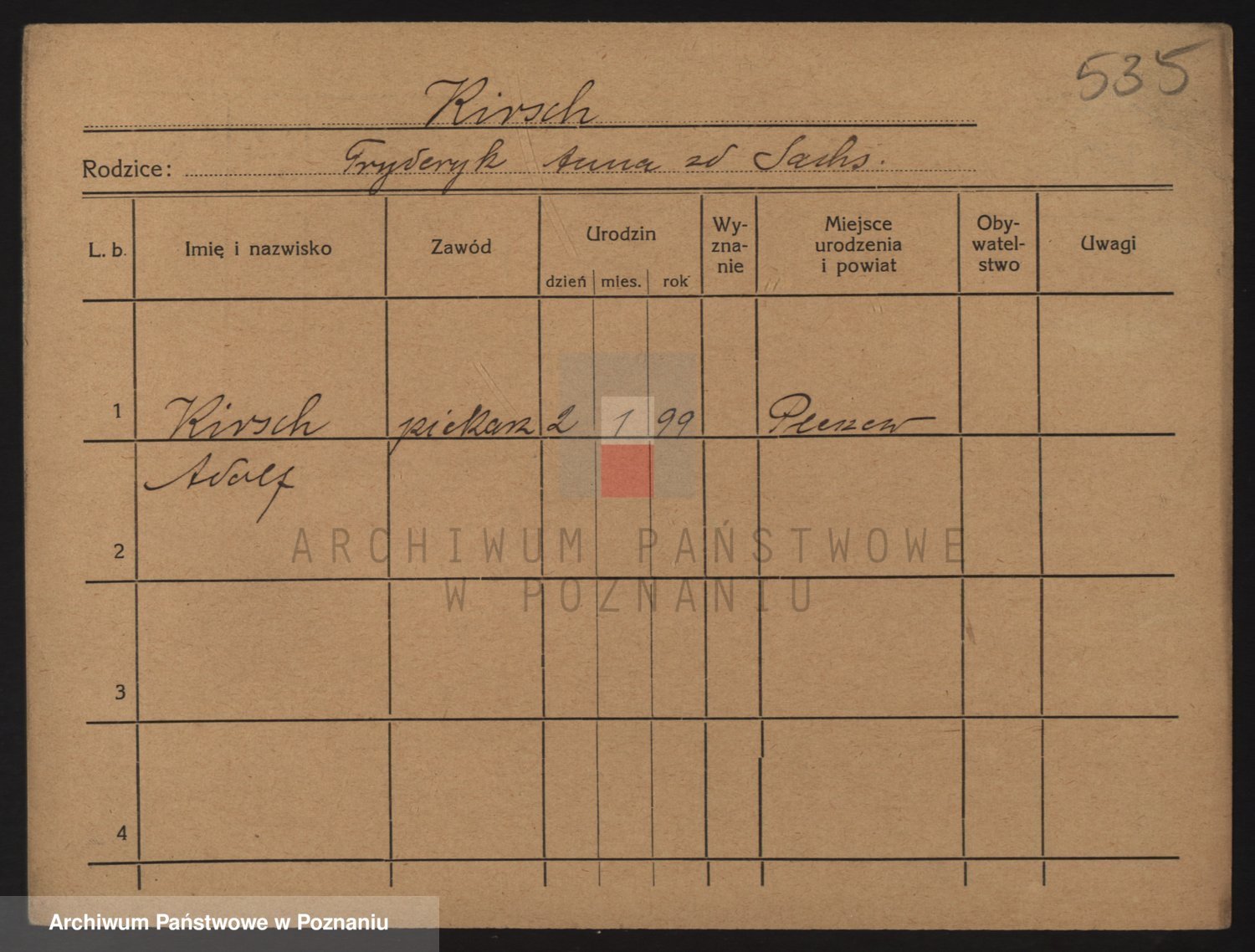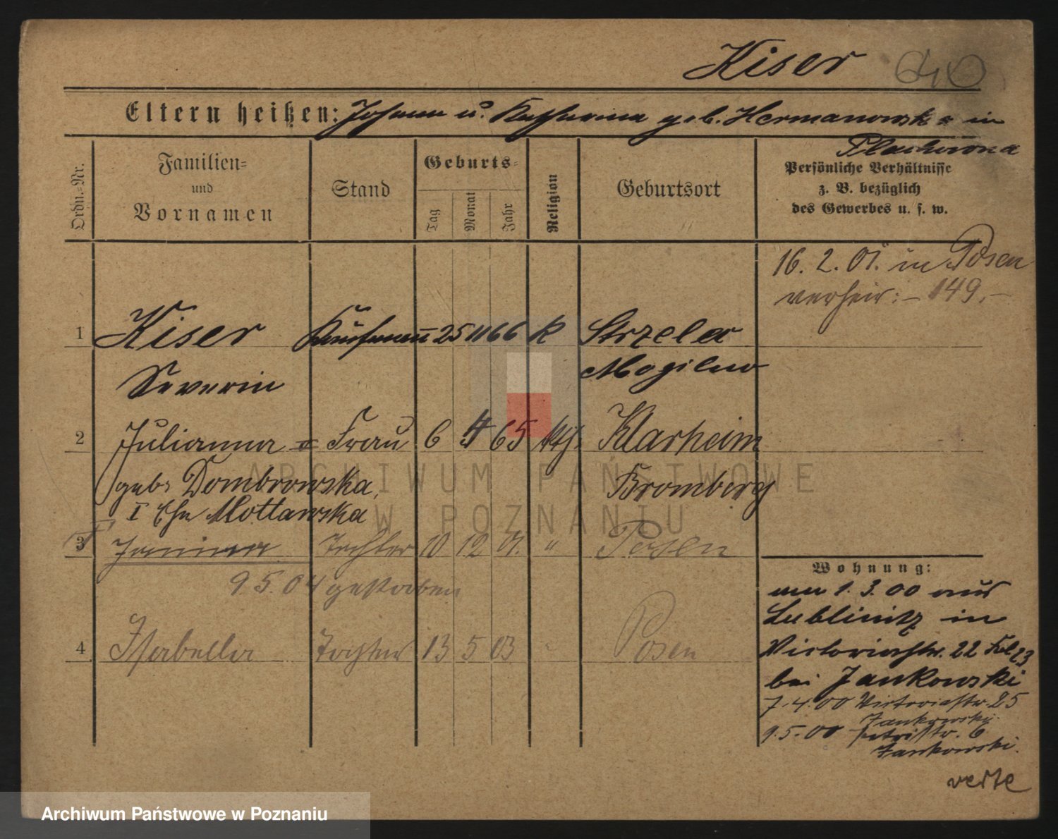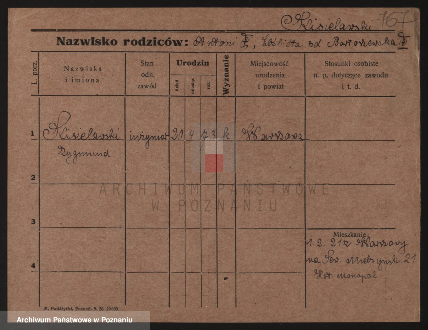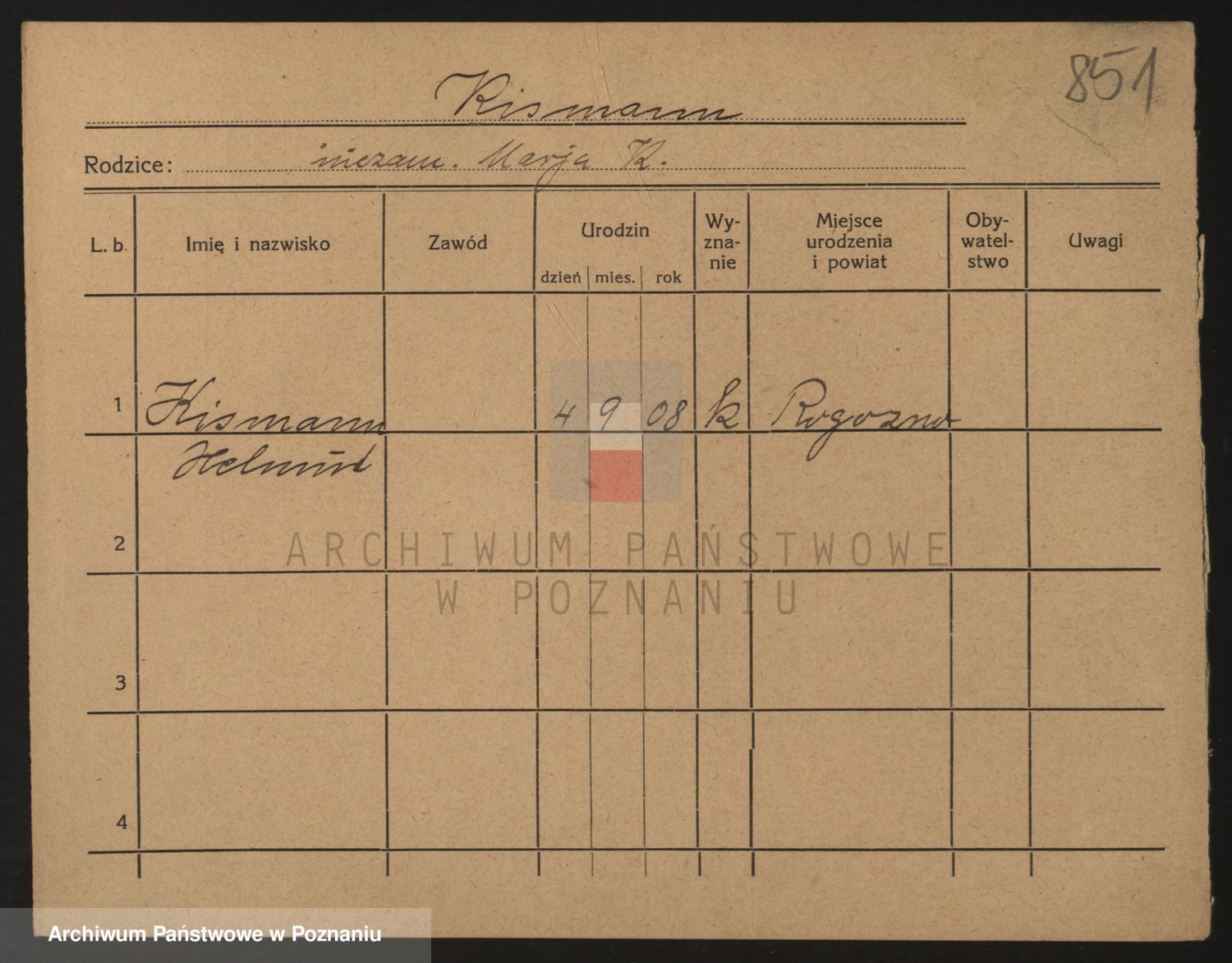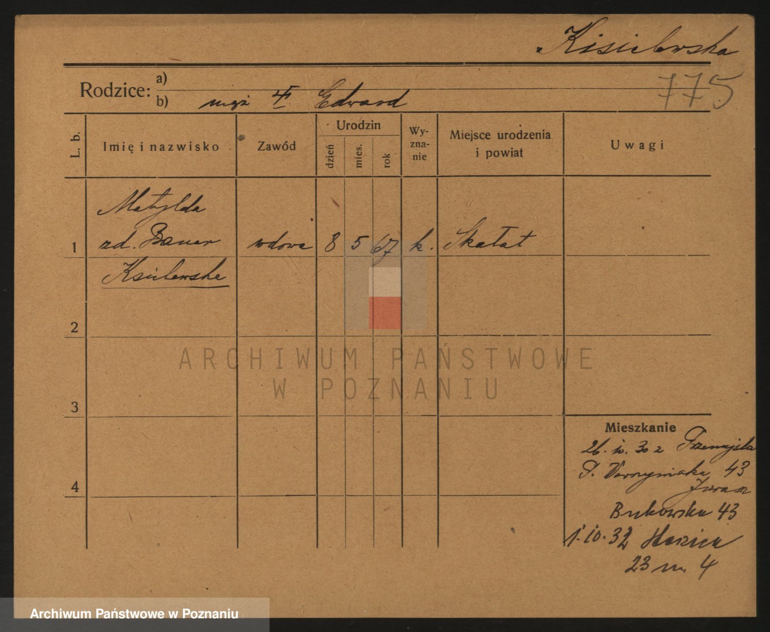 Podgląd karty osobowej dostępny jest po kliknięciu na nazwisko lub ikonkę karty. Można dokonywać powiększenia (ikony na górze) lub przechodzić między kolejnymi skanami (strzałki po bokach).