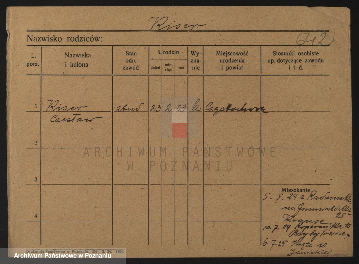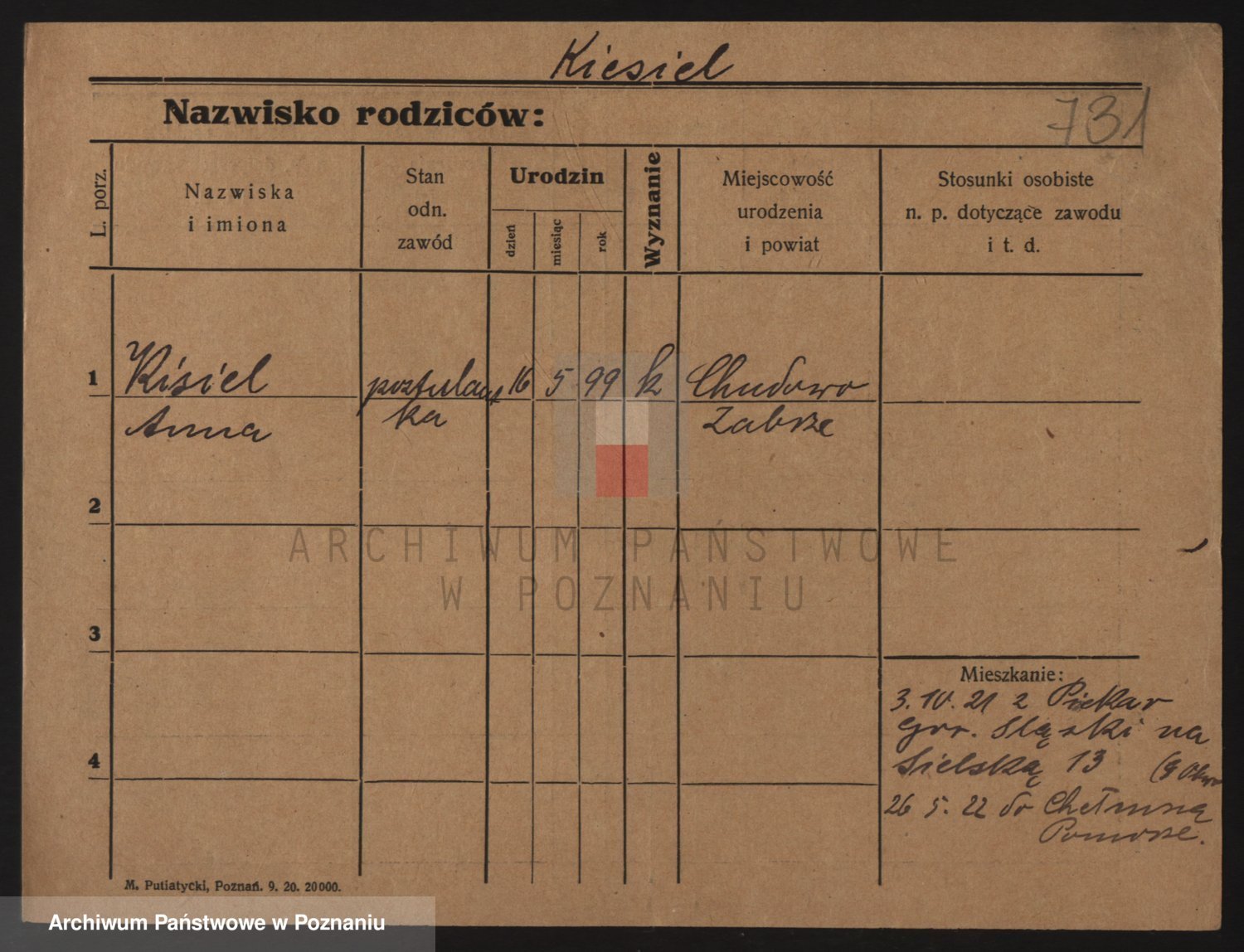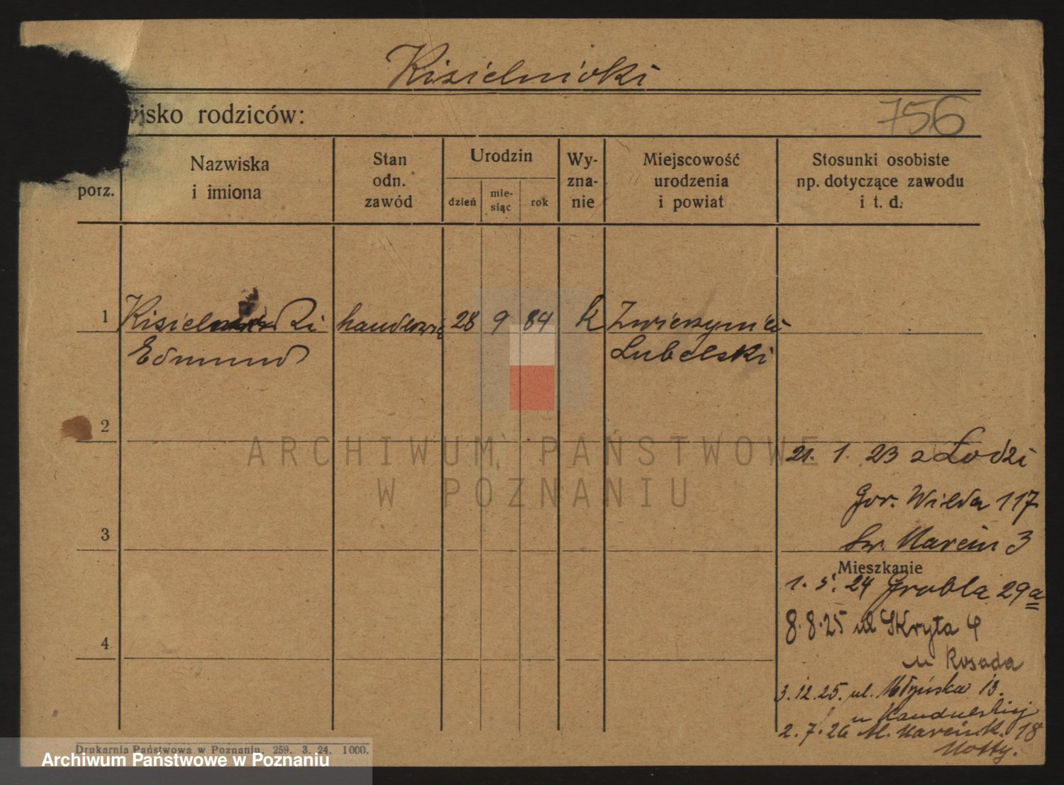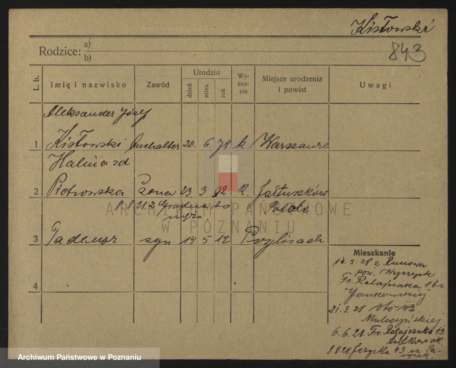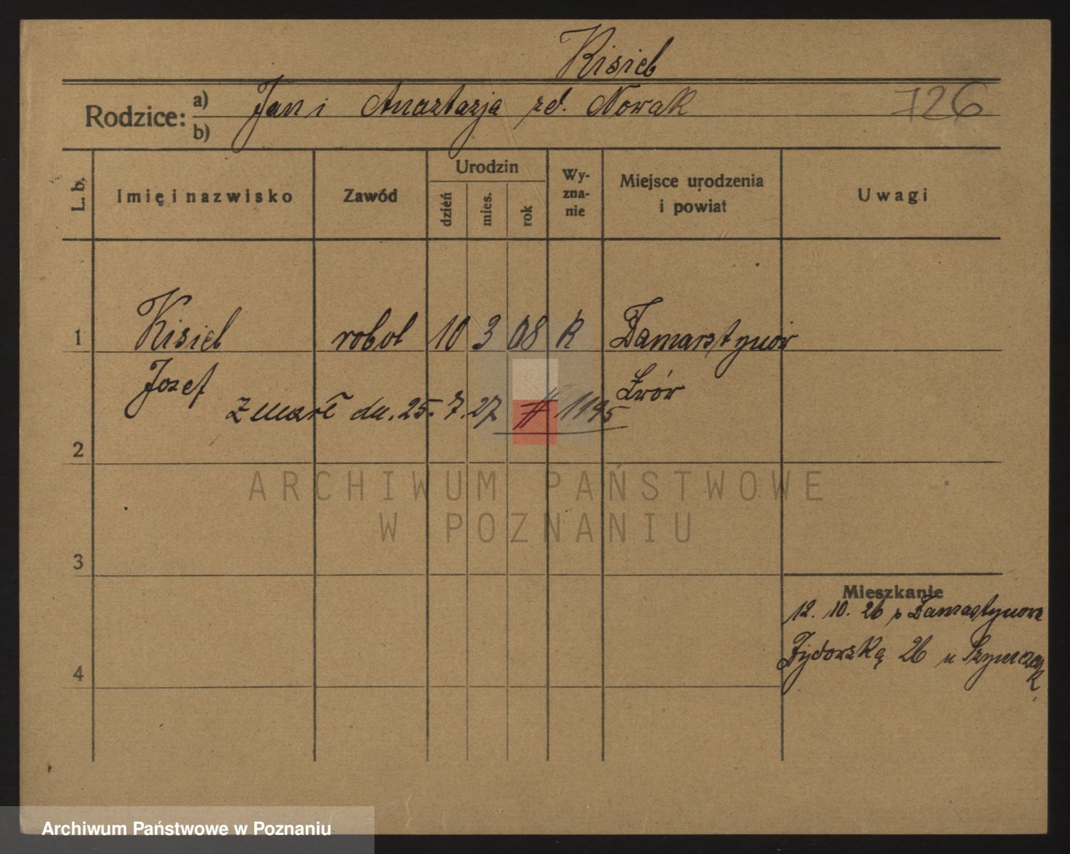 Podgląd karty osobowej dostępny jest po kliknięciu na nazwisko lub ikonkę karty. Można dokonywać powiększenia (ikony na górze) lub przechodzić między kolejnymi skanami (strzałki po bokach).