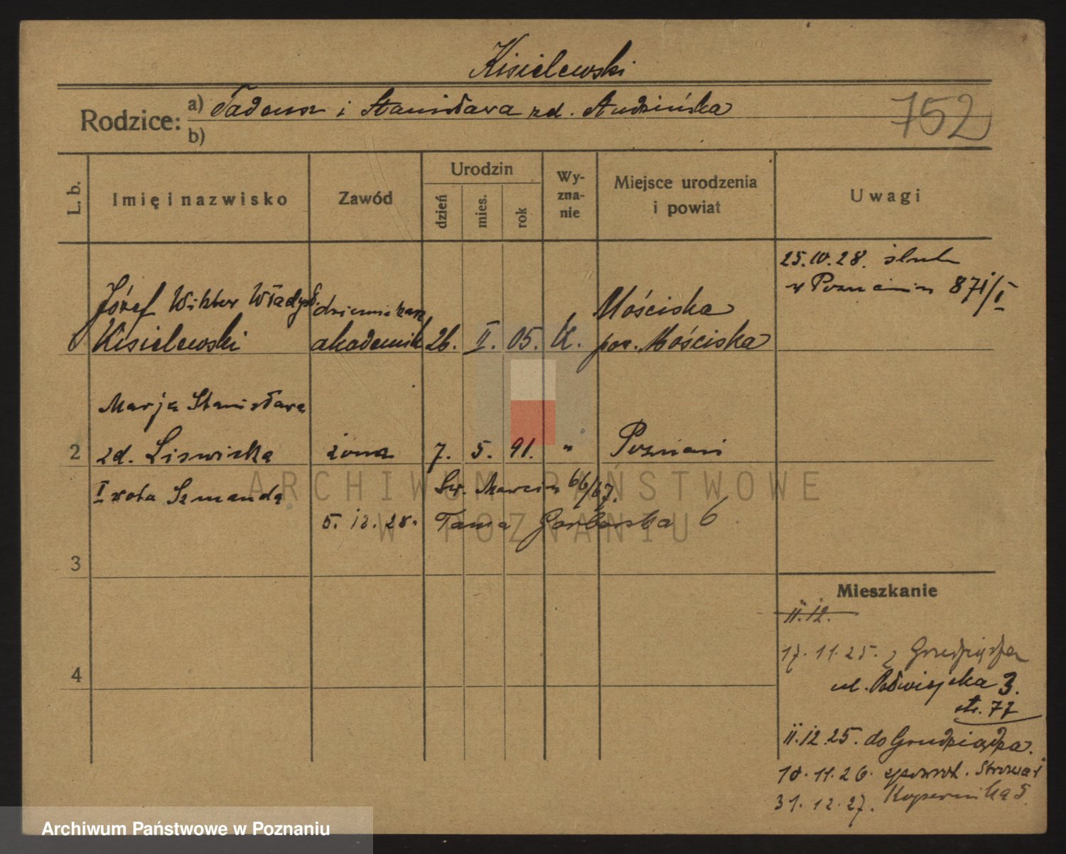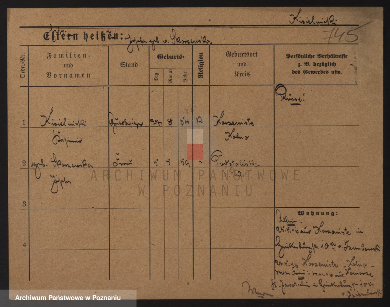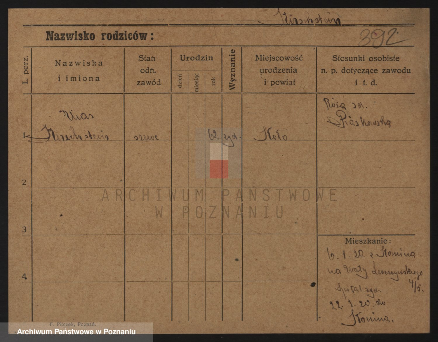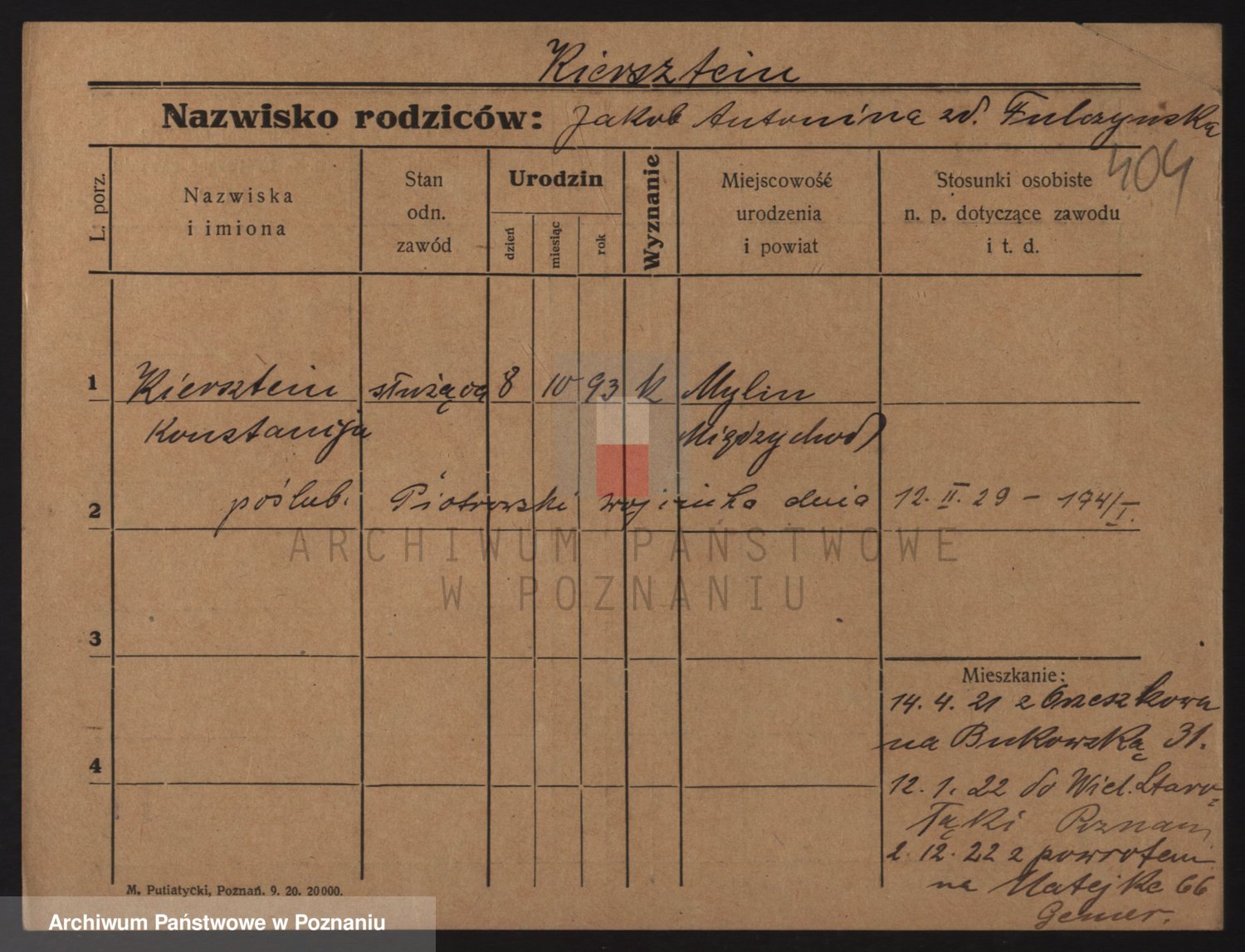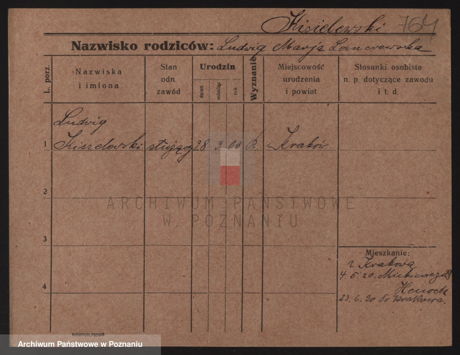 Podgląd karty osobowej dostępny jest po kliknięciu na nazwisko lub ikonkę karty. Można dokonywać powiększenia (ikony na górze) lub przechodzić między kolejnymi skanami (strzałki po bokach).