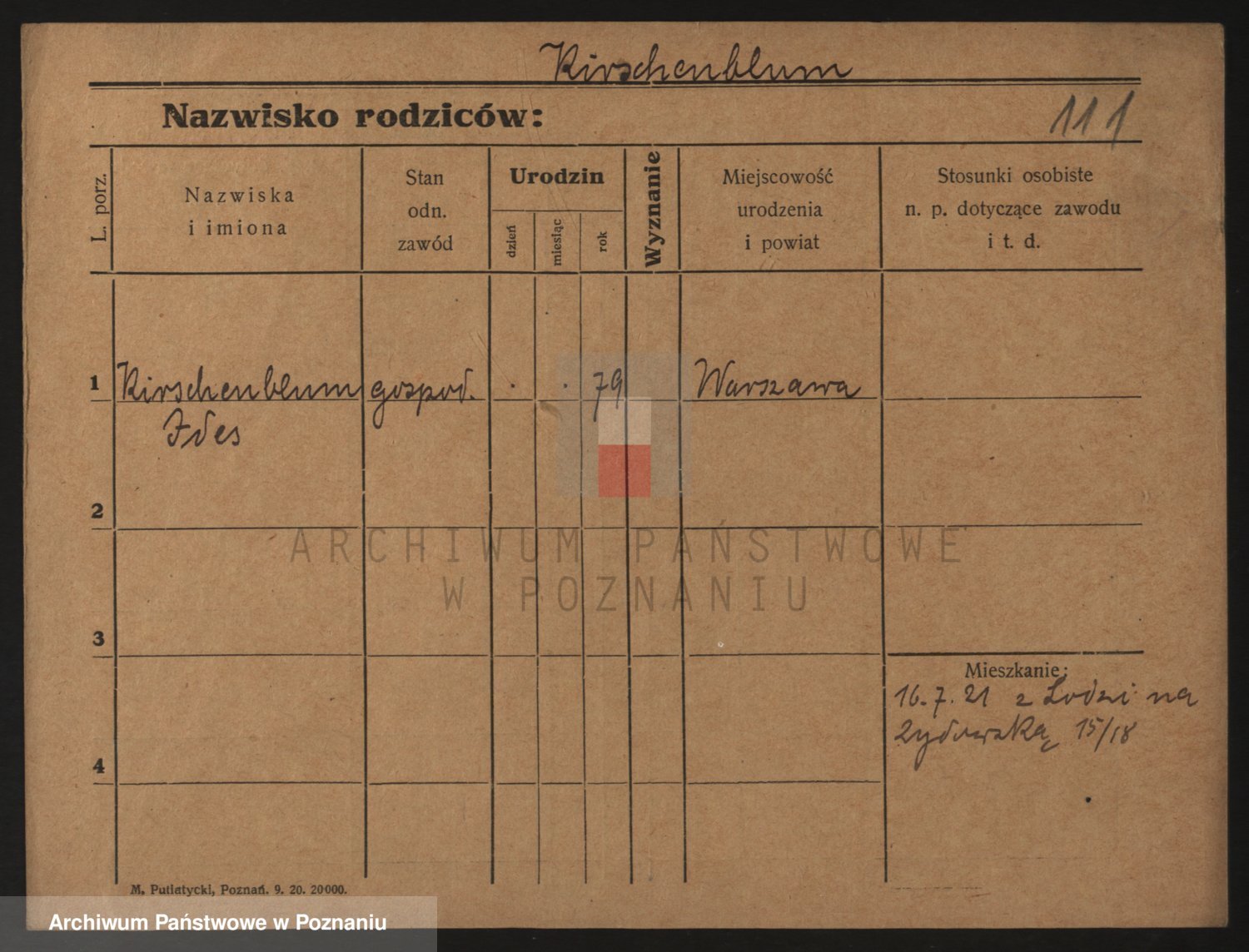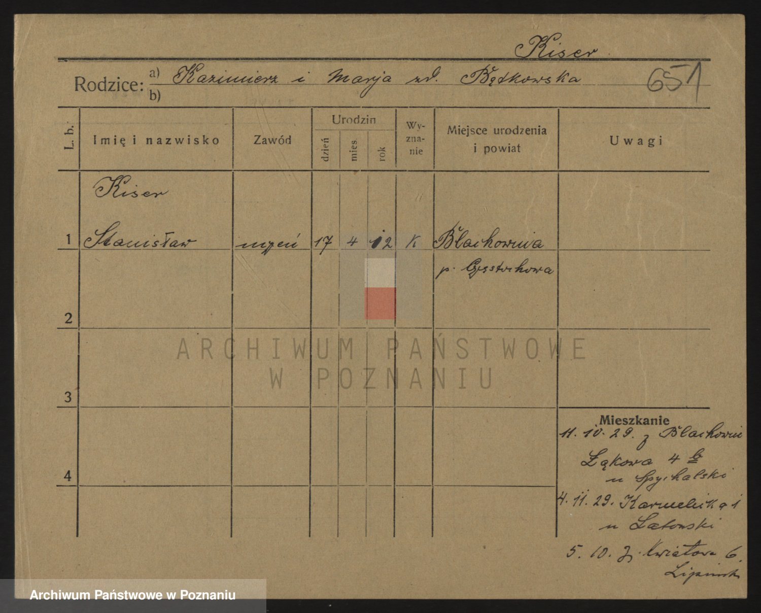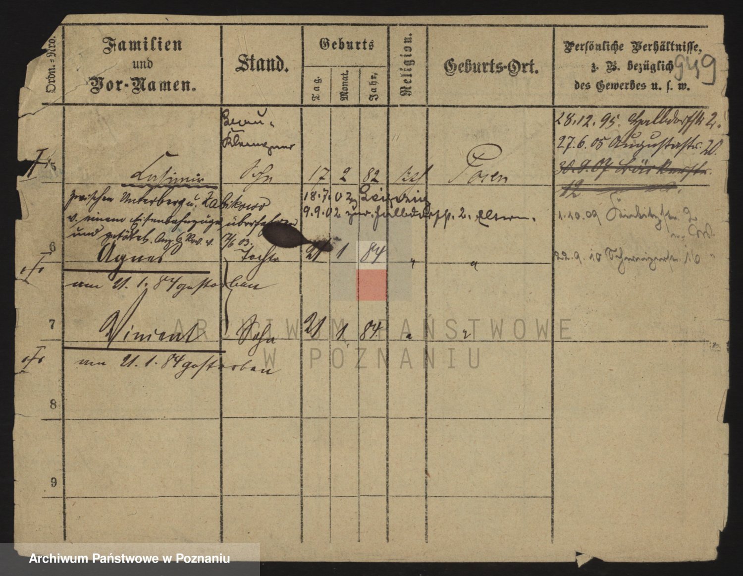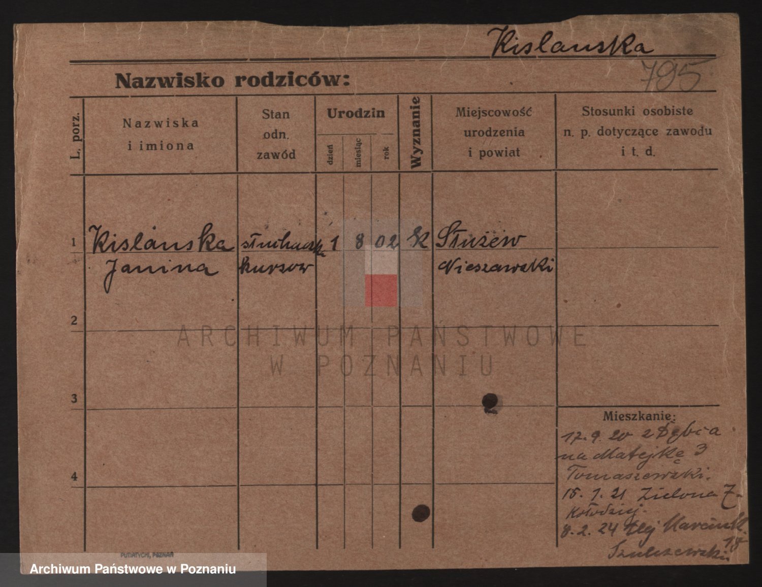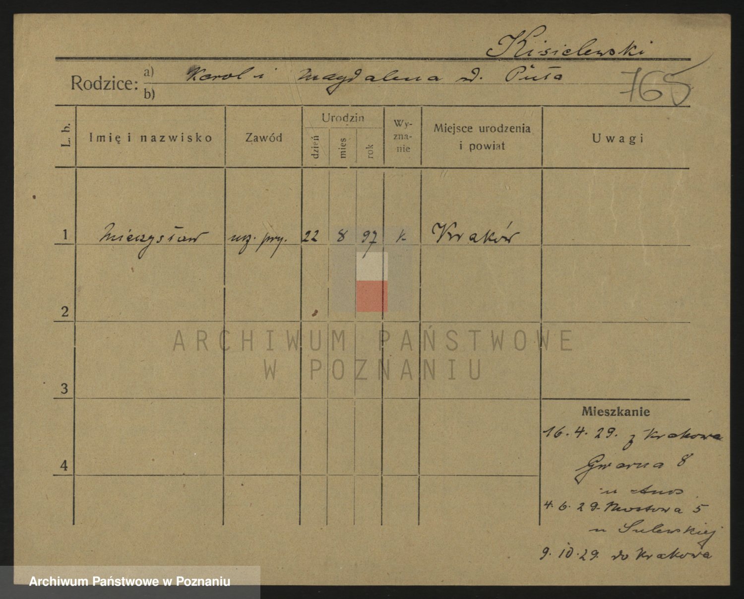 Podgląd karty osobowej dostępny jest po kliknięciu na nazwisko lub ikonkę karty. Można dokonywać powiększenia (ikony na górze) lub przechodzić między kolejnymi skanami (strzałki po bokach).
