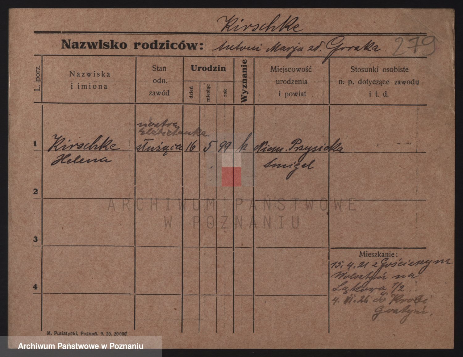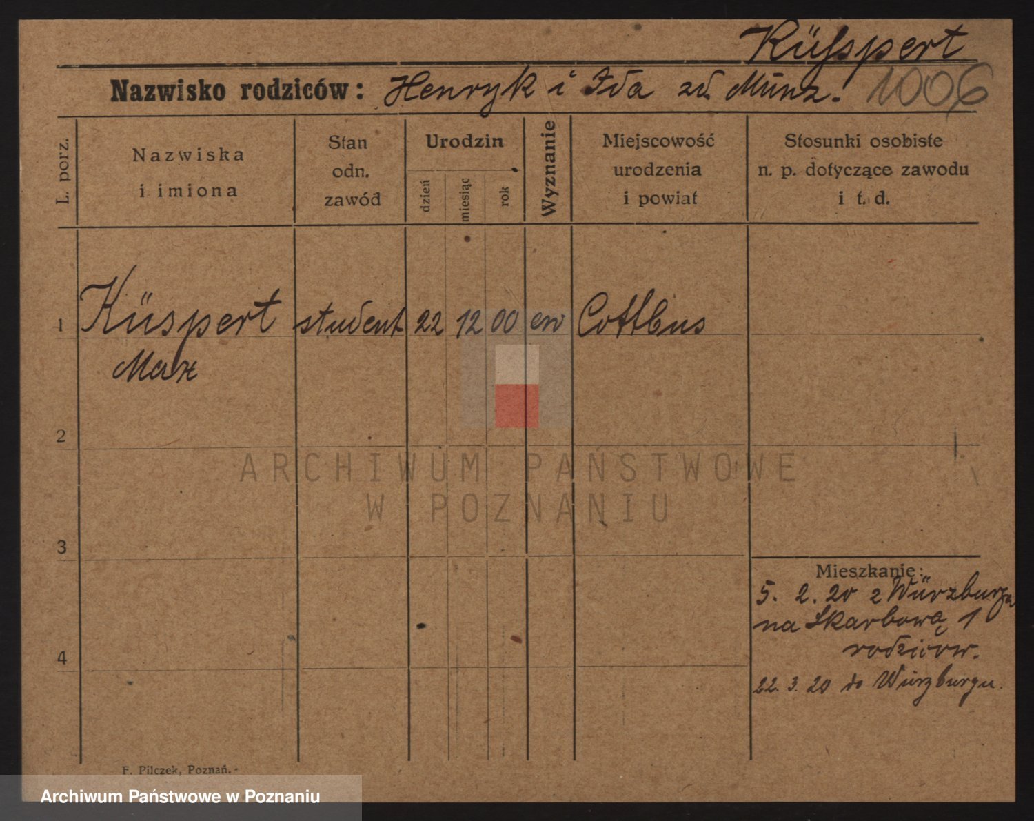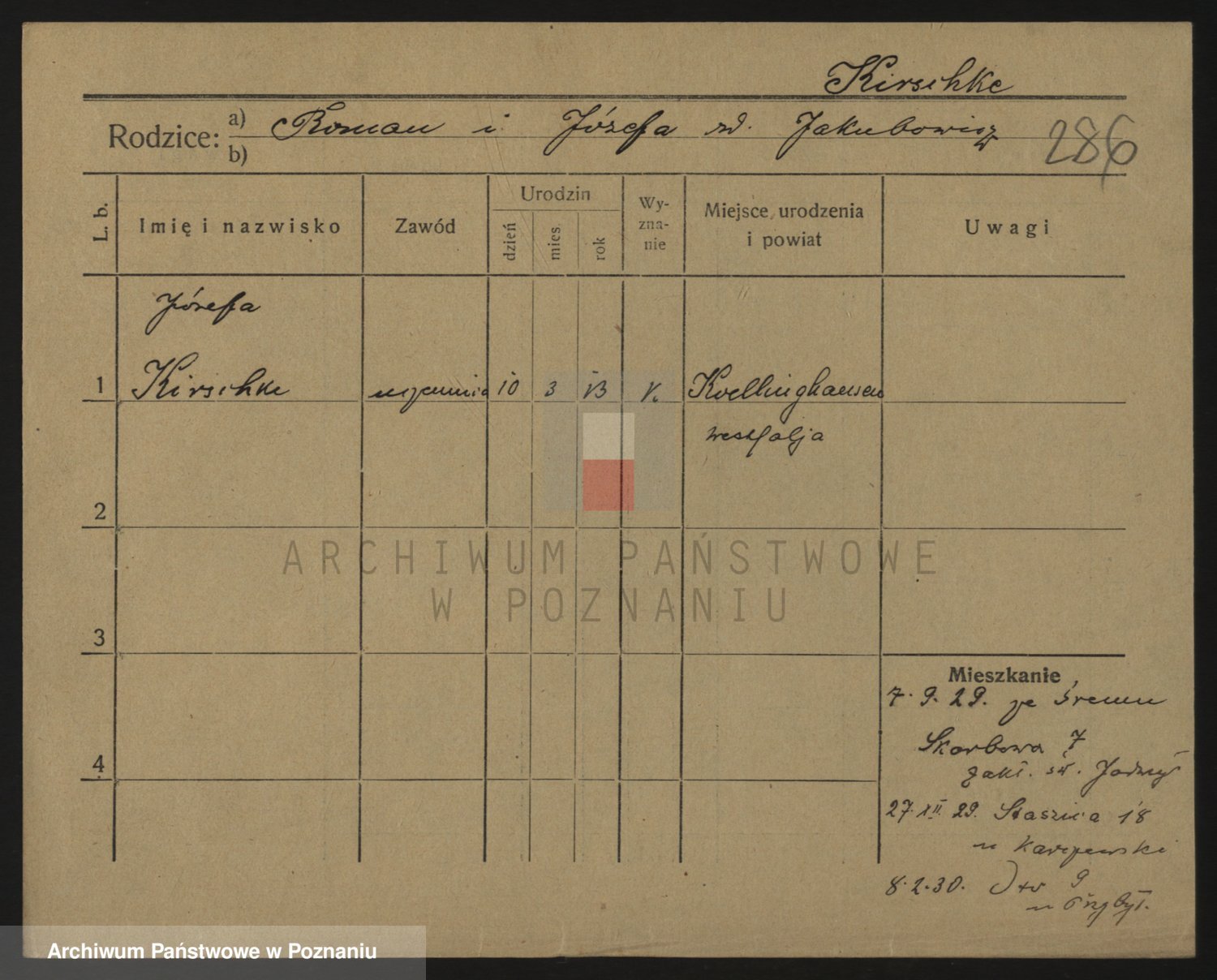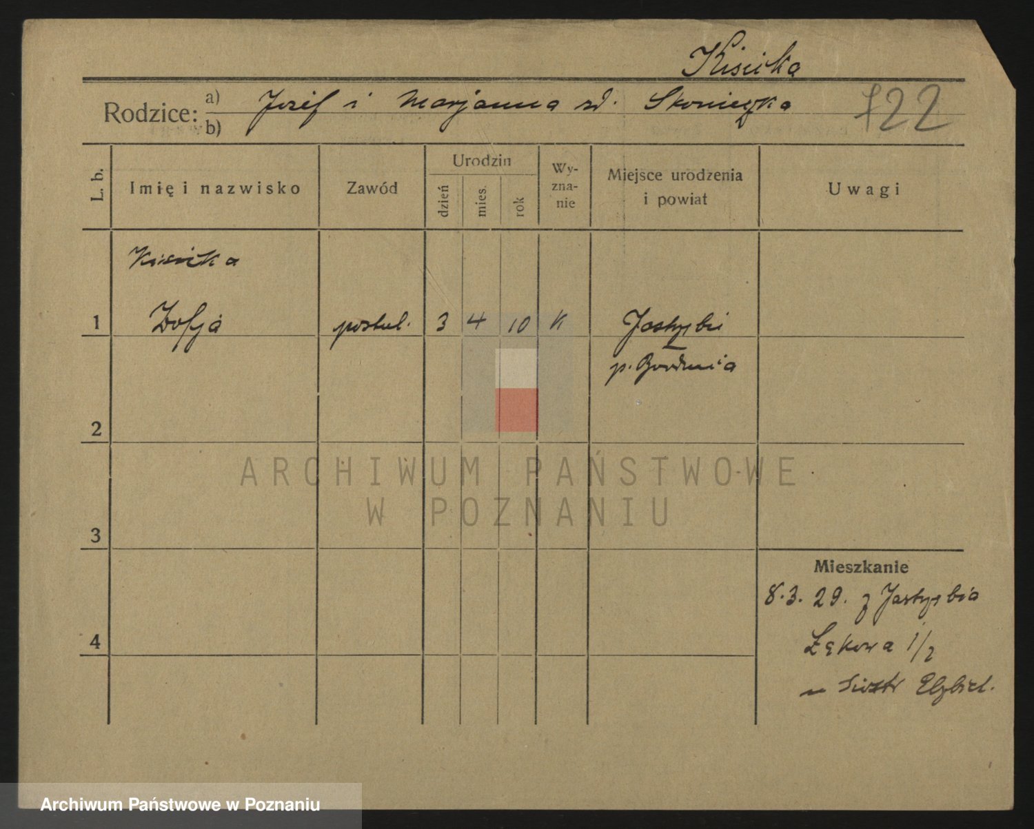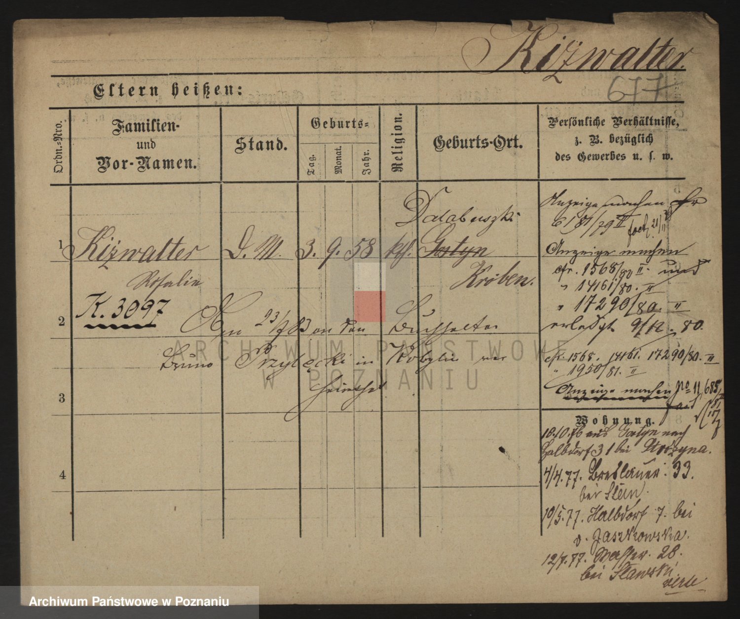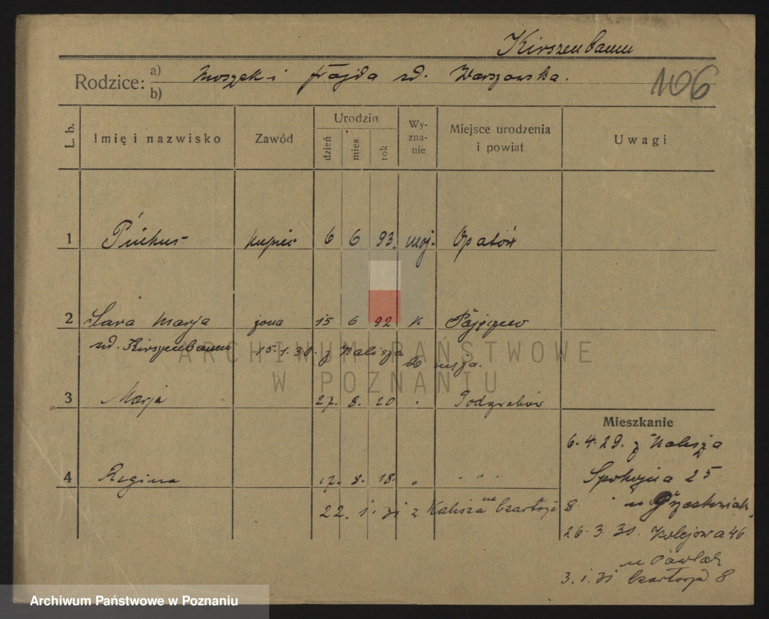 Podgląd karty osobowej dostępny jest po kliknięciu na nazwisko lub ikonkę karty. Można dokonywać powiększenia (ikony na górze) lub przechodzić między kolejnymi skanami (strzałki po bokach).