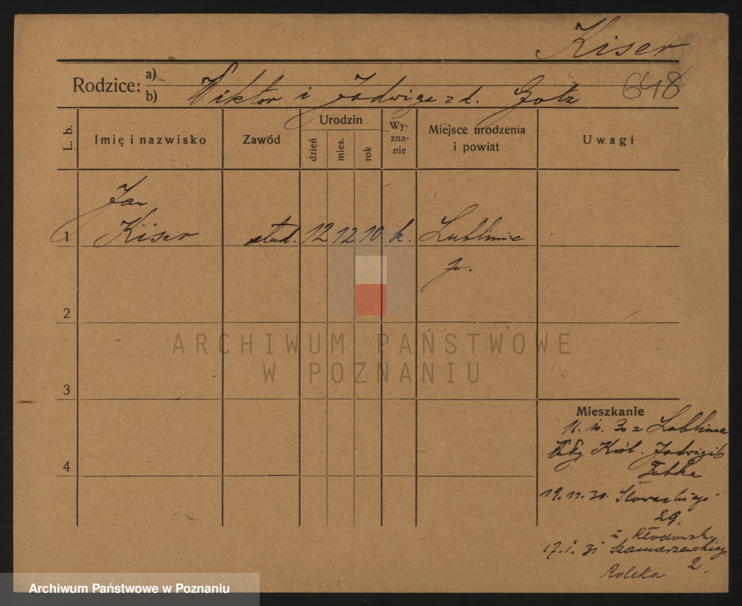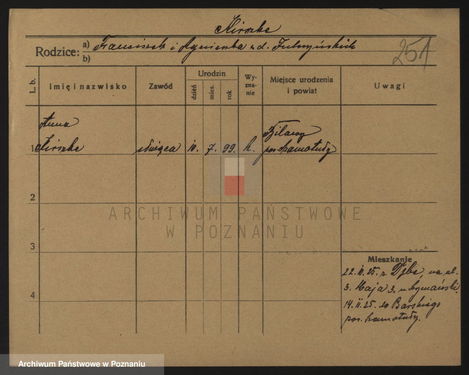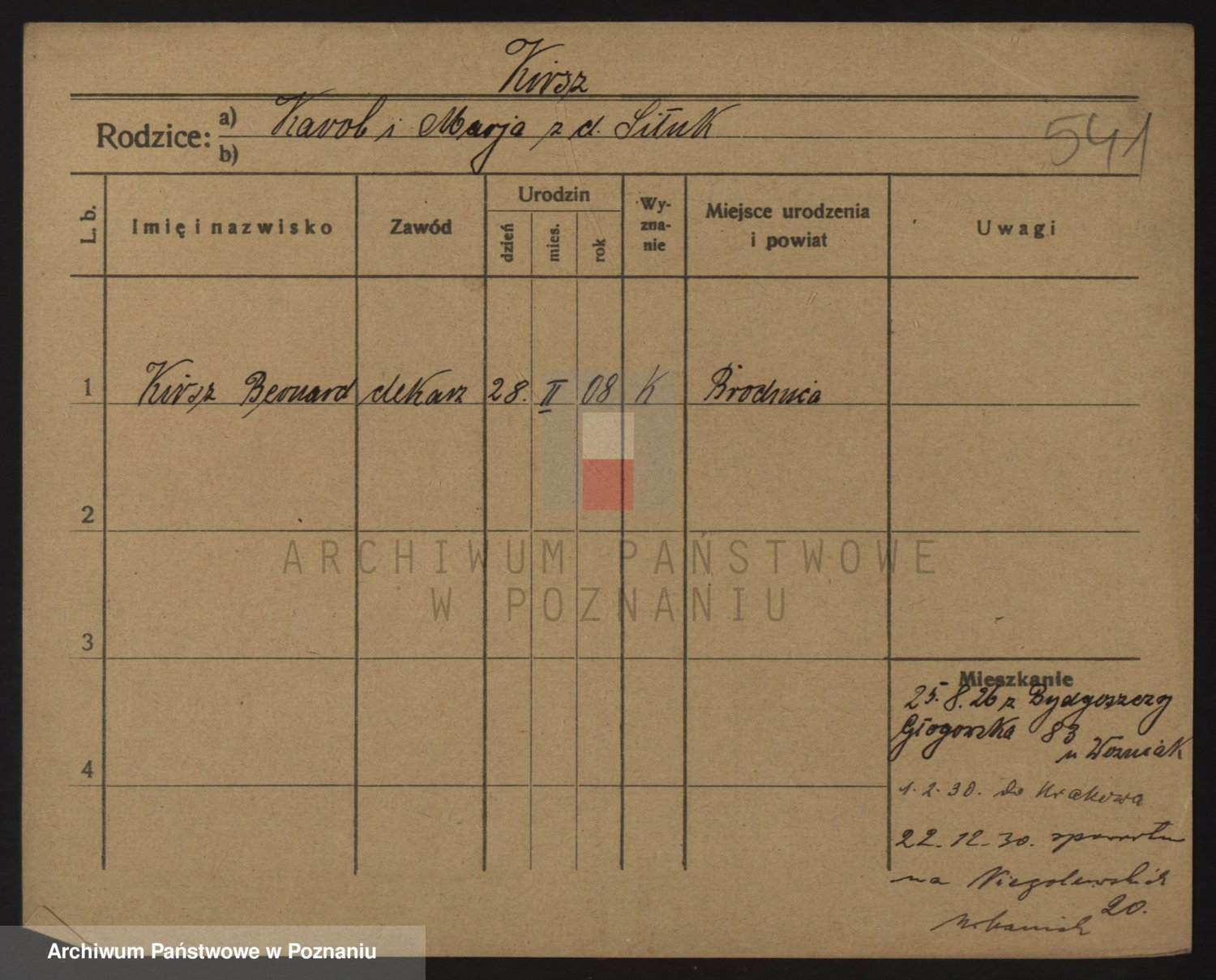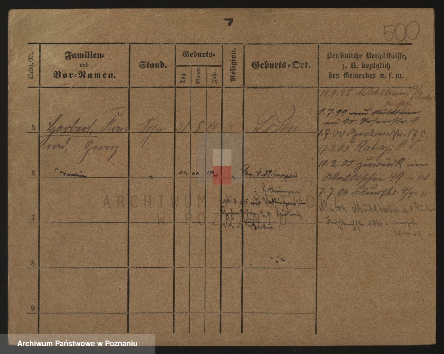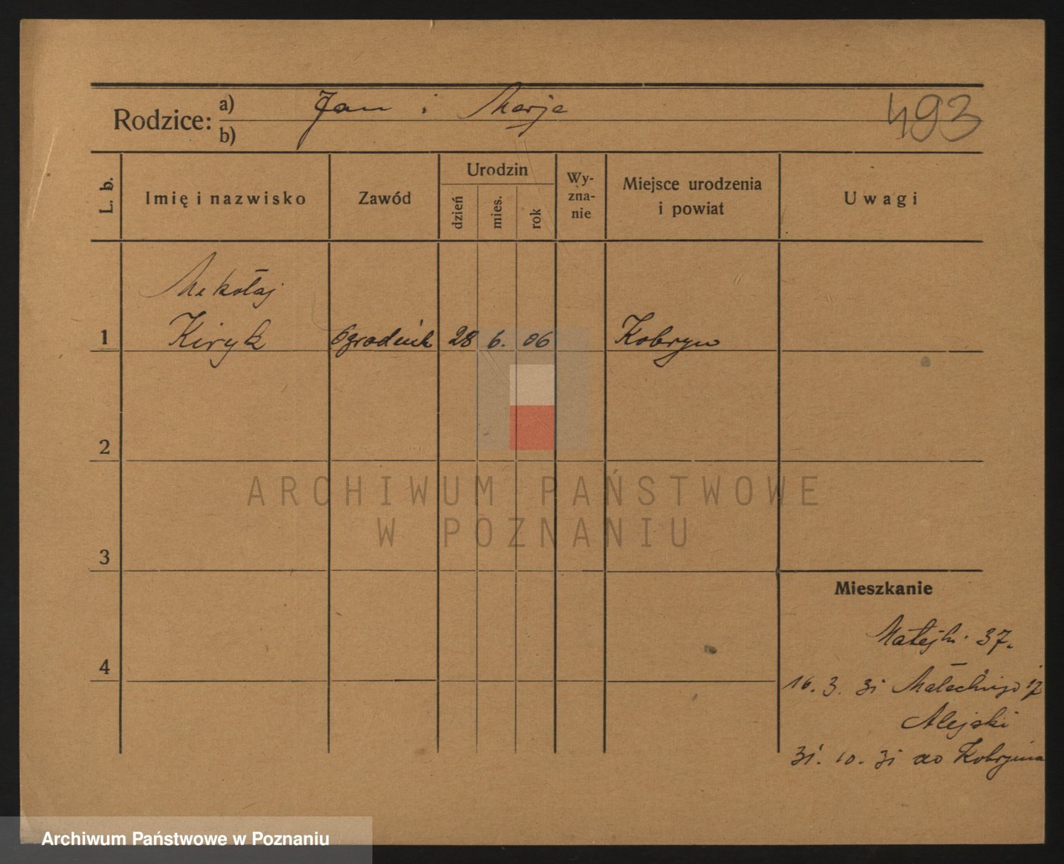 Podgląd karty osobowej dostępny jest po kliknięciu na nazwisko lub ikonkę karty. Można dokonywać powiększenia (ikony na górze) lub przechodzić między kolejnymi skanami (strzałki po bokach).
