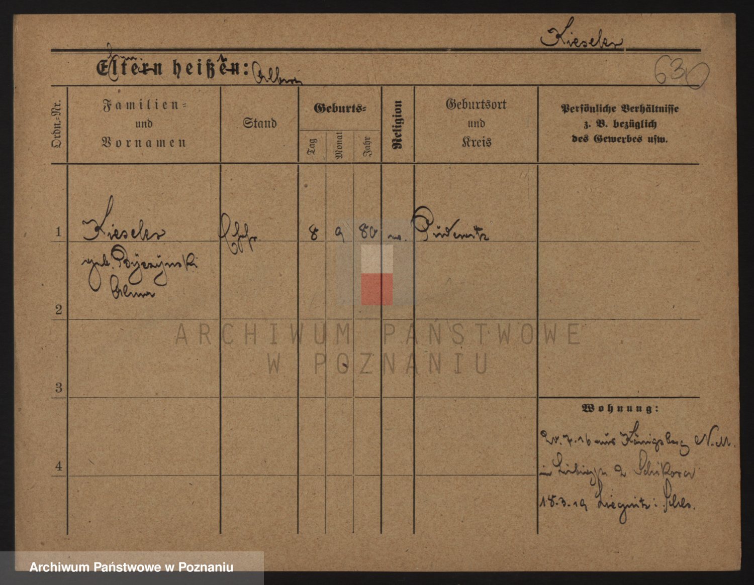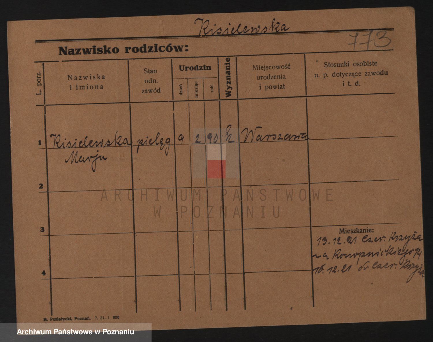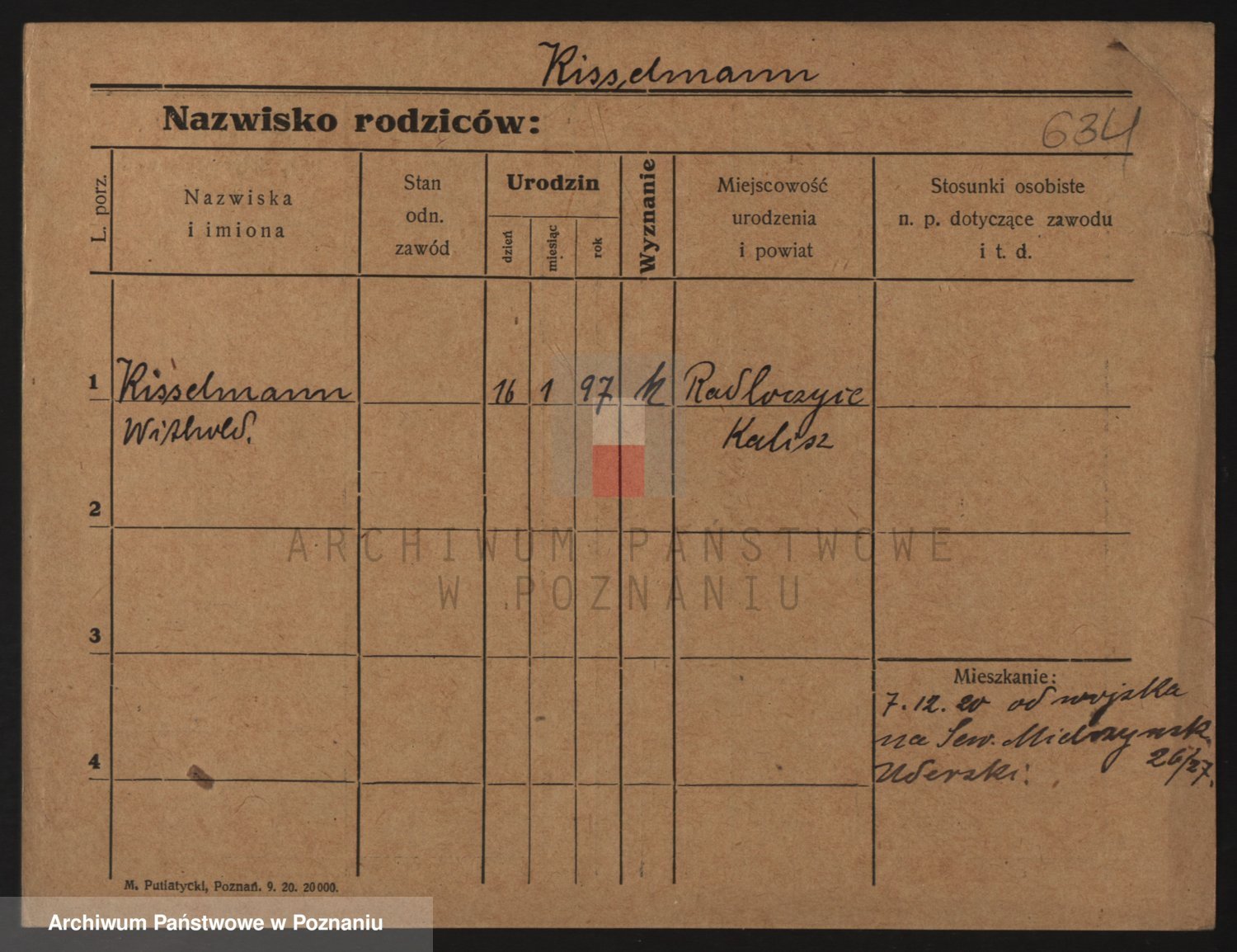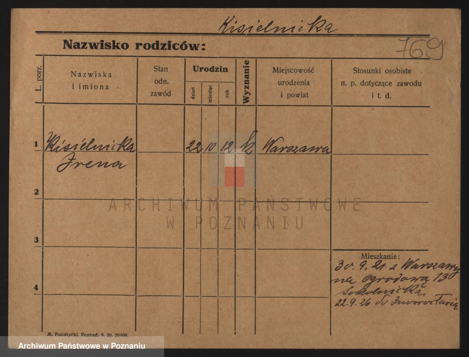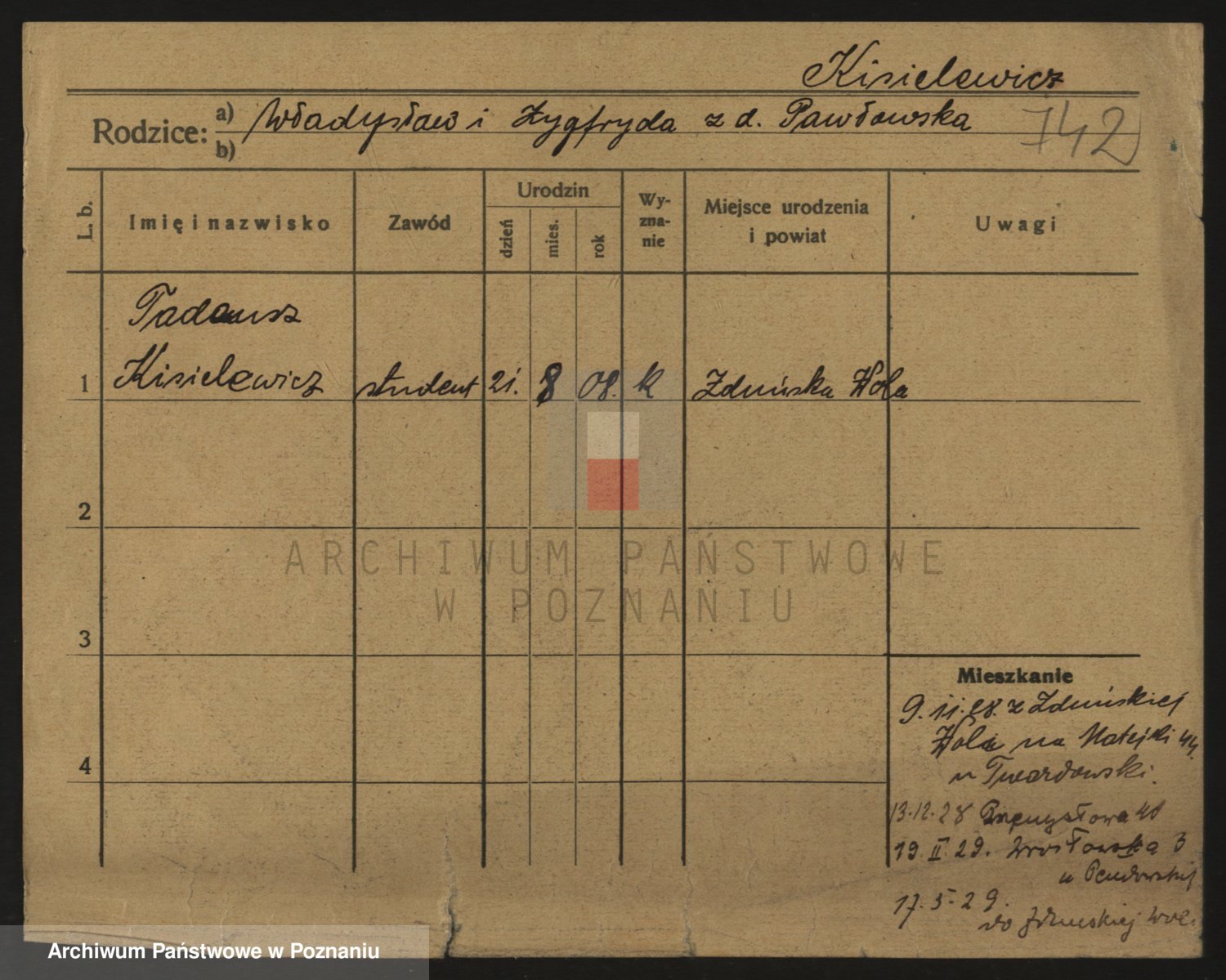 Podgląd karty osobowej dostępny jest po kliknięciu na nazwisko lub ikonkę karty. Można dokonywać powiększenia (ikony na górze) lub przechodzić między kolejnymi skanami (strzałki po bokach).