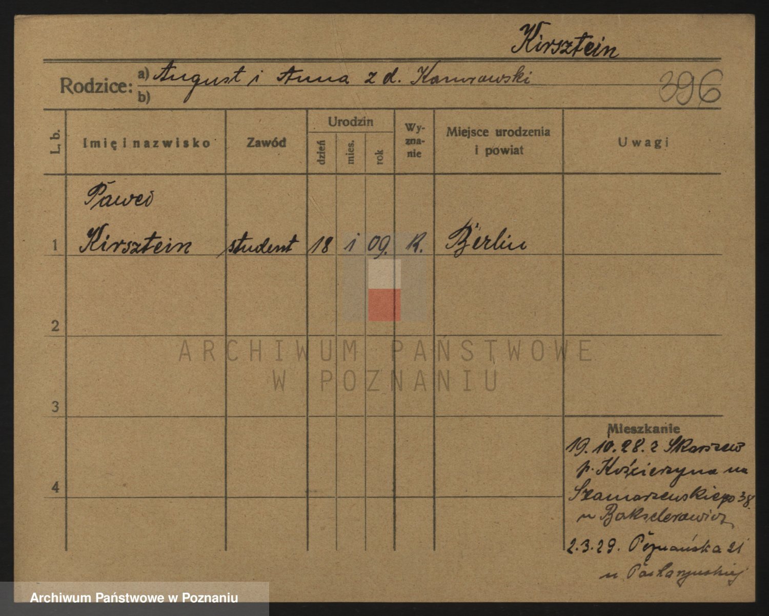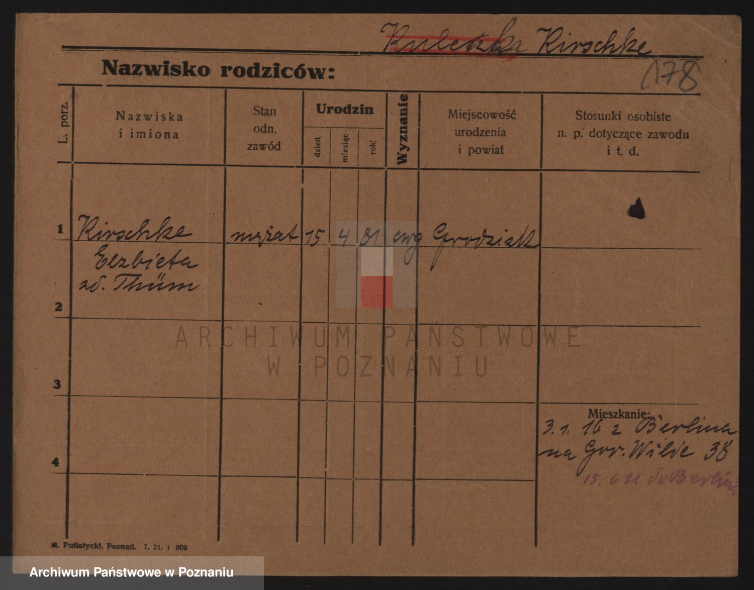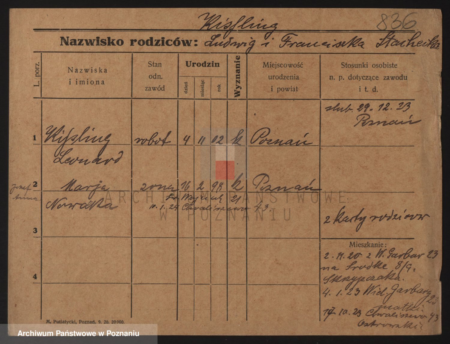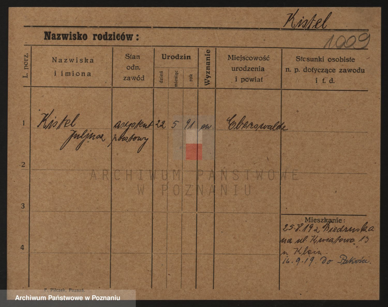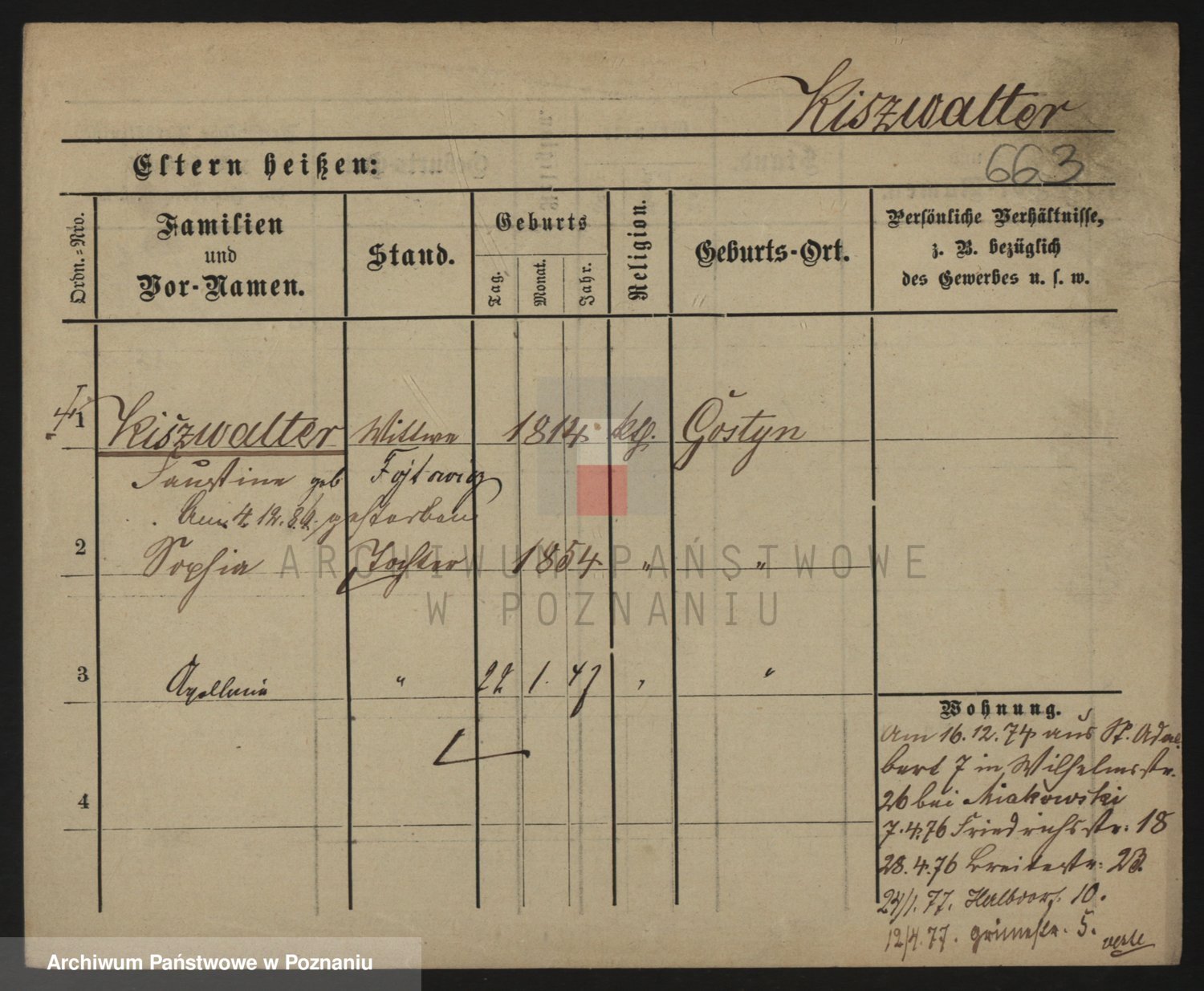 Podgląd karty osobowej dostępny jest po kliknięciu na nazwisko lub ikonkę karty. Można dokonywać powiększenia (ikony na górze) lub przechodzić między kolejnymi skanami (strzałki po bokach).