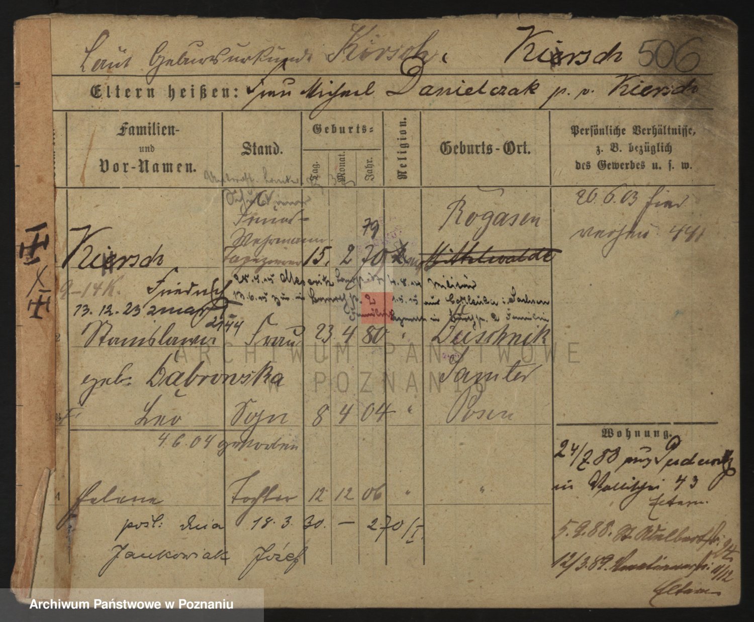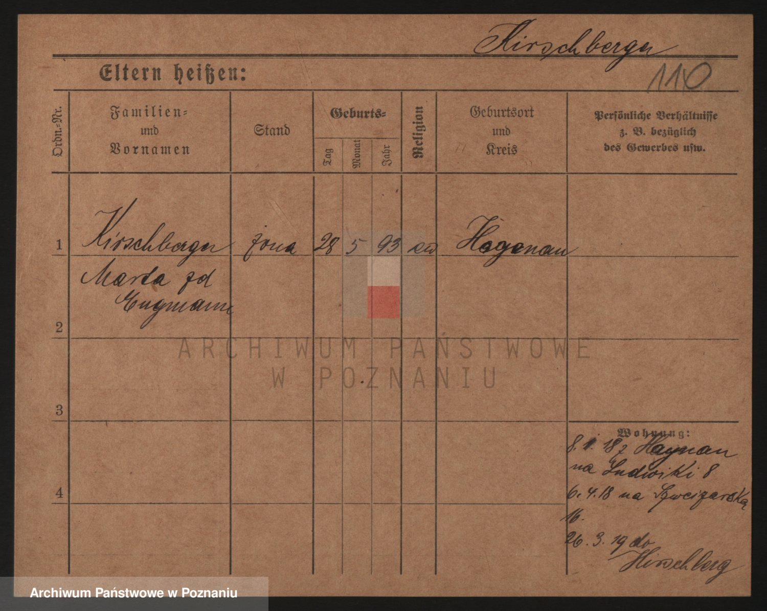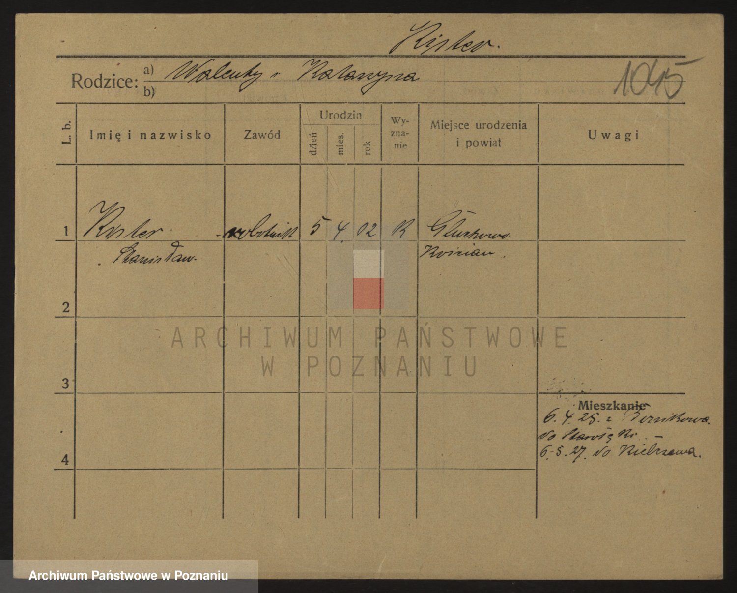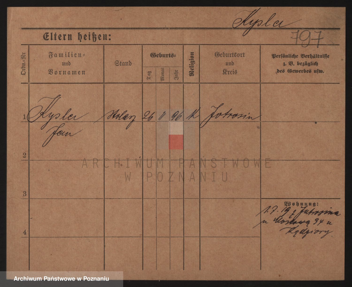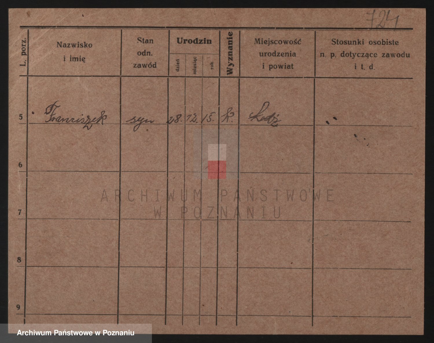Podgląd karty osobowej dostępny jest po kliknięciu na nazwisko lub ikonkę karty. Można dokonywać powiększenia (ikony na górze) lub przechodzić między kolejnymi skanami (strzałki po bokach).