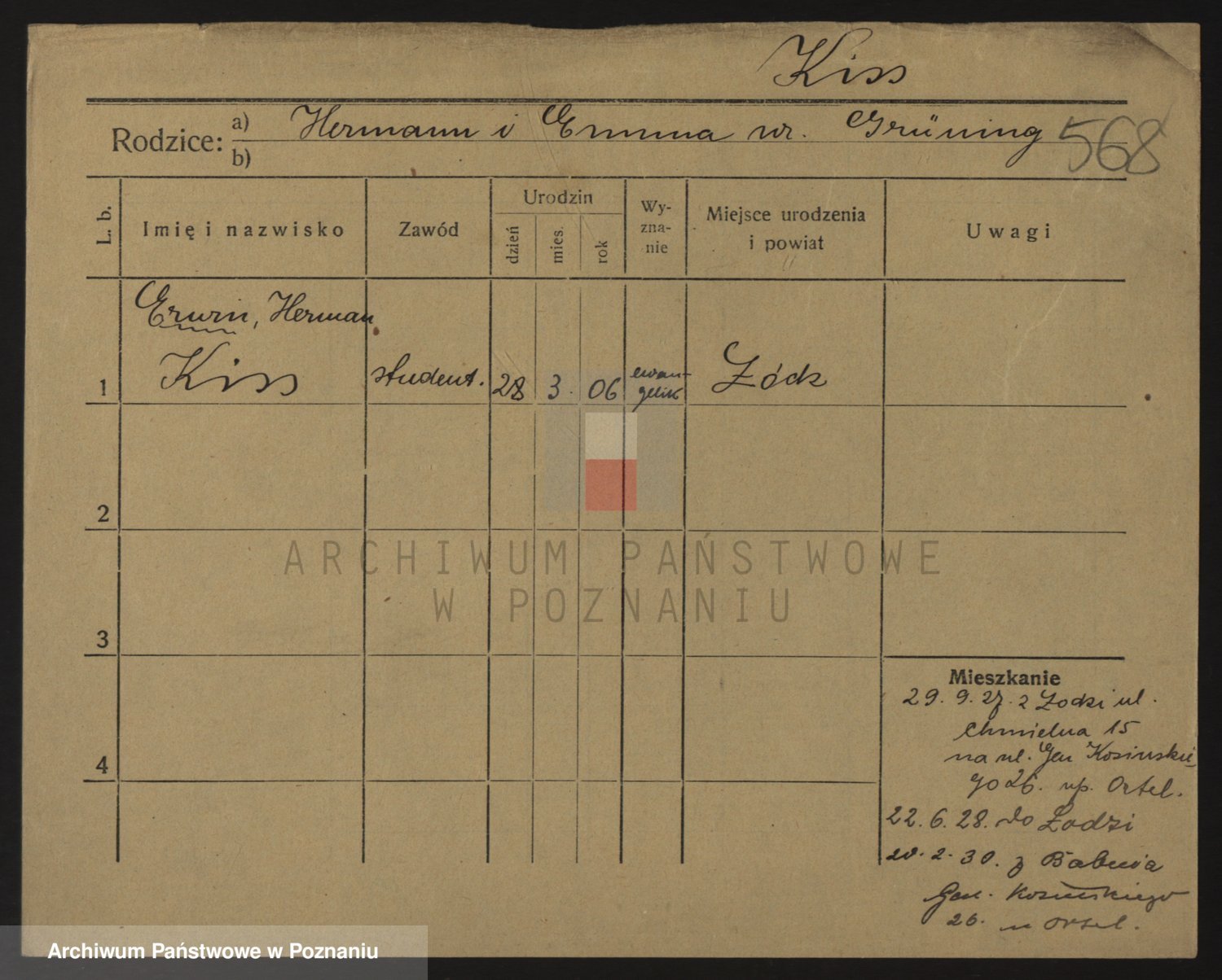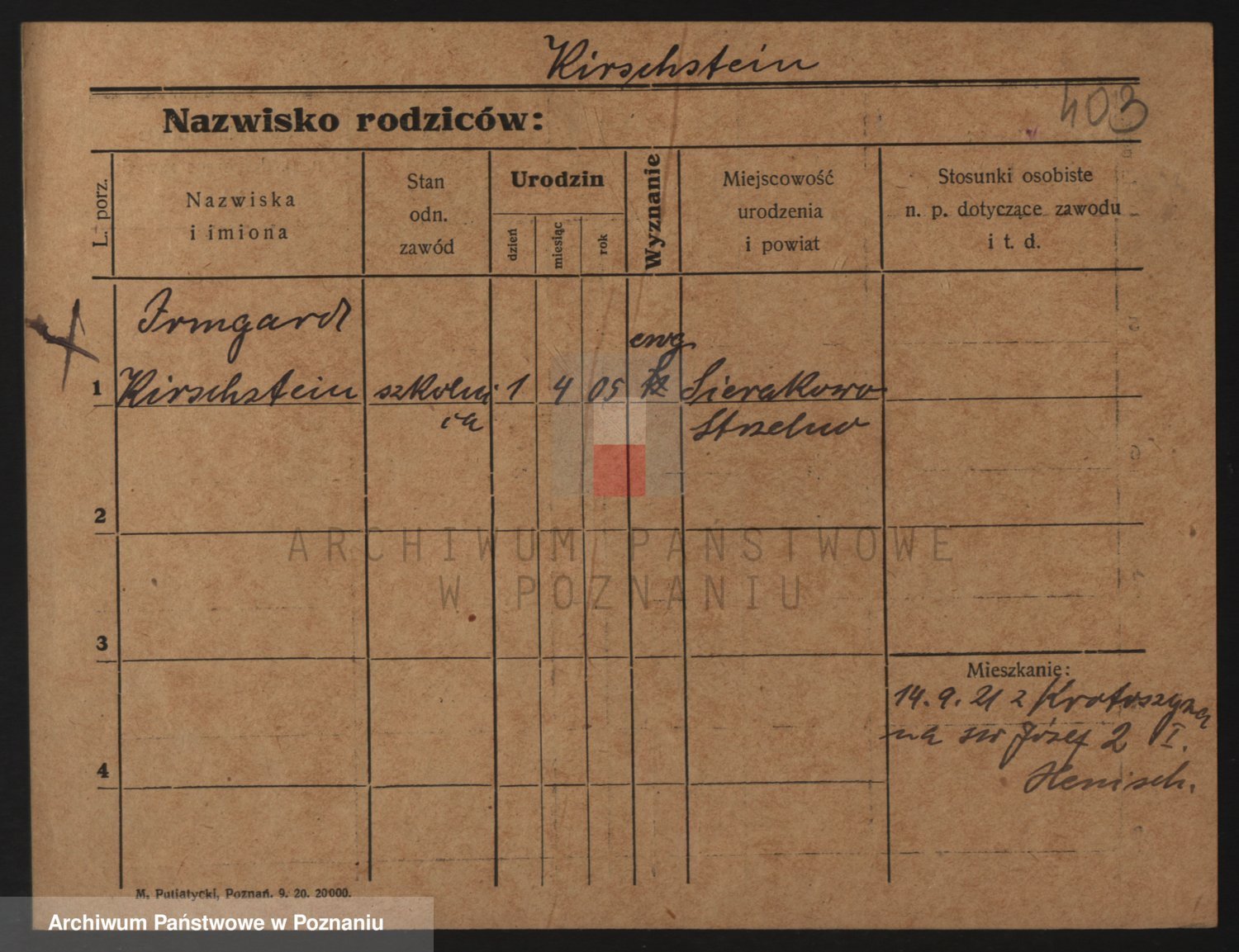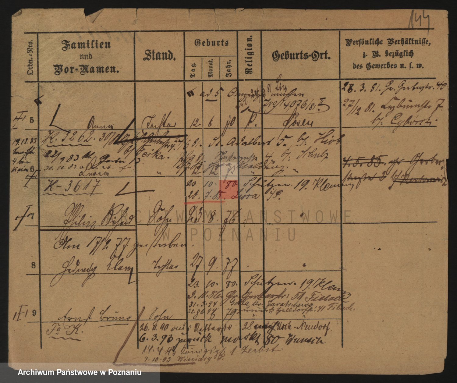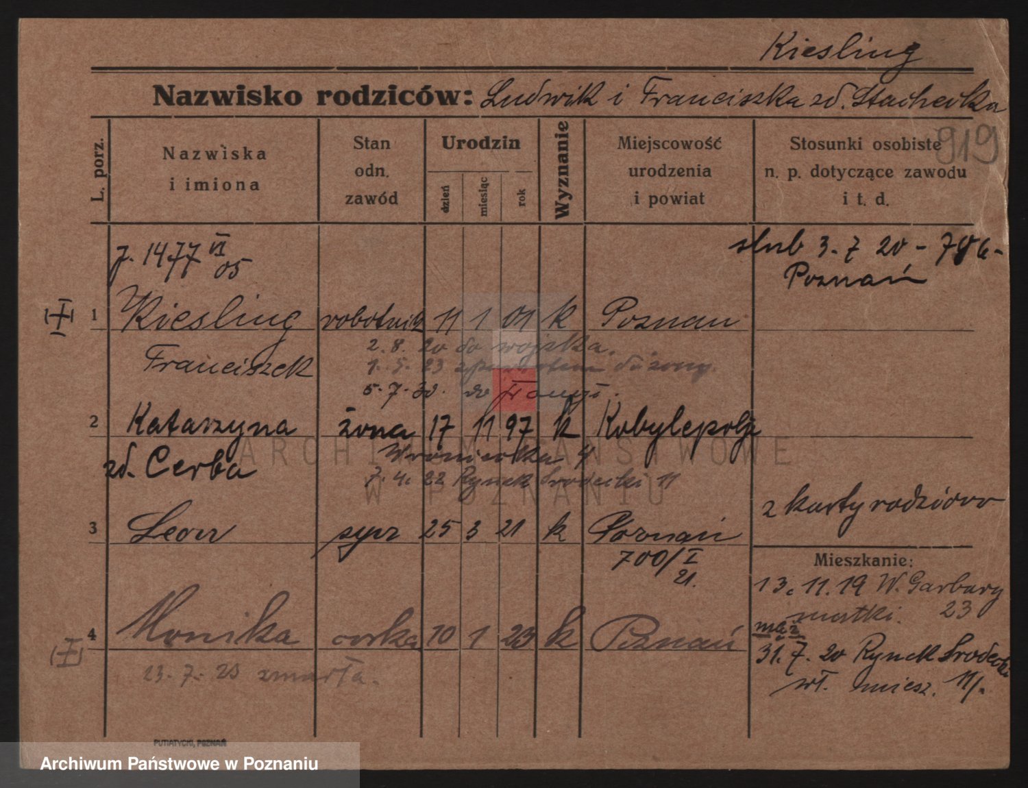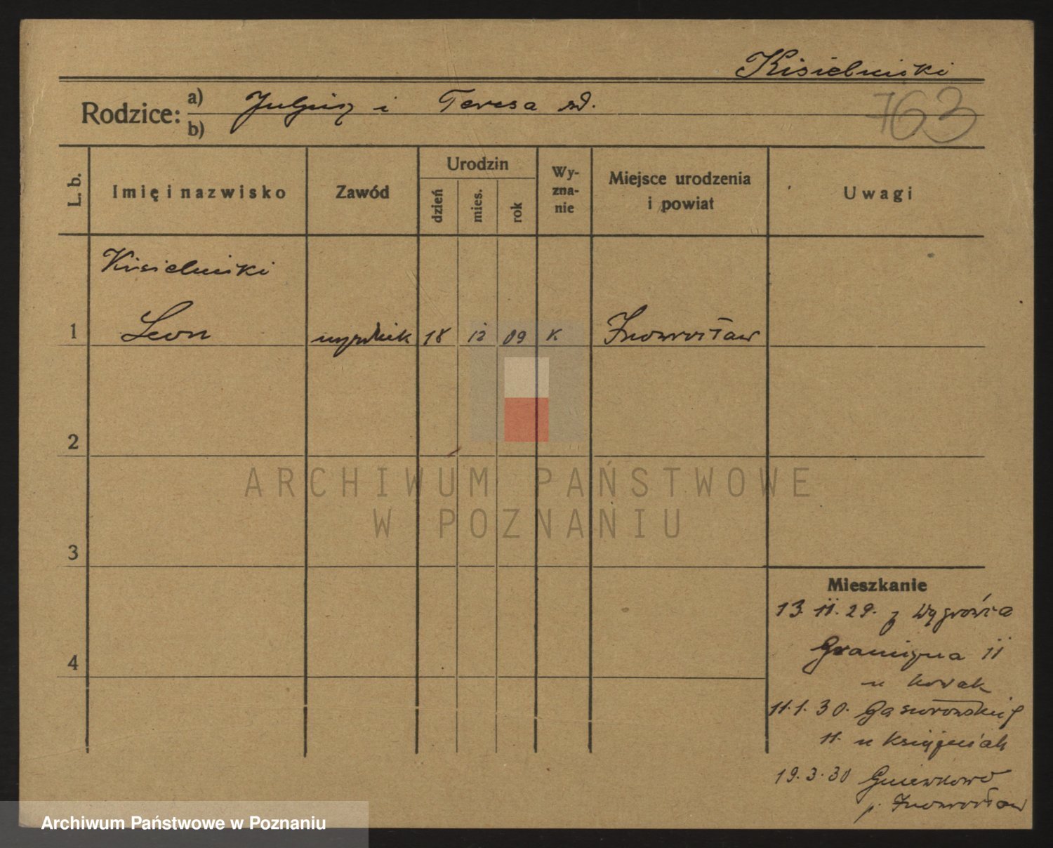 Podgląd karty osobowej dostępny jest po kliknięciu na nazwisko lub ikonkę karty. Można dokonywać powiększenia (ikony na górze) lub przechodzić między kolejnymi skanami (strzałki po bokach).