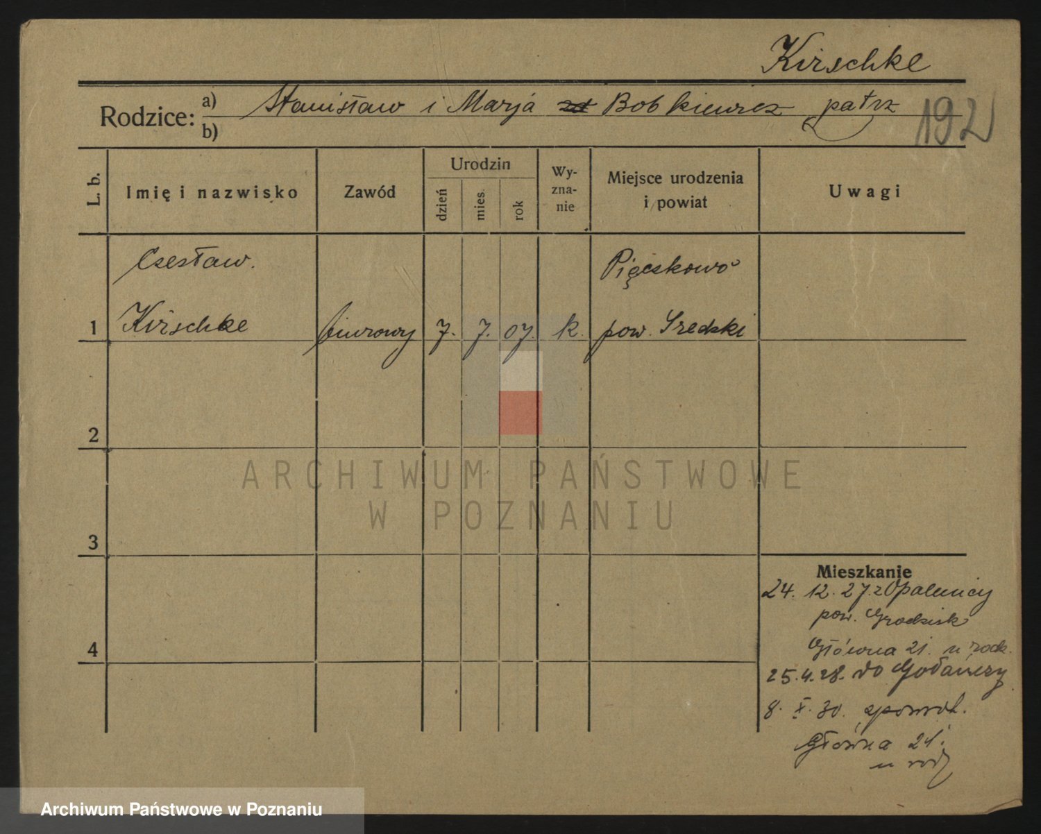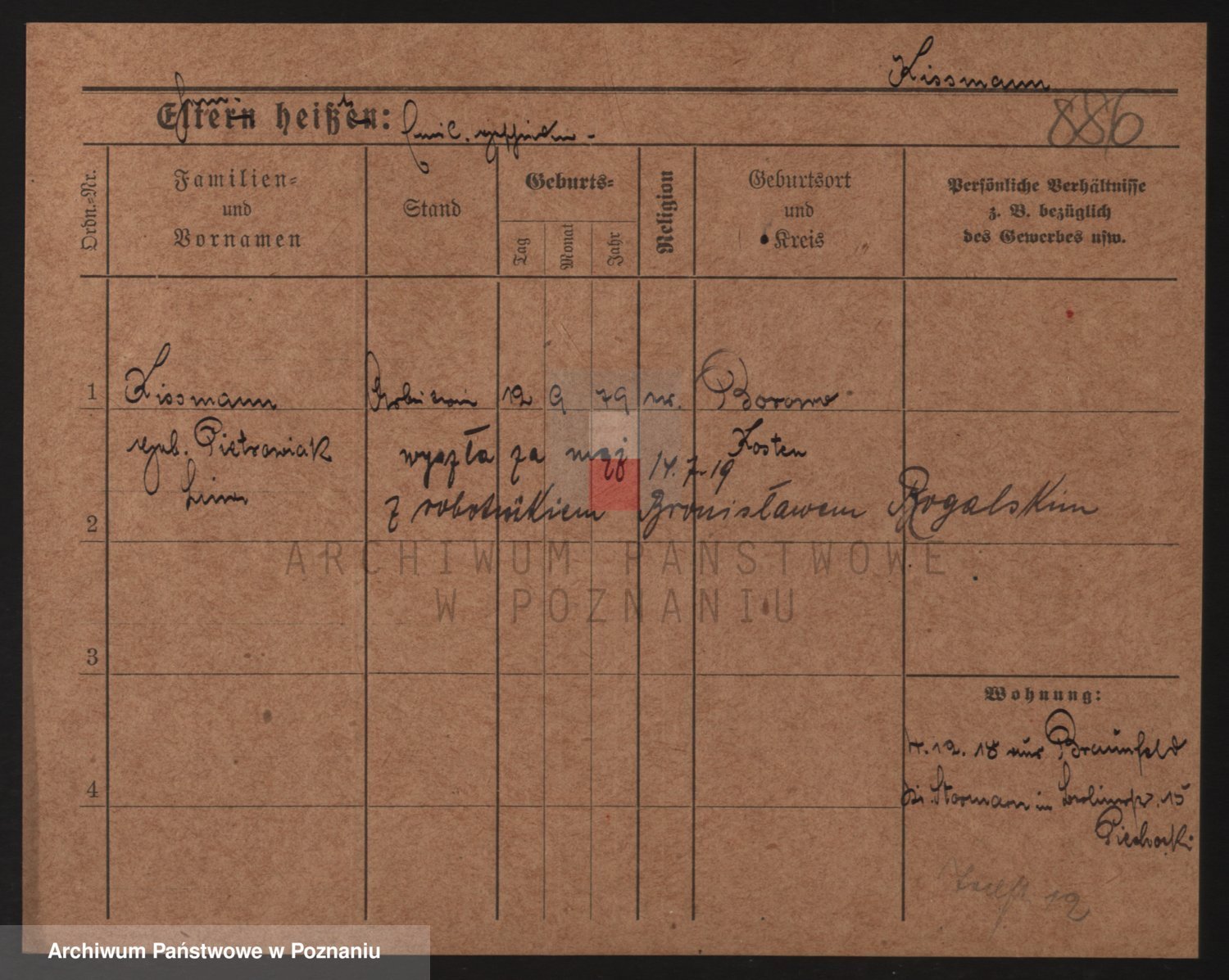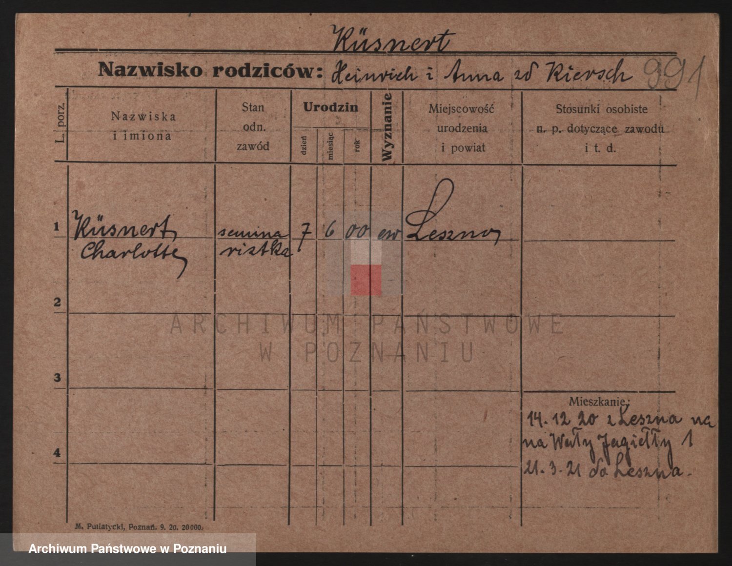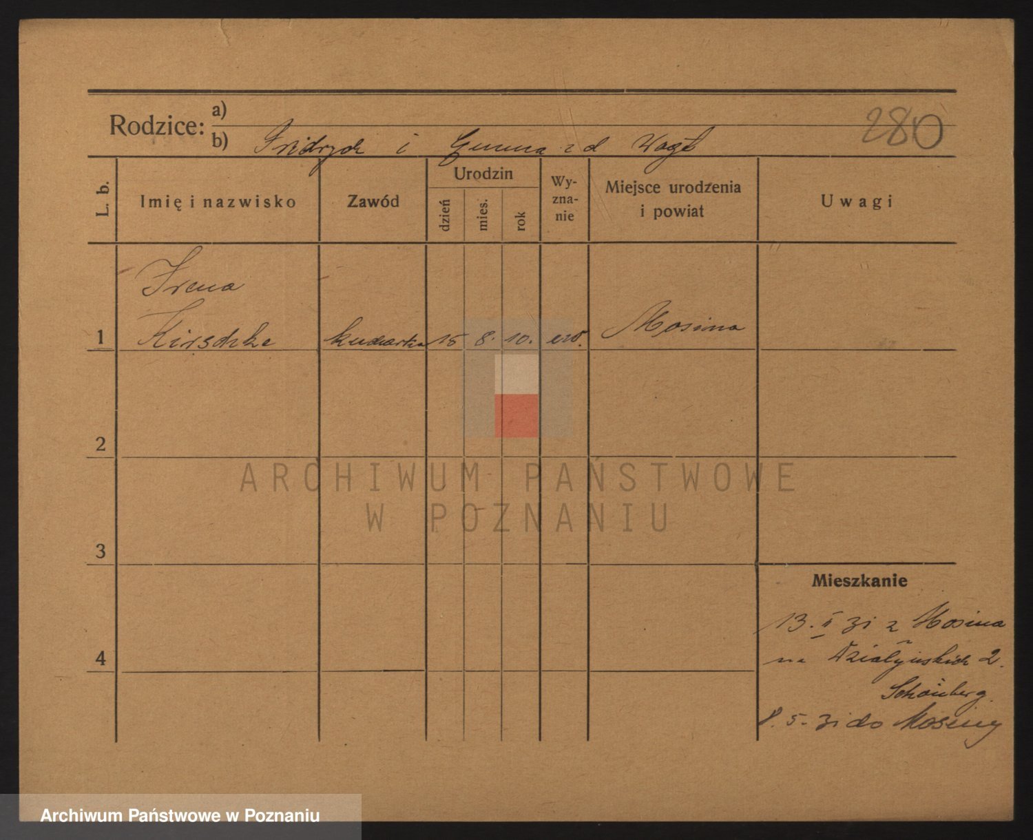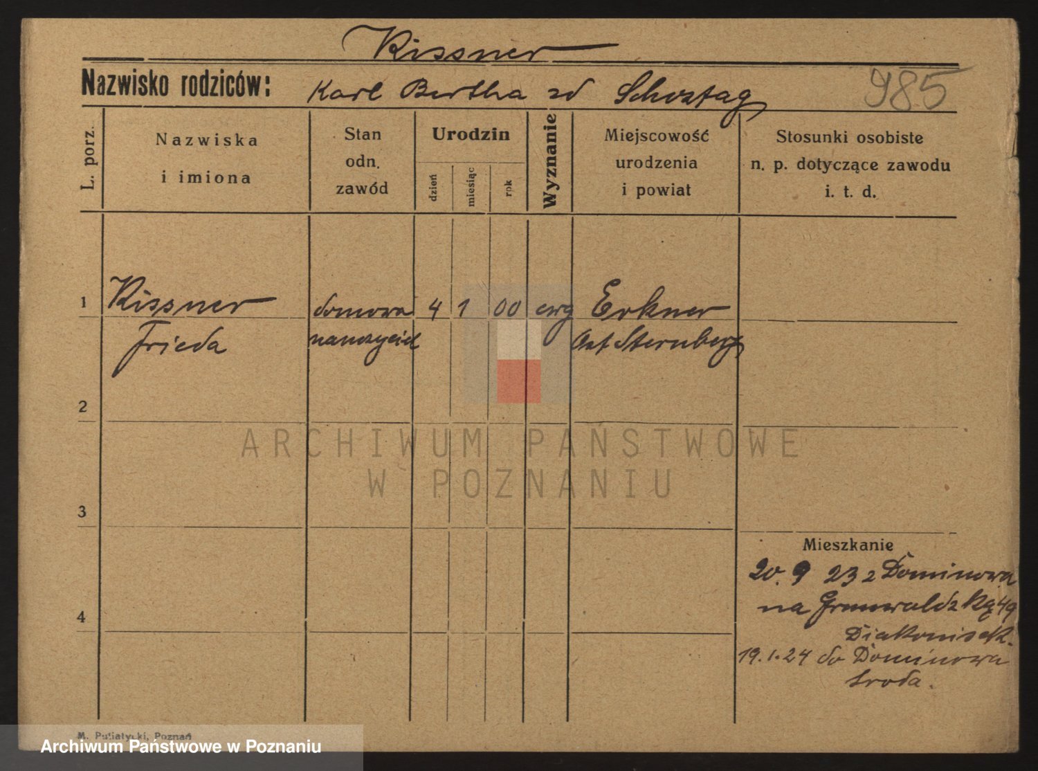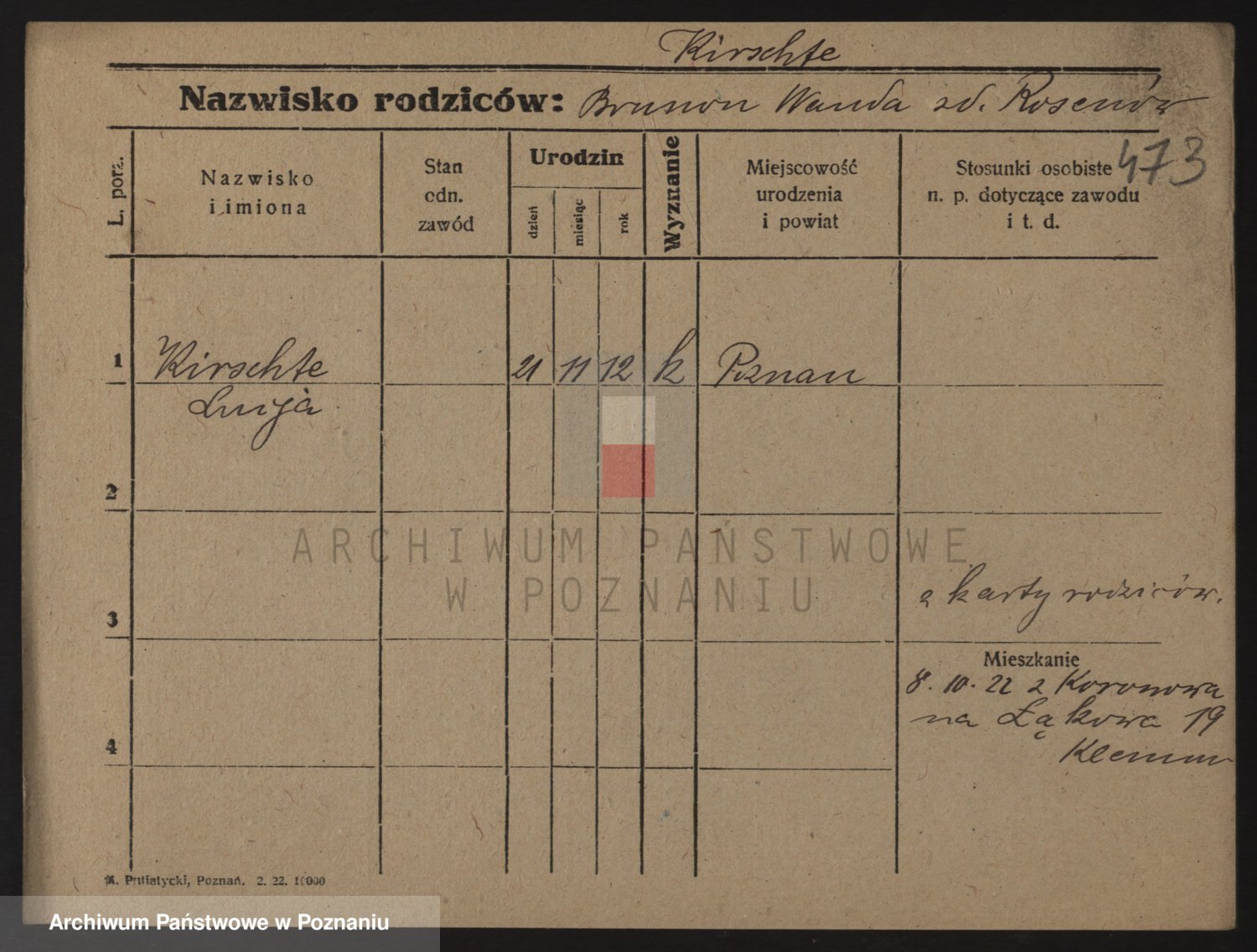 Podgląd karty osobowej dostępny jest po kliknięciu na nazwisko lub ikonkę karty. Można dokonywać powiększenia (ikony na górze) lub przechodzić między kolejnymi skanami (strzałki po bokach).