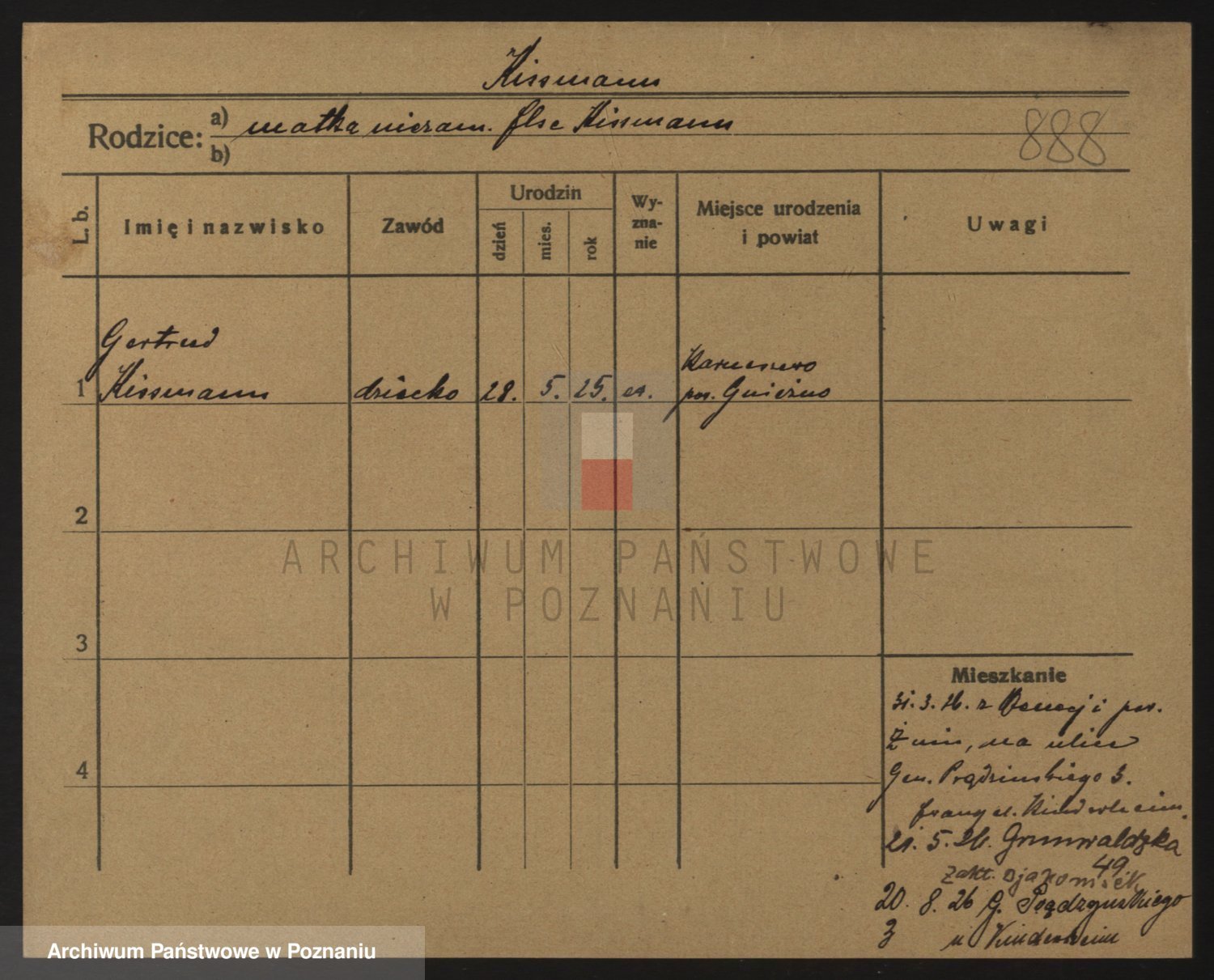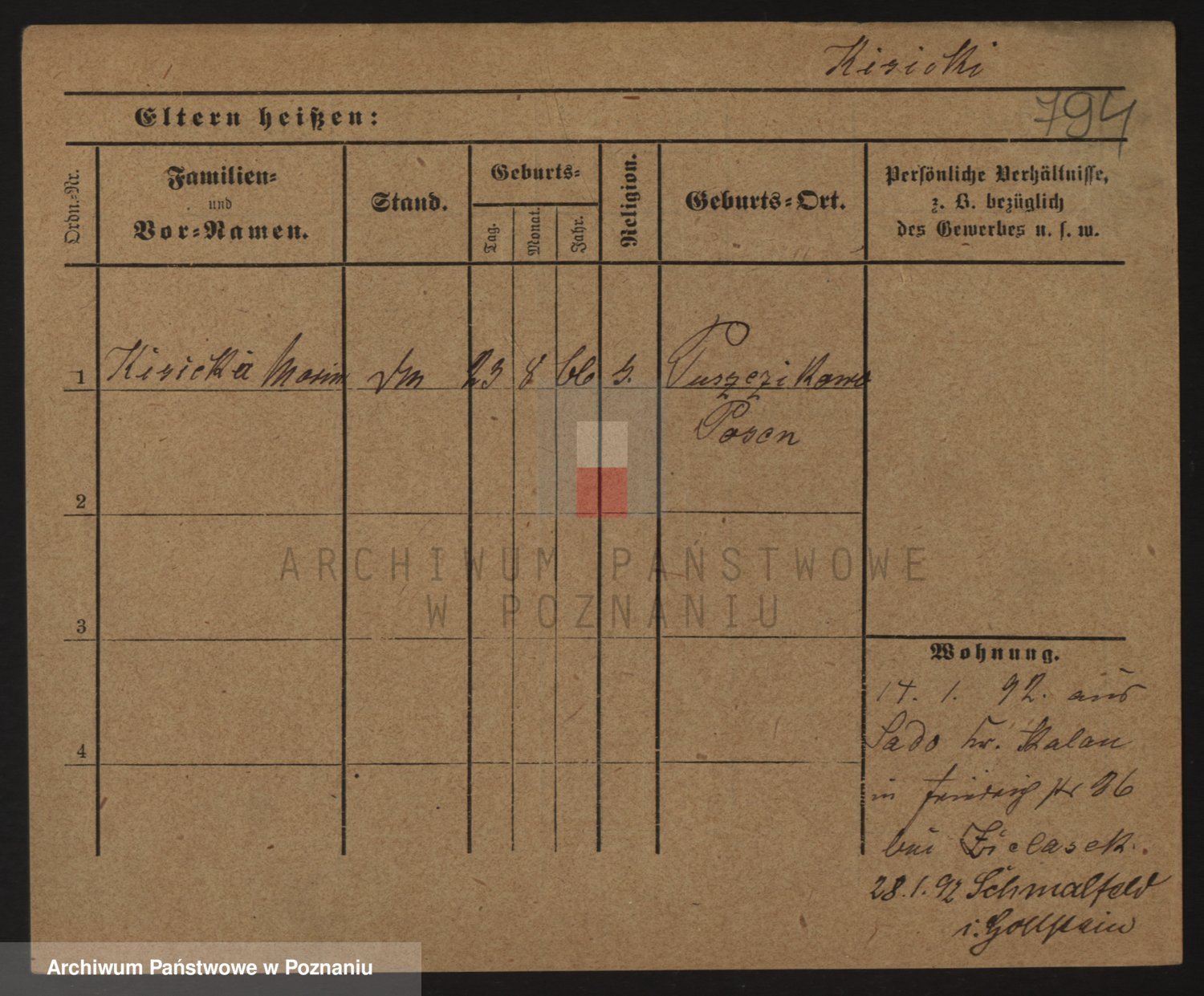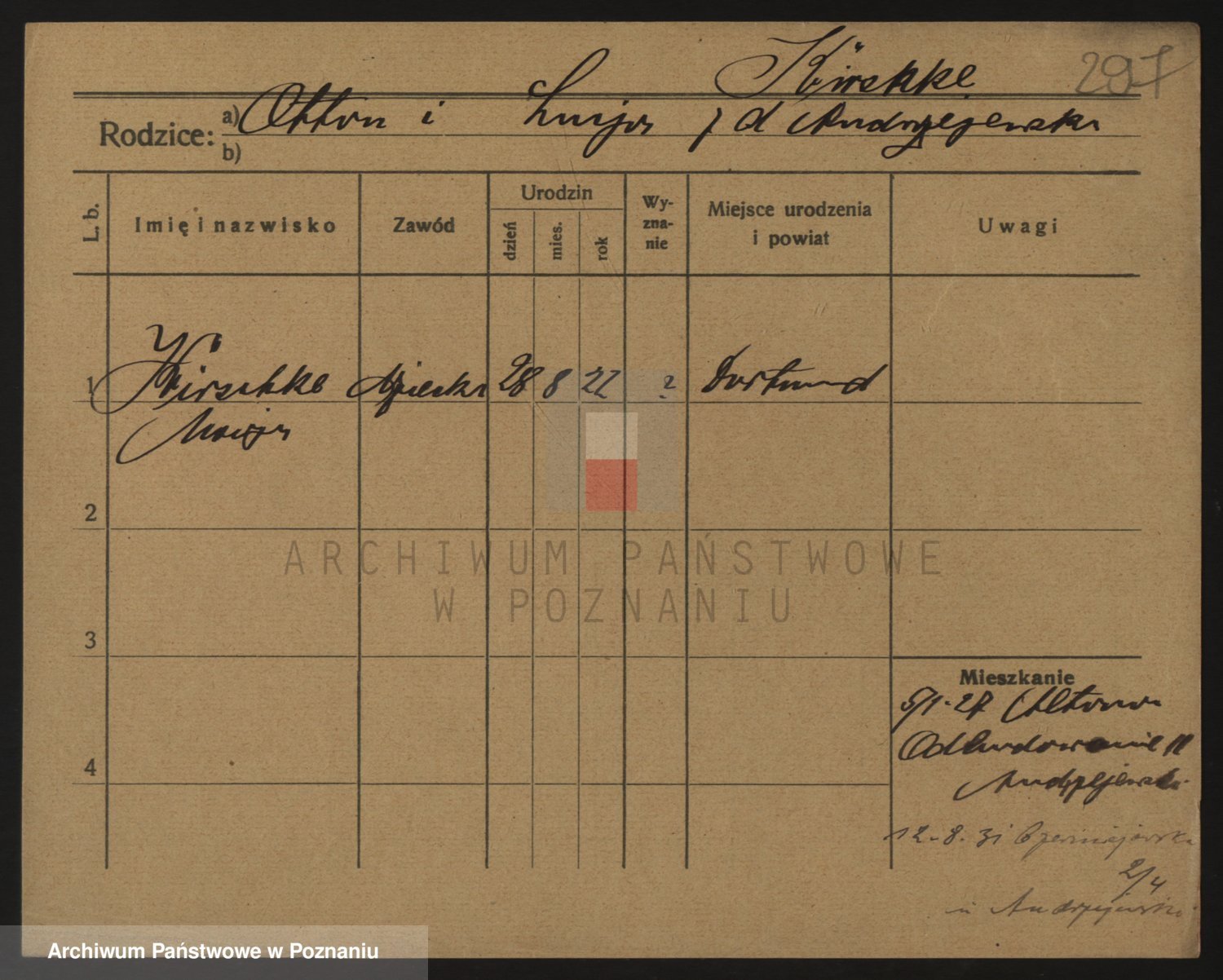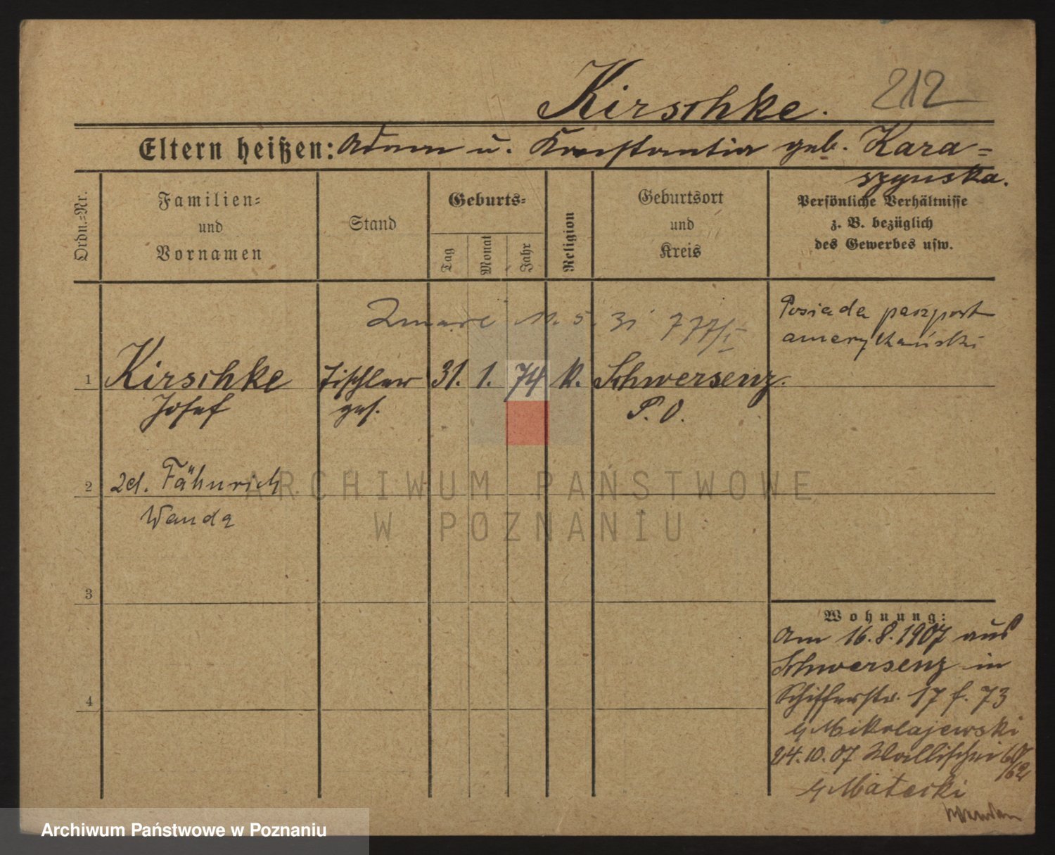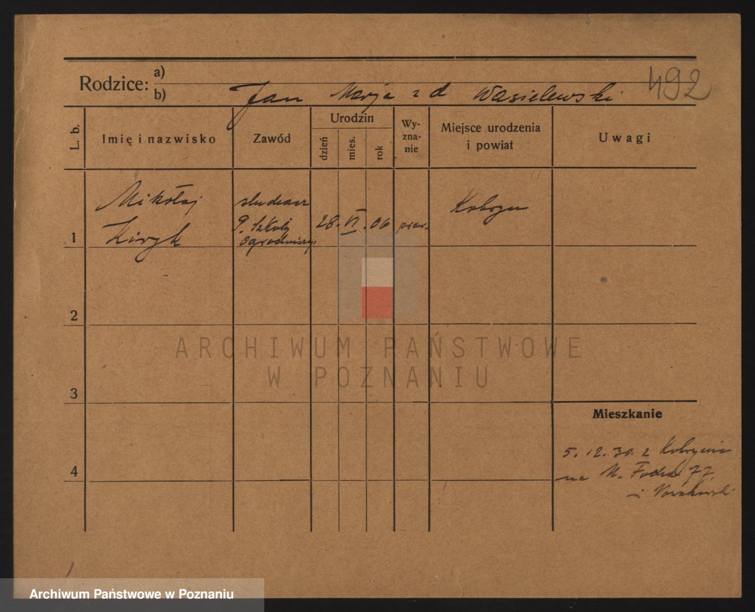 Podgląd karty osobowej dostępny jest po kliknięciu na nazwisko lub ikonkę karty. Można dokonywać powiększenia (ikony na górze) lub przechodzić między kolejnymi skanami (strzałki po bokach).