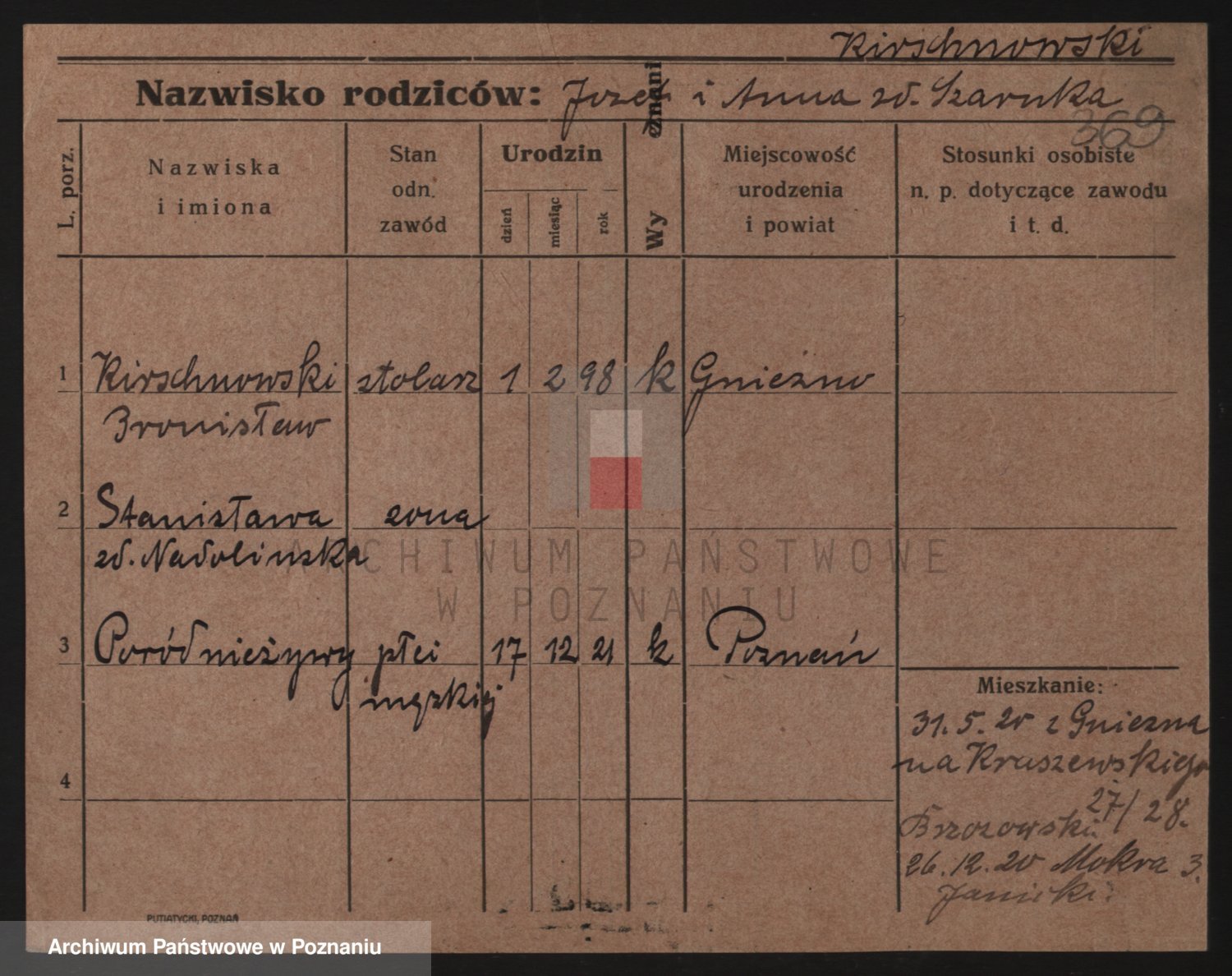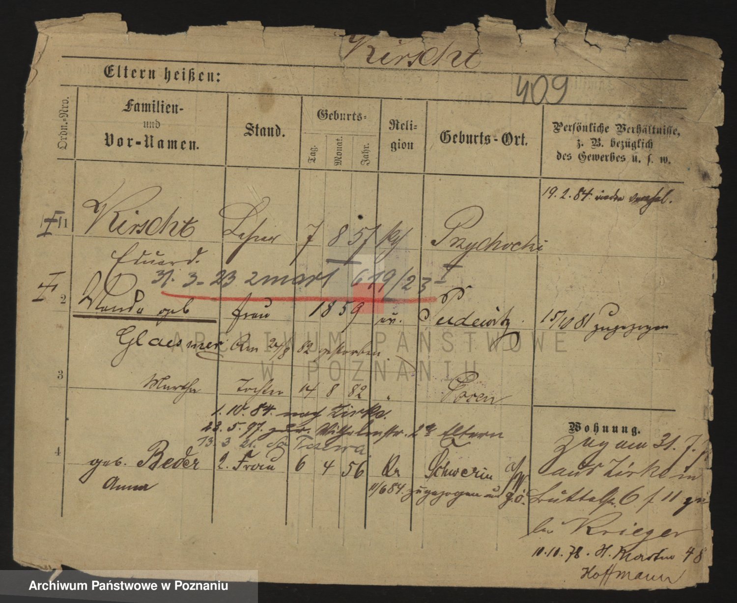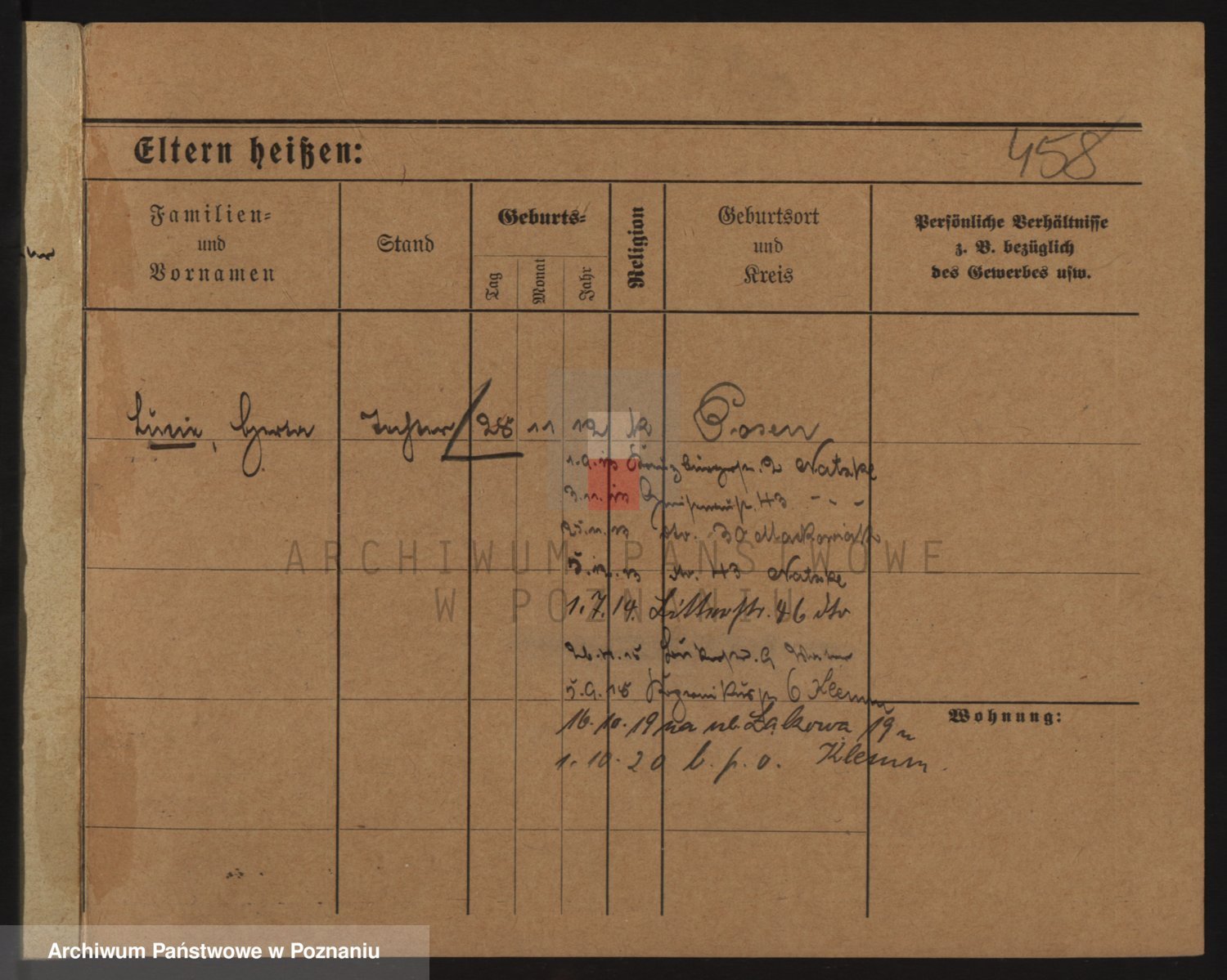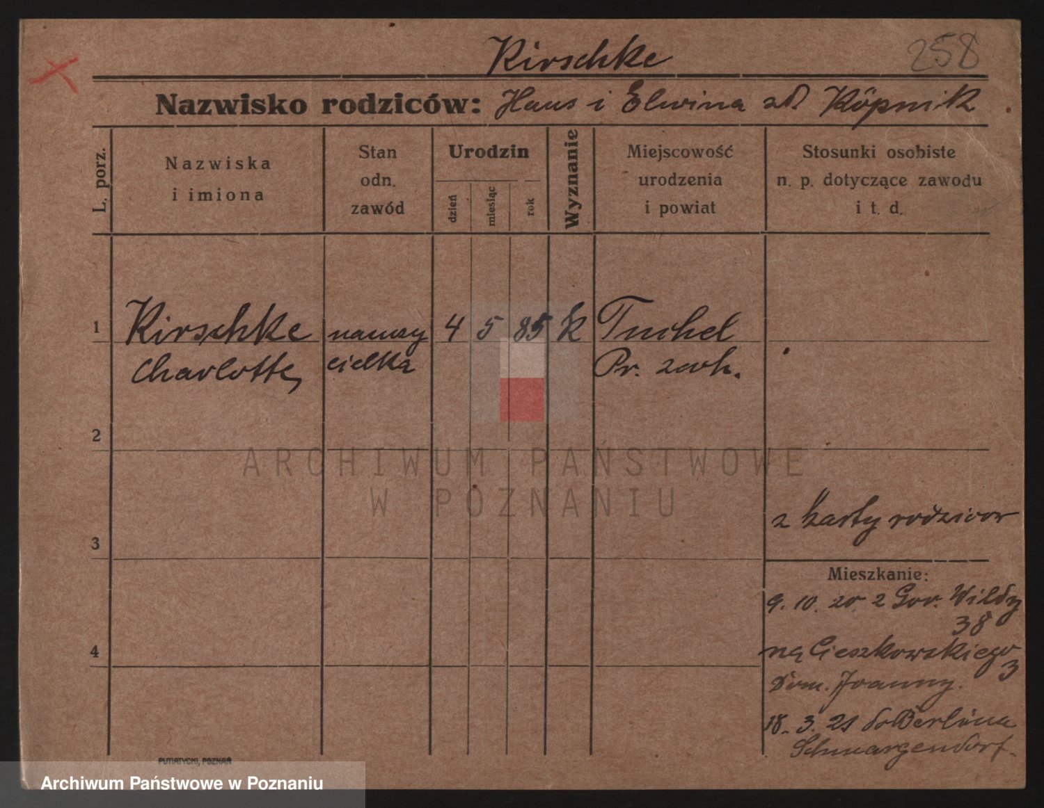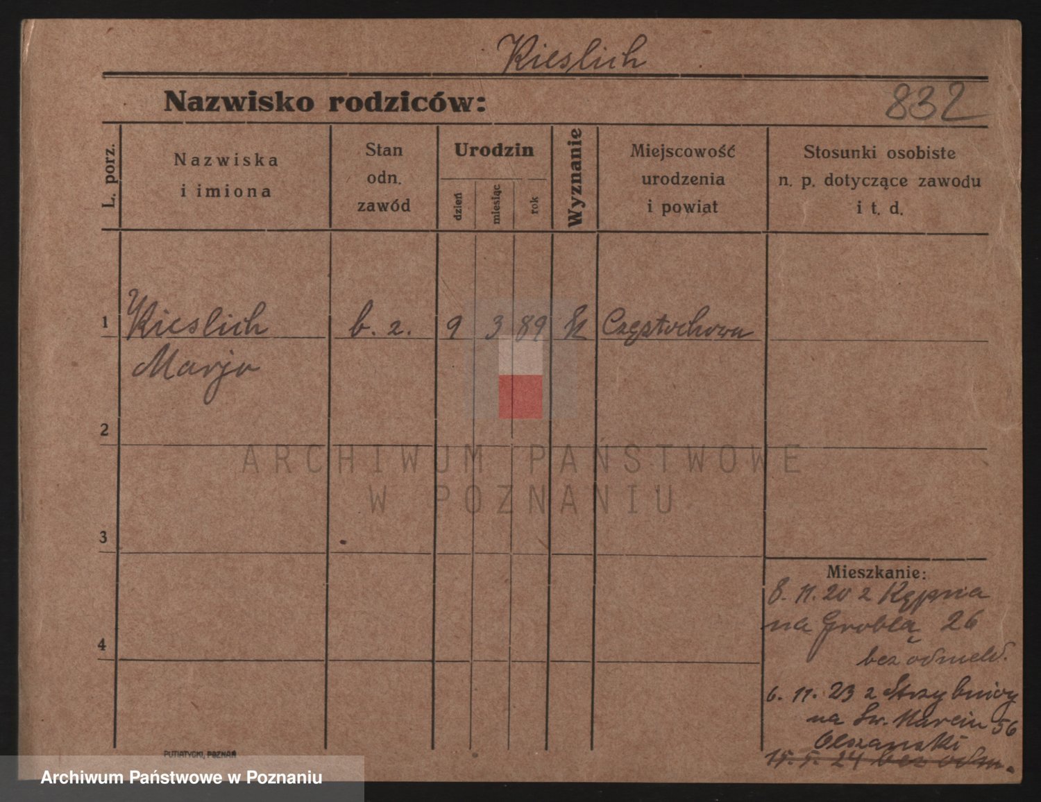 Podgląd karty osobowej dostępny jest po kliknięciu na nazwisko lub ikonkę karty. Można dokonywać powiększenia (ikony na górze) lub przechodzić między kolejnymi skanami (strzałki po bokach).