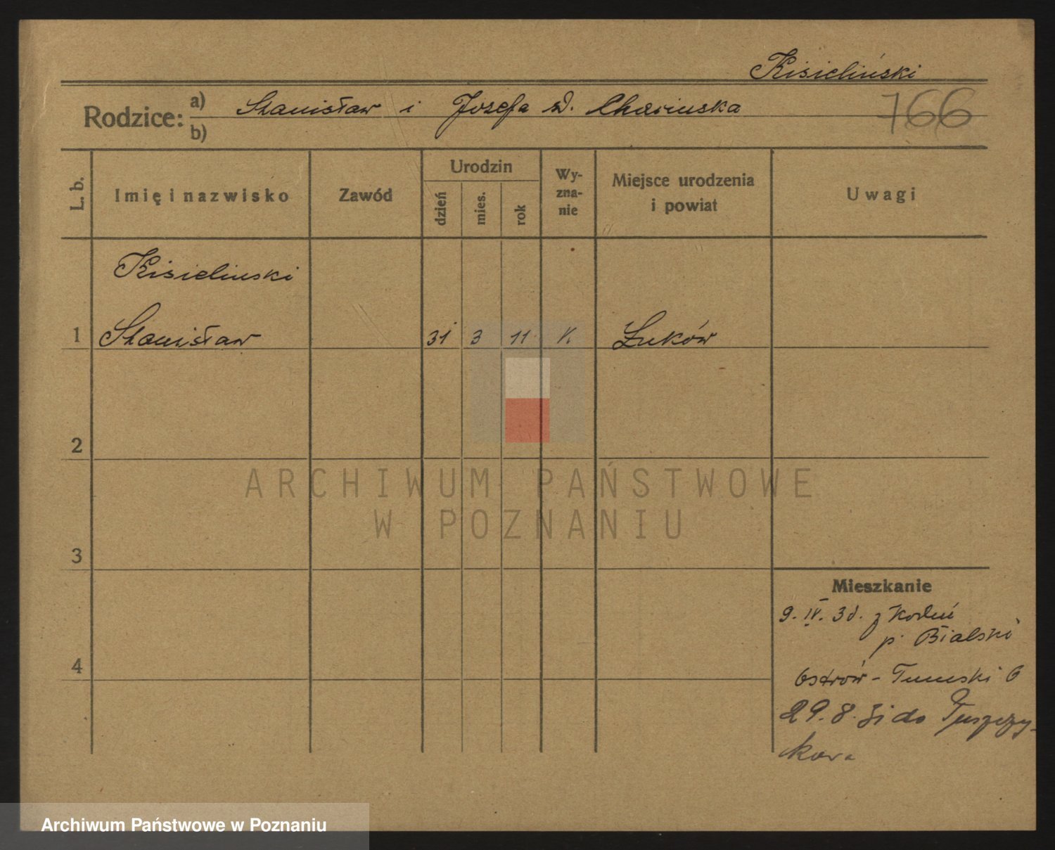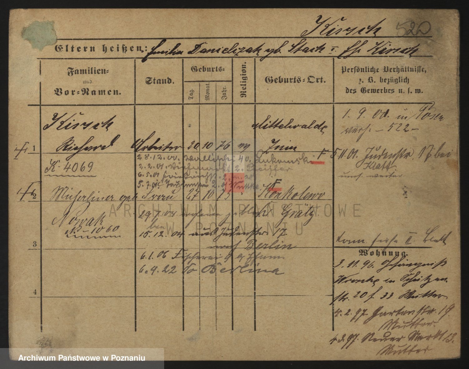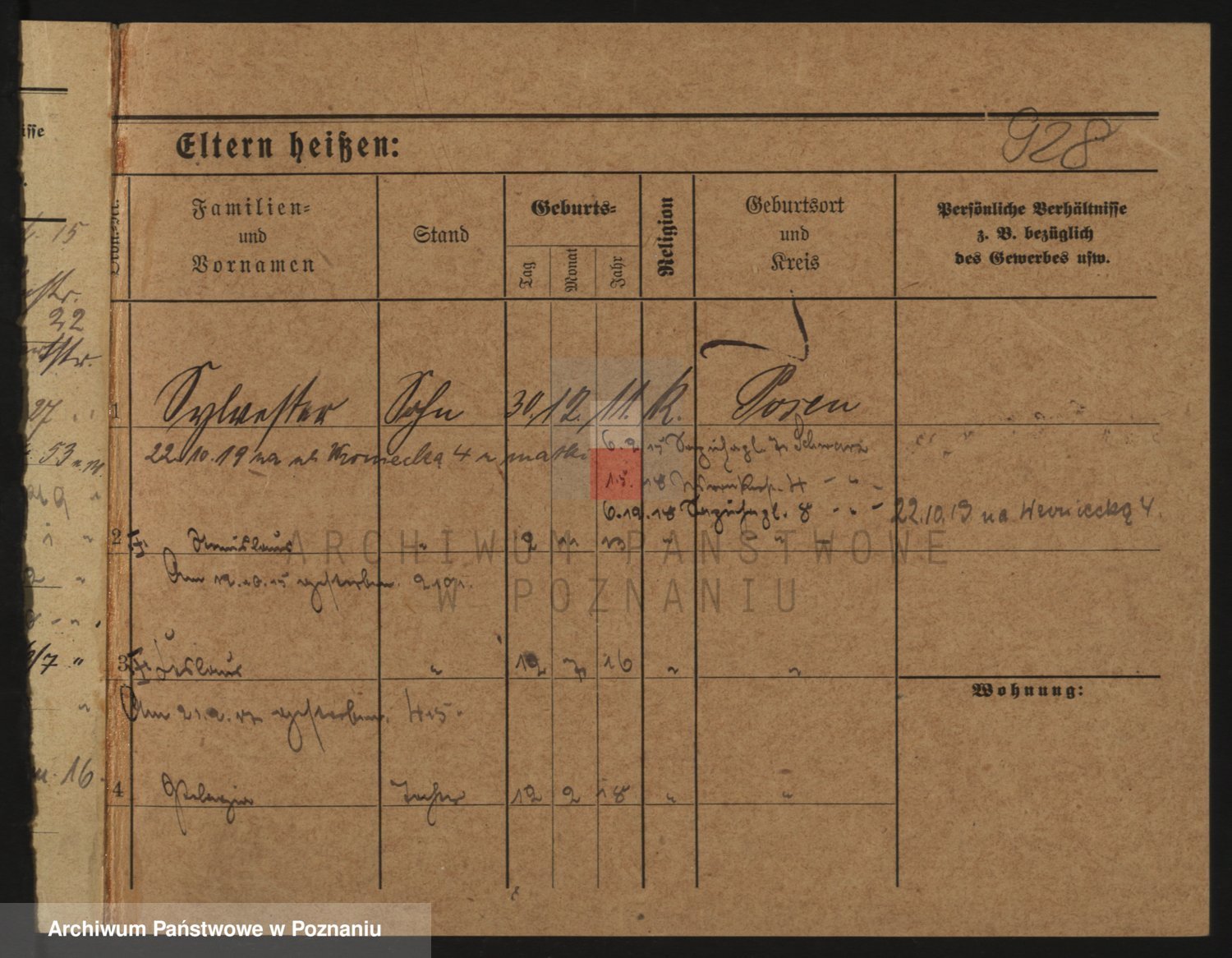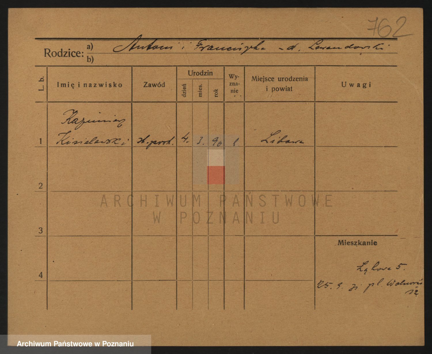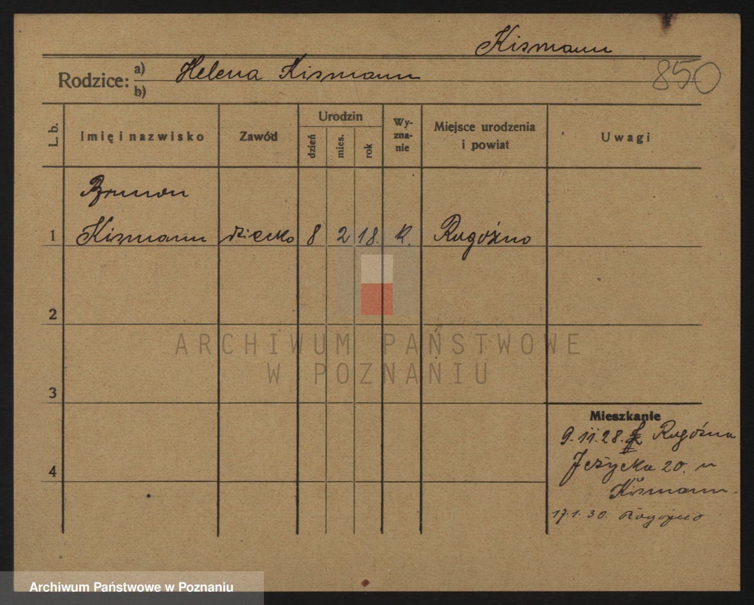 Podgląd karty osobowej dostępny jest po kliknięciu na nazwisko lub ikonkę karty. Można dokonywać powiększenia (ikony na górze) lub przechodzić między kolejnymi skanami (strzałki po bokach).