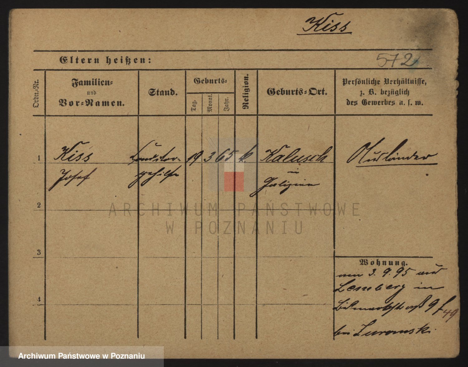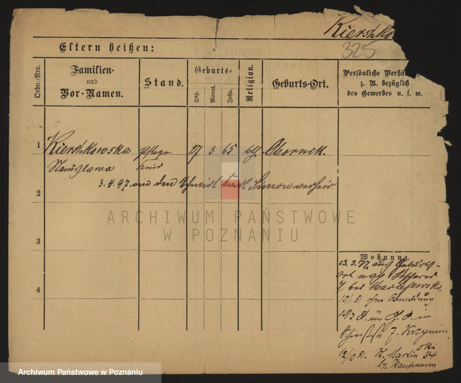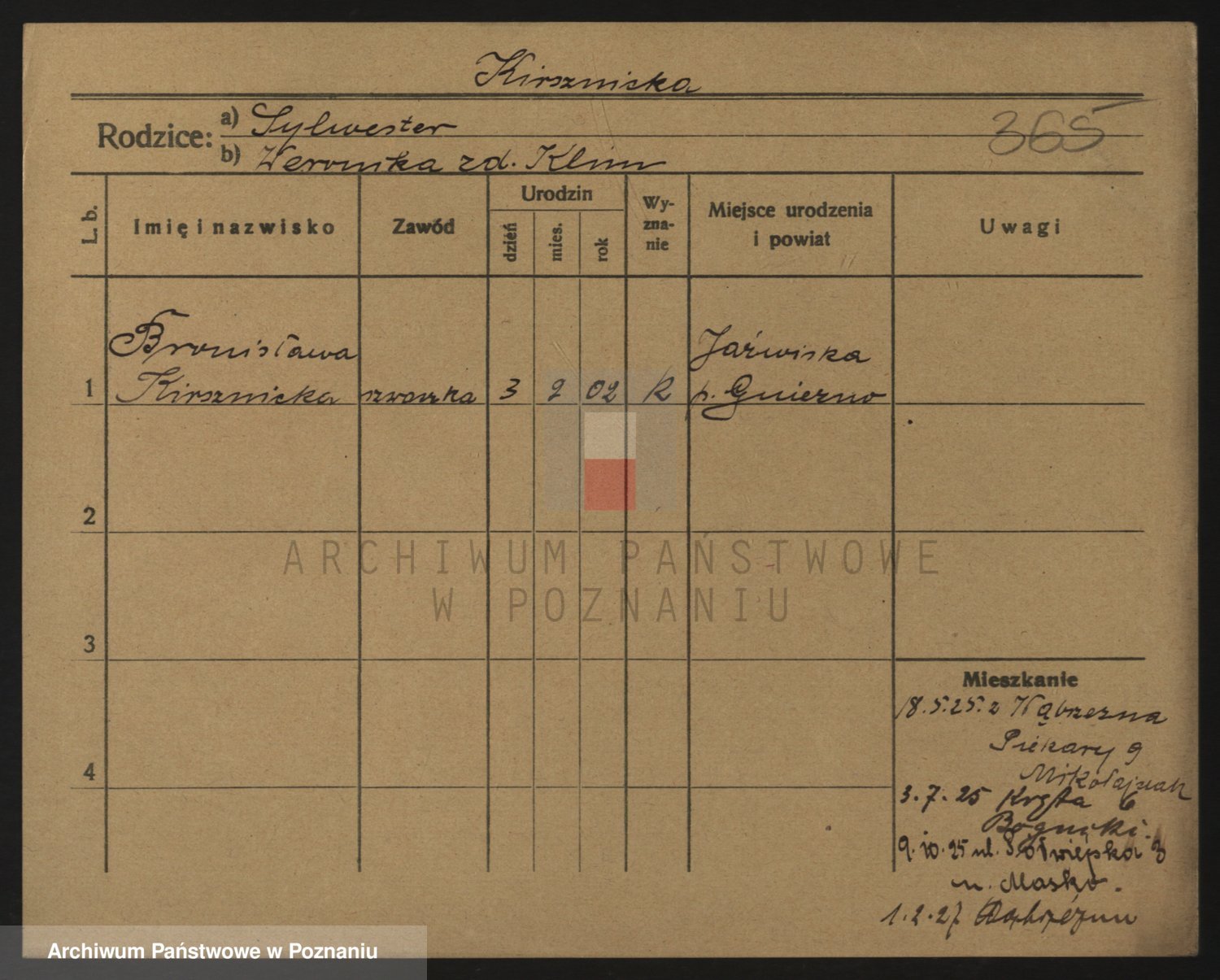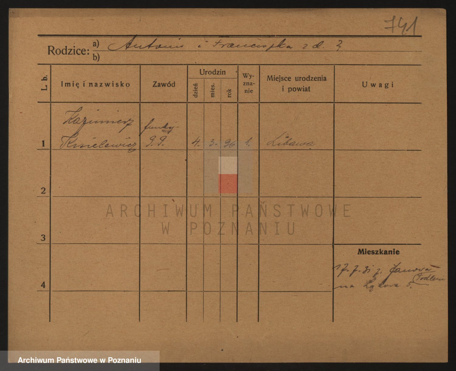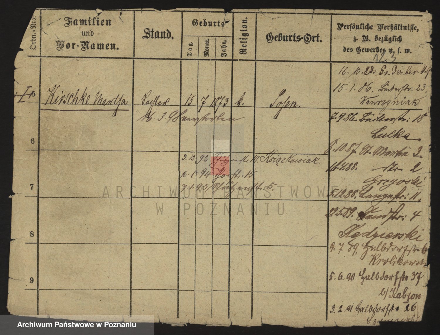 Podgląd karty osobowej dostępny jest po kliknięciu na nazwisko lub ikonkę karty. Można dokonywać powiększenia (ikony na górze) lub przechodzić między kolejnymi skanami (strzałki po bokach).