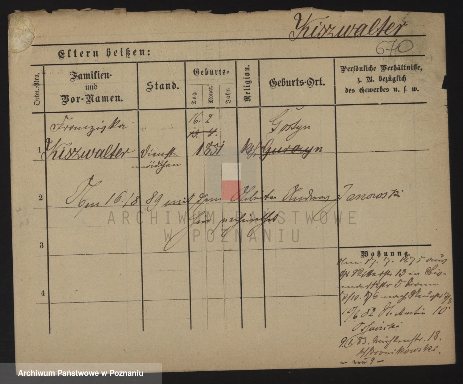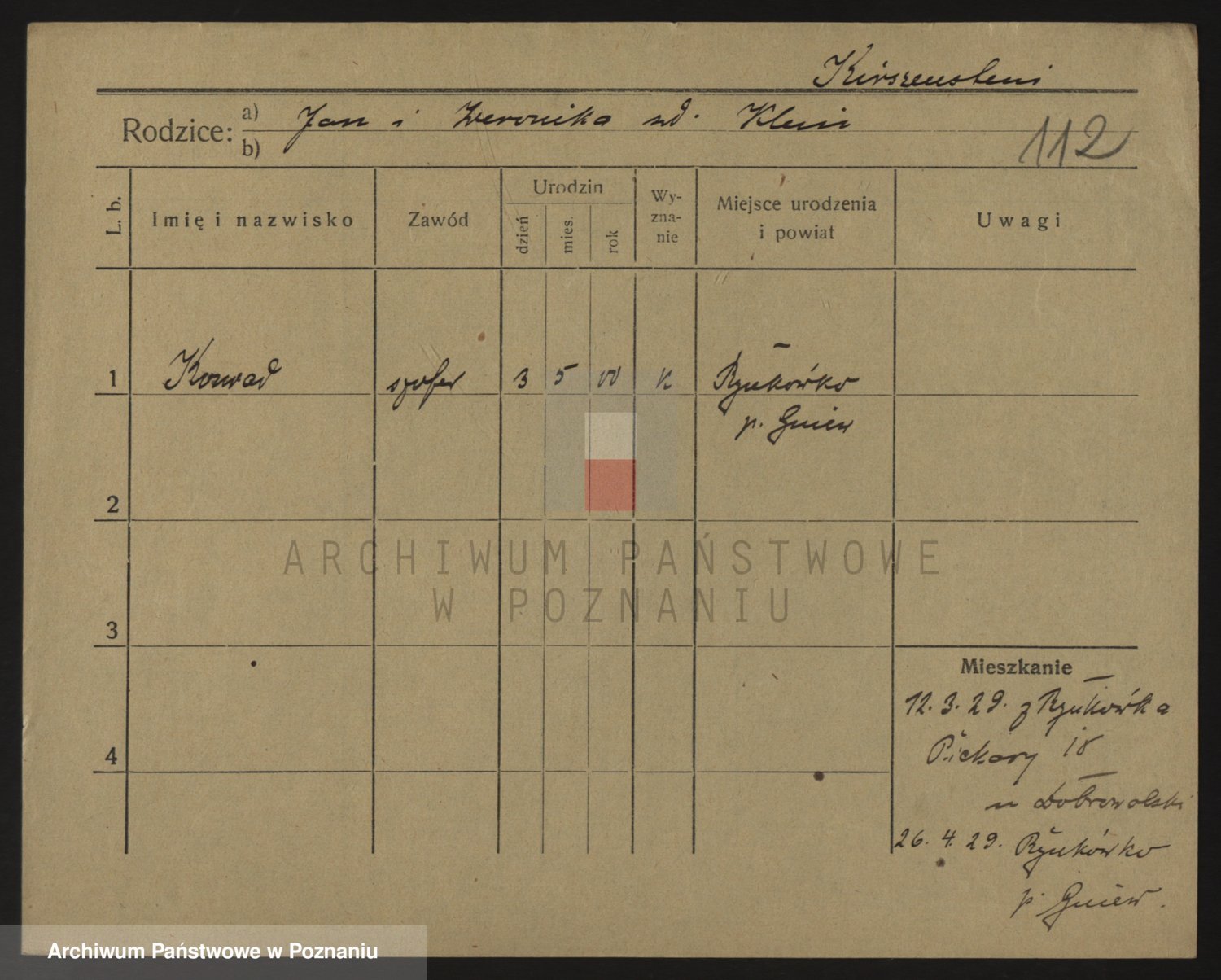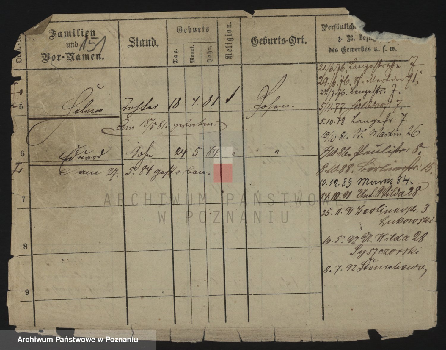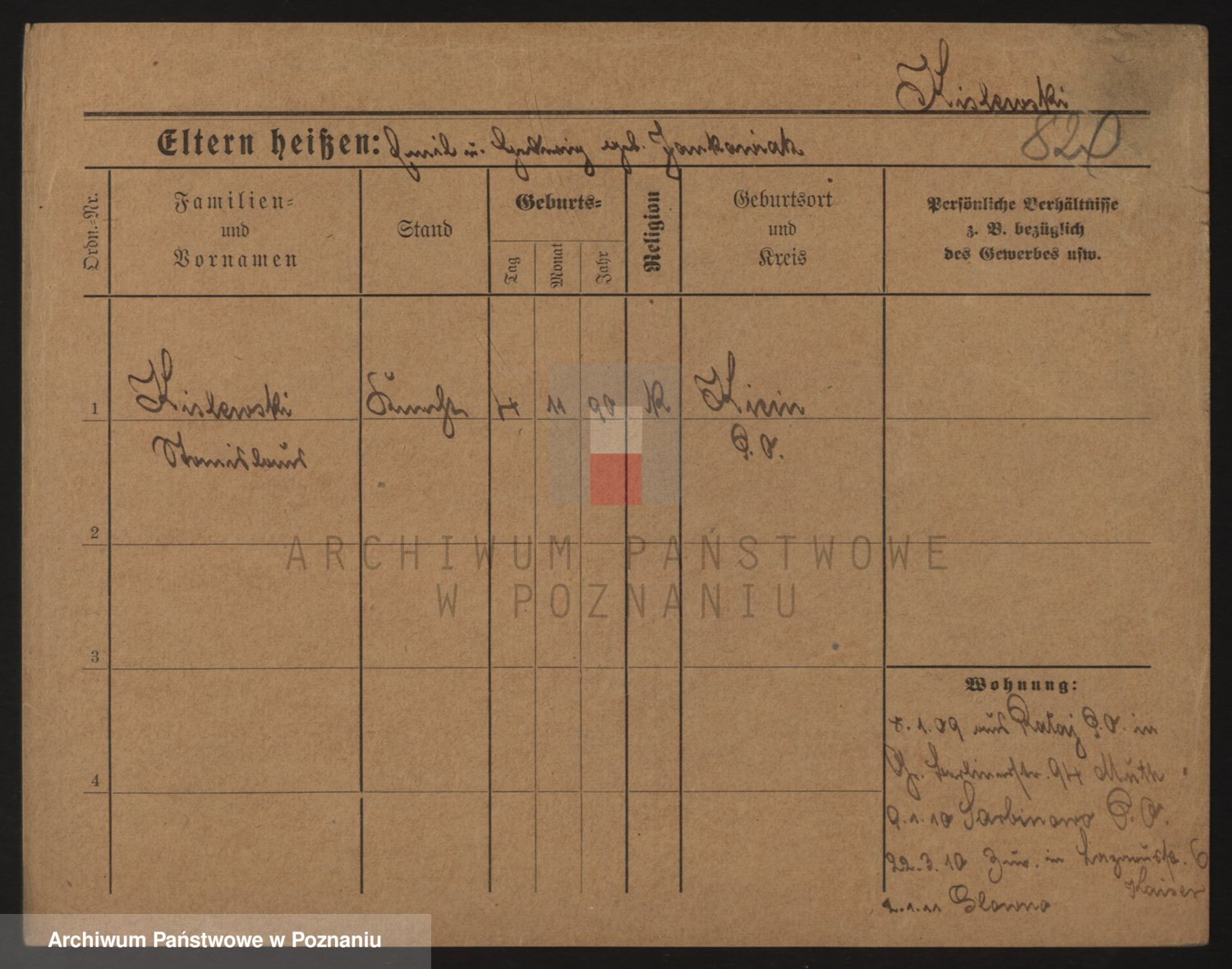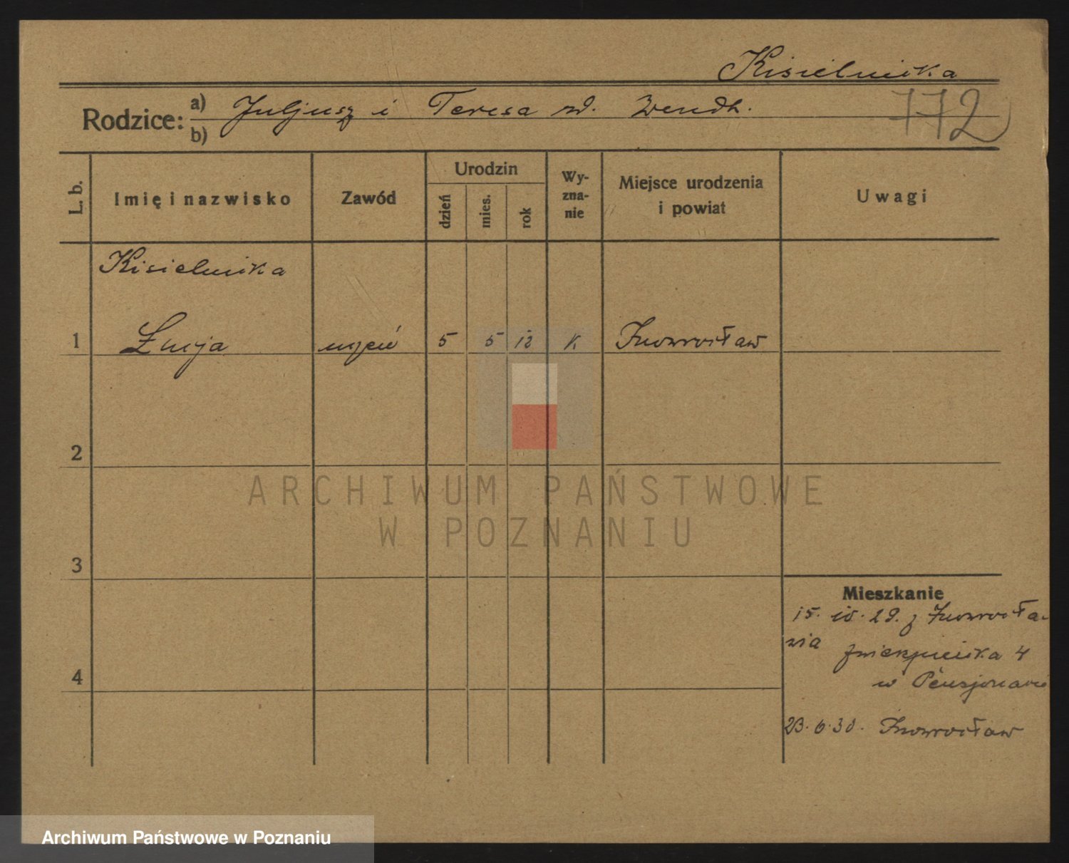 Podgląd karty osobowej dostępny jest po kliknięciu na nazwisko lub ikonkę karty. Można dokonywać powiększenia (ikony na górze) lub przechodzić między kolejnymi skanami (strzałki po bokach).