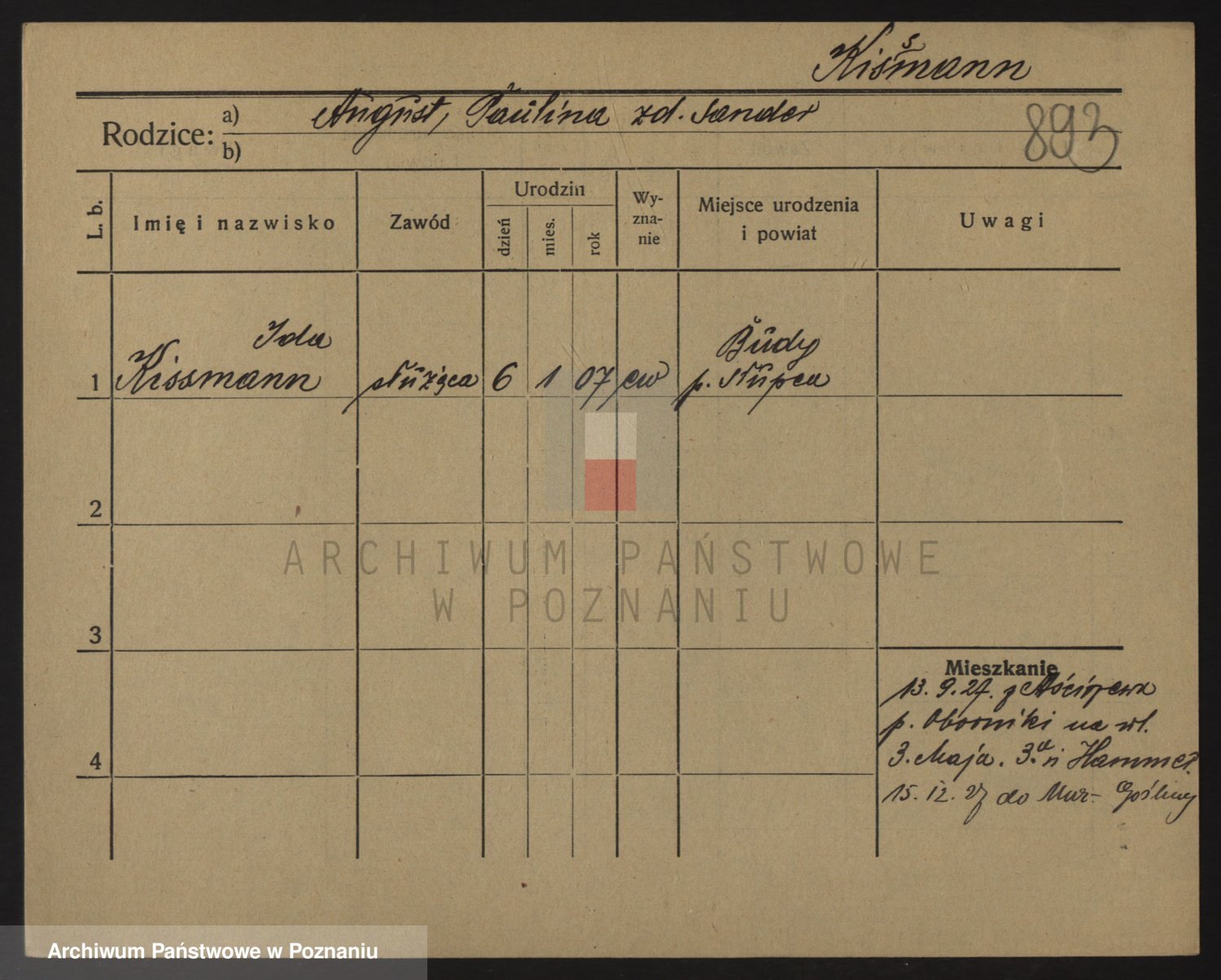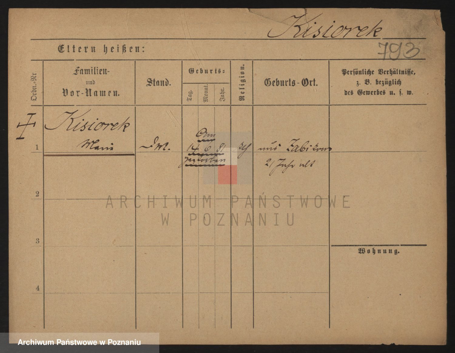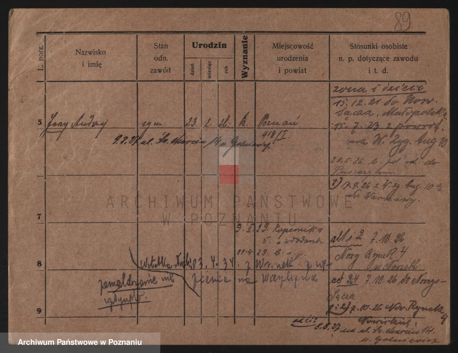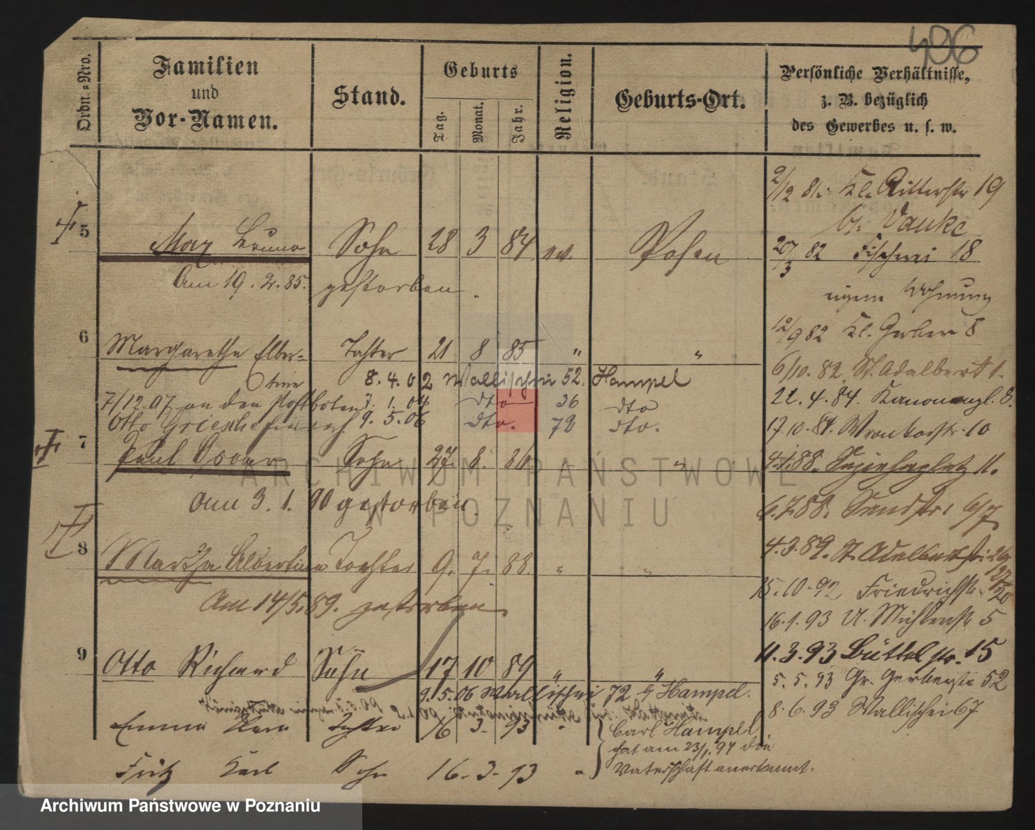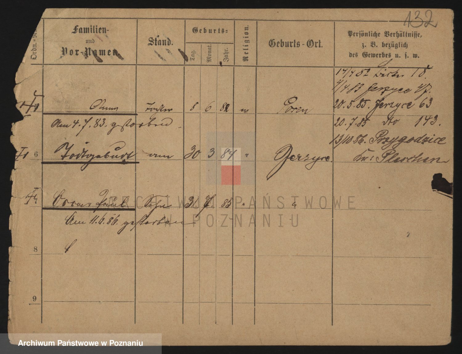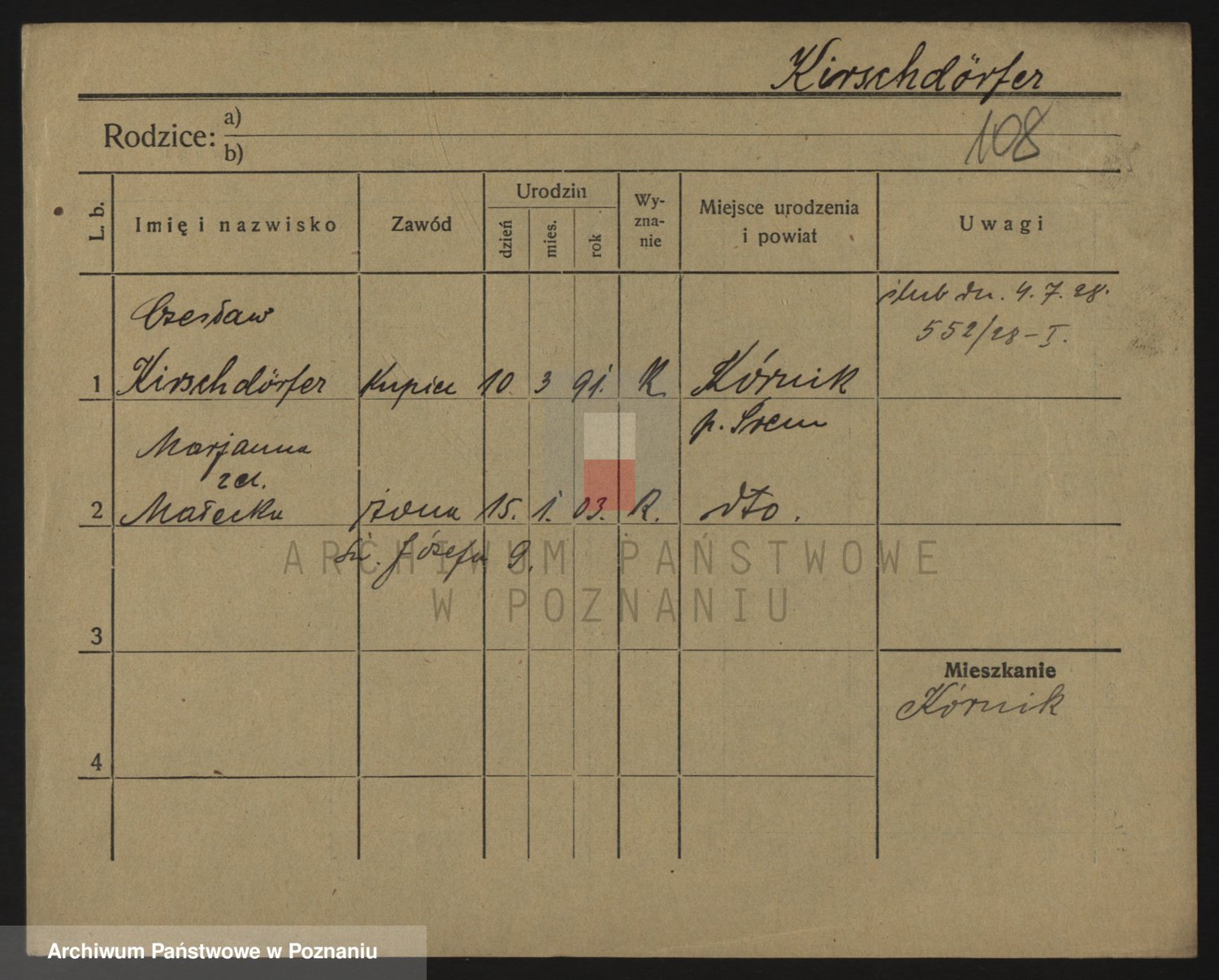 Podgląd karty osobowej dostępny jest po kliknięciu na nazwisko lub ikonkę karty. Można dokonywać powiększenia (ikony na górze) lub przechodzić między kolejnymi skanami (strzałki po bokach).