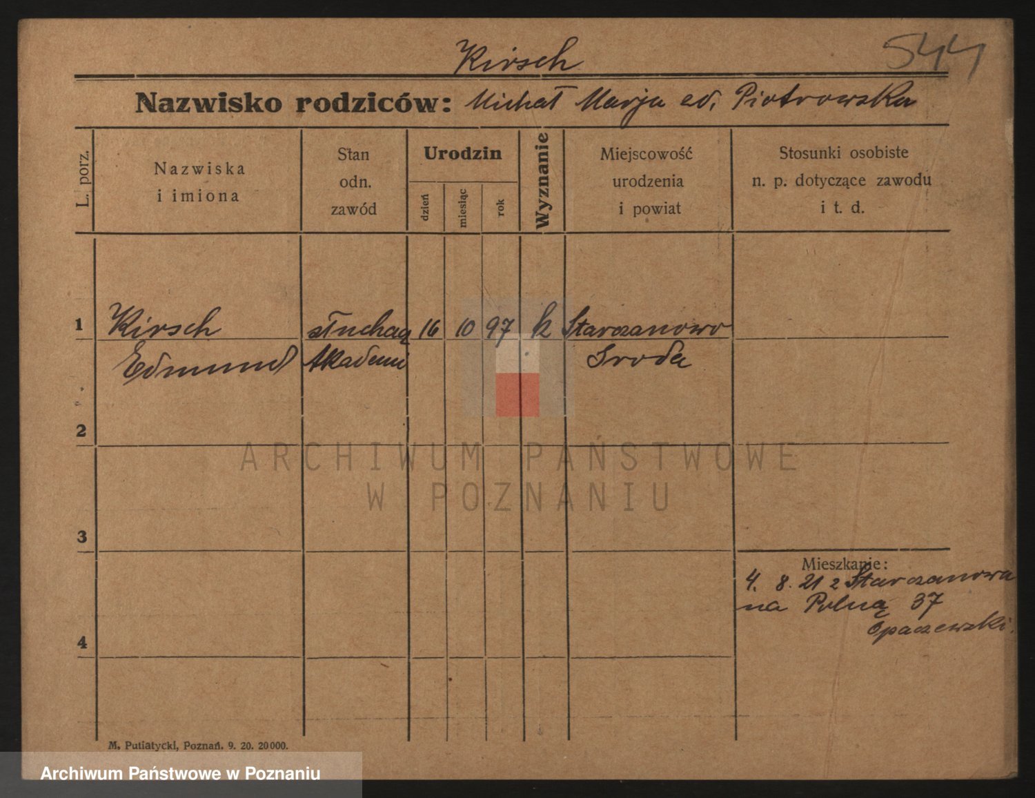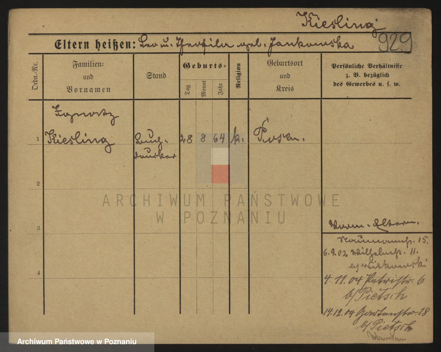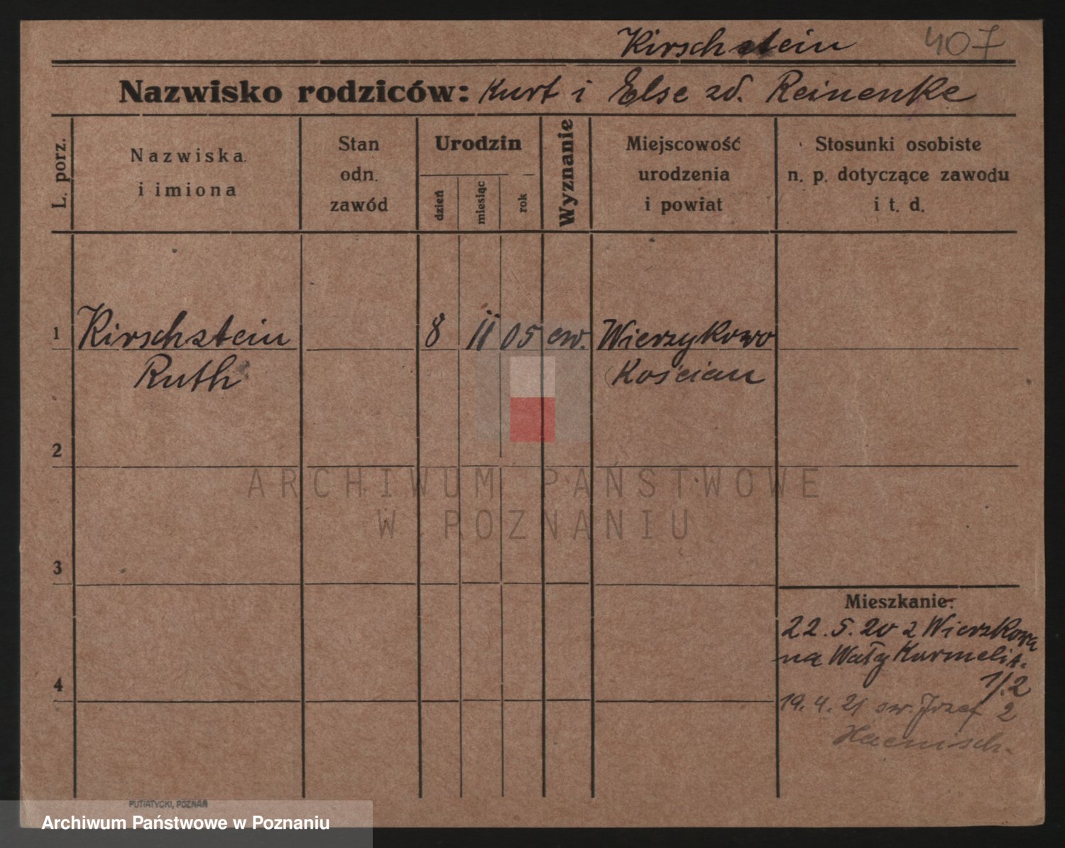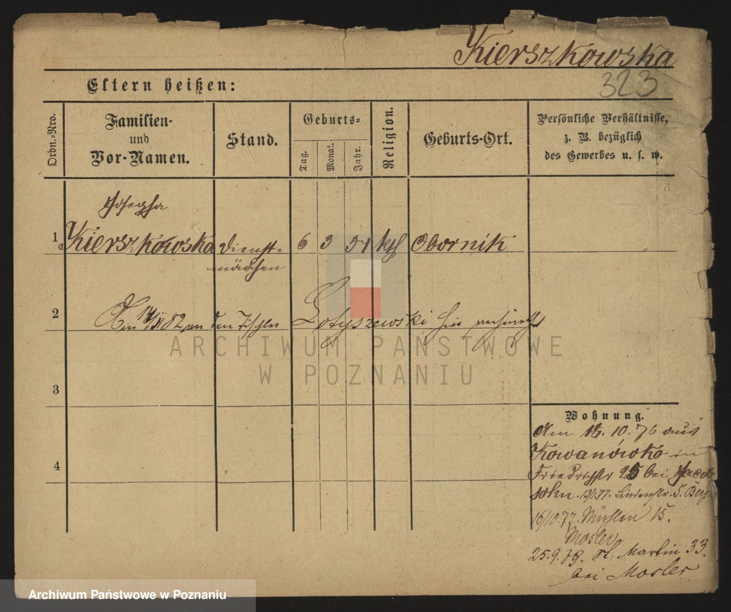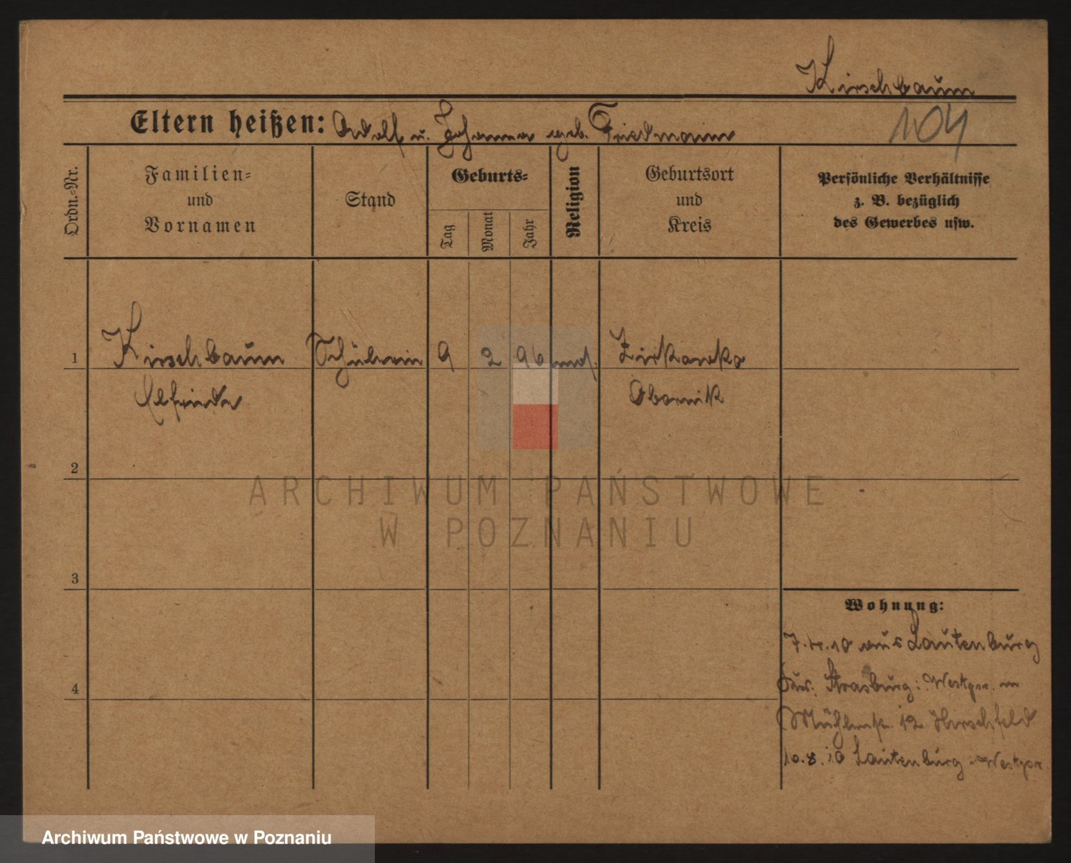 Podgląd karty osobowej dostępny jest po kliknięciu na nazwisko lub ikonkę karty. Można dokonywać powiększenia (ikony na górze) lub przechodzić między kolejnymi skanami (strzałki po bokach).