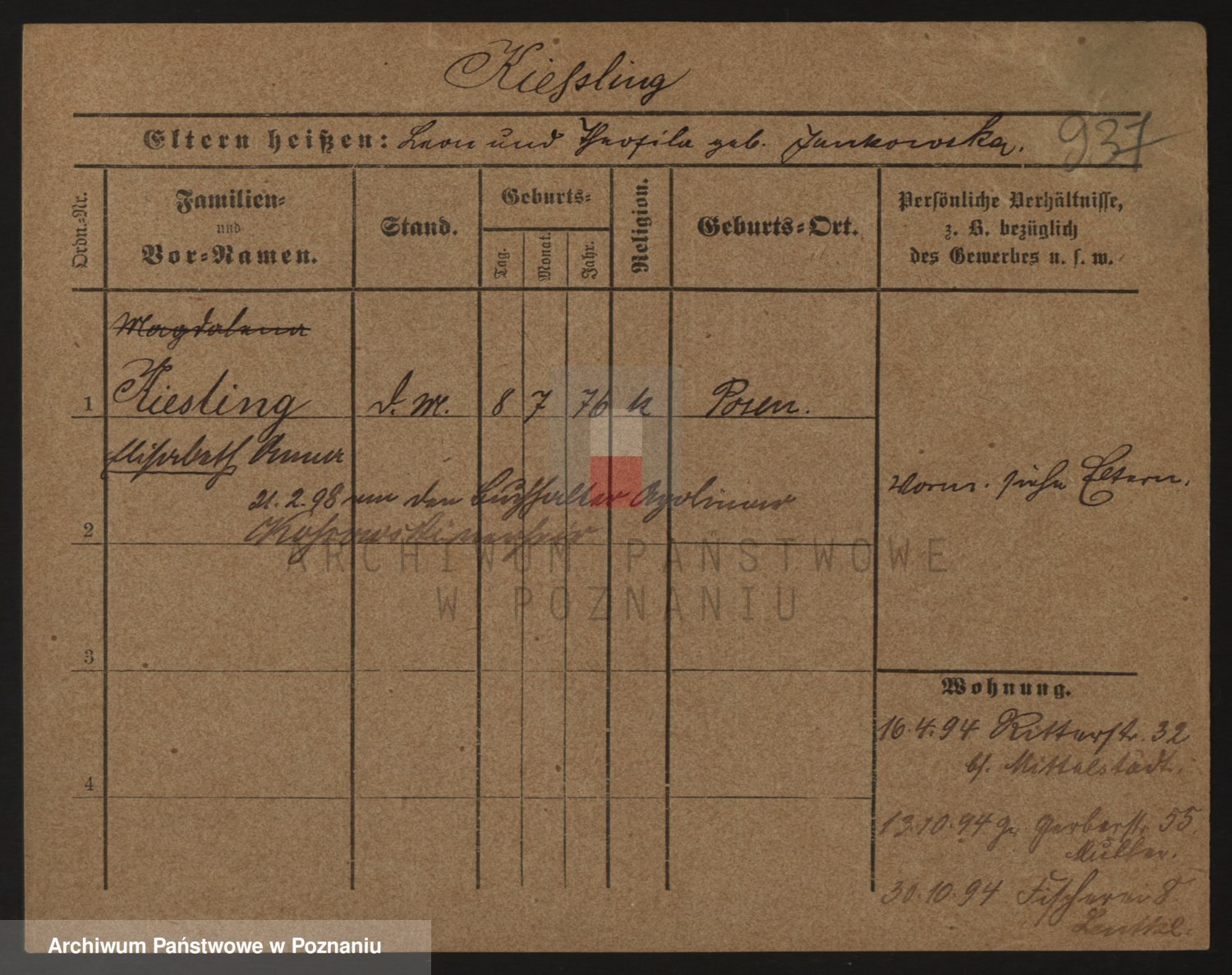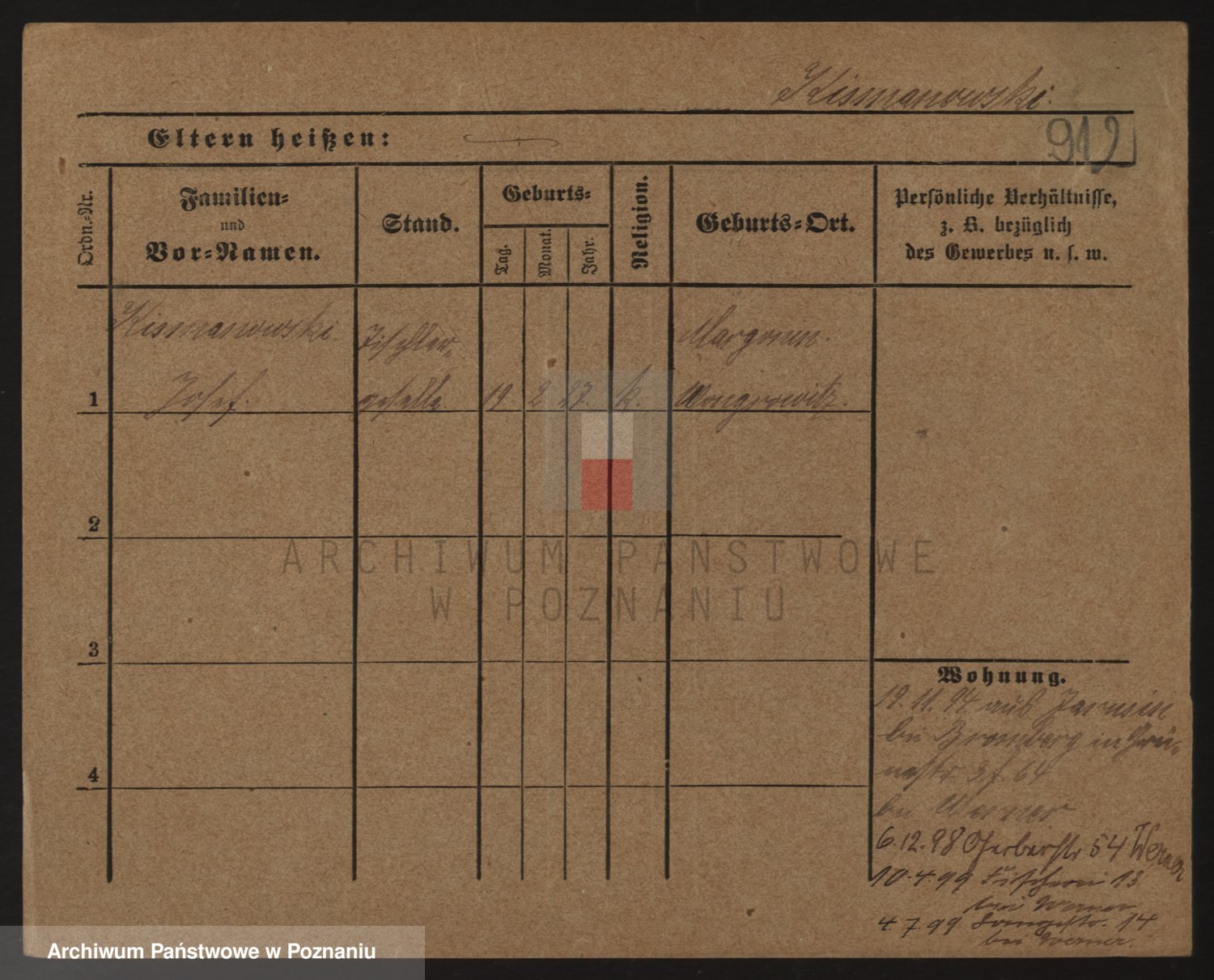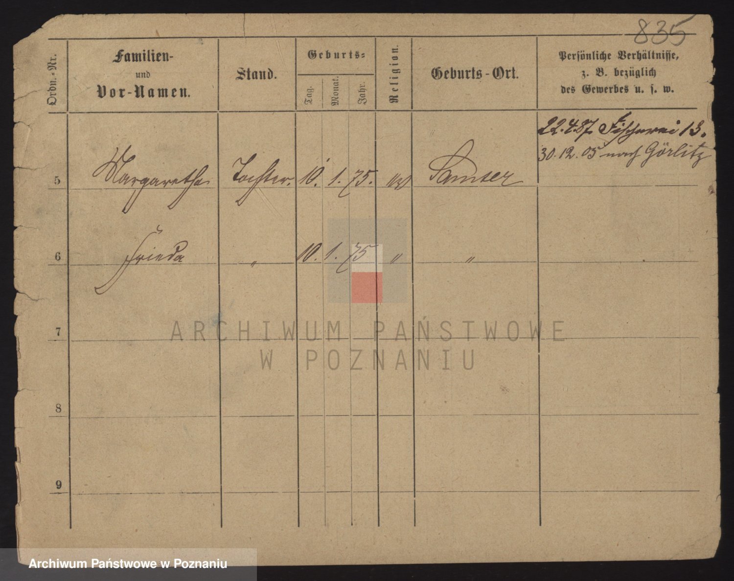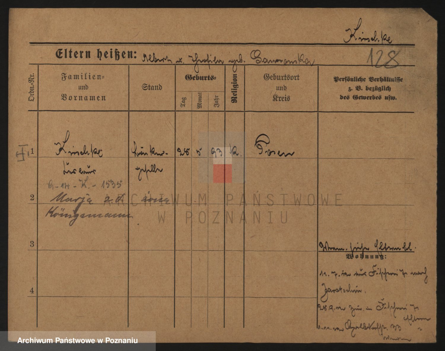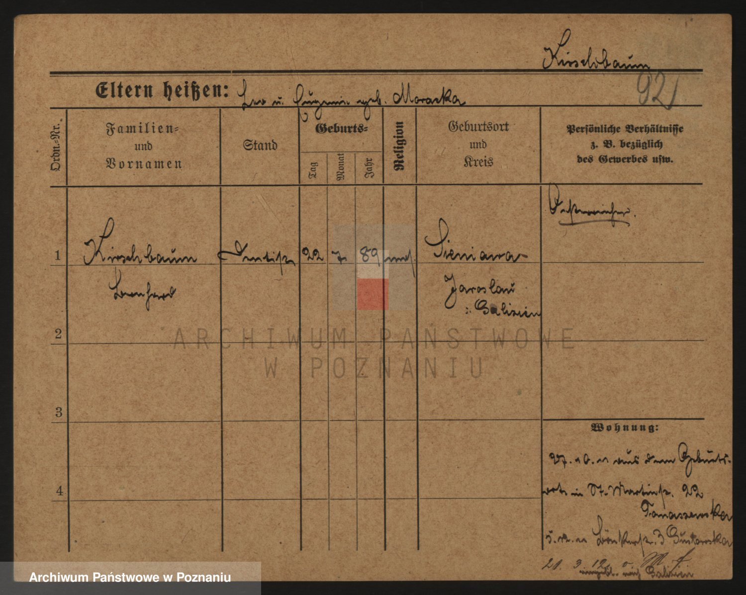 Podgląd karty osobowej dostępny jest po kliknięciu na nazwisko lub ikonkę karty. Można dokonywać powiększenia (ikony na górze) lub przechodzić między kolejnymi skanami (strzałki po bokach).