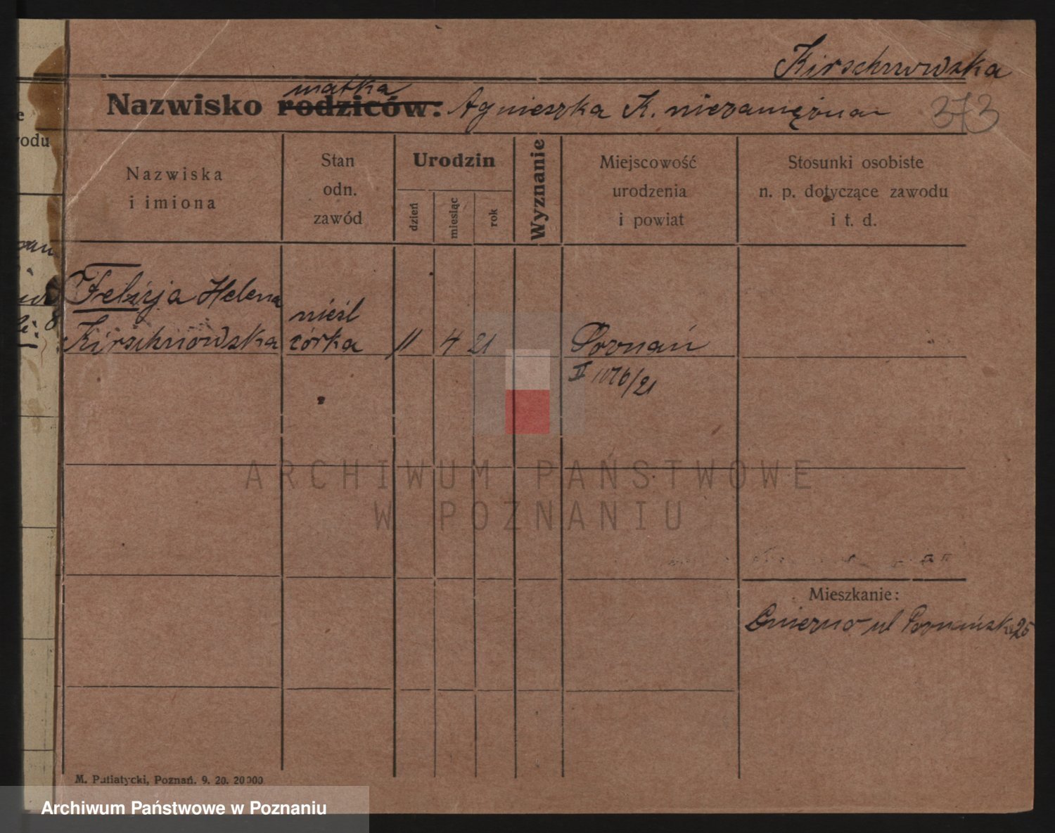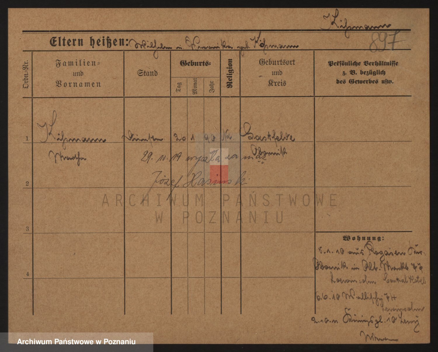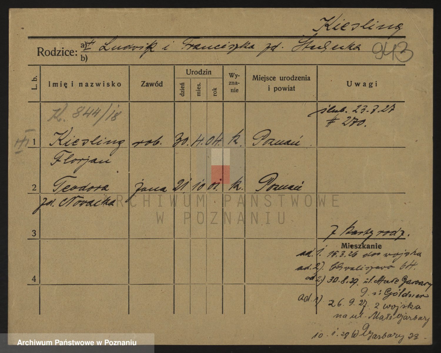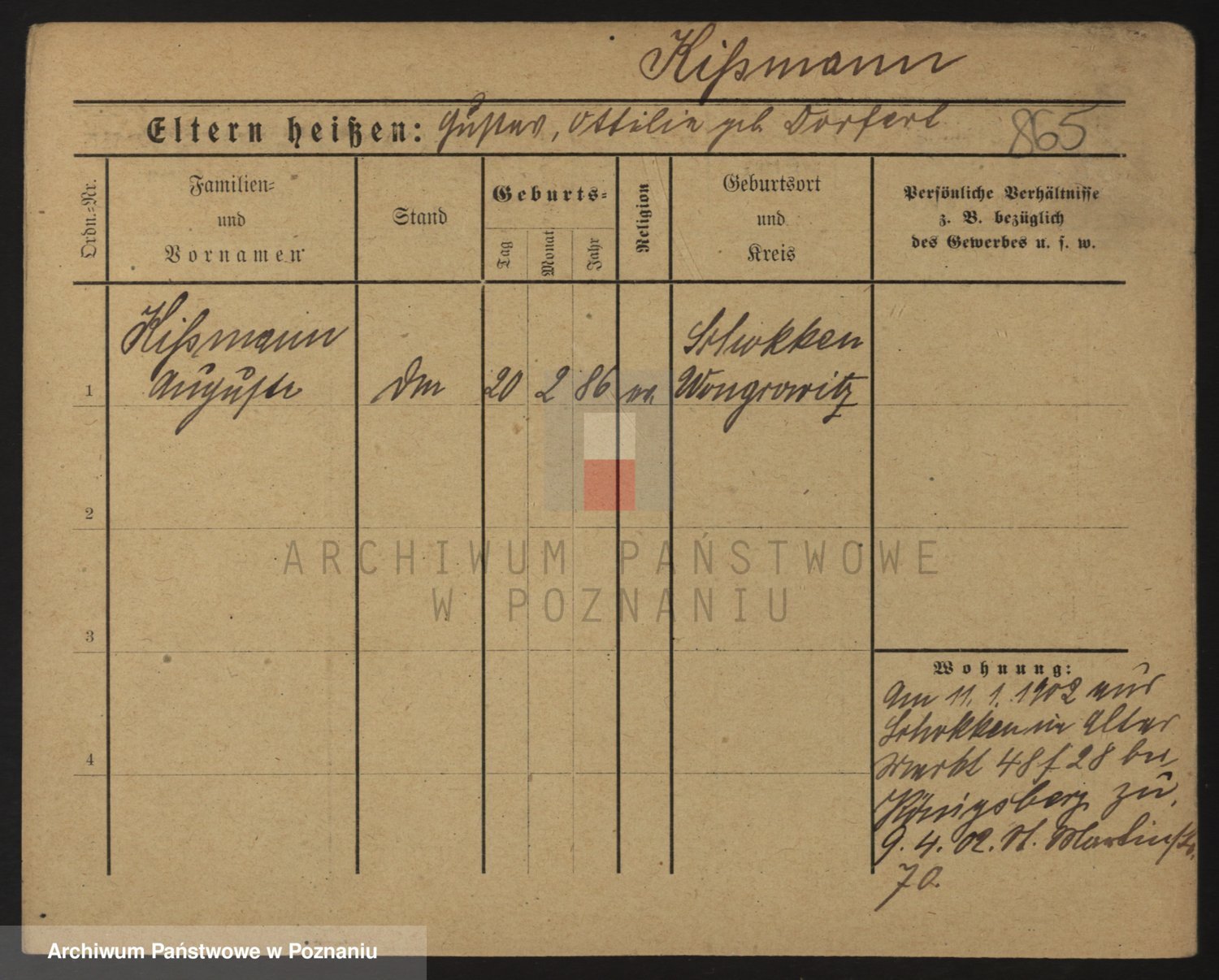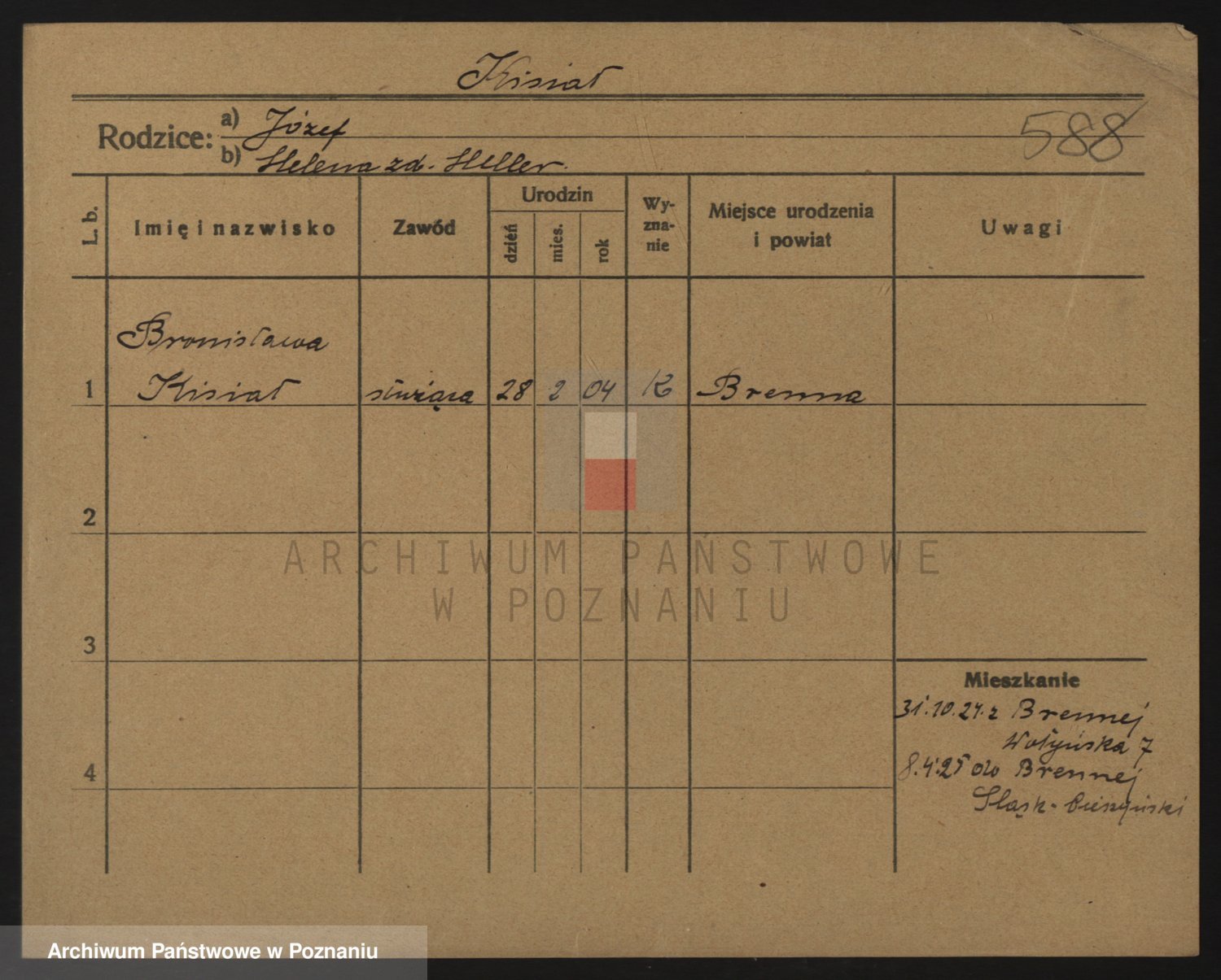 Podgląd karty osobowej dostępny jest po kliknięciu na nazwisko lub ikonkę karty. Można dokonywać powiększenia (ikony na górze) lub przechodzić między kolejnymi skanami (strzałki po bokach).