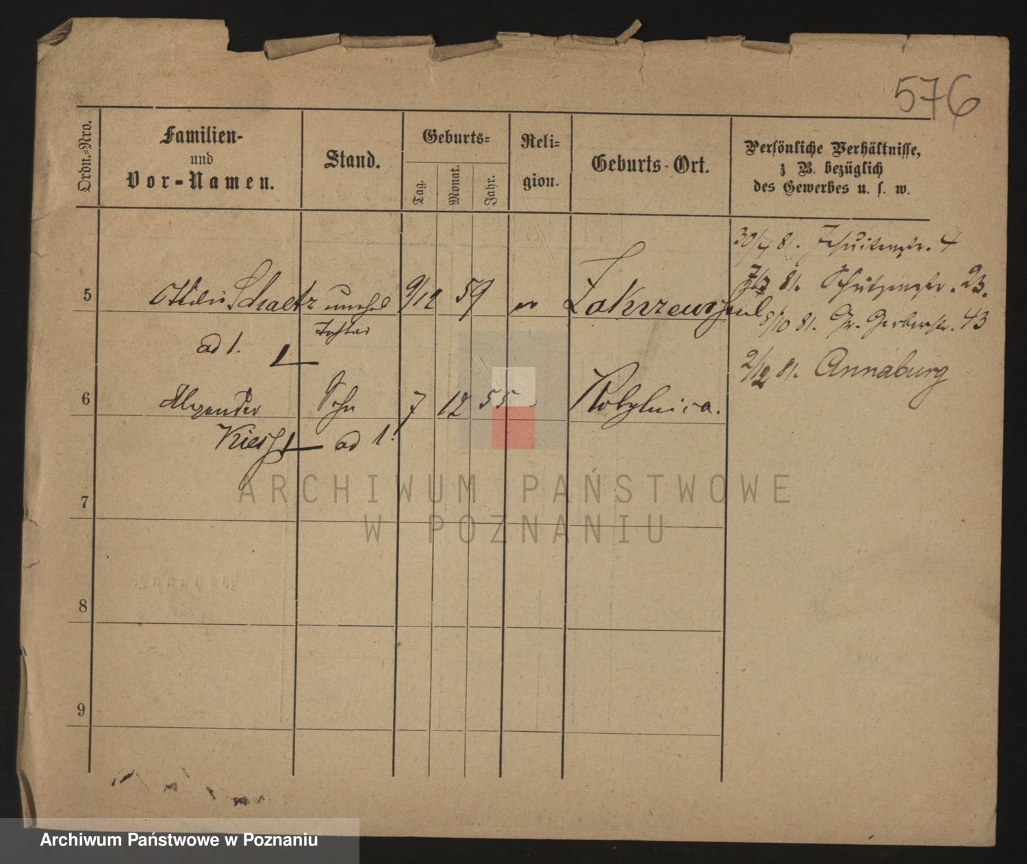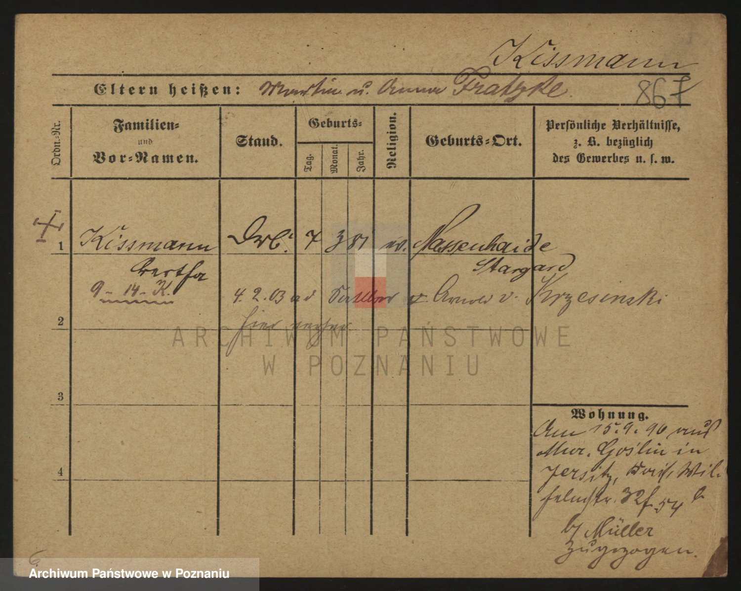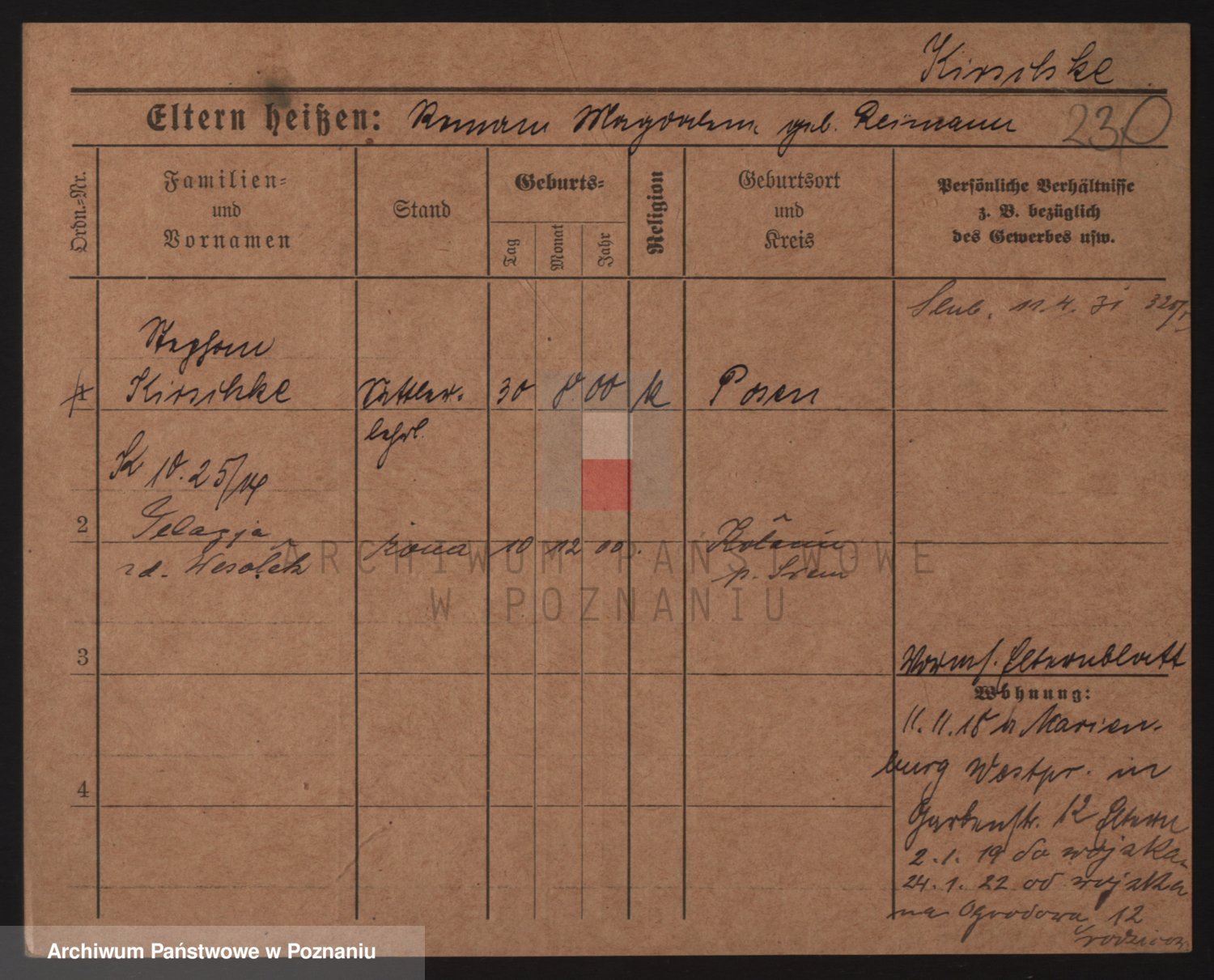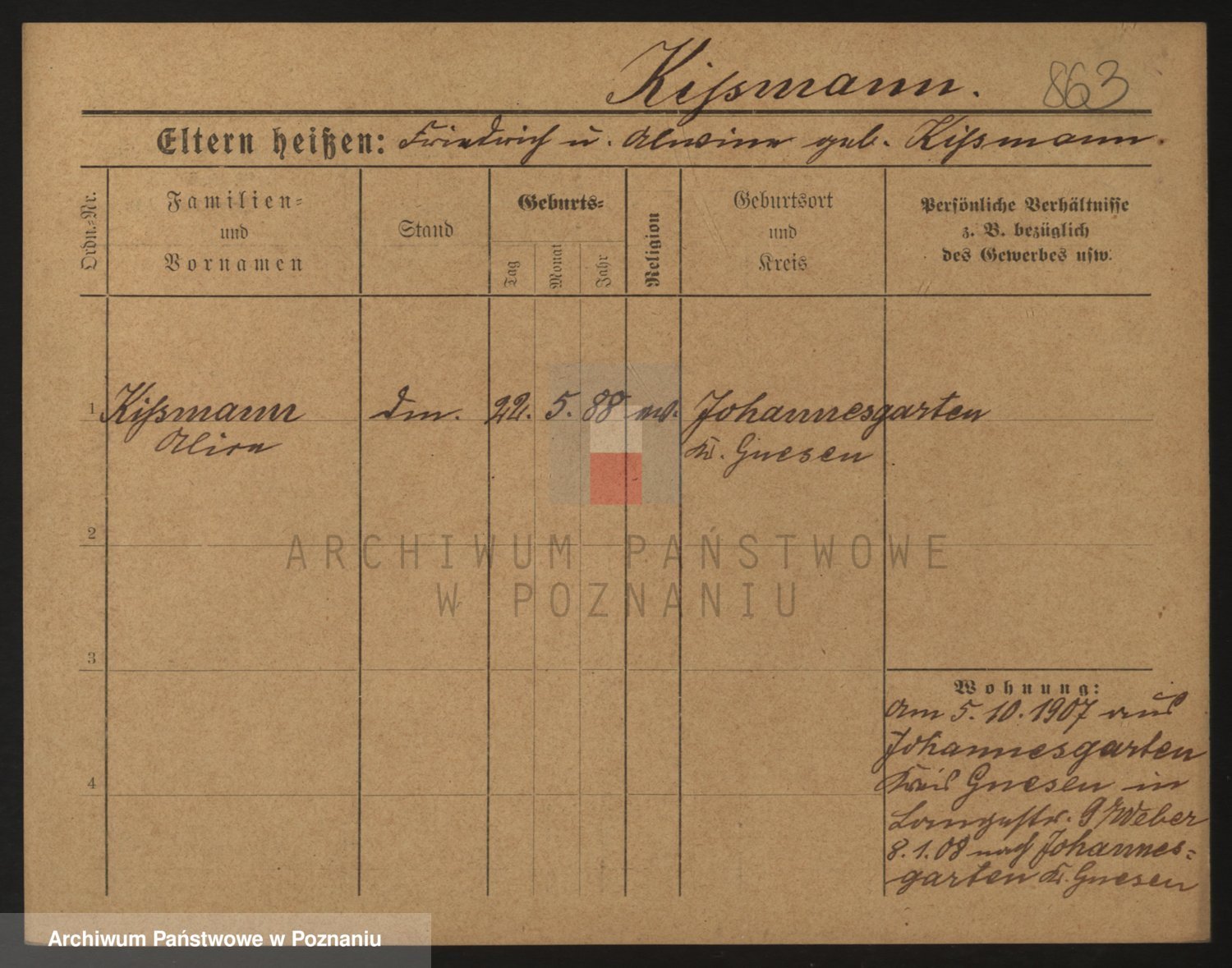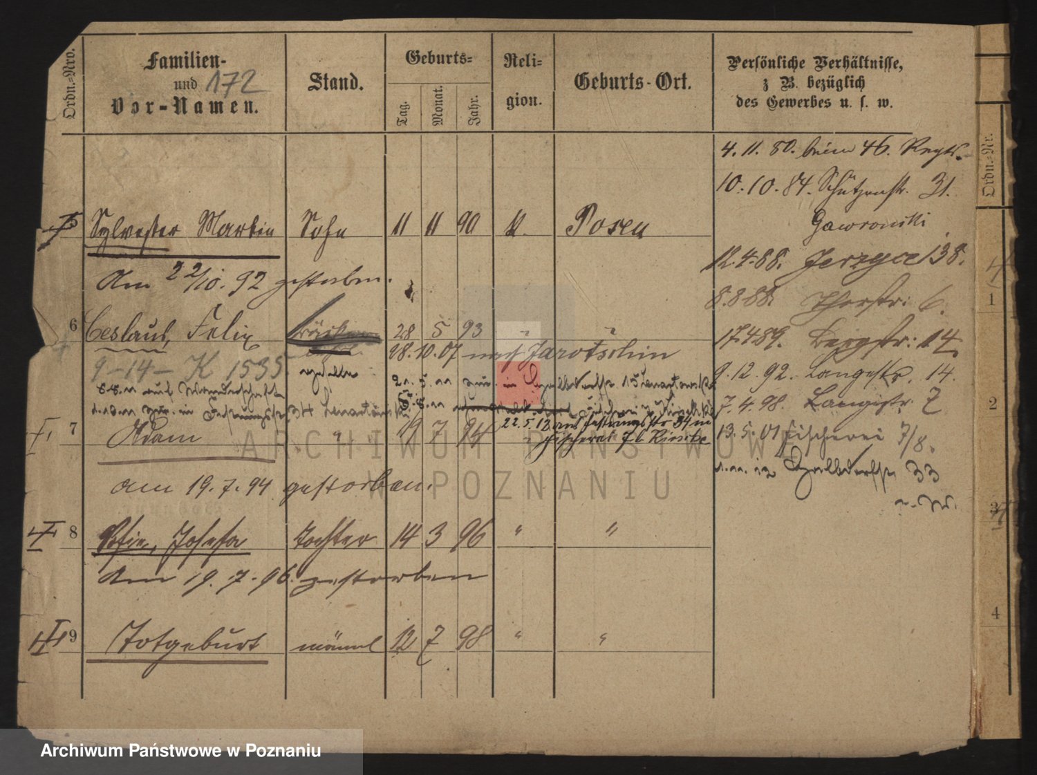 Podgląd karty osobowej dostępny jest po kliknięciu na nazwisko lub ikonkę karty. Można dokonywać powiększenia (ikony na górze) lub przechodzić między kolejnymi skanami (strzałki po bokach).