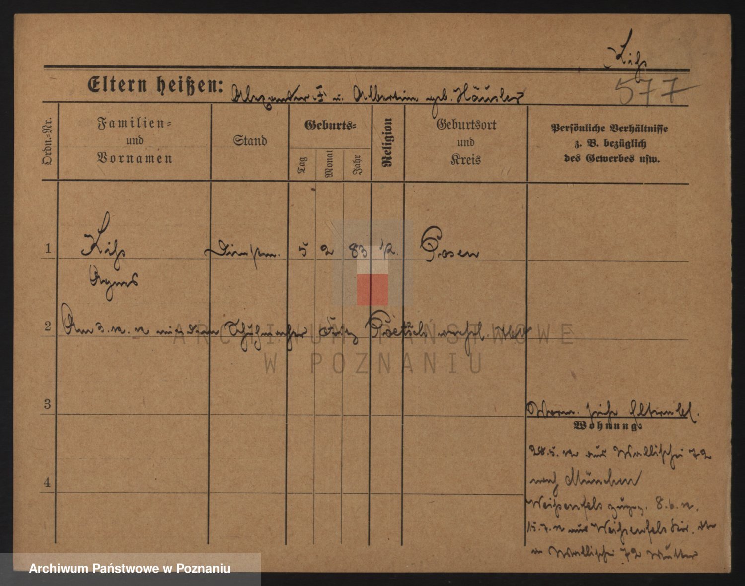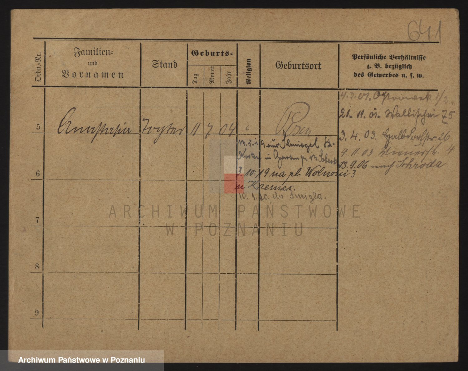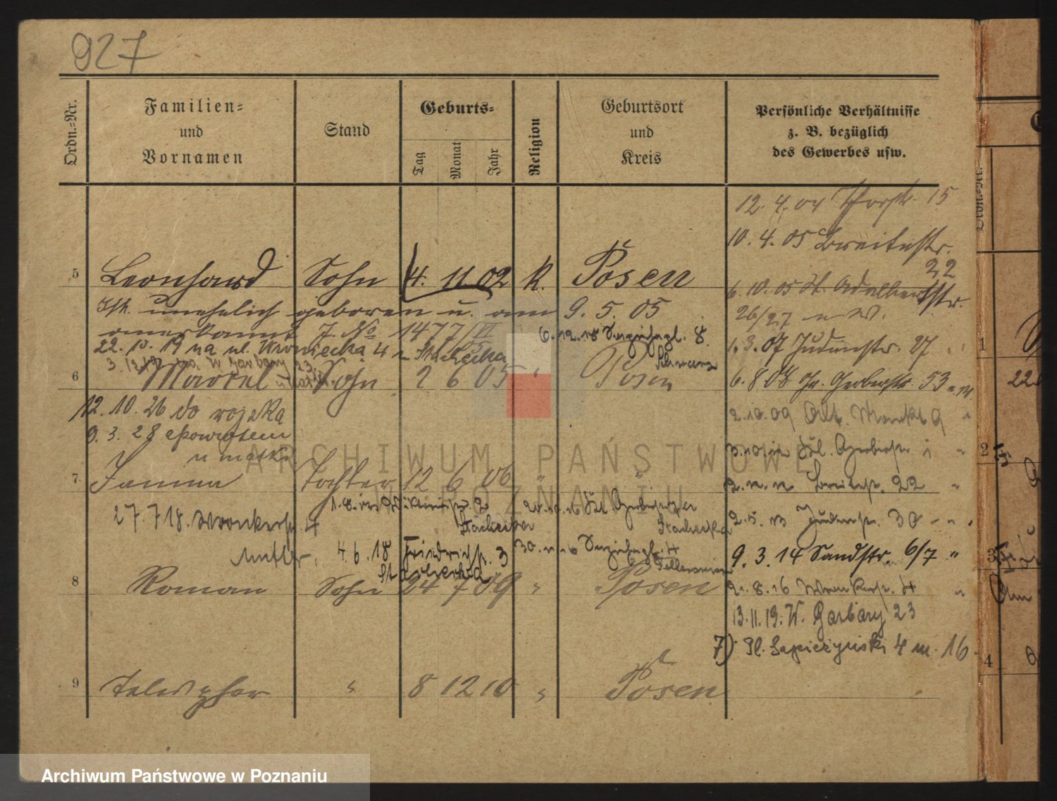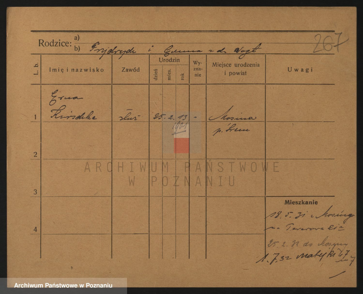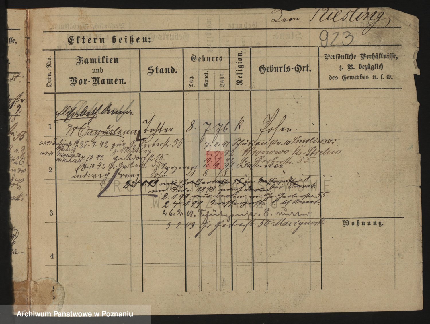 Podgląd karty osobowej dostępny jest po kliknięciu na nazwisko lub ikonkę karty. Można dokonywać powiększenia (ikony na górze) lub przechodzić między kolejnymi skanami (strzałki po bokach).