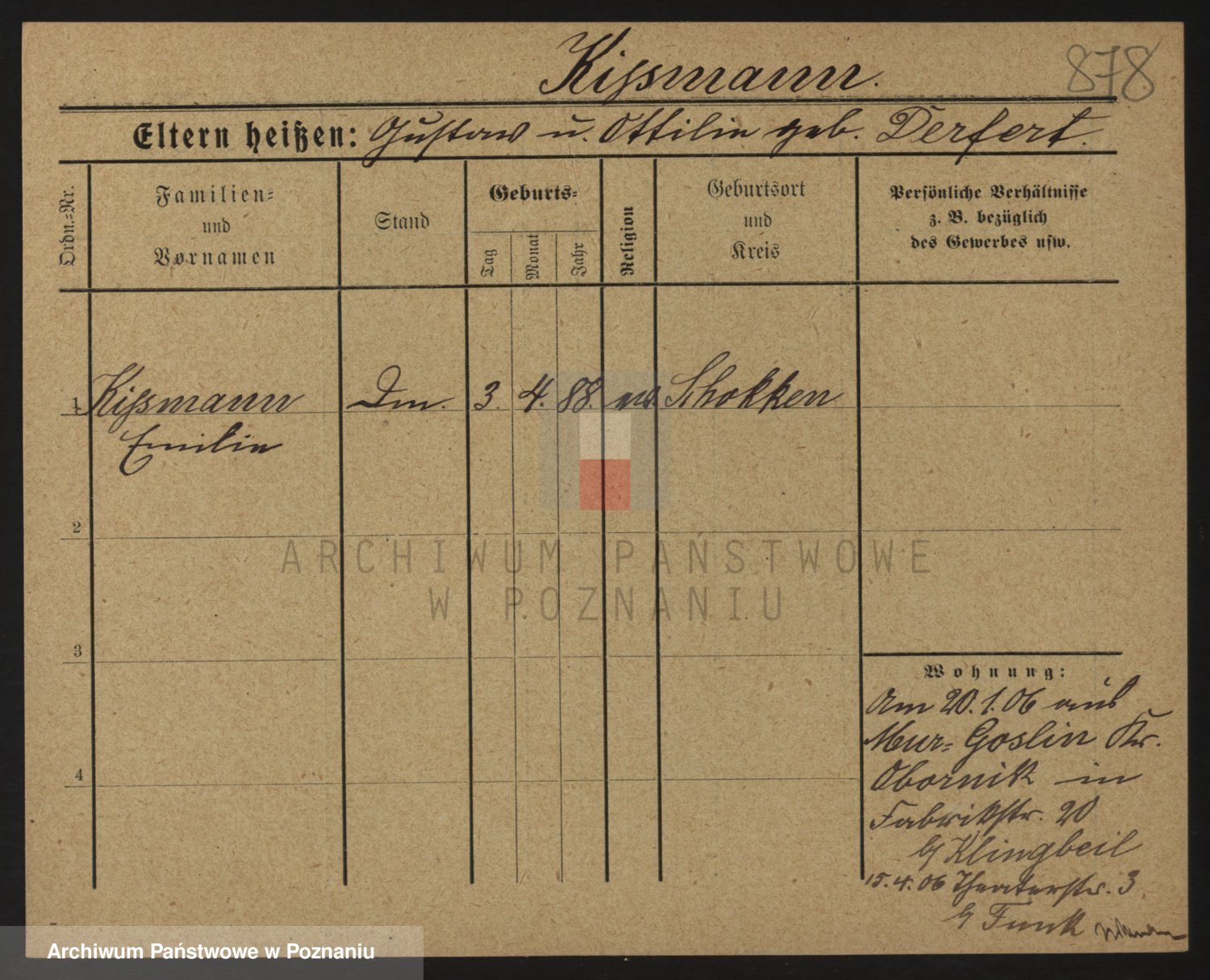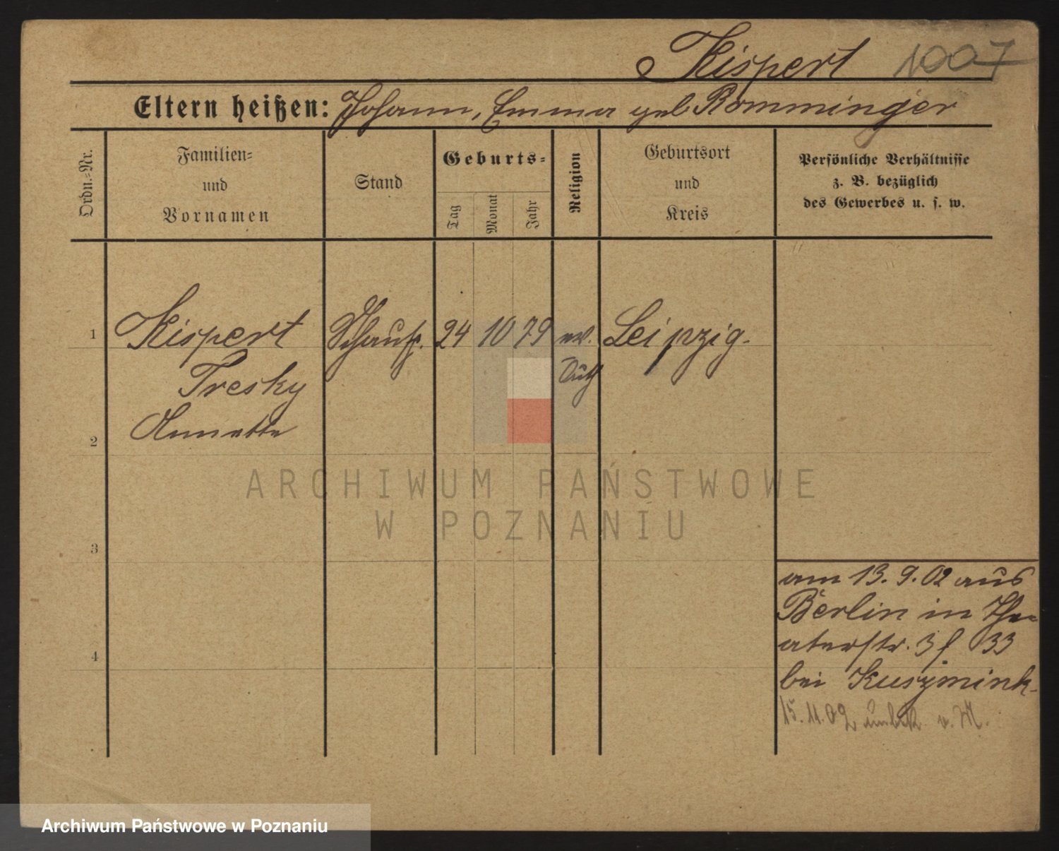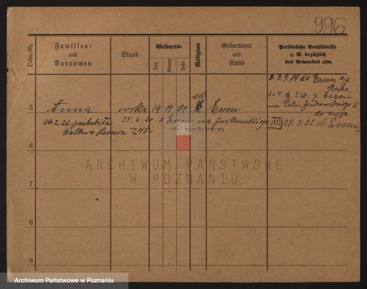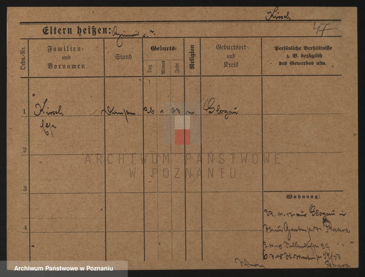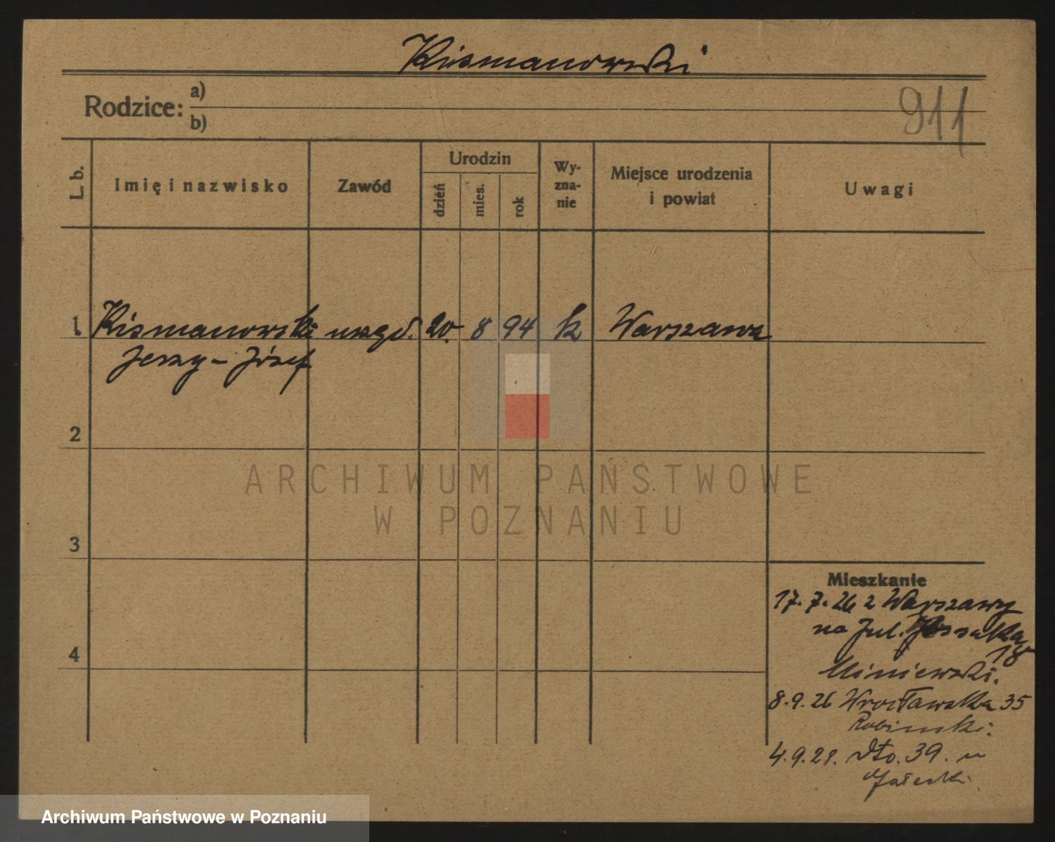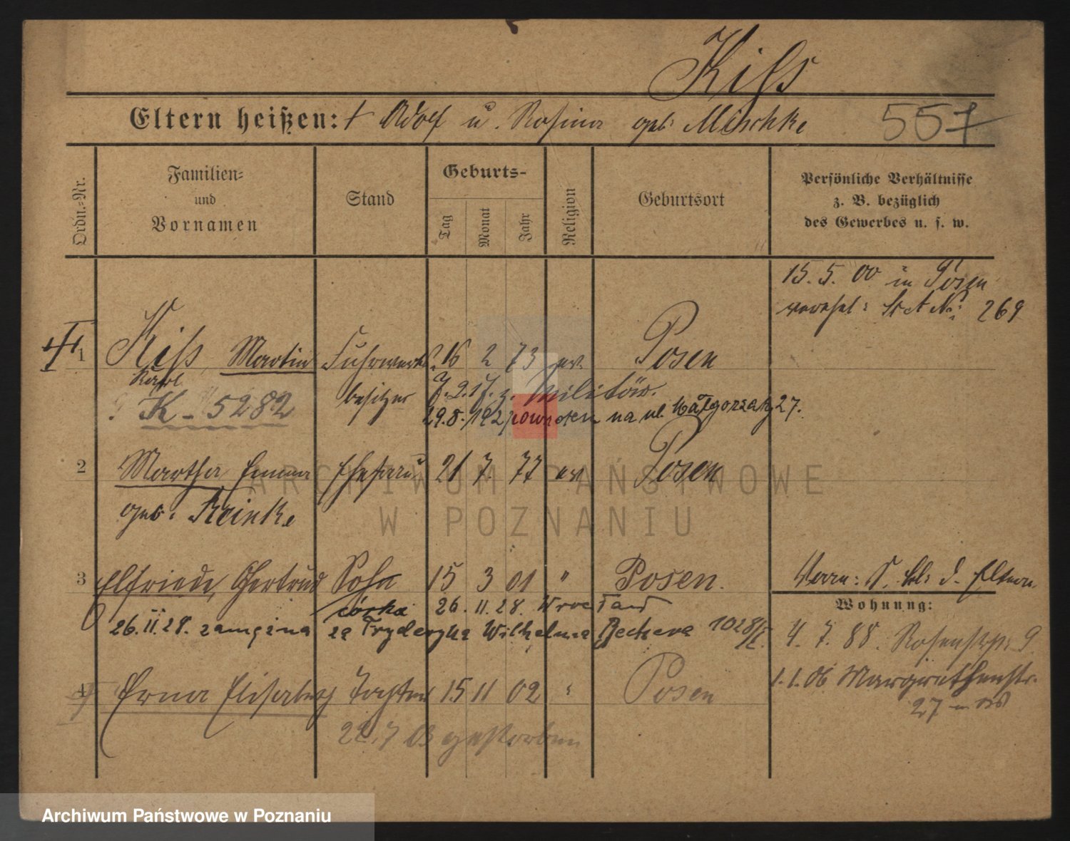 Podgląd karty osobowej dostępny jest po kliknięciu na nazwisko lub ikonkę karty. Można dokonywać powiększenia (ikony na górze) lub przechodzić między kolejnymi skanami (strzałki po bokach).