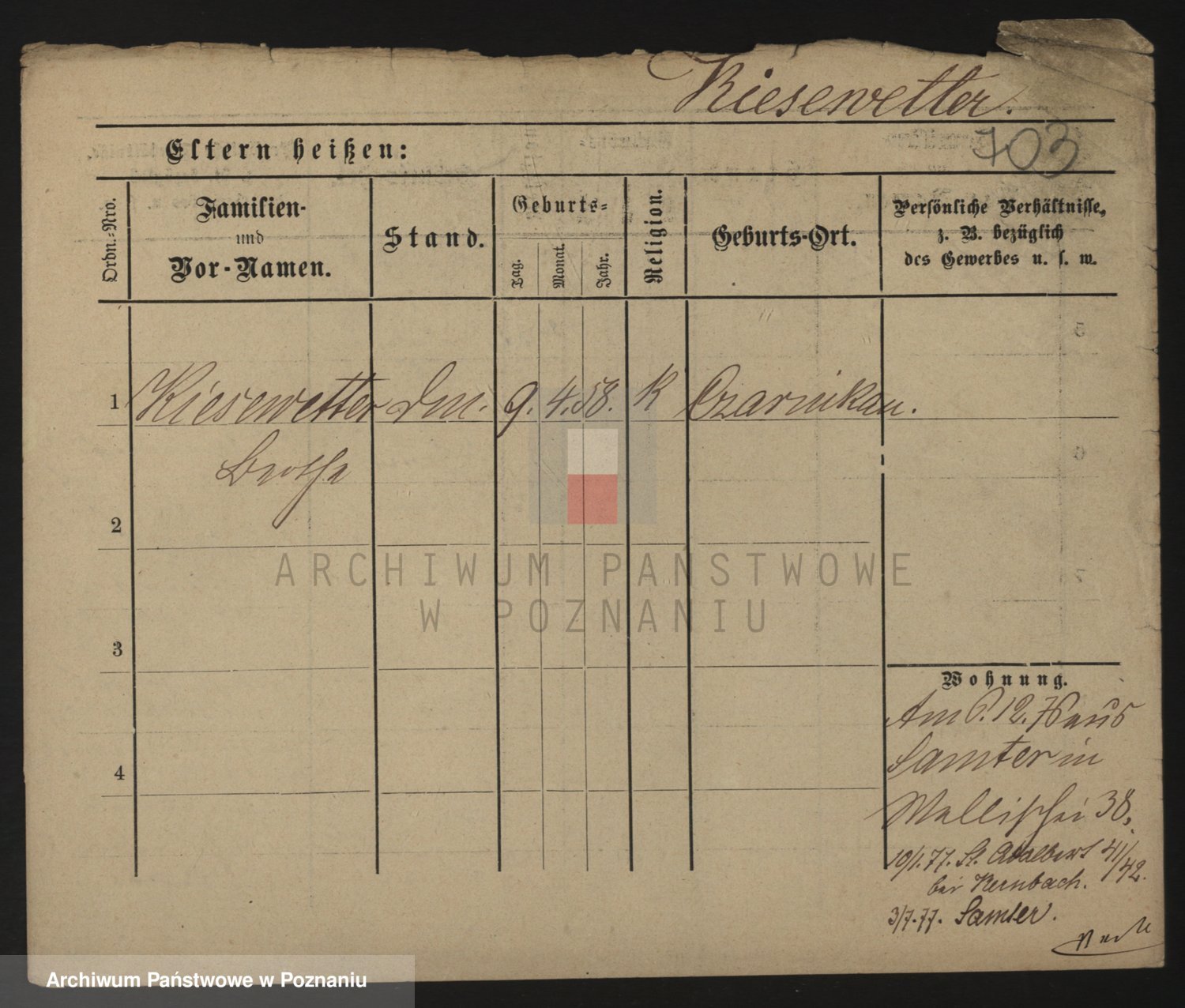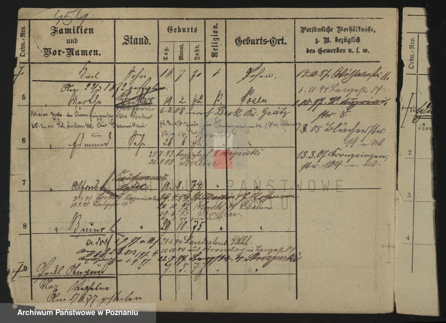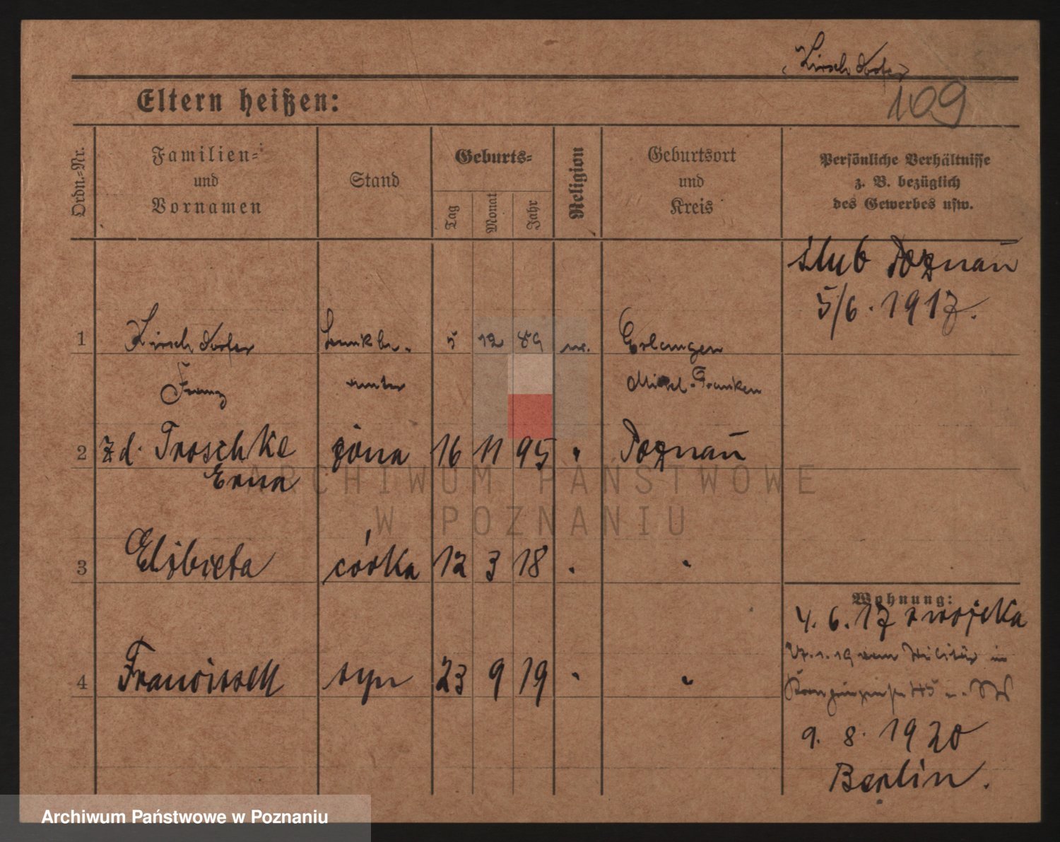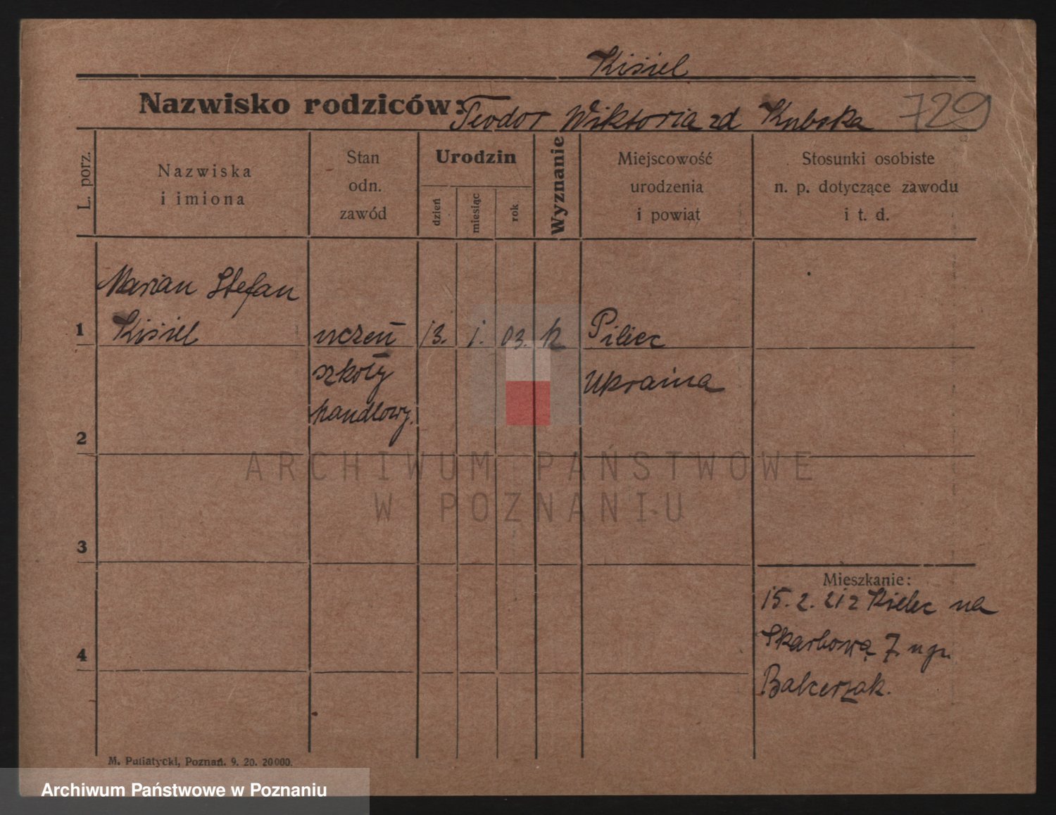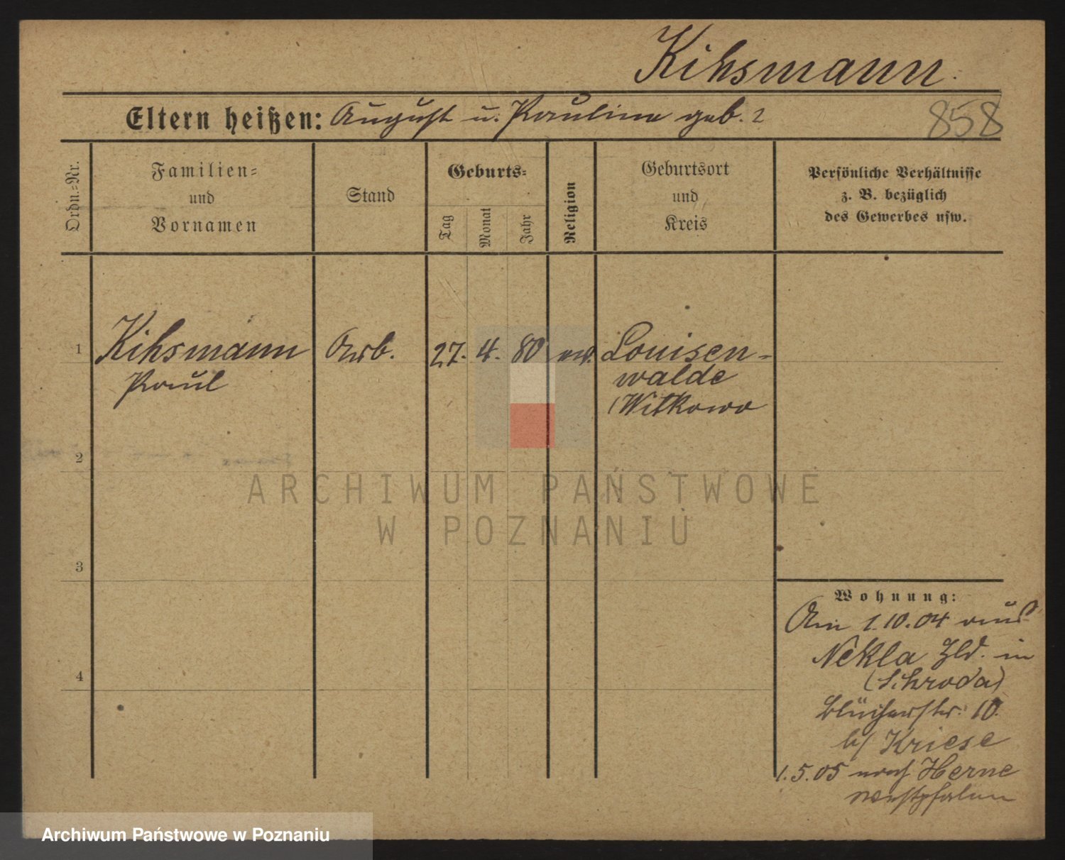 Podgląd karty osobowej dostępny jest po kliknięciu na nazwisko lub ikonkę karty. Można dokonywać powiększenia (ikony na górze) lub przechodzić między kolejnymi skanami (strzałki po bokach).