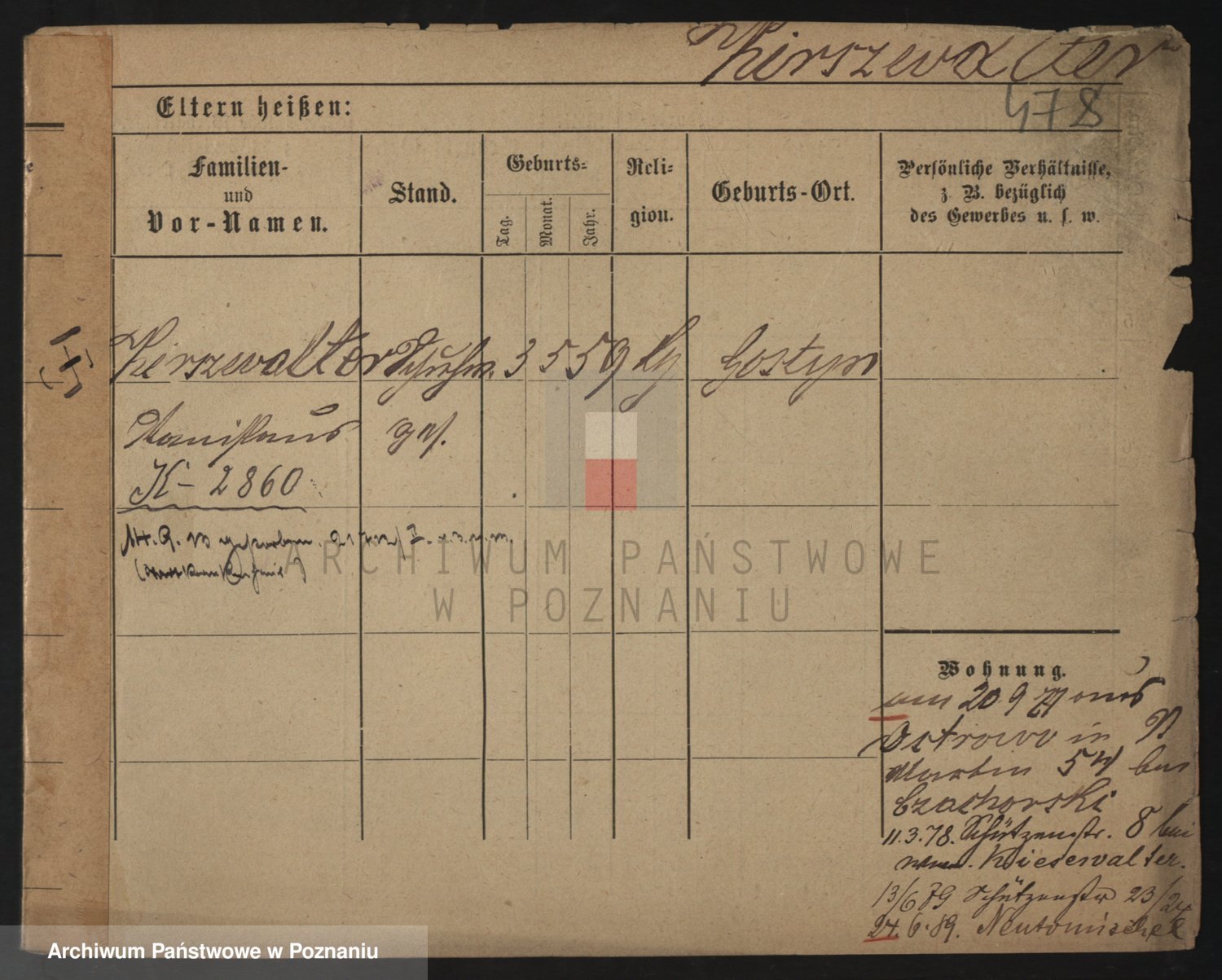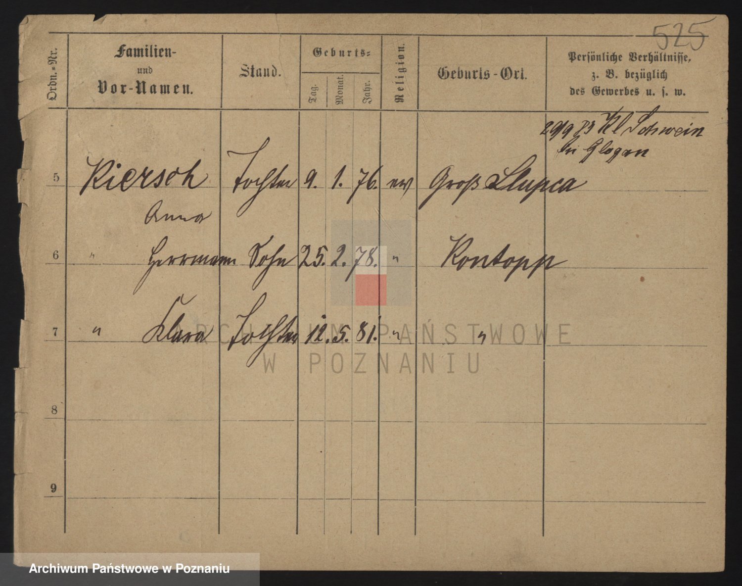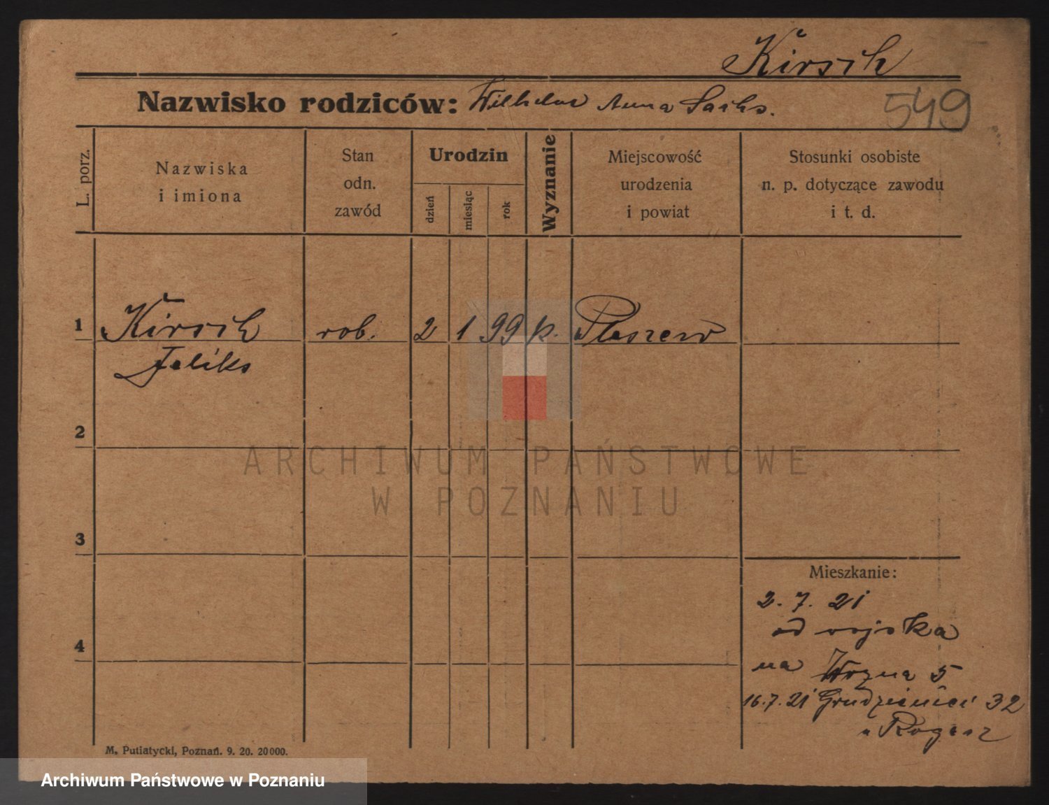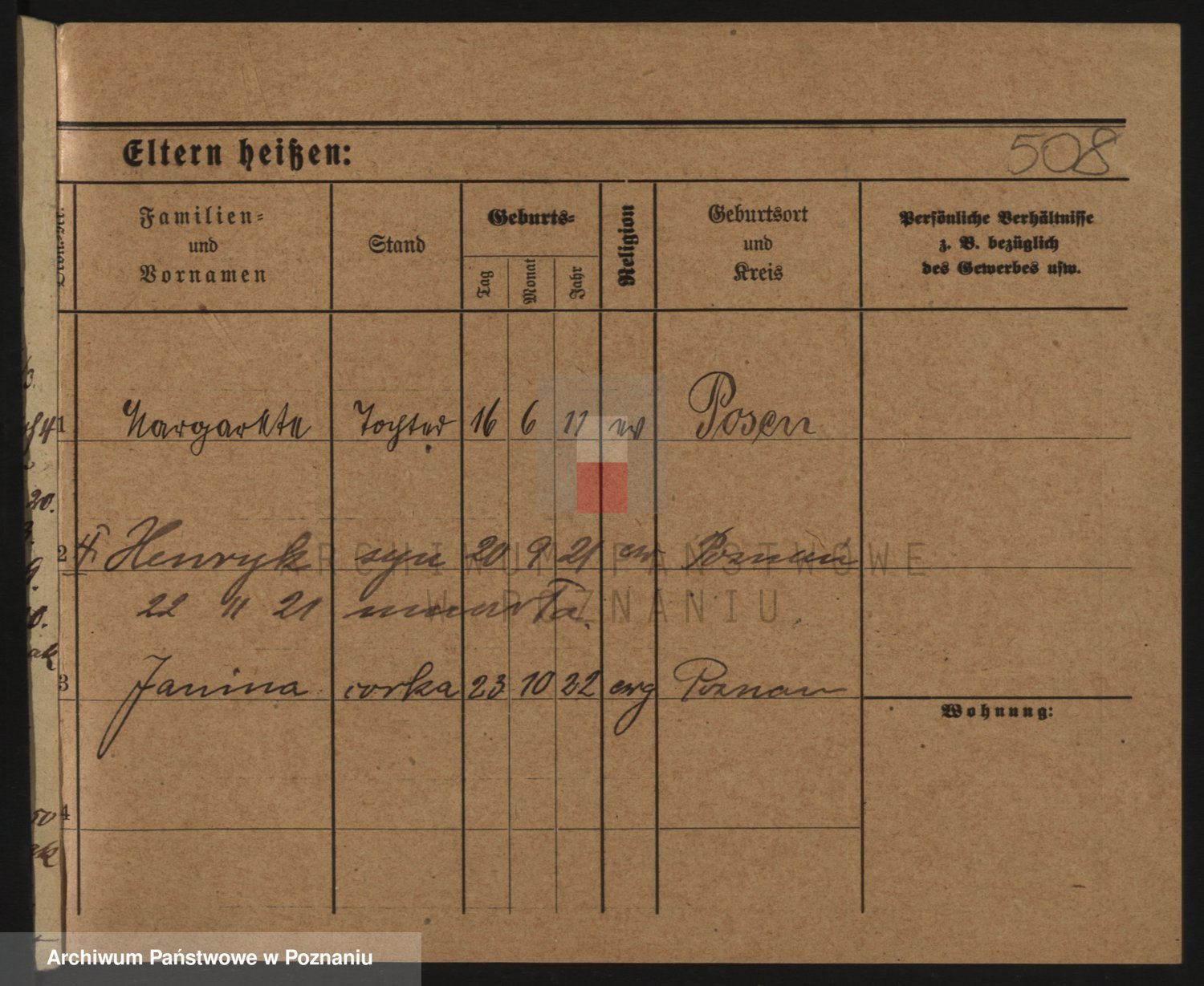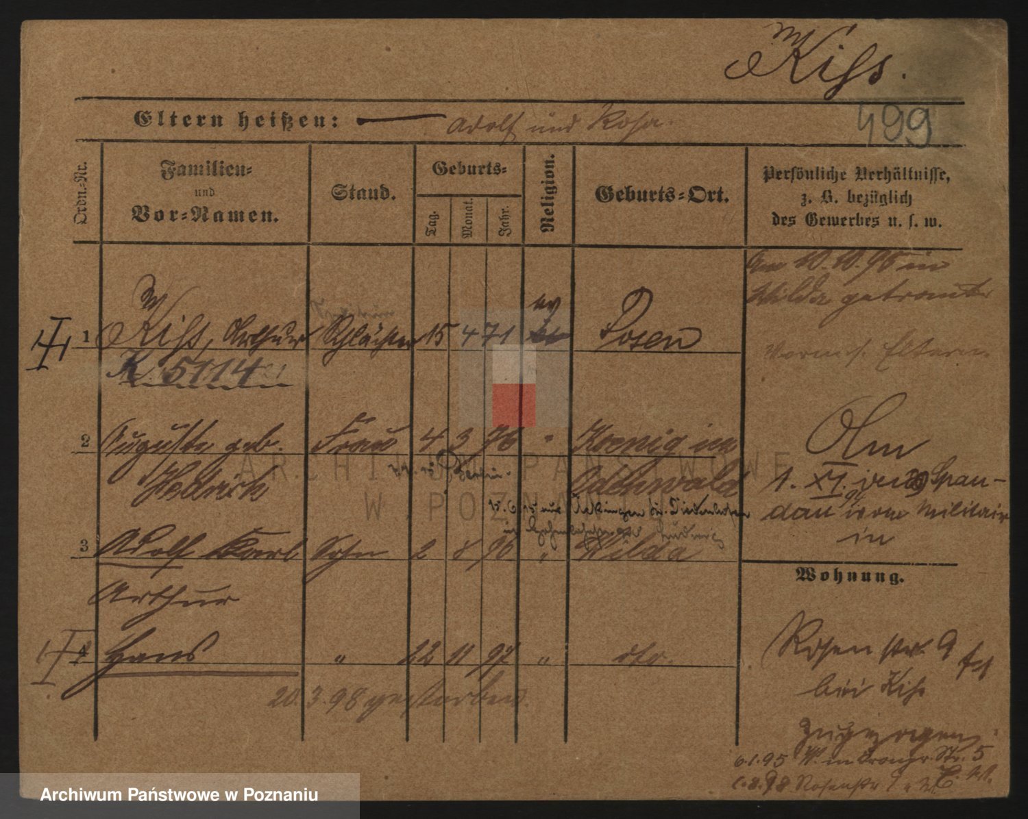 Podgląd karty osobowej dostępny jest po kliknięciu na nazwisko lub ikonkę karty. Można dokonywać powiększenia (ikony na górze) lub przechodzić między kolejnymi skanami (strzałki po bokach).