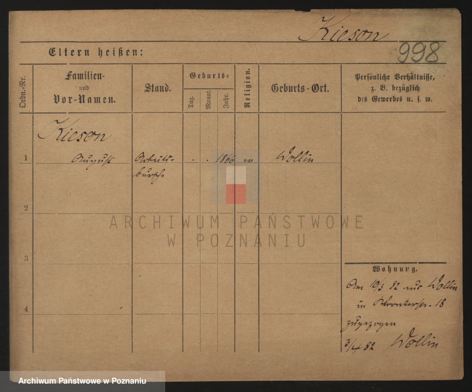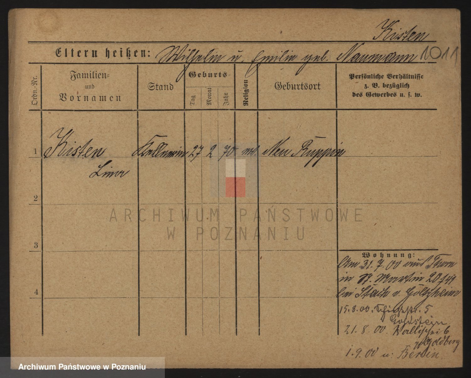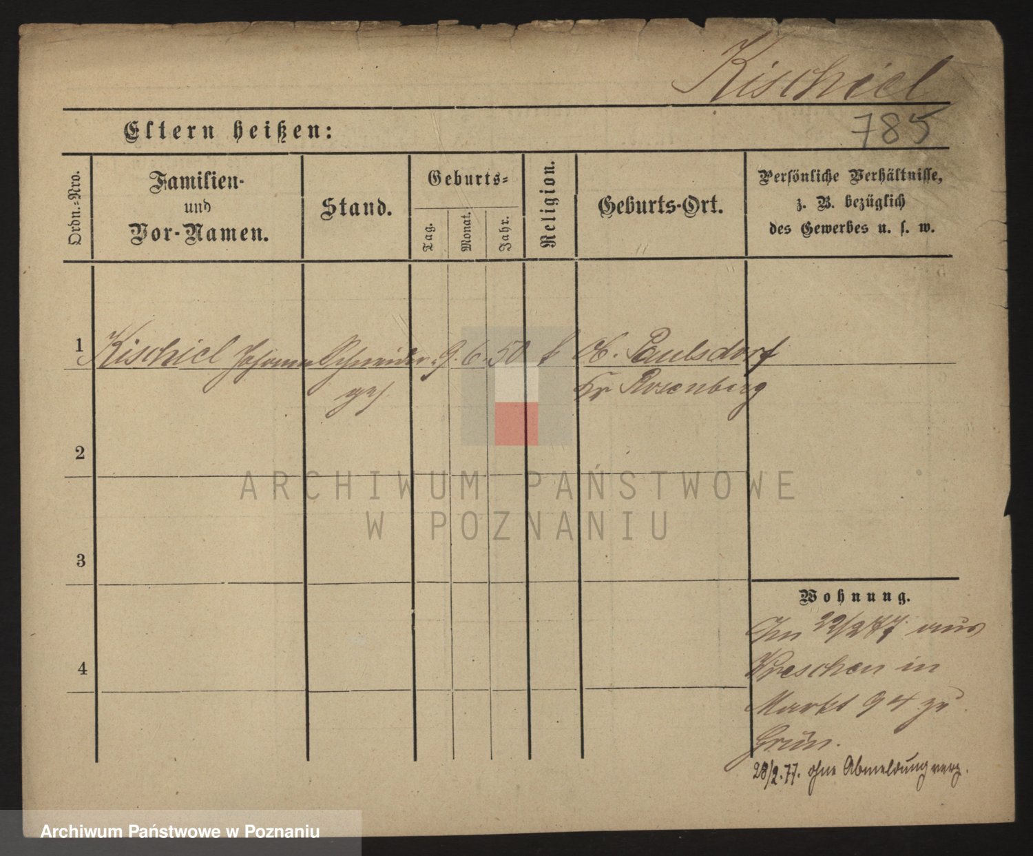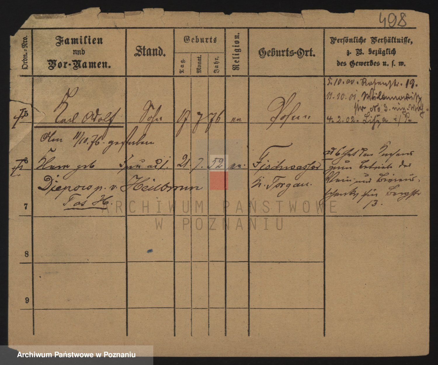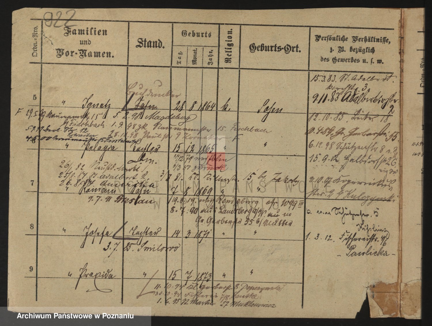 Podgląd karty osobowej dostępny jest po kliknięciu na nazwisko lub ikonkę karty. Można dokonywać powiększenia (ikony na górze) lub przechodzić między kolejnymi skanami (strzałki po bokach).