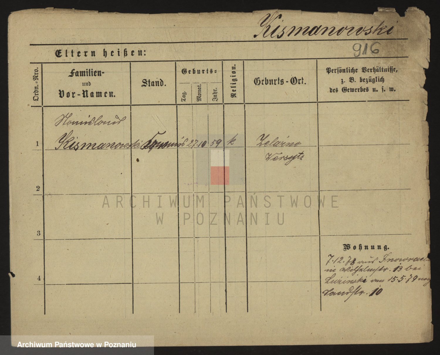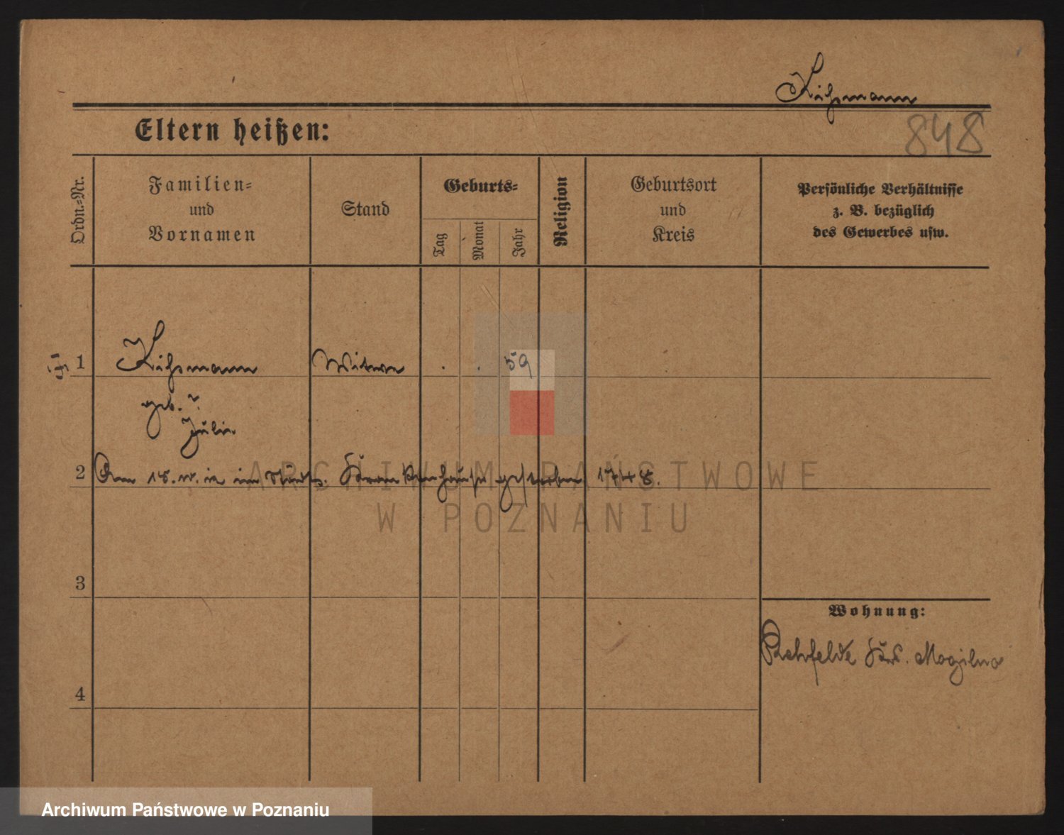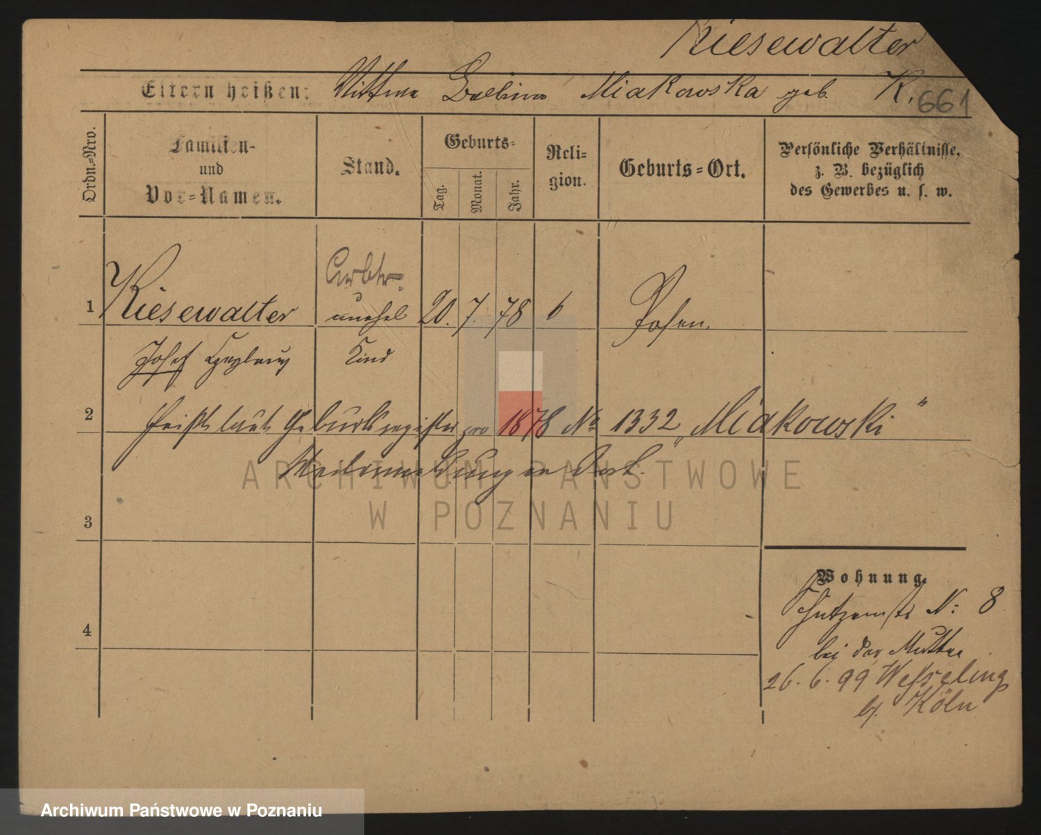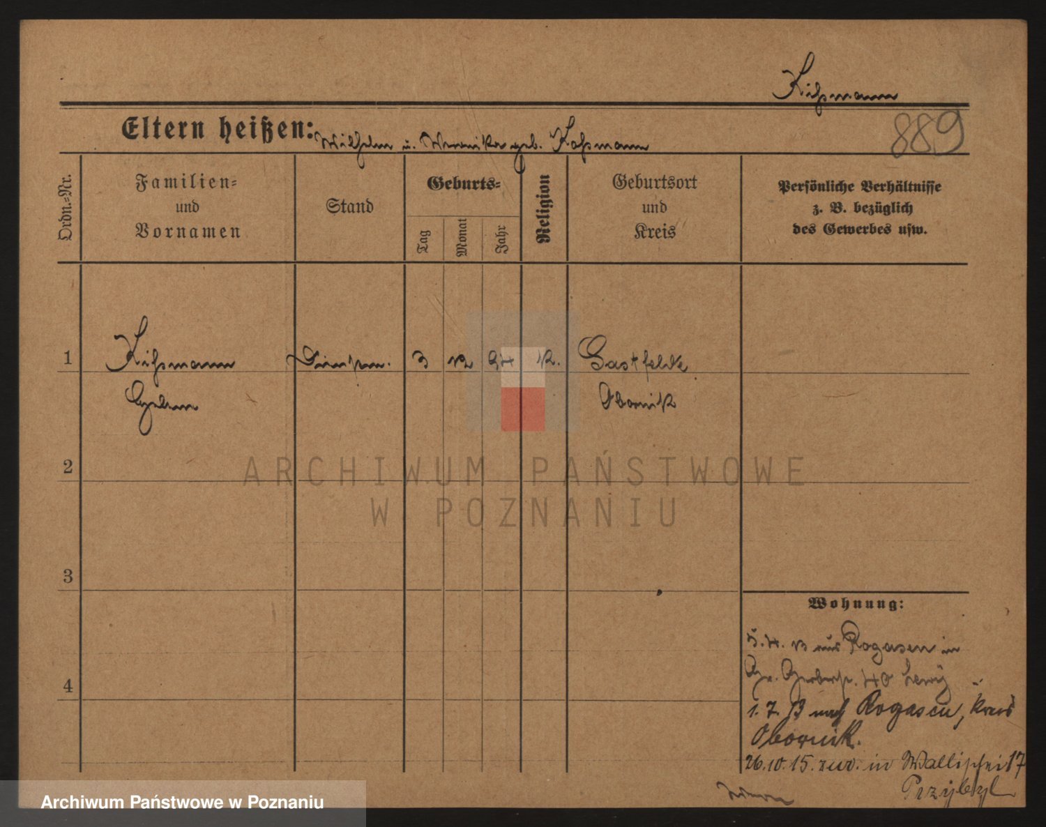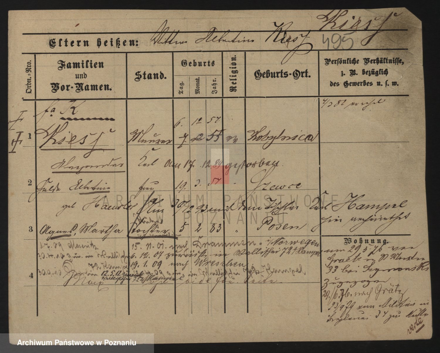 Podgląd karty osobowej dostępny jest po kliknięciu na nazwisko lub ikonkę karty. Można dokonywać powiększenia (ikony na górze) lub przechodzić między kolejnymi skanami (strzałki po bokach).