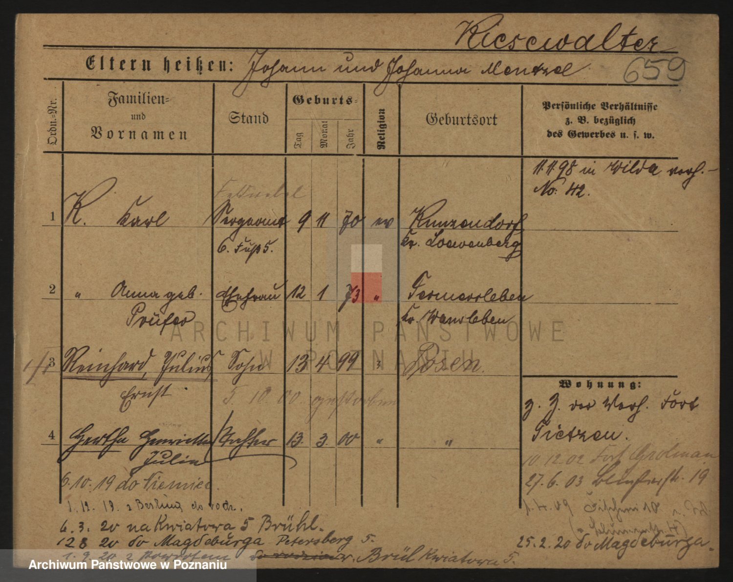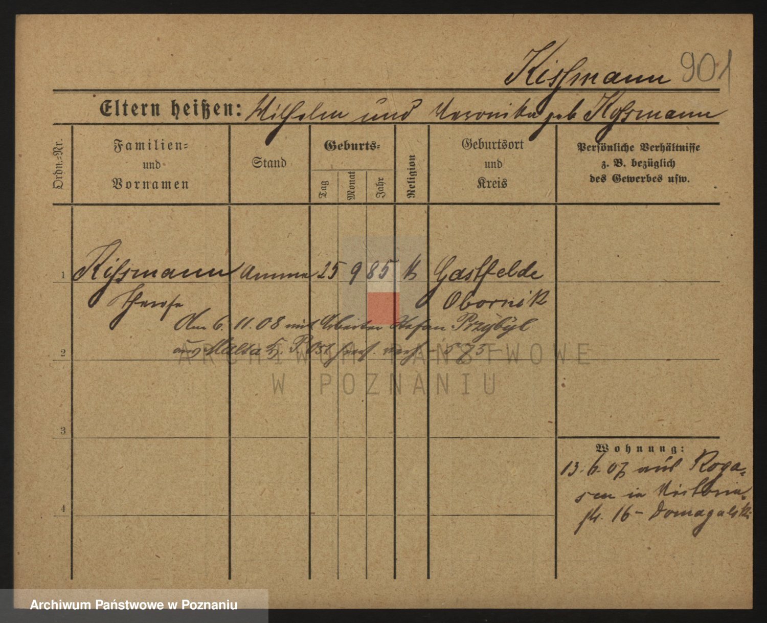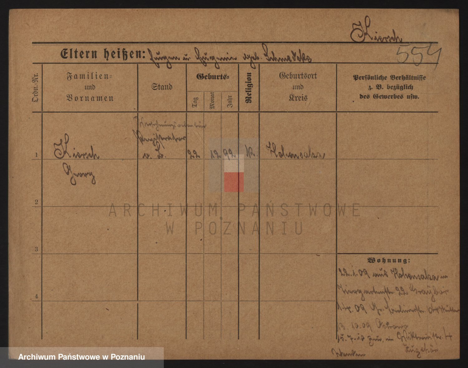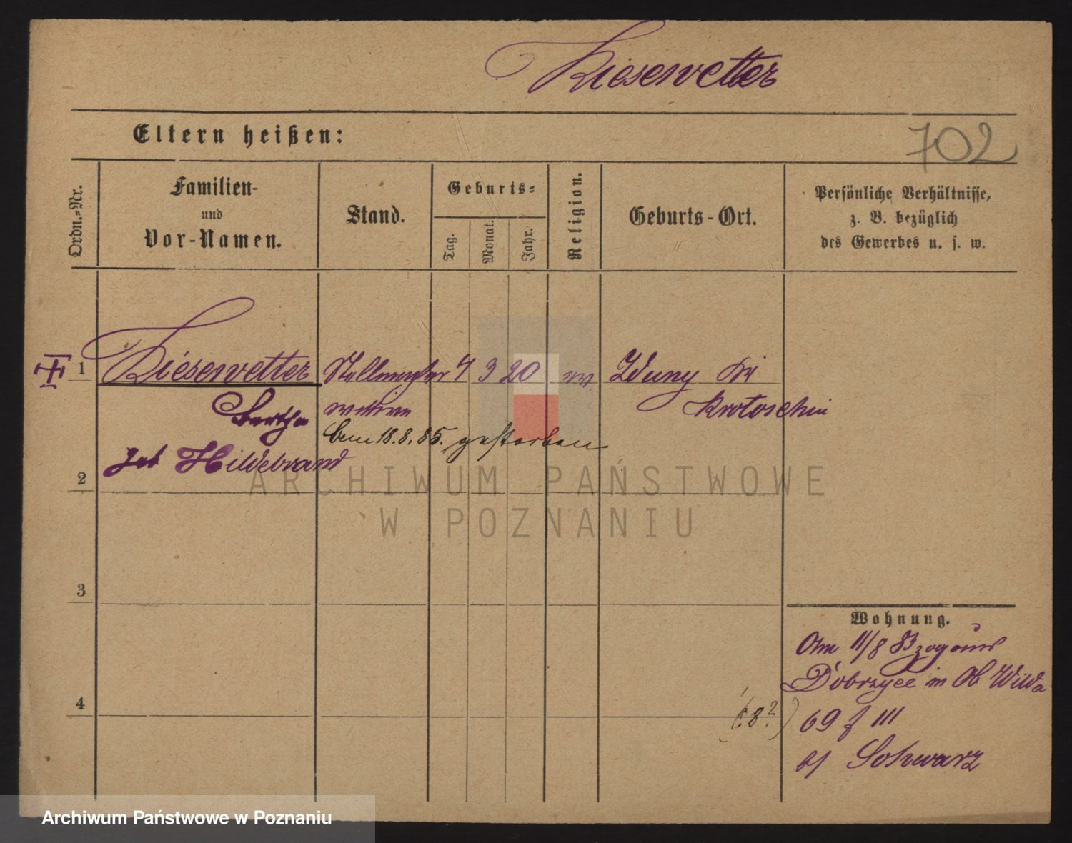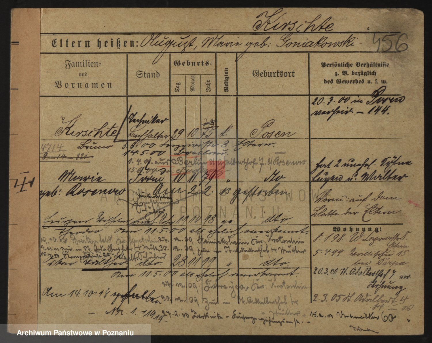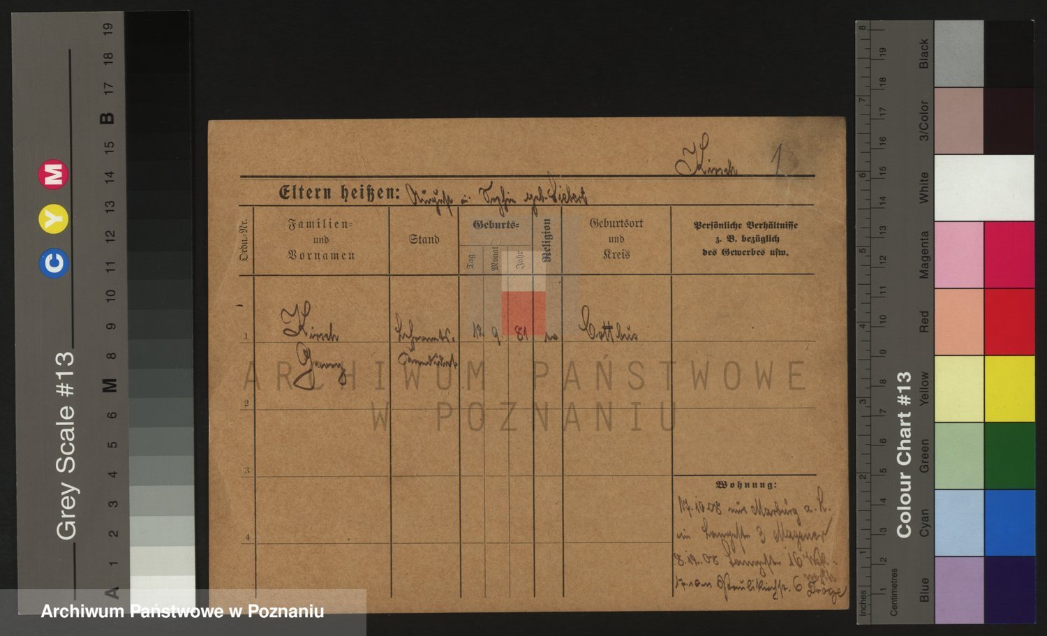 Podgląd karty osobowej dostępny jest po kliknięciu na nazwisko lub ikonkę karty. Można dokonywać powiększenia (ikony na górze) lub przechodzić między kolejnymi skanami (strzałki po bokach).