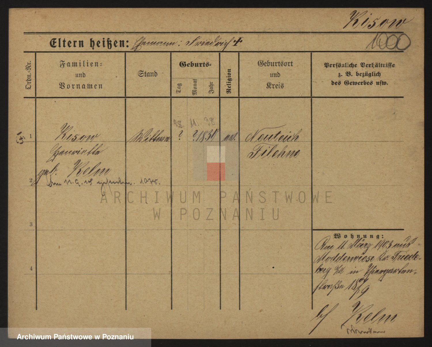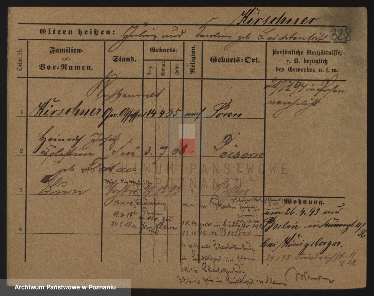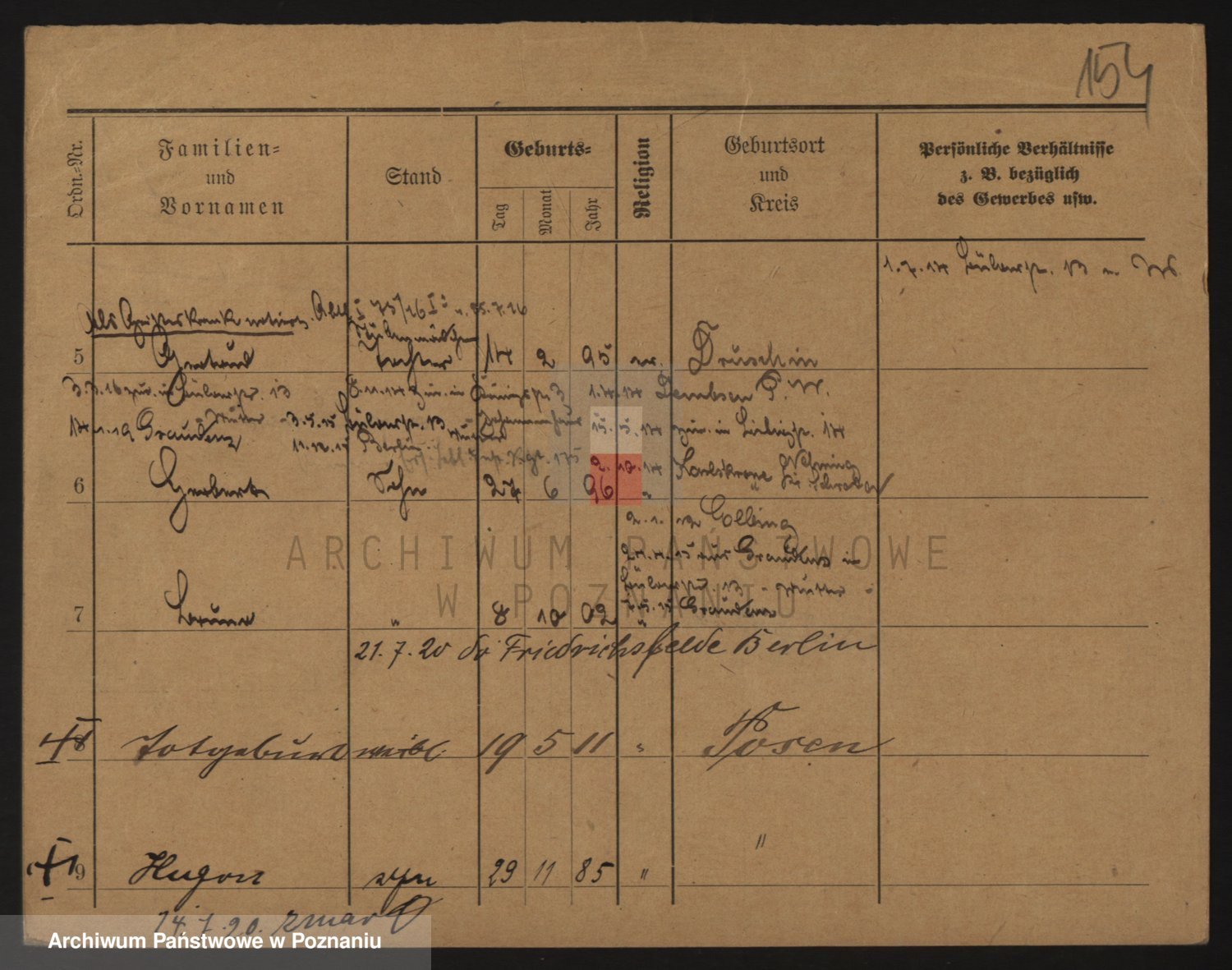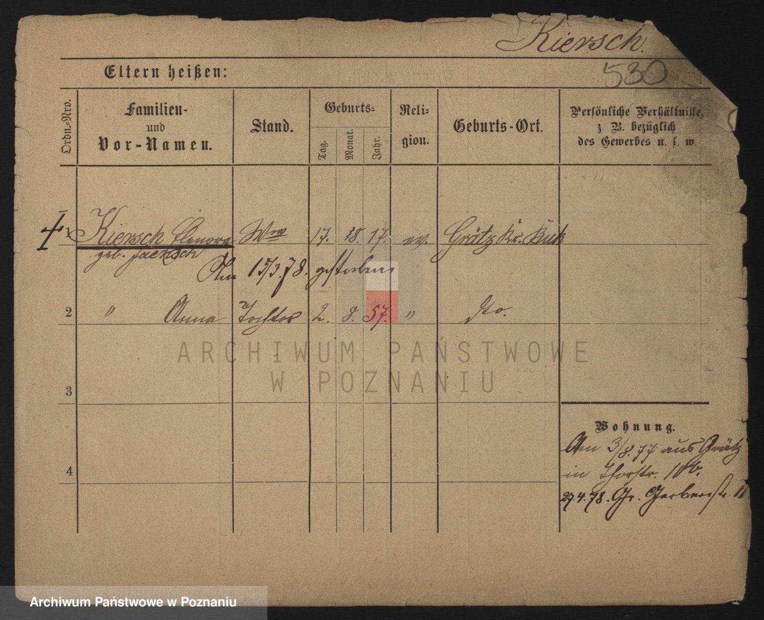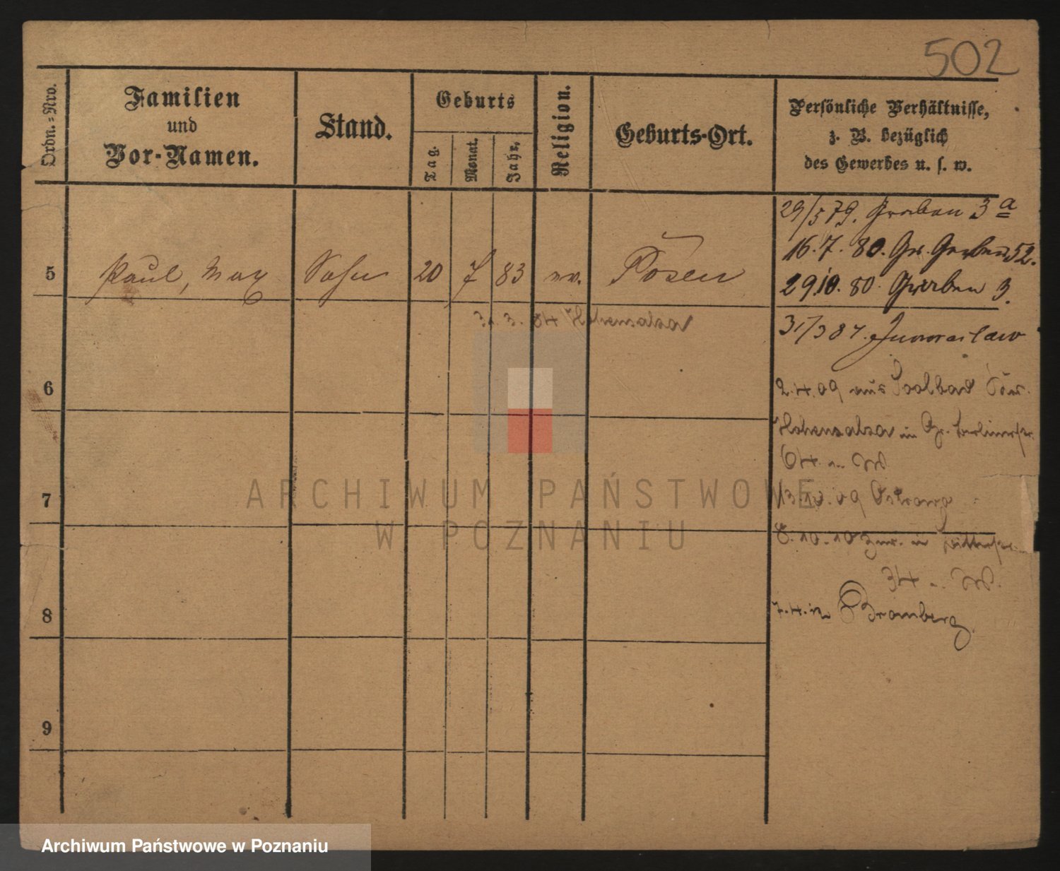 Podgląd karty osobowej dostępny jest po kliknięciu na nazwisko lub ikonkę karty. Można dokonywać powiększenia (ikony na górze) lub przechodzić między kolejnymi skanami (strzałki po bokach).
