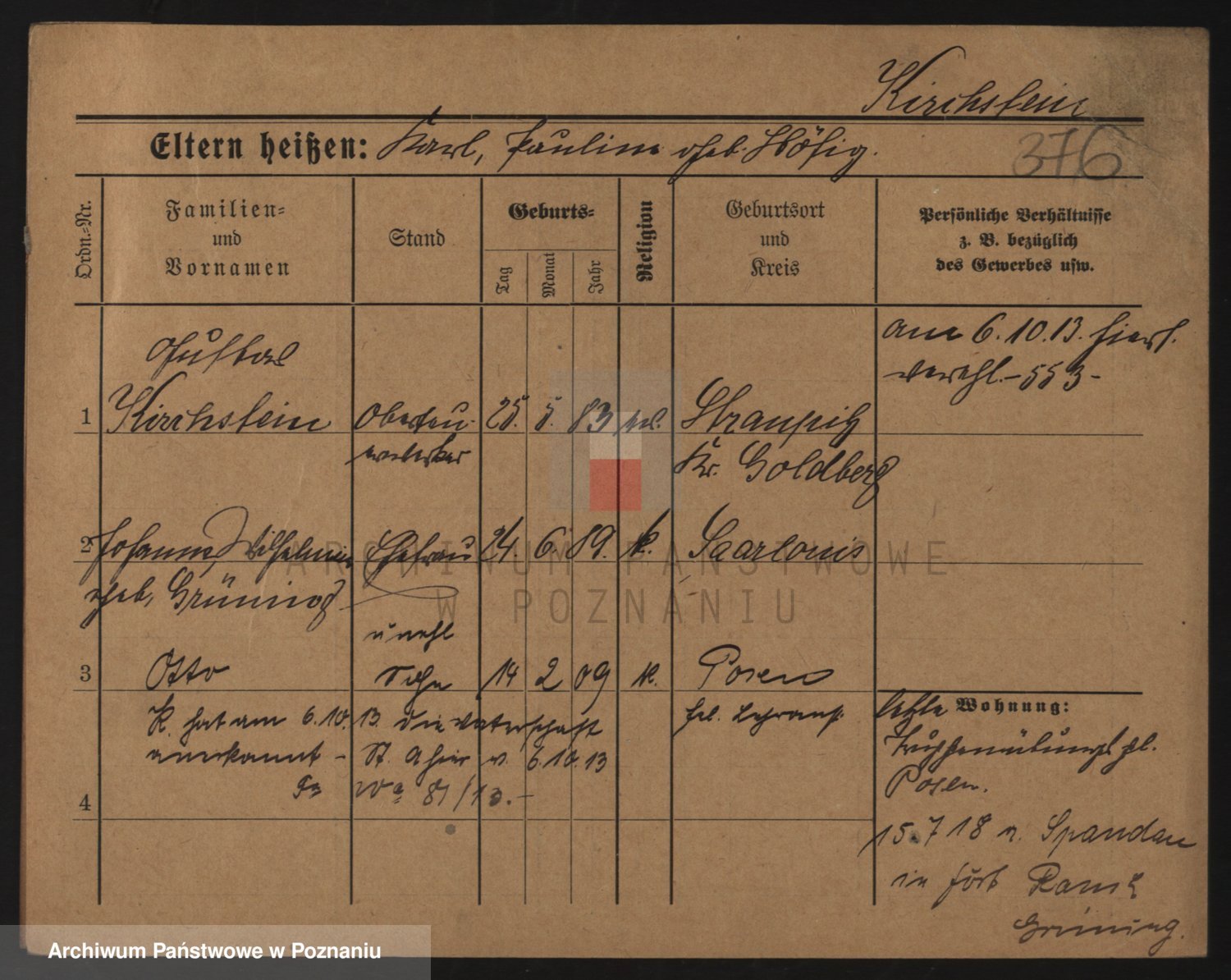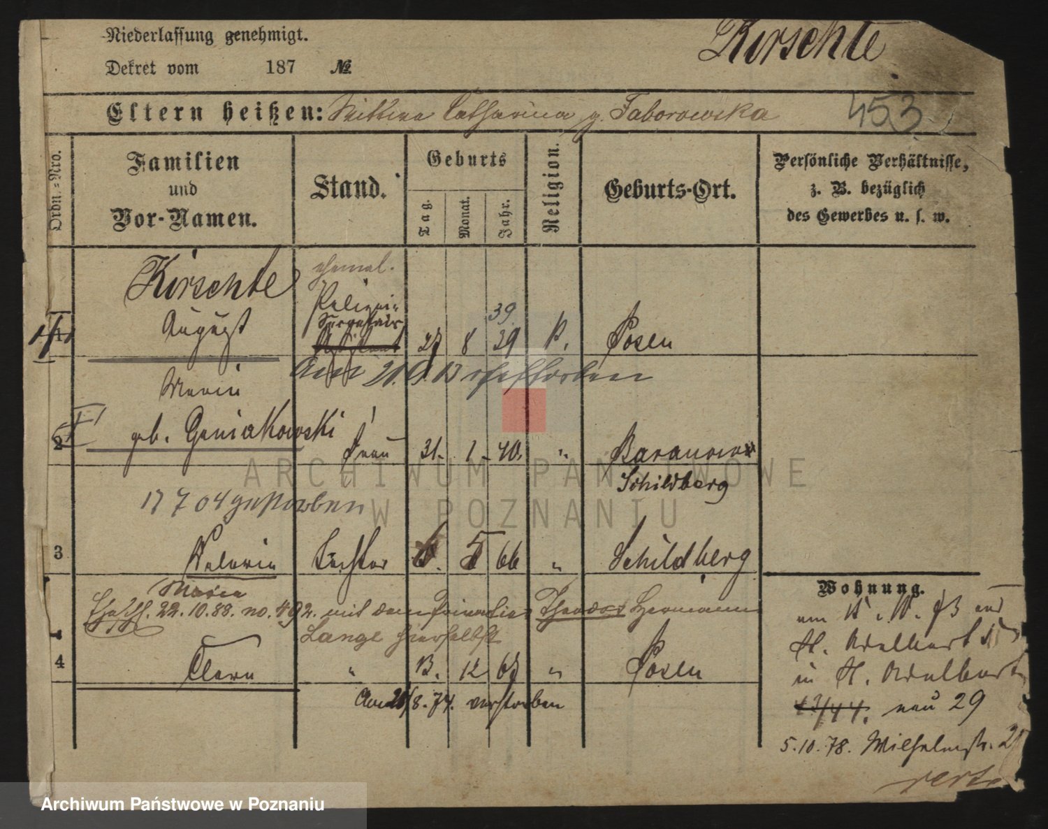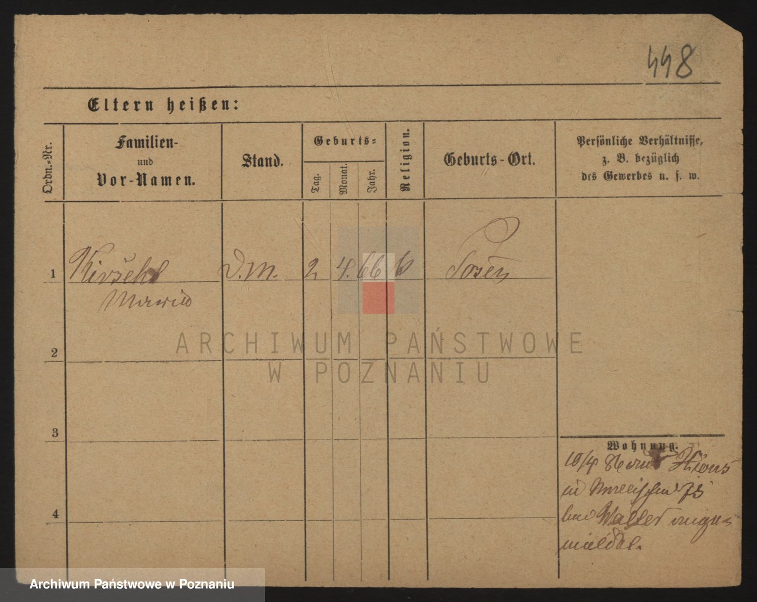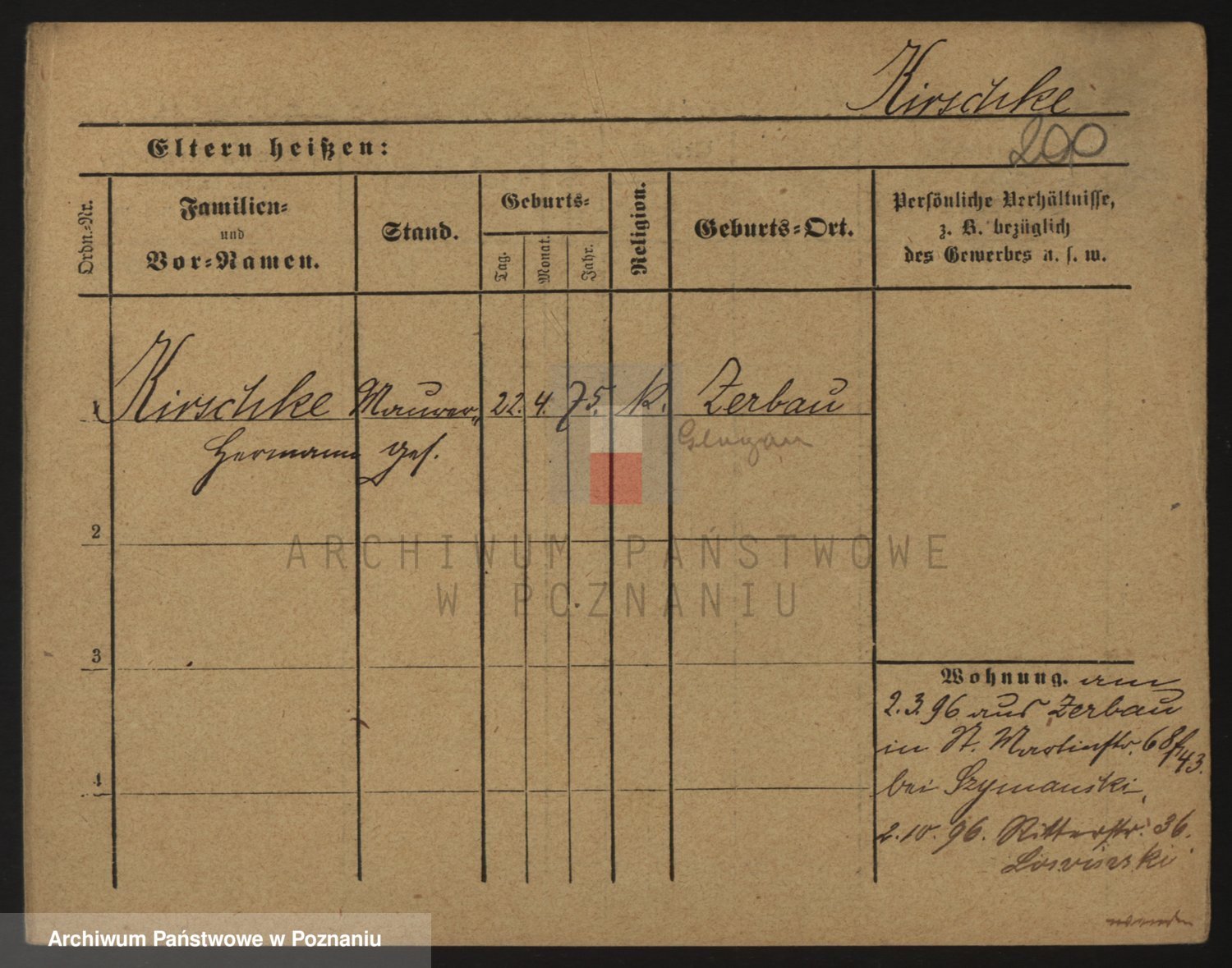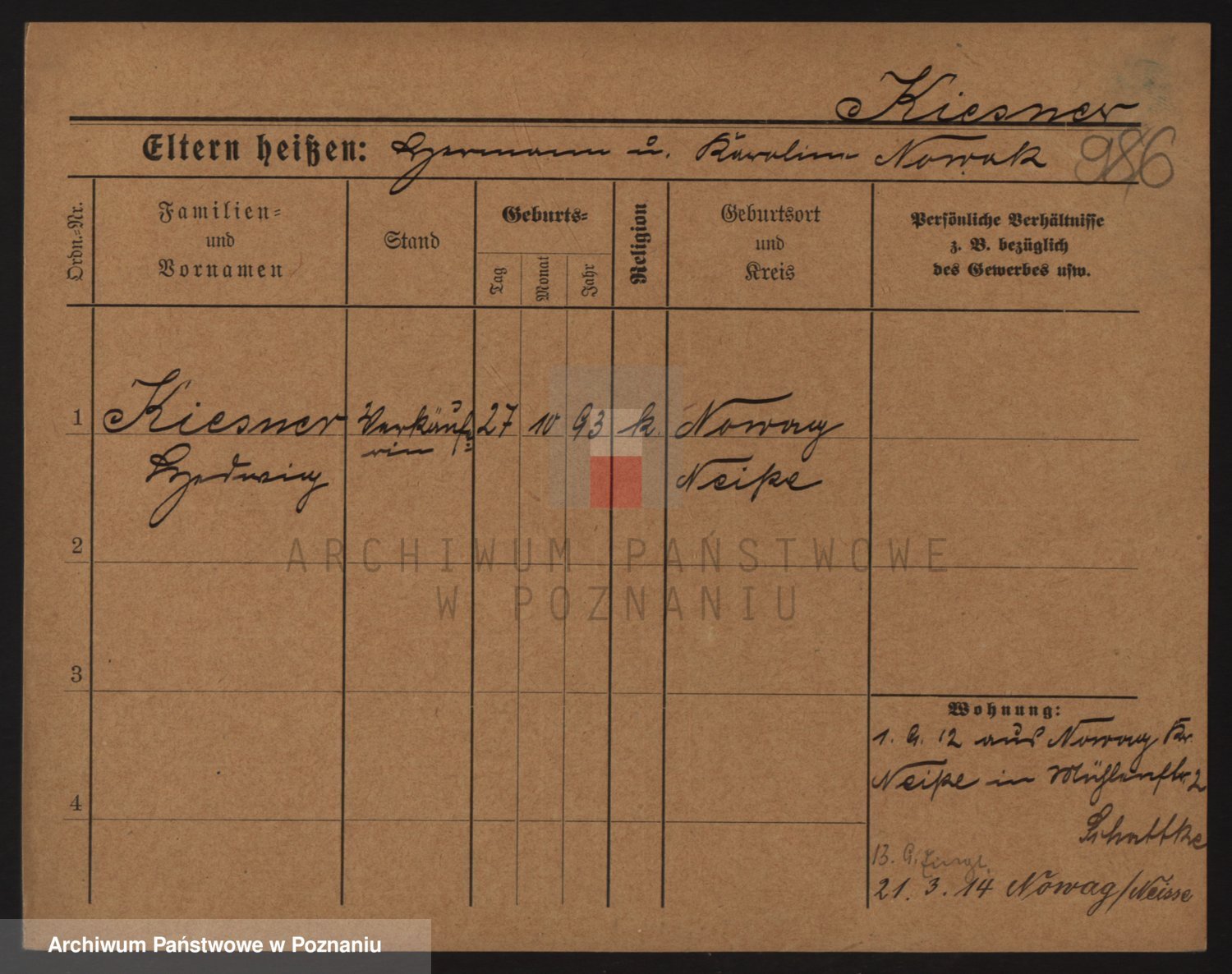 Podgląd karty osobowej dostępny jest po kliknięciu na nazwisko lub ikonkę karty. Można dokonywać powiększenia (ikony na górze) lub przechodzić między kolejnymi skanami (strzałki po bokach).