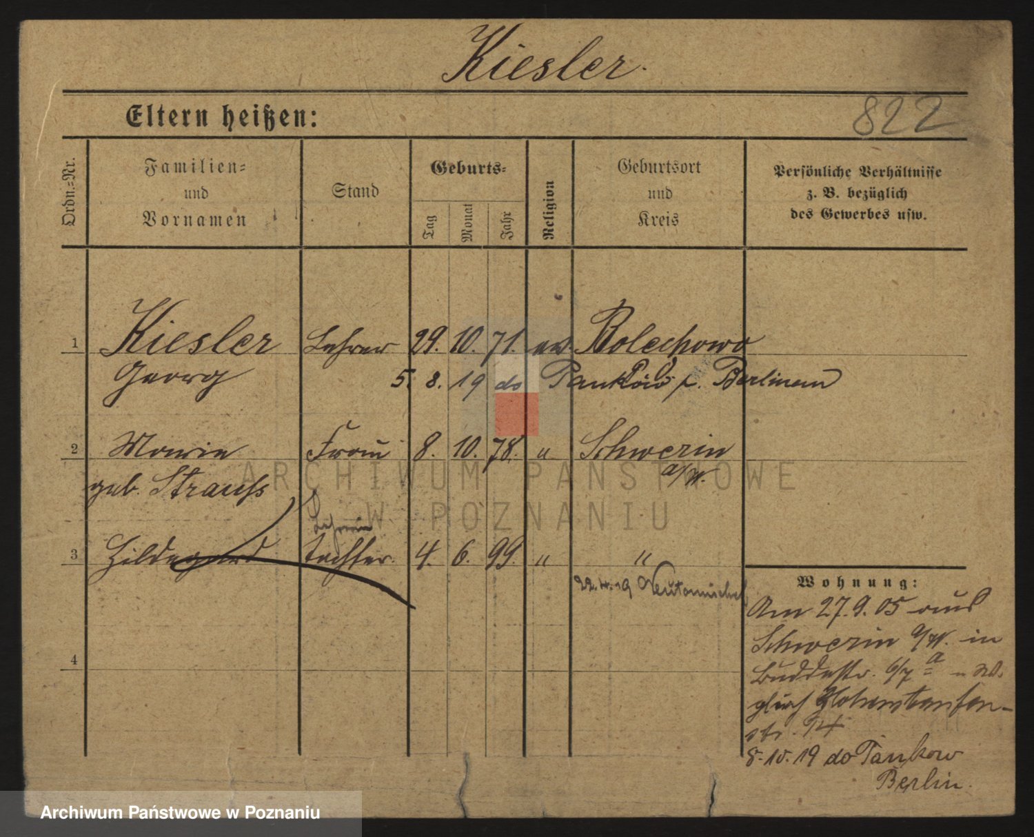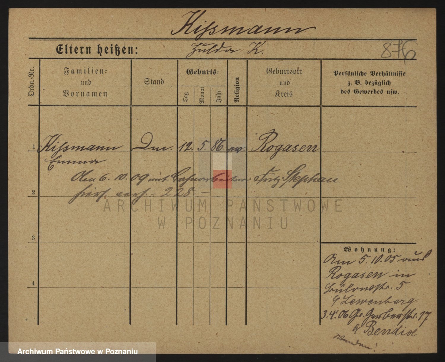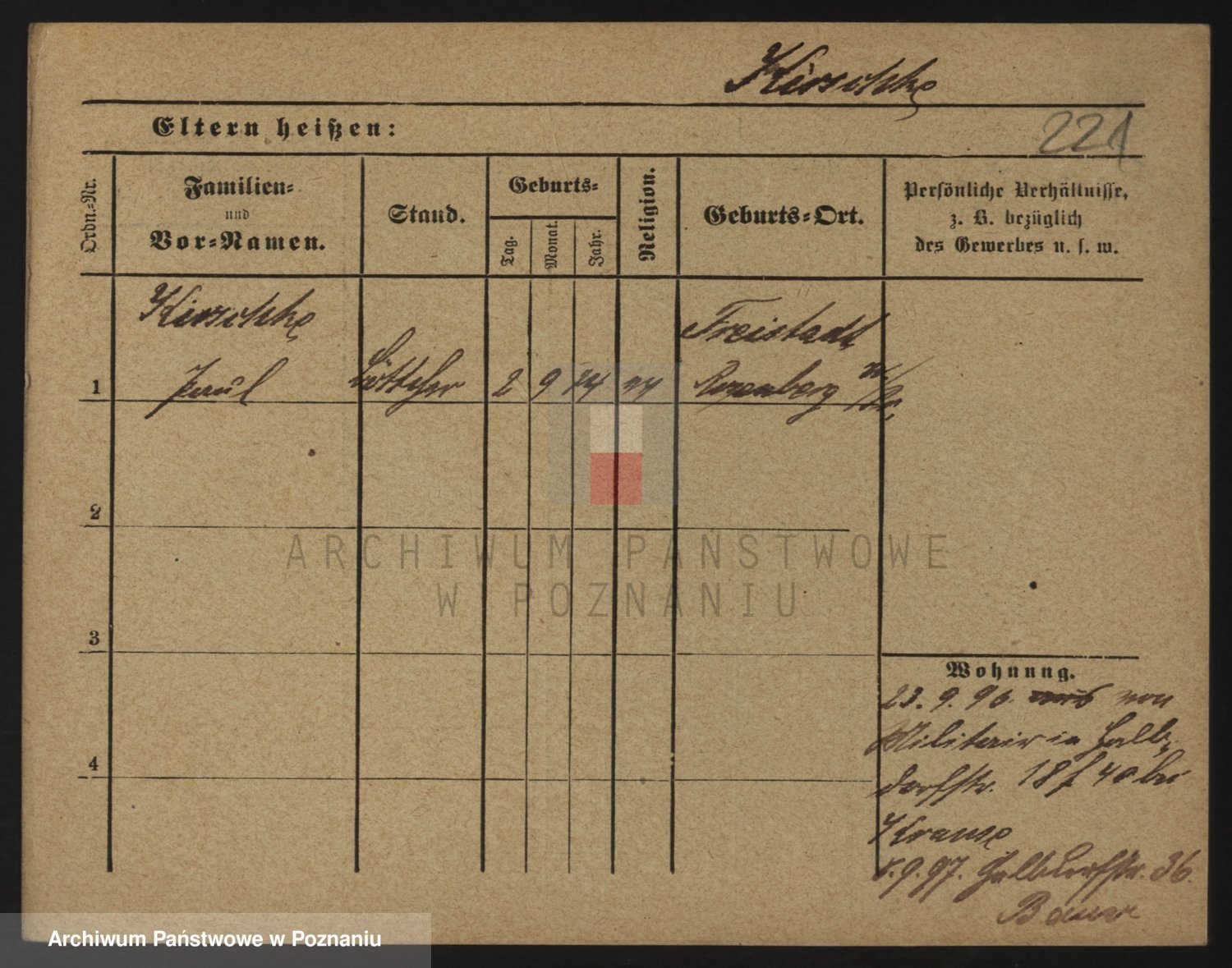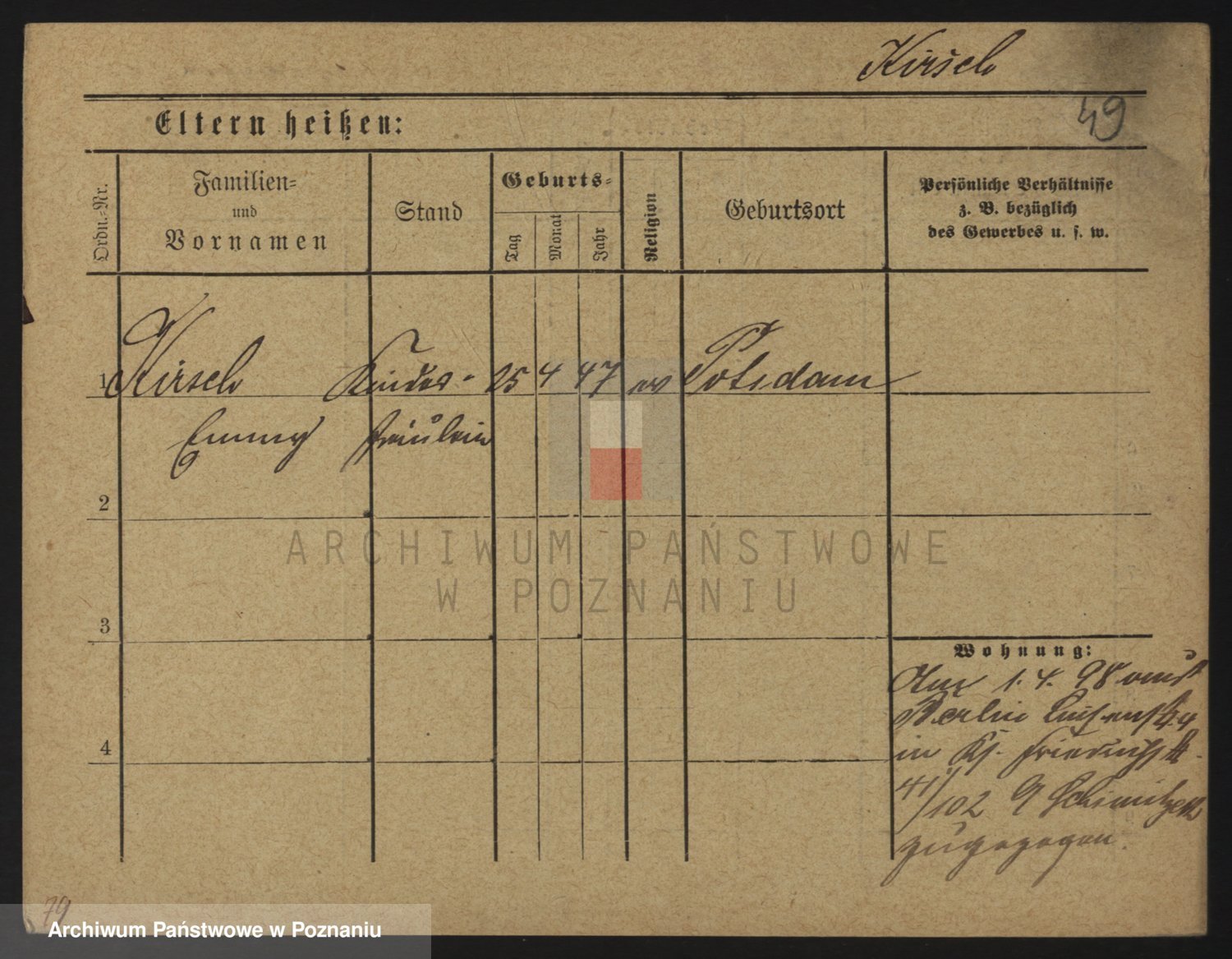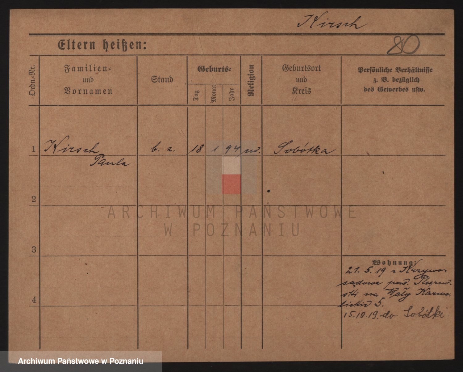 Podgląd karty osobowej dostępny jest po kliknięciu na nazwisko lub ikonkę karty. Można dokonywać powiększenia (ikony na górze) lub przechodzić między kolejnymi skanami (strzałki po bokach).