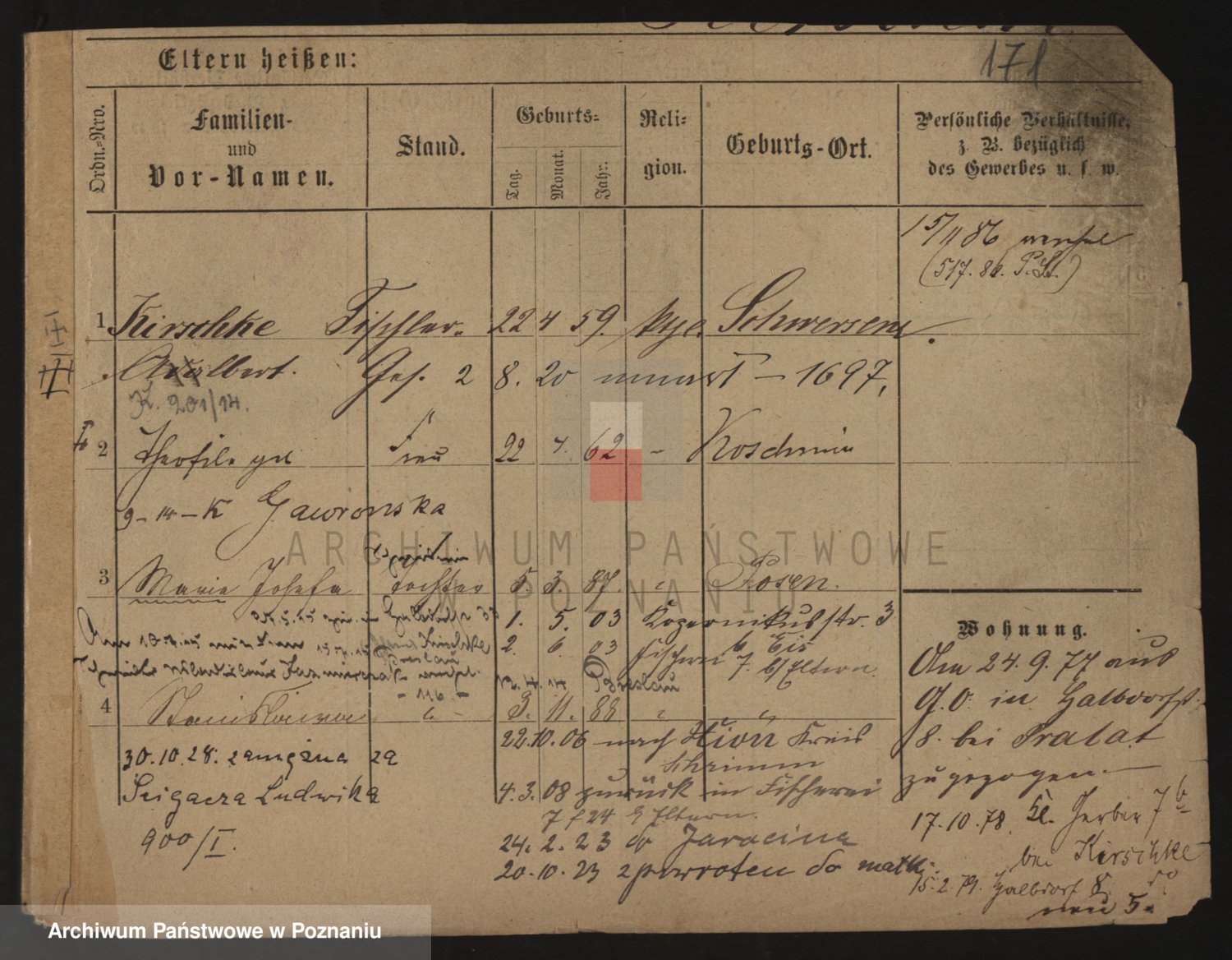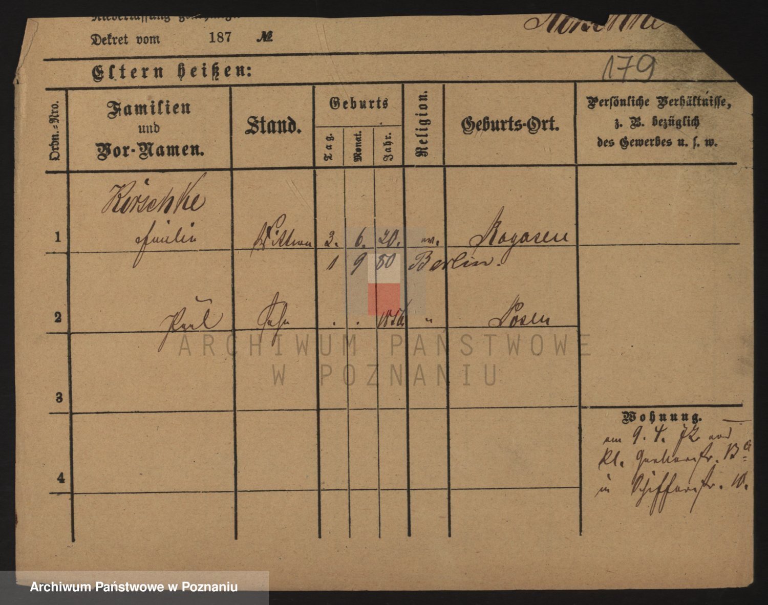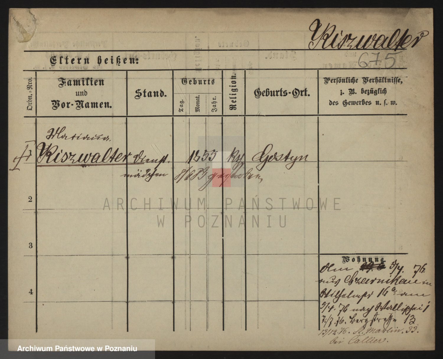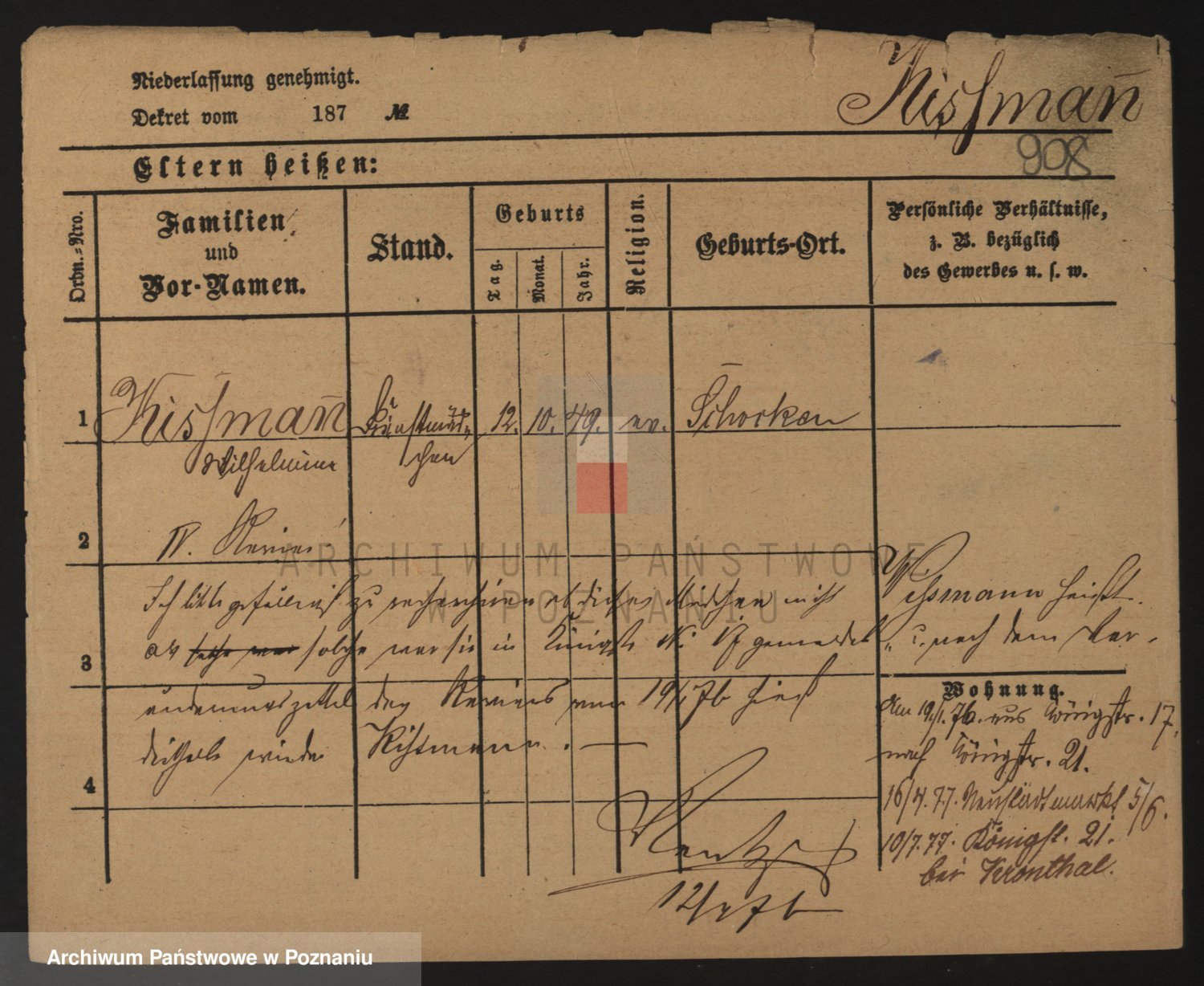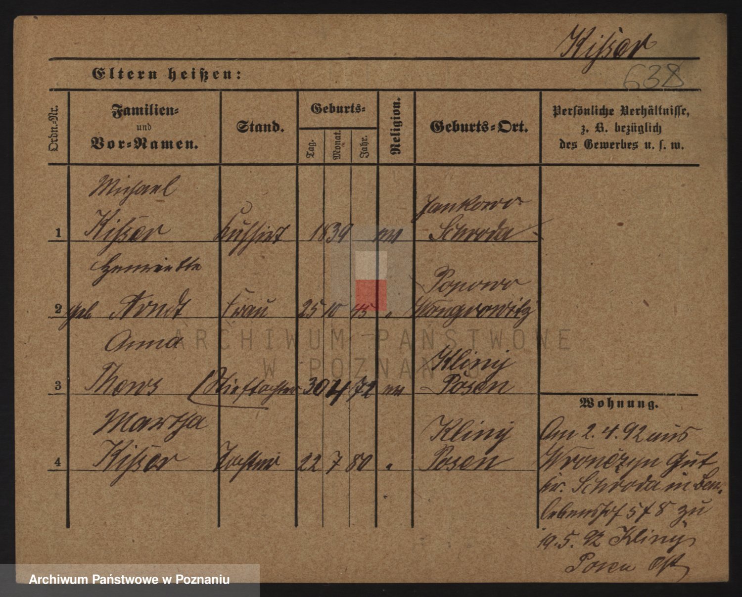 Podgląd karty osobowej dostępny jest po kliknięciu na nazwisko lub ikonkę karty. Można dokonywać powiększenia (ikony na górze) lub przechodzić między kolejnymi skanami (strzałki po bokach).