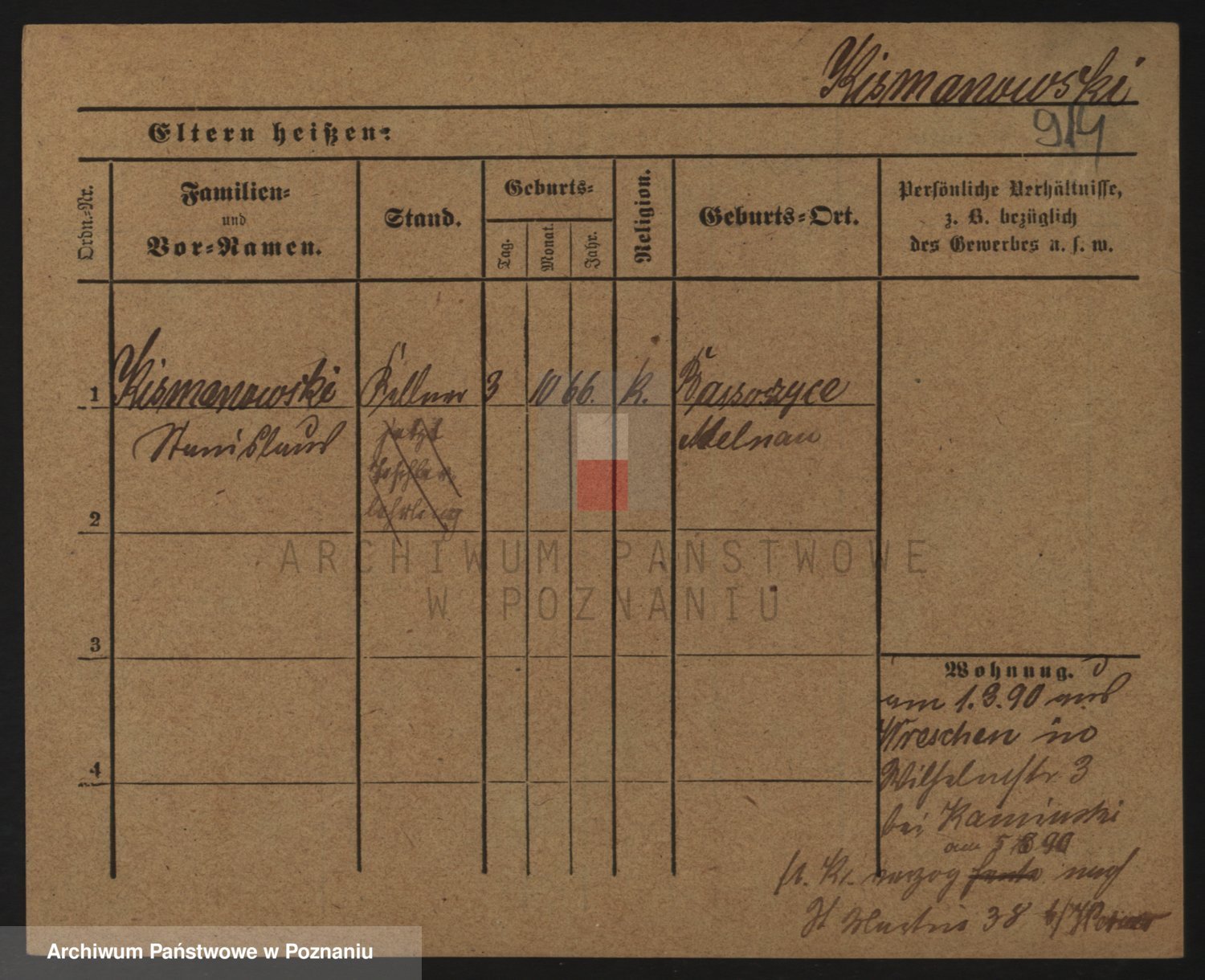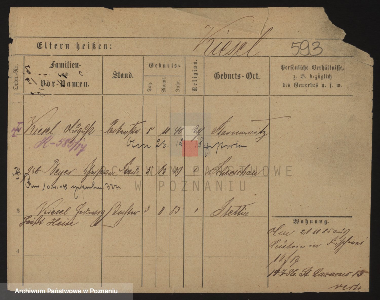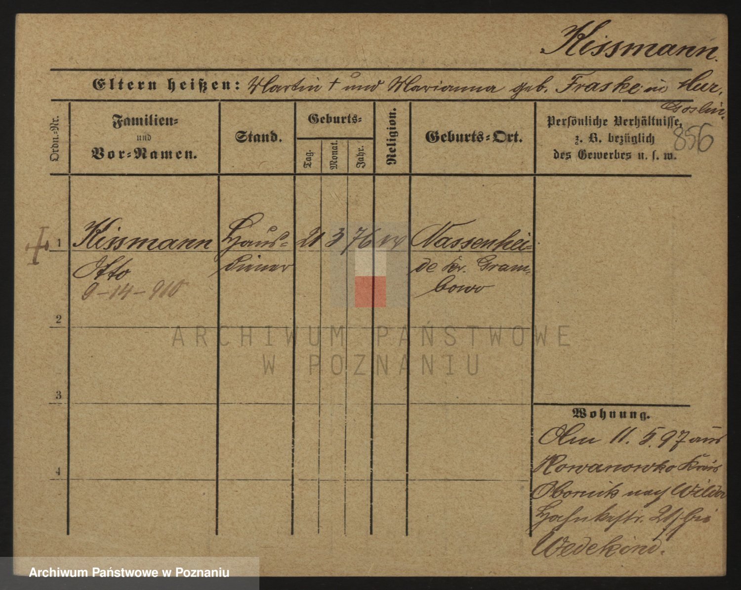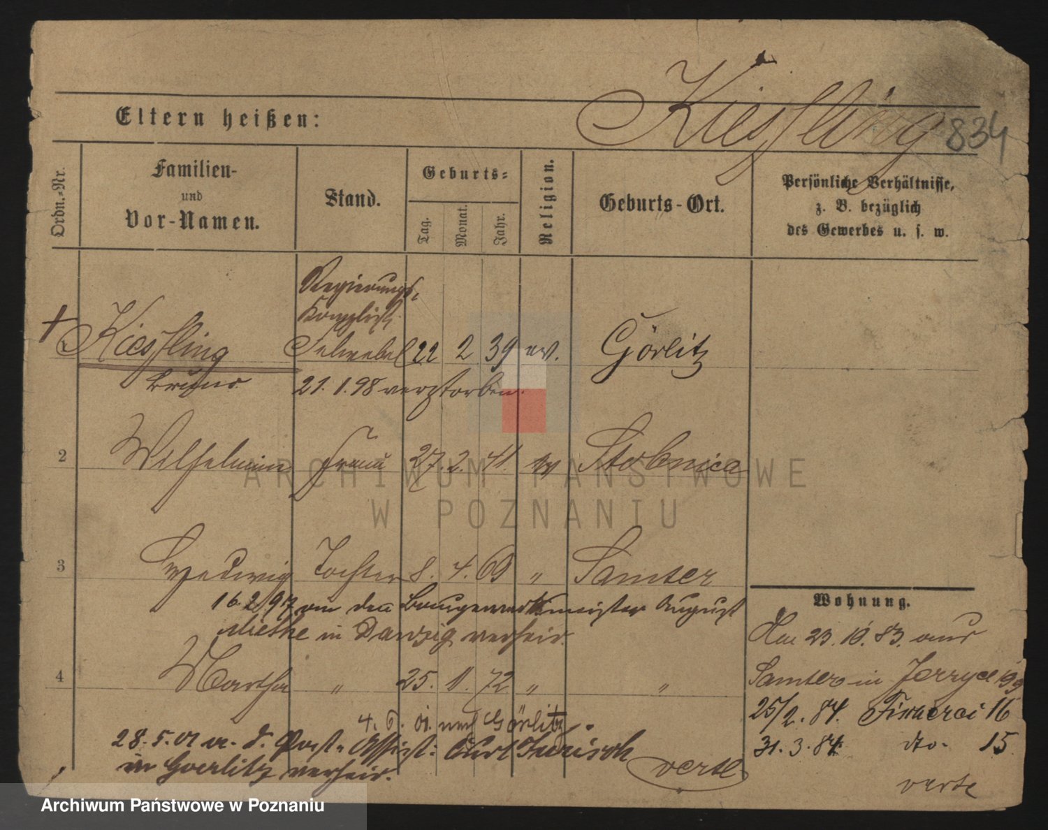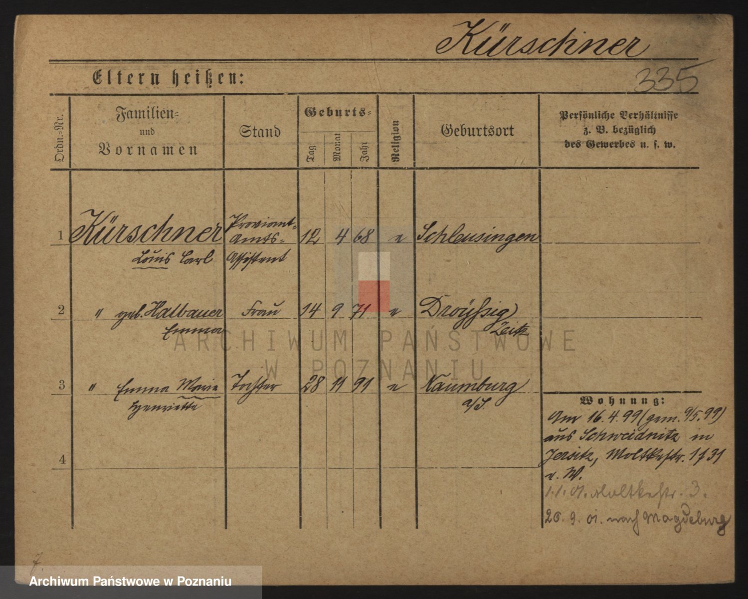 Podgląd karty osobowej dostępny jest po kliknięciu na nazwisko lub ikonkę karty. Można dokonywać powiększenia (ikony na górze) lub przechodzić między kolejnymi skanami (strzałki po bokach).