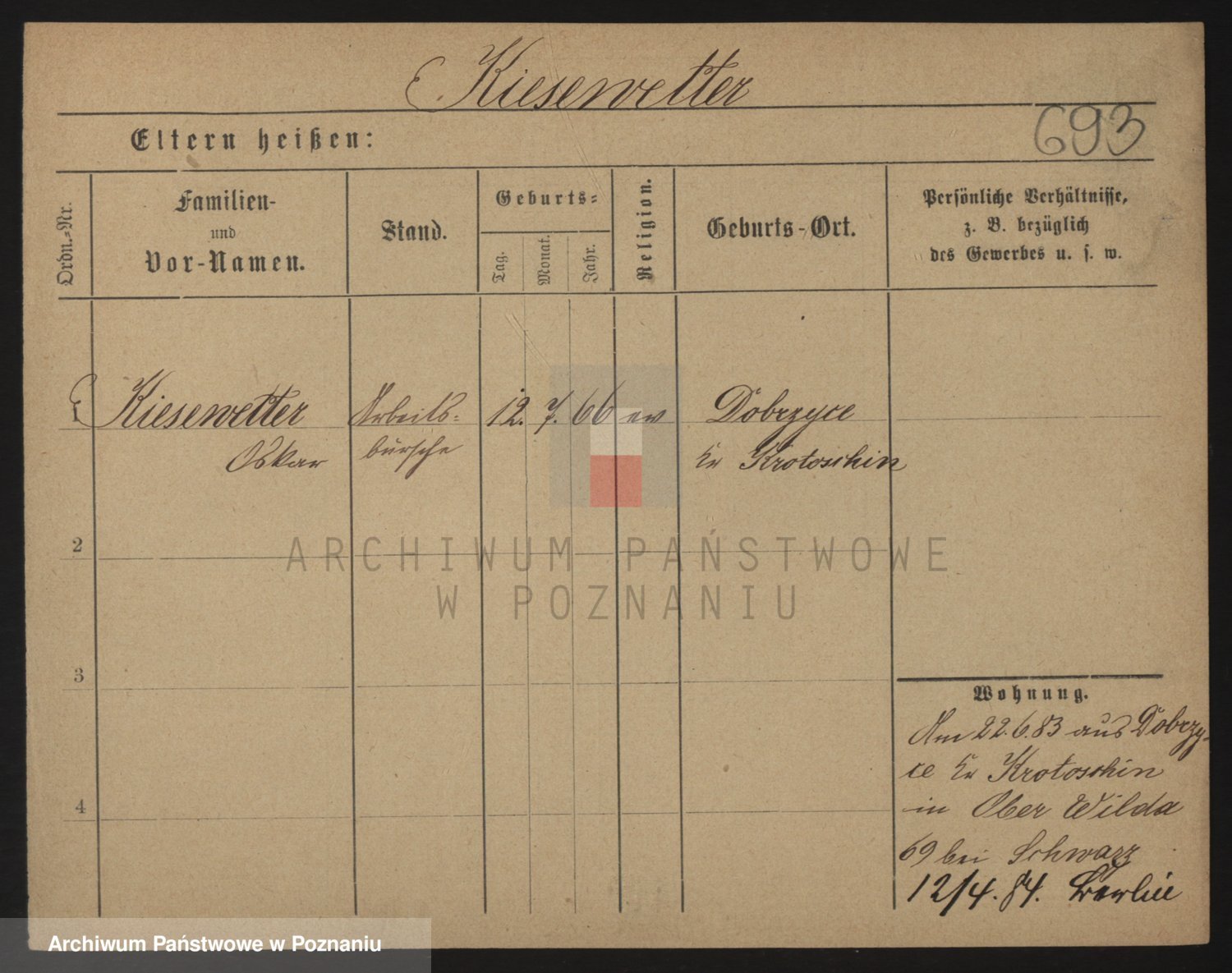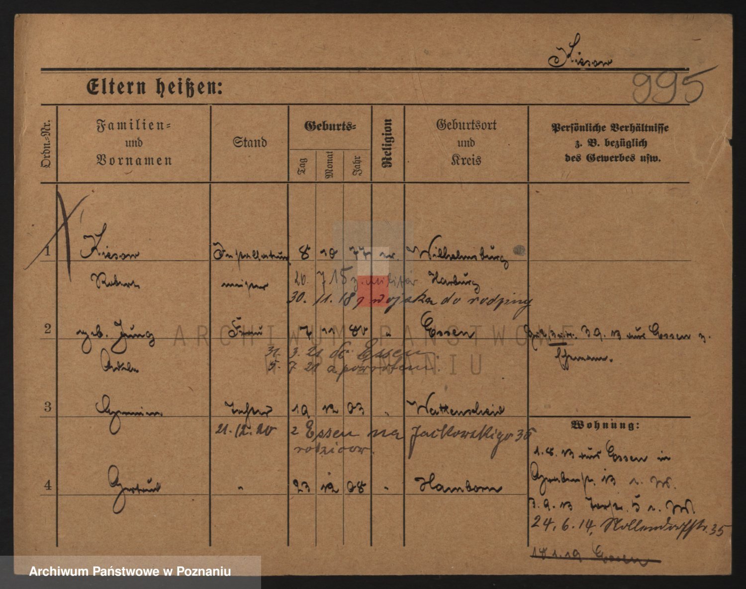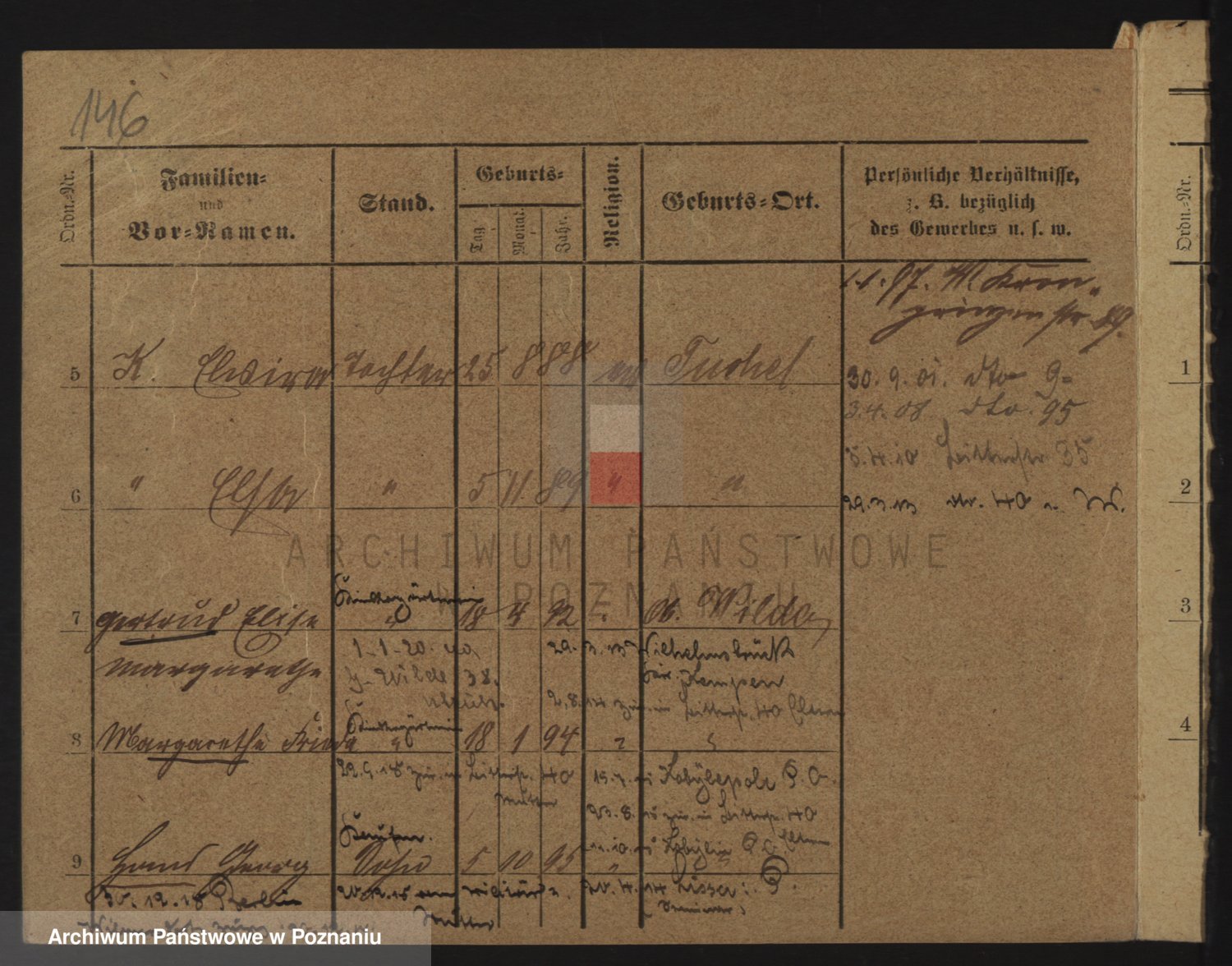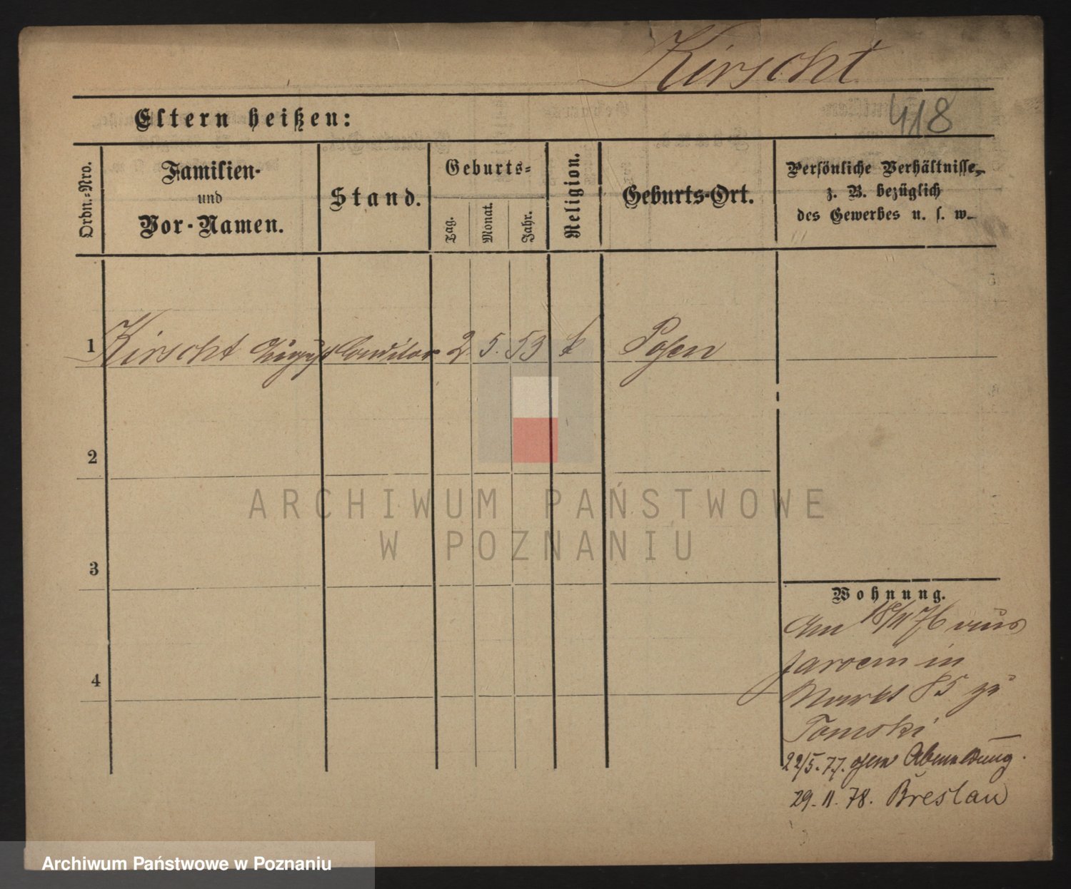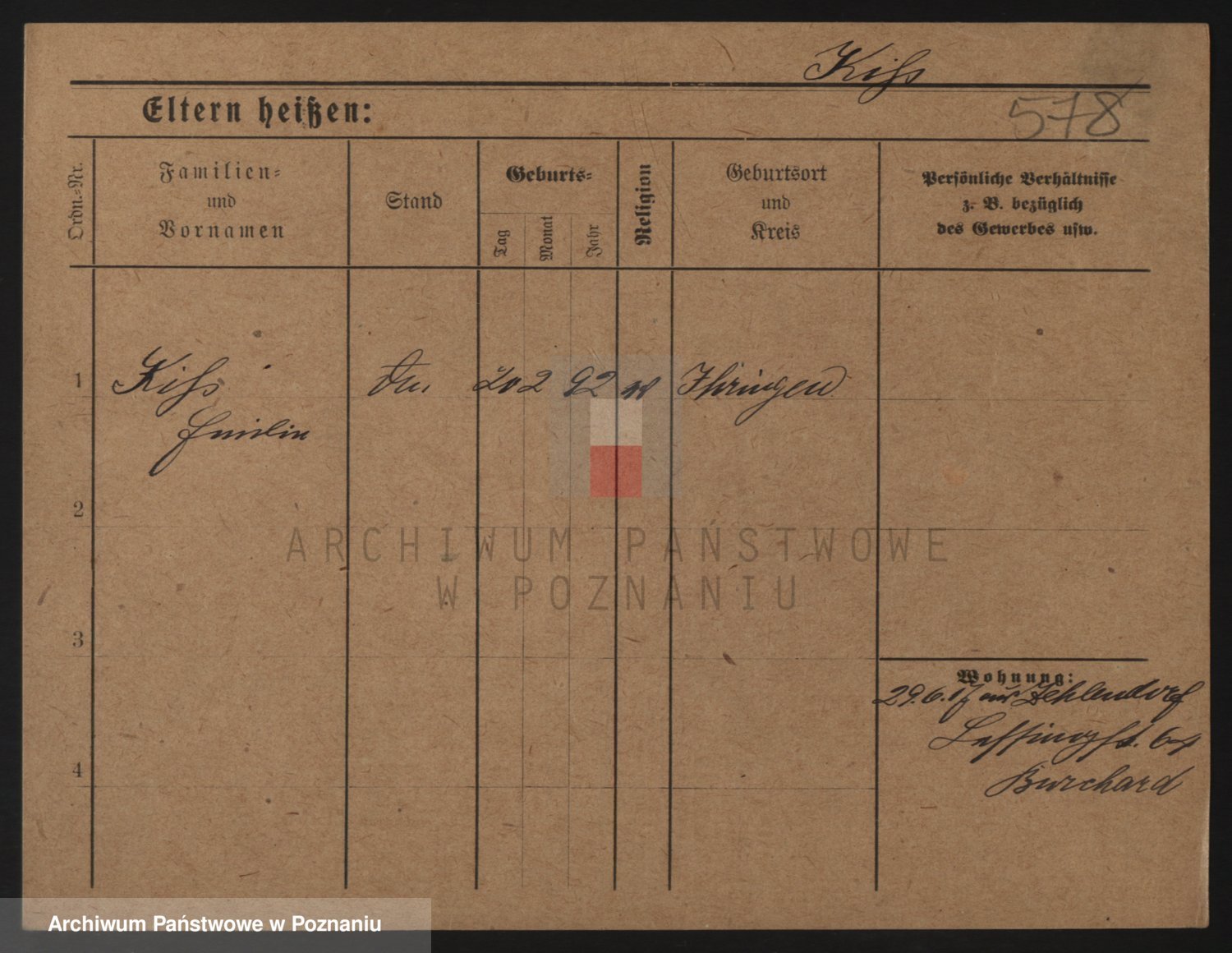 Podgląd karty osobowej dostępny jest po kliknięciu na nazwisko lub ikonkę karty. Można dokonywać powiększenia (ikony na górze) lub przechodzić między kolejnymi skanami (strzałki po bokach).