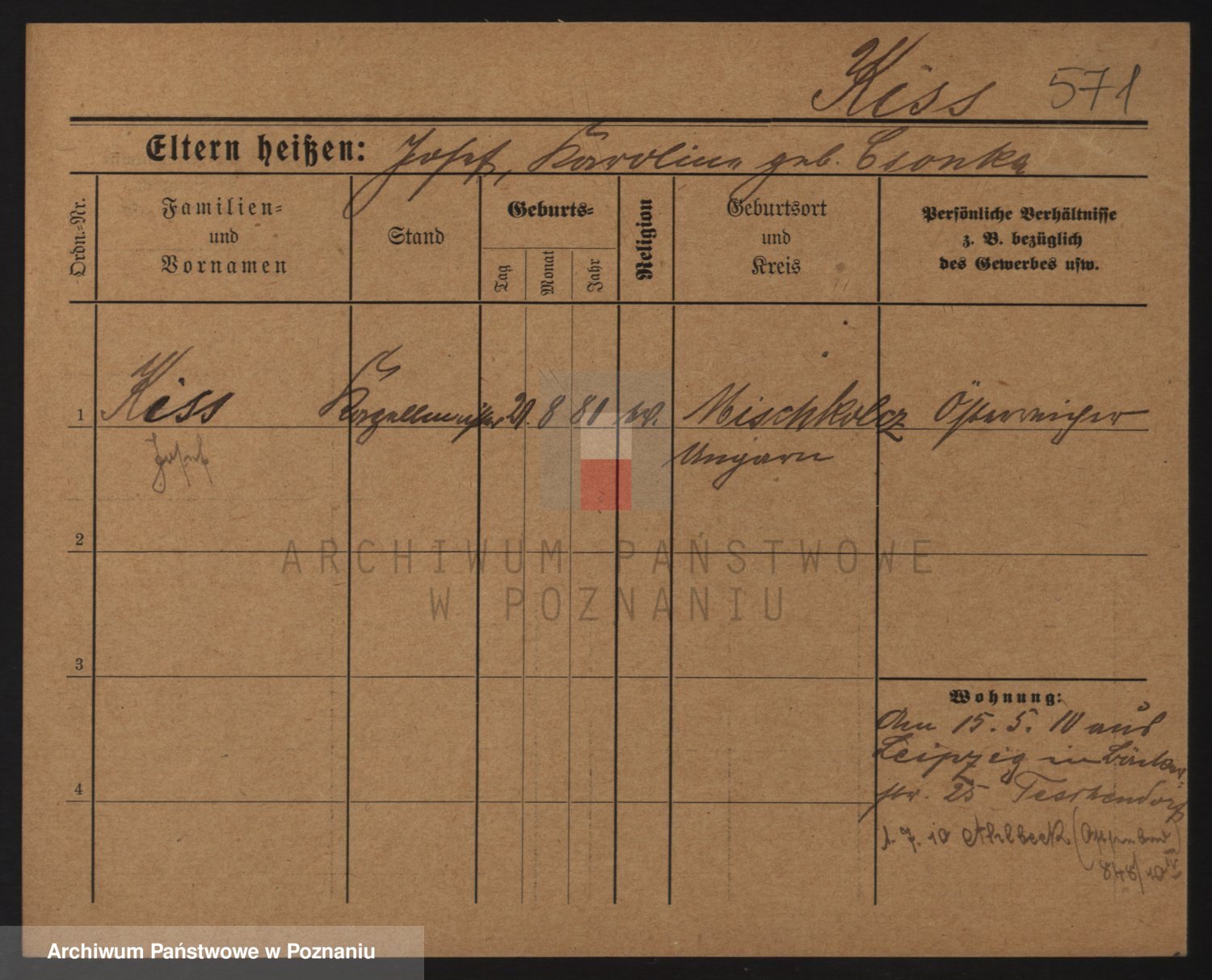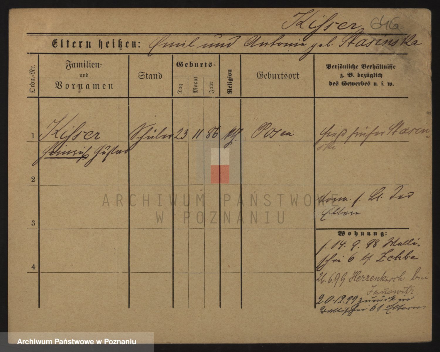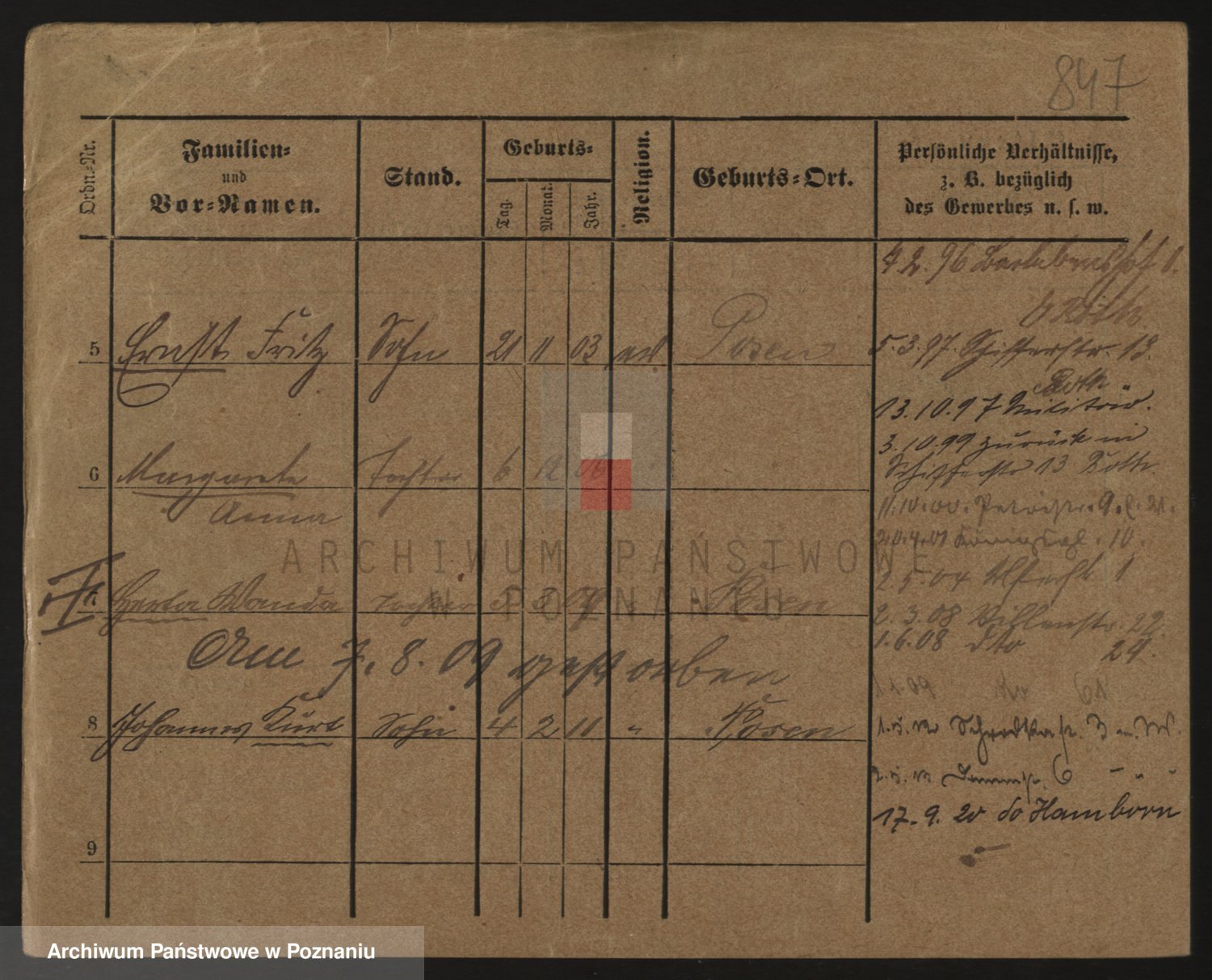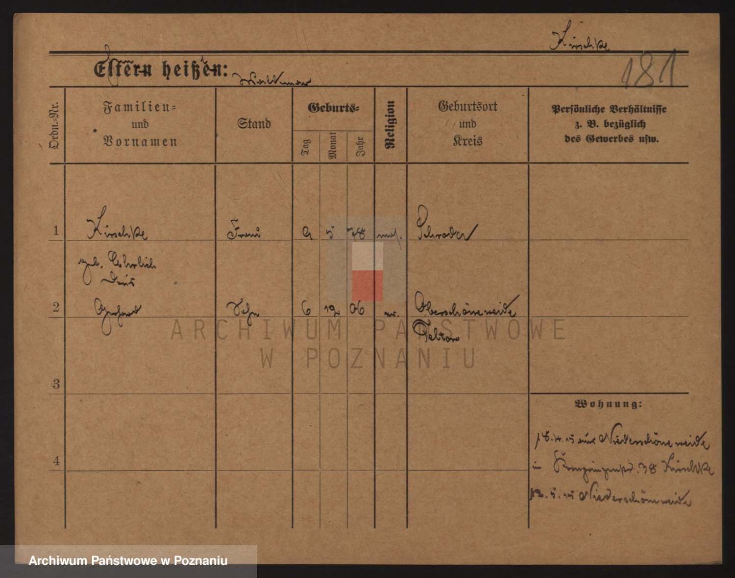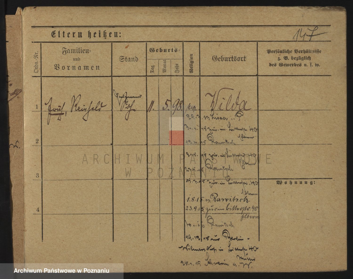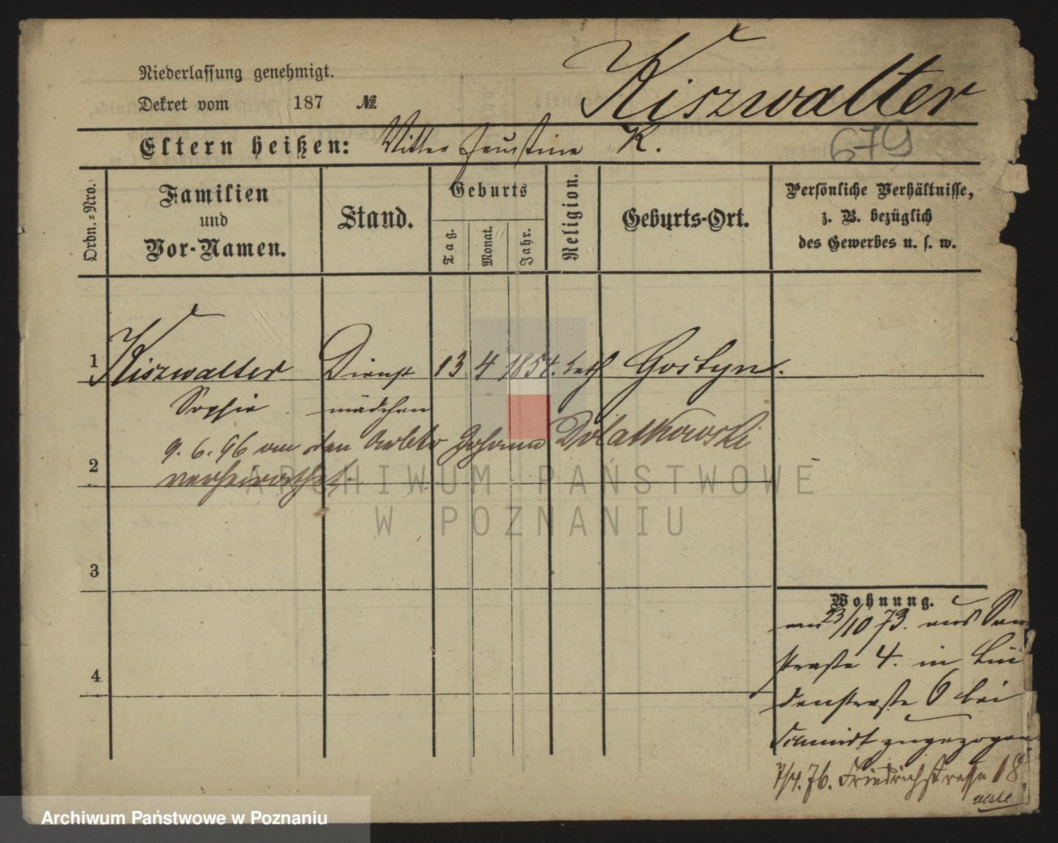 Podgląd karty osobowej dostępny jest po kliknięciu na nazwisko lub ikonkę karty. Można dokonywać powiększenia (ikony na górze) lub przechodzić między kolejnymi skanami (strzałki po bokach).