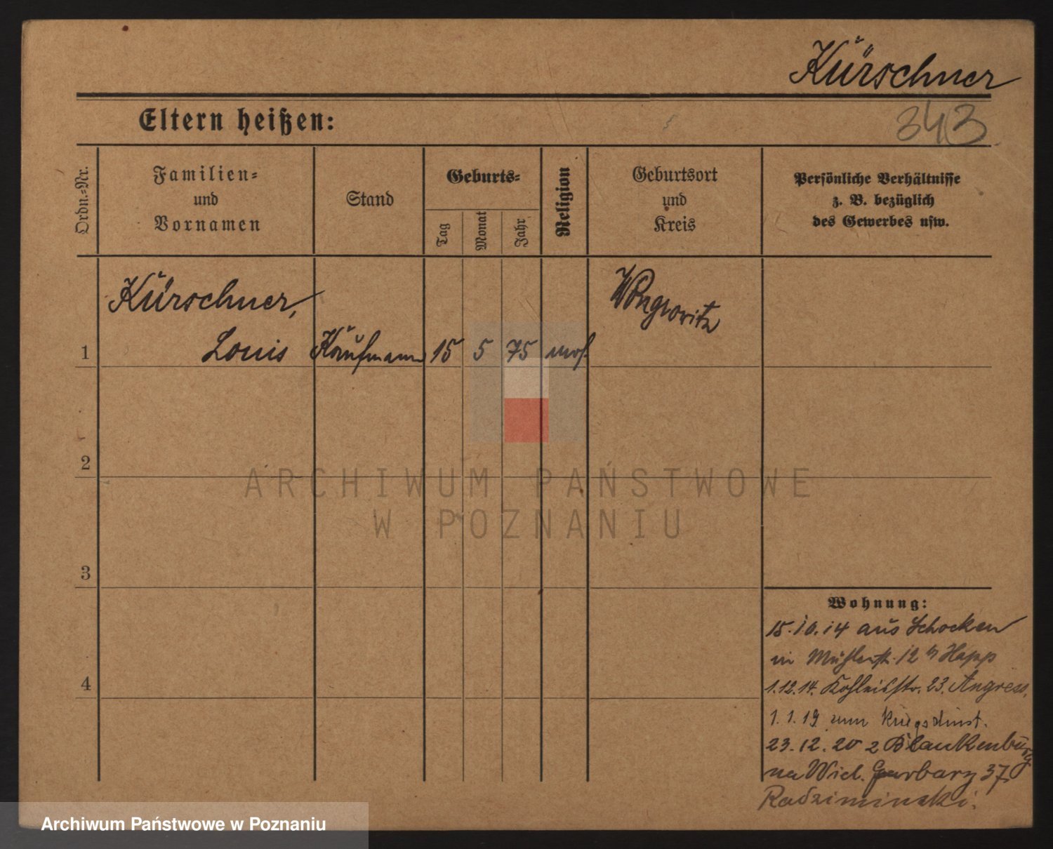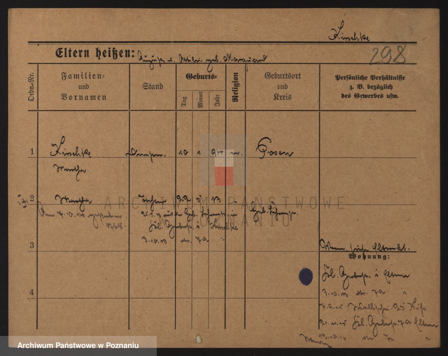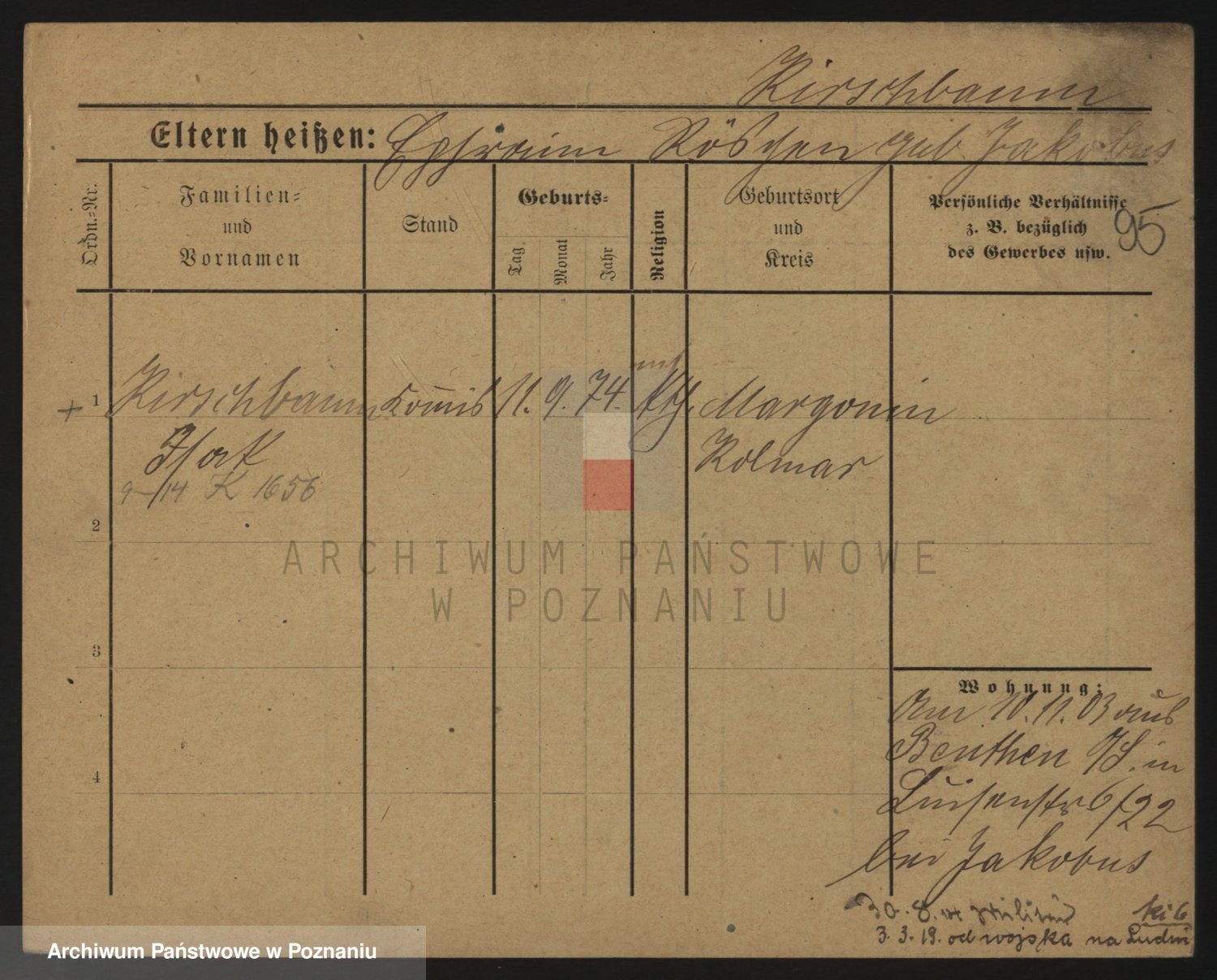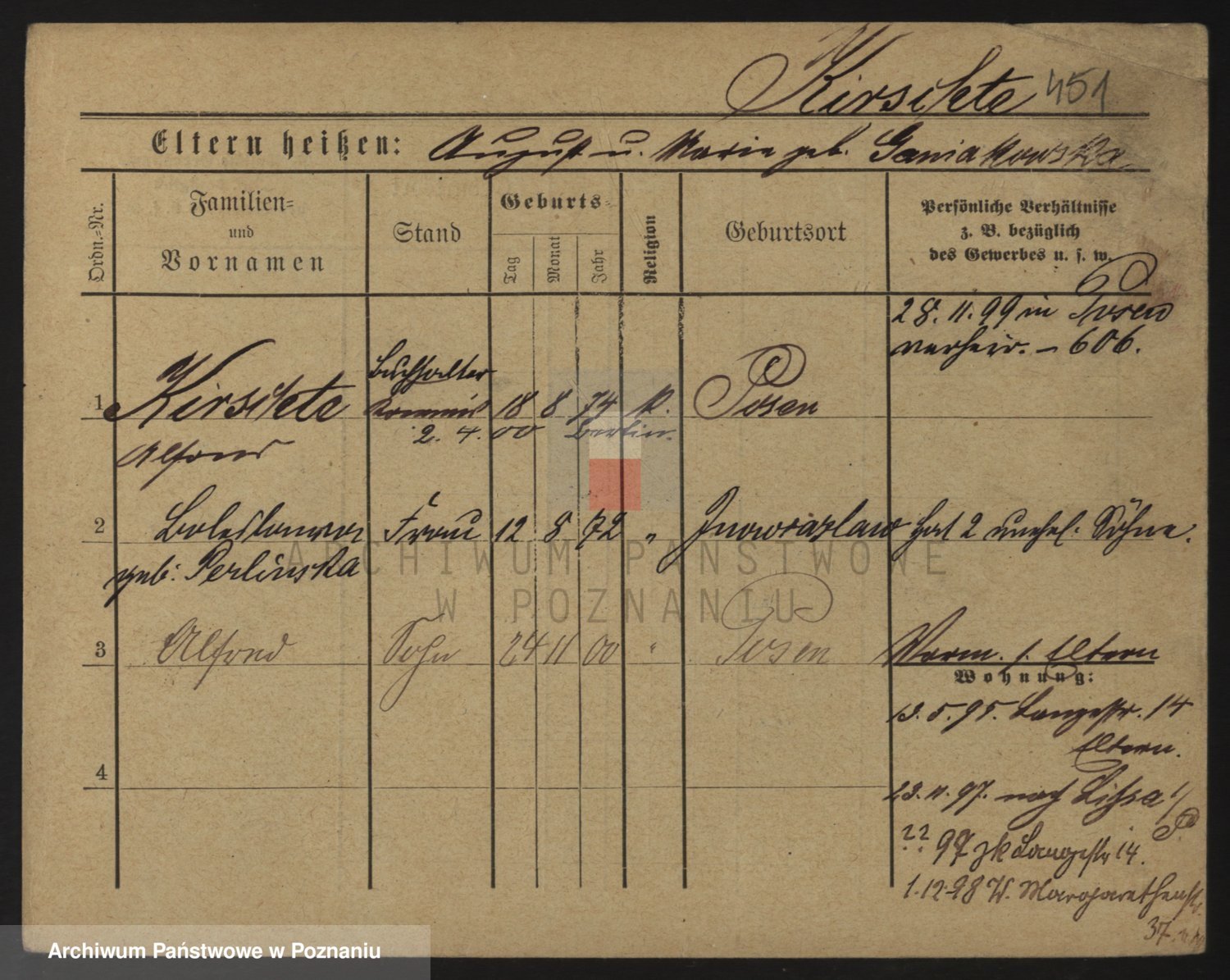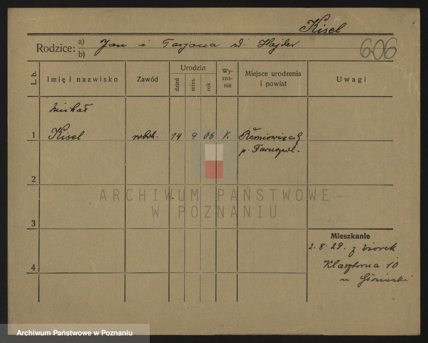 Podgląd karty osobowej dostępny jest po kliknięciu na nazwisko lub ikonkę karty. Można dokonywać powiększenia (ikony na górze) lub przechodzić między kolejnymi skanami (strzałki po bokach).