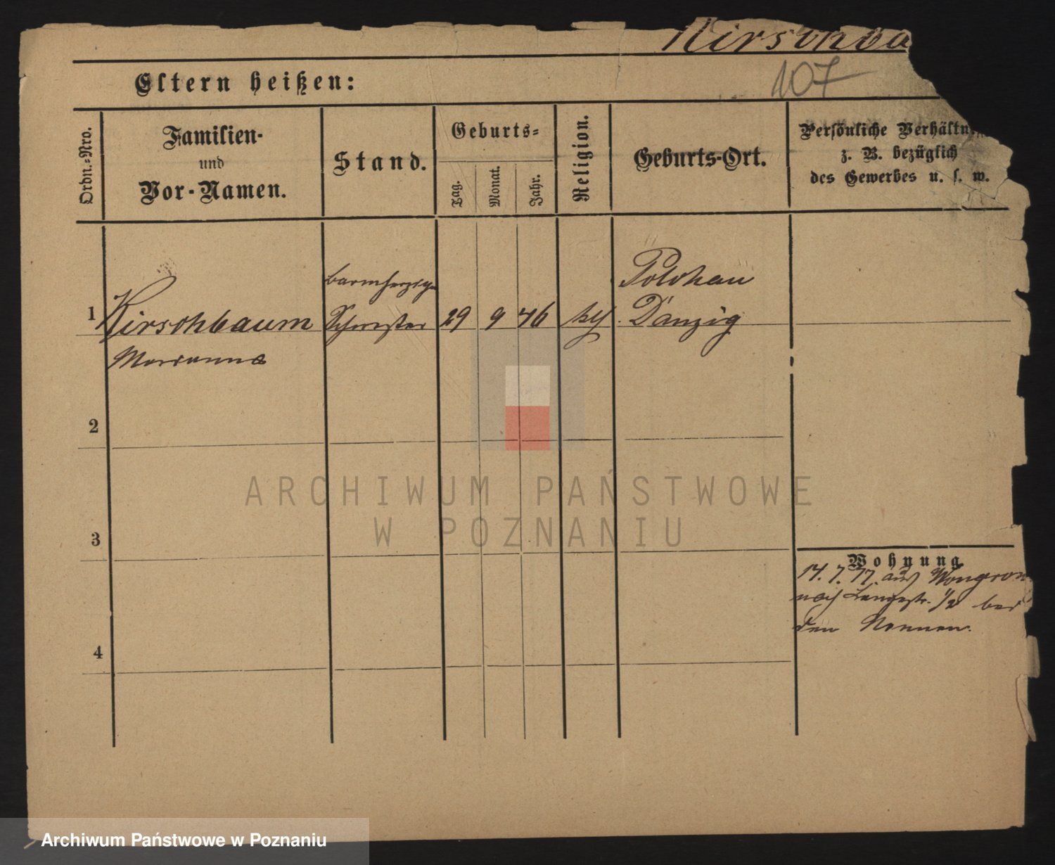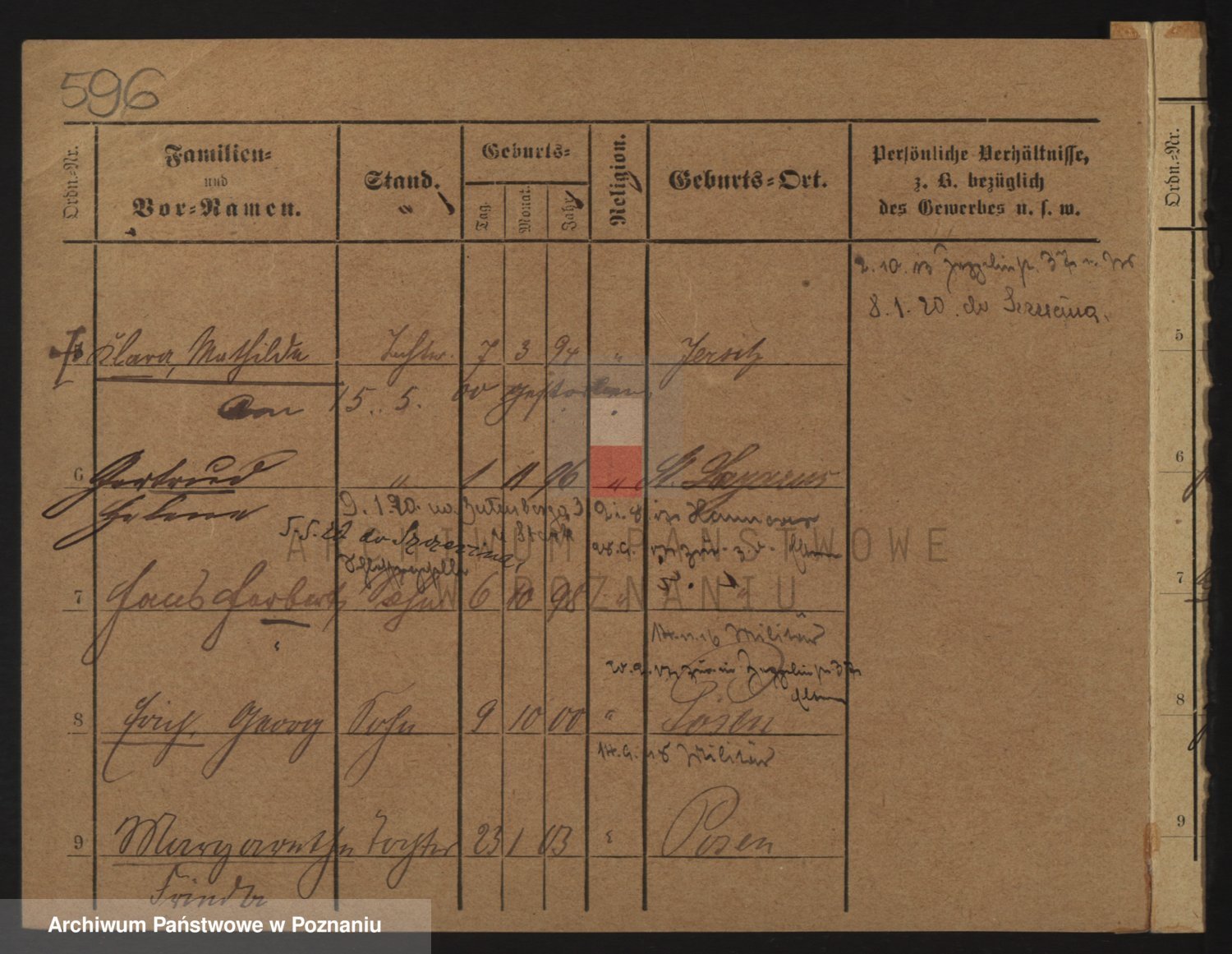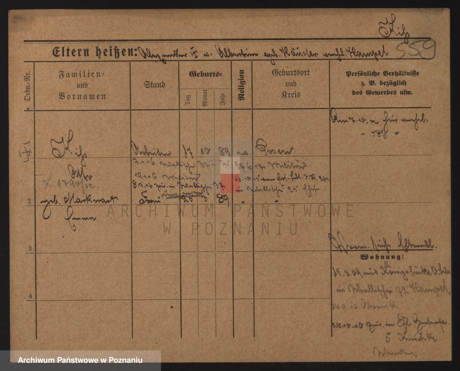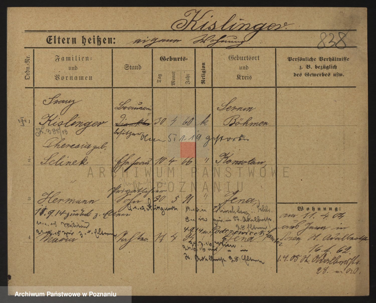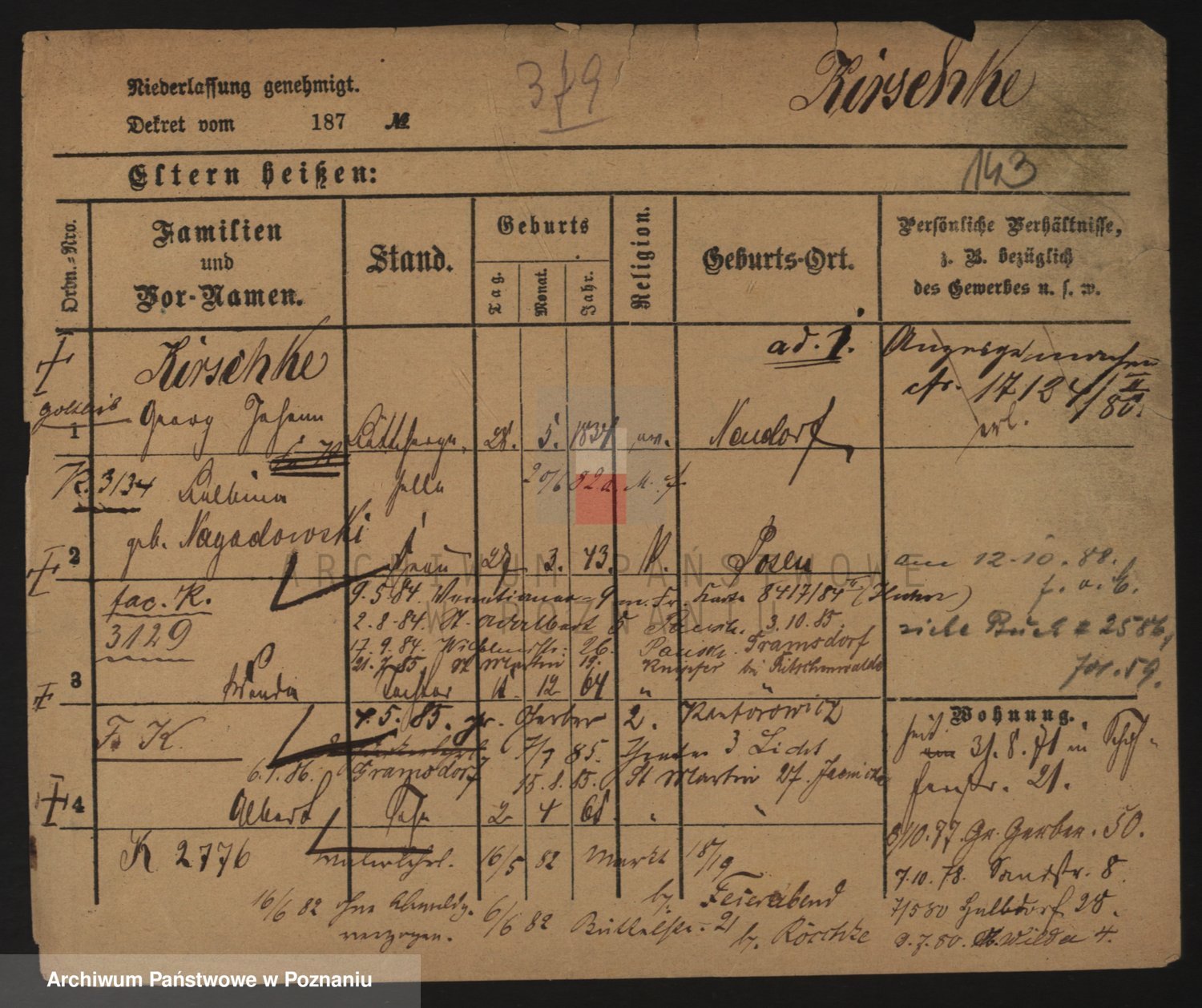 Podgląd karty osobowej dostępny jest po kliknięciu na nazwisko lub ikonkę karty. Można dokonywać powiększenia (ikony na górze) lub przechodzić między kolejnymi skanami (strzałki po bokach).
