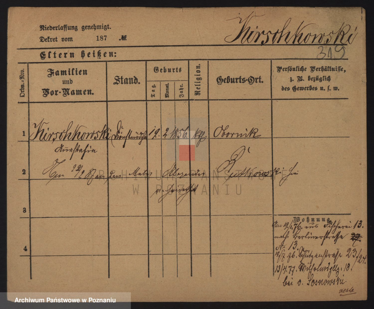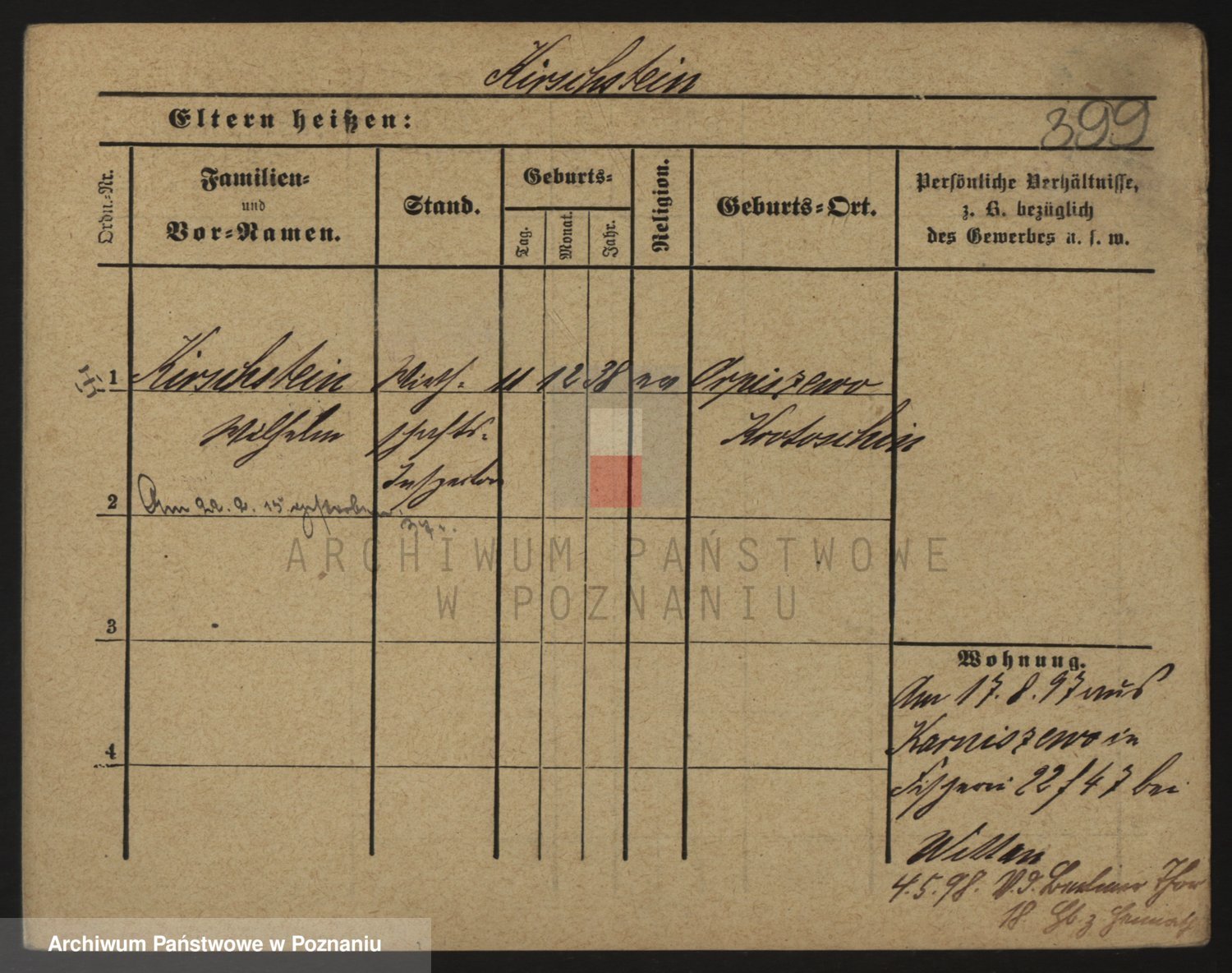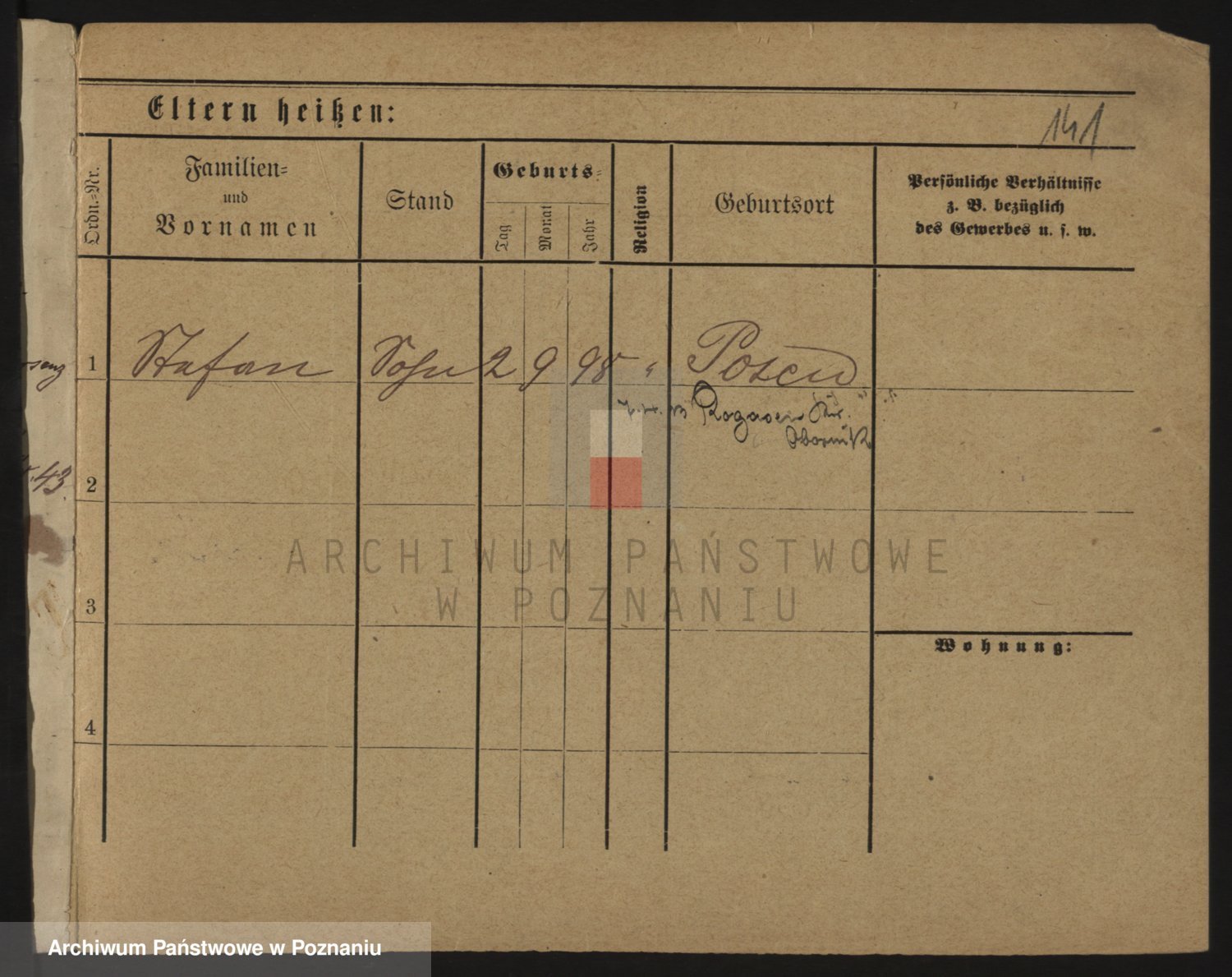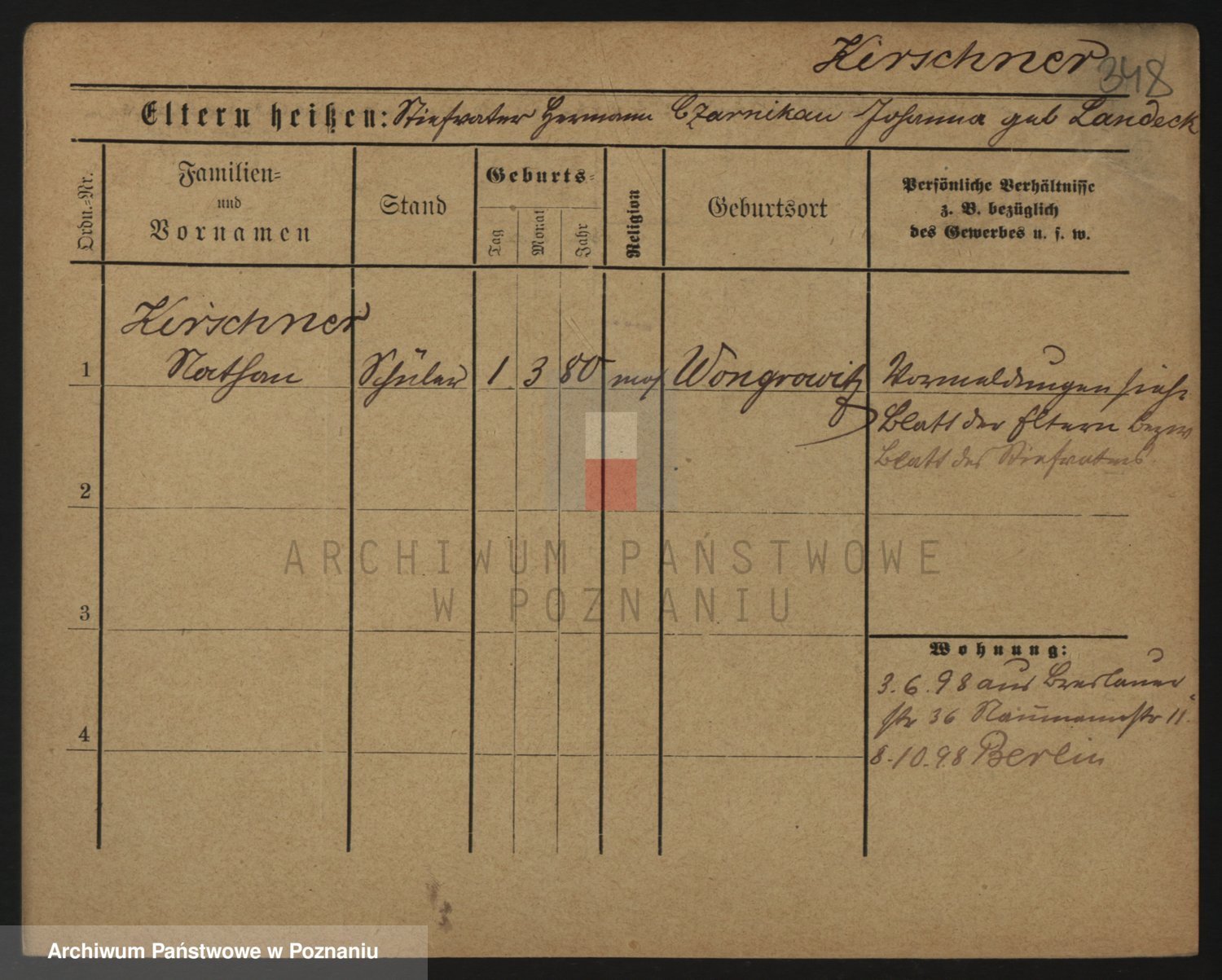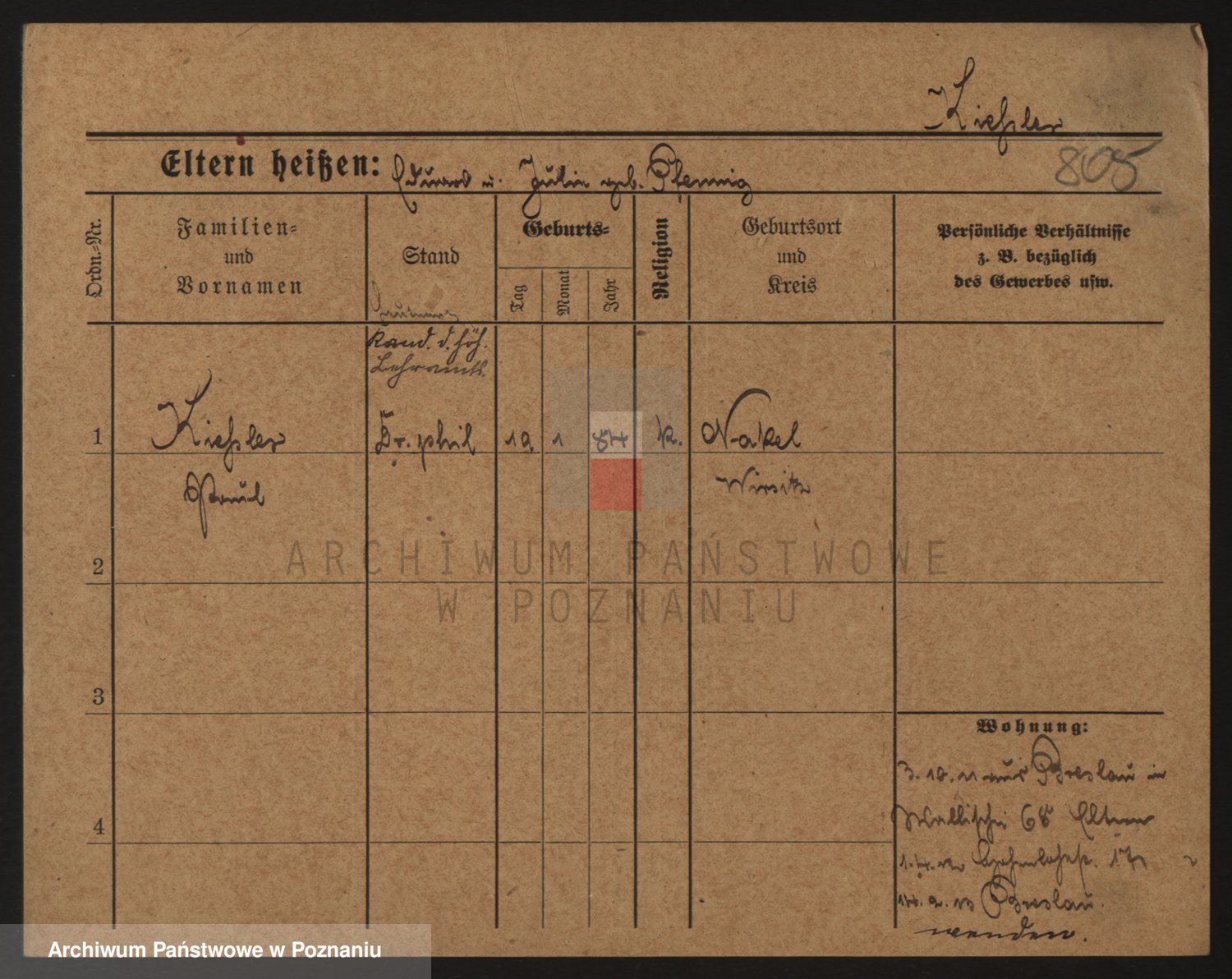 Podgląd karty osobowej dostępny jest po kliknięciu na nazwisko lub ikonkę karty. Można dokonywać powiększenia (ikony na górze) lub przechodzić między kolejnymi skanami (strzałki po bokach).
