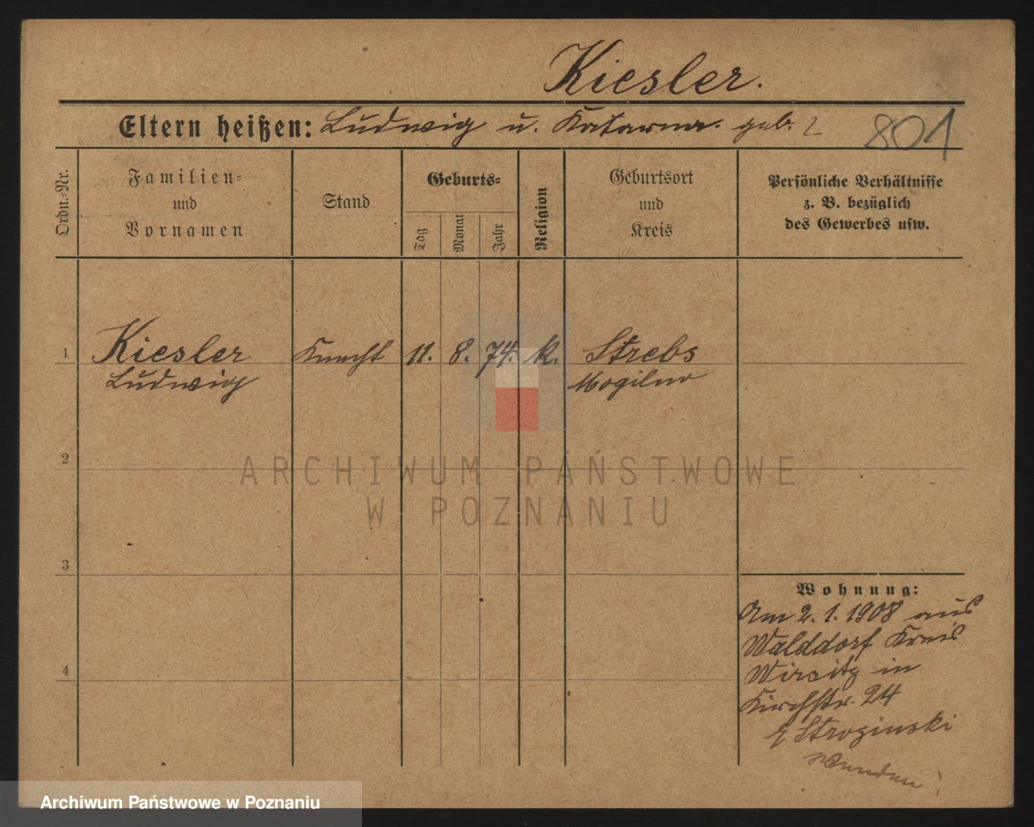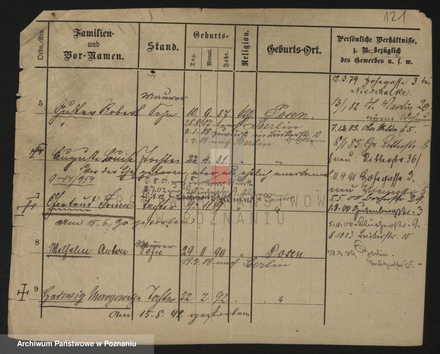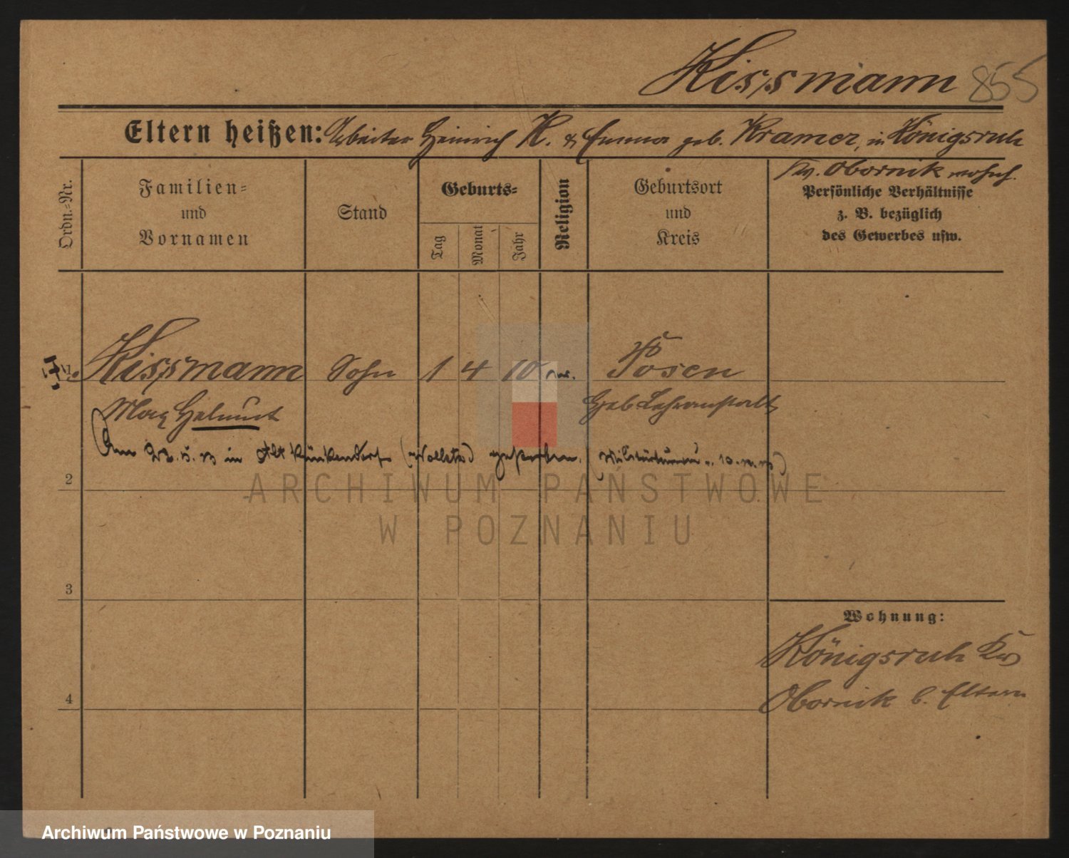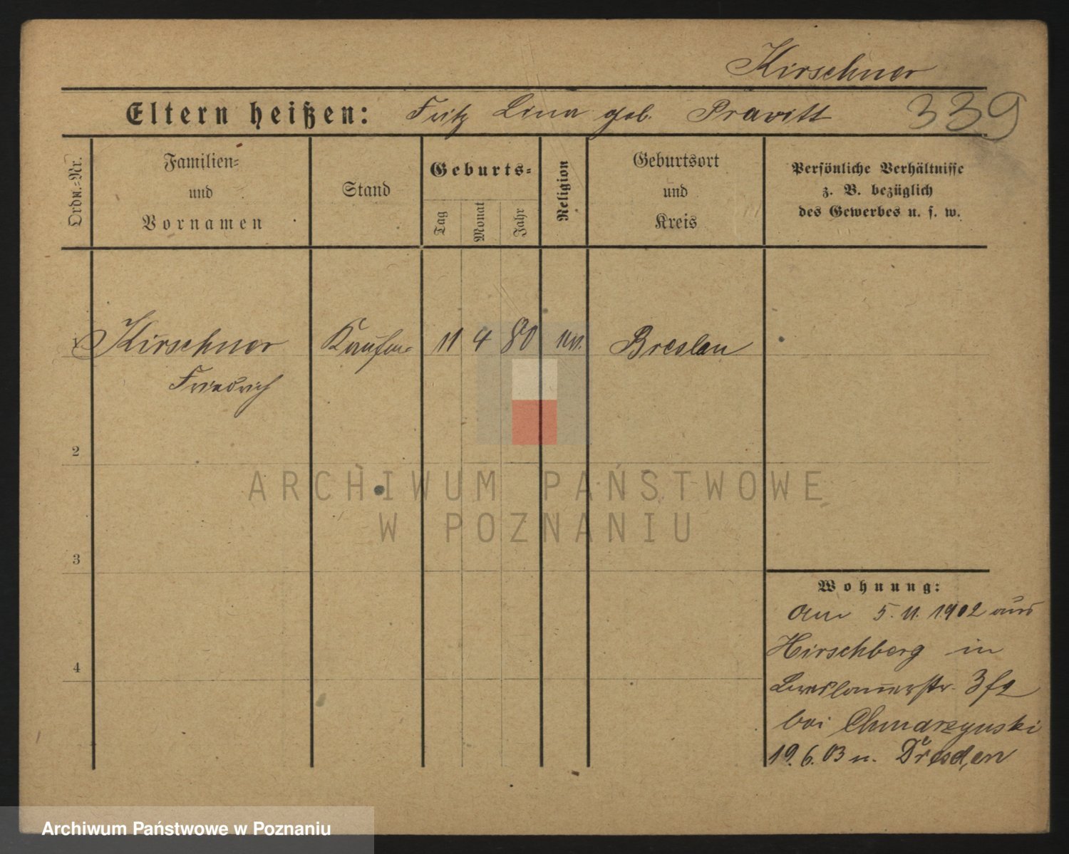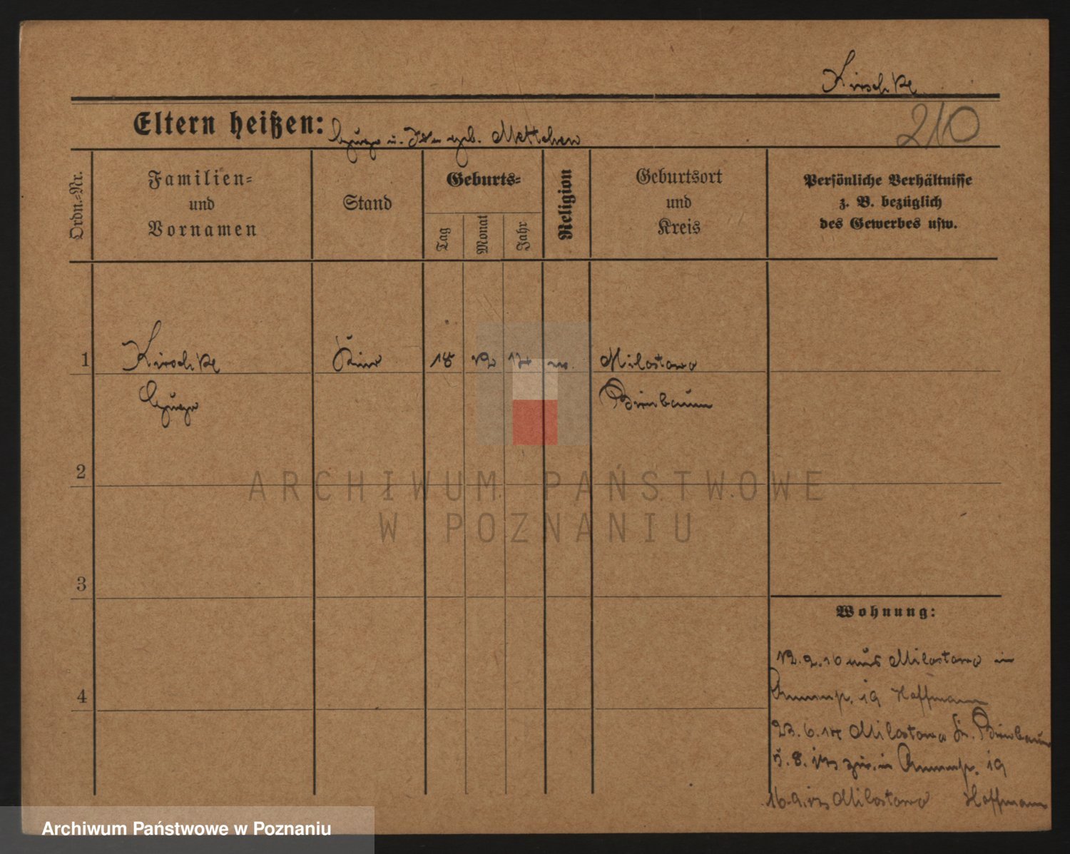 Podgląd karty osobowej dostępny jest po kliknięciu na nazwisko lub ikonkę karty. Można dokonywać powiększenia (ikony na górze) lub przechodzić między kolejnymi skanami (strzałki po bokach).