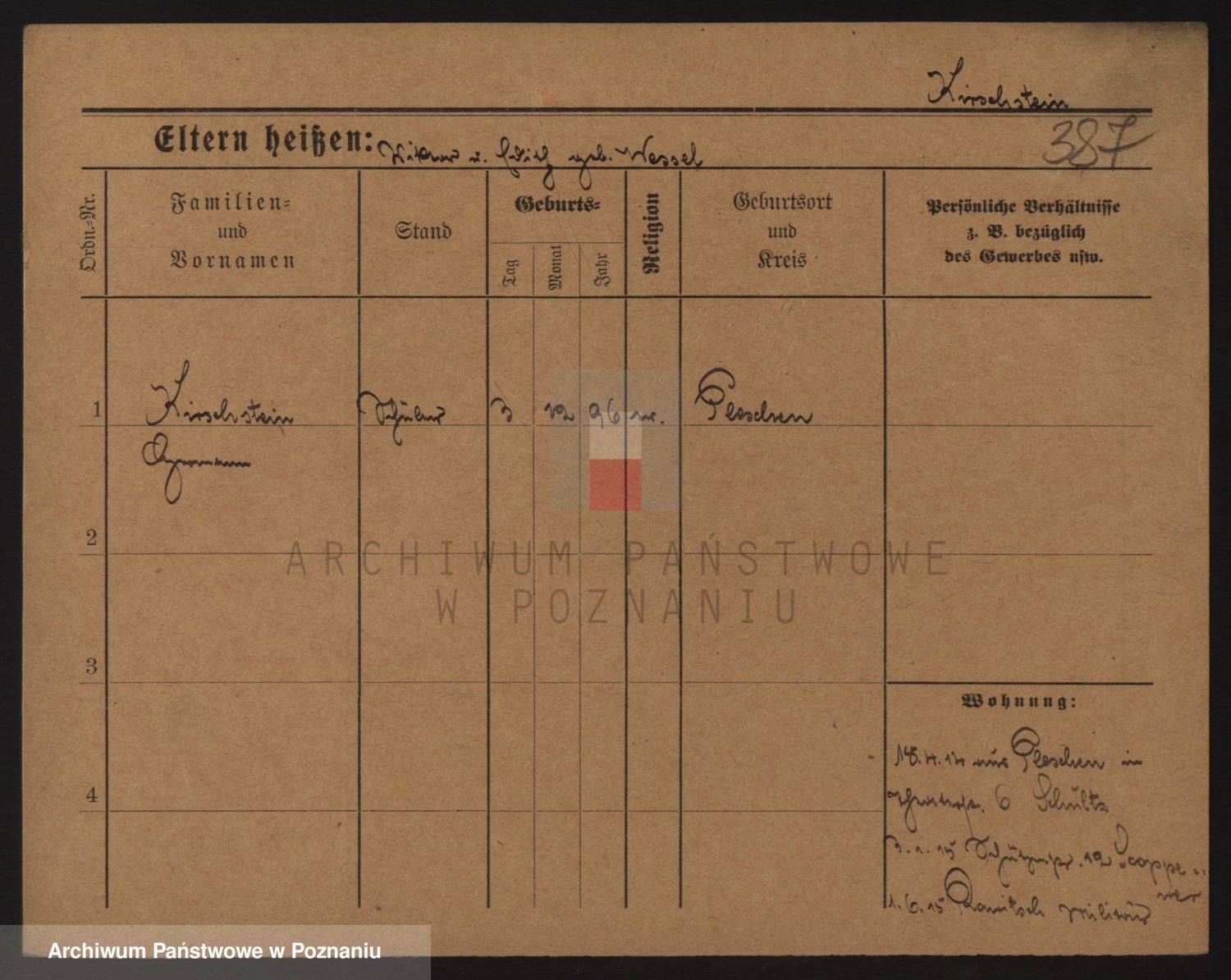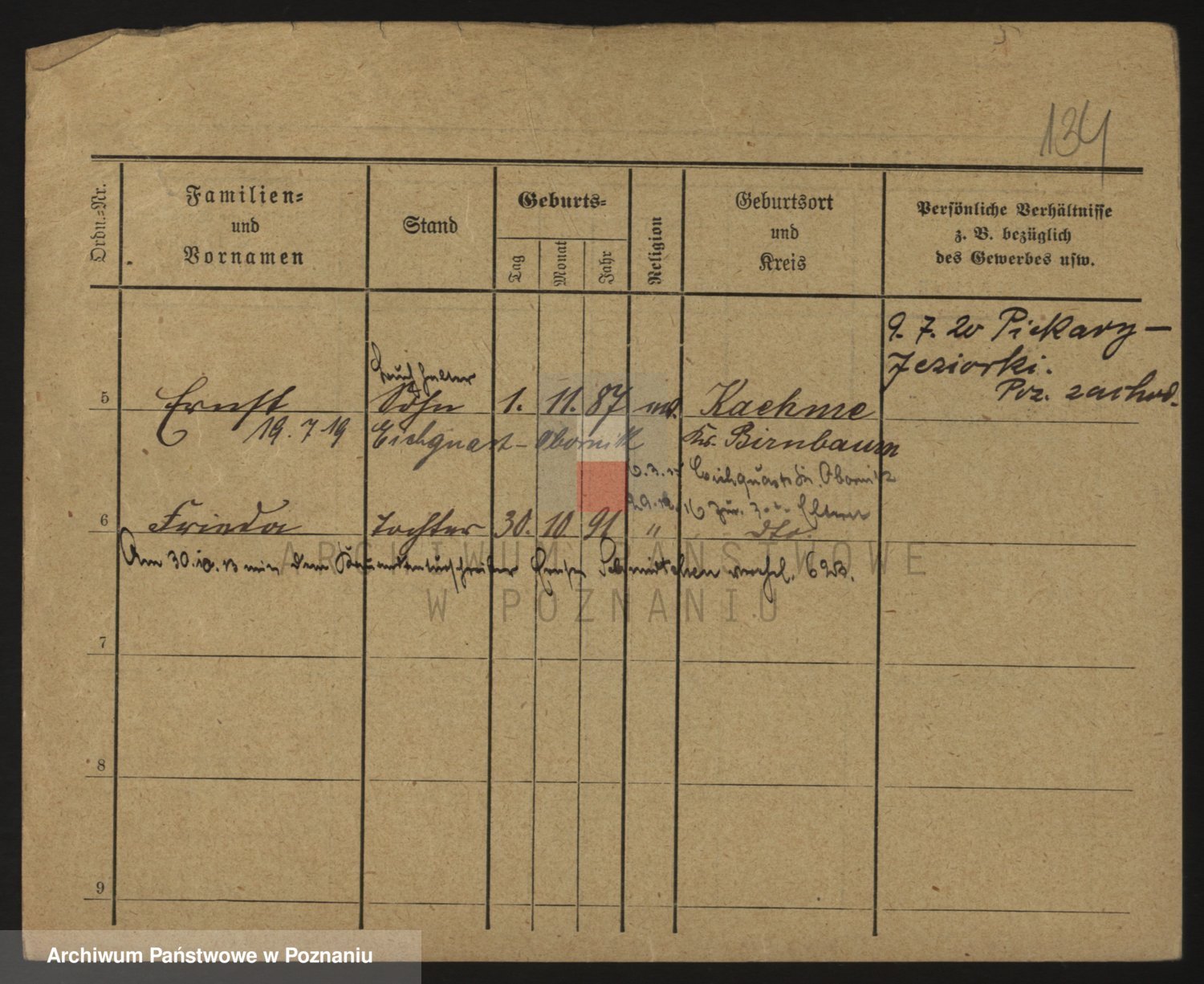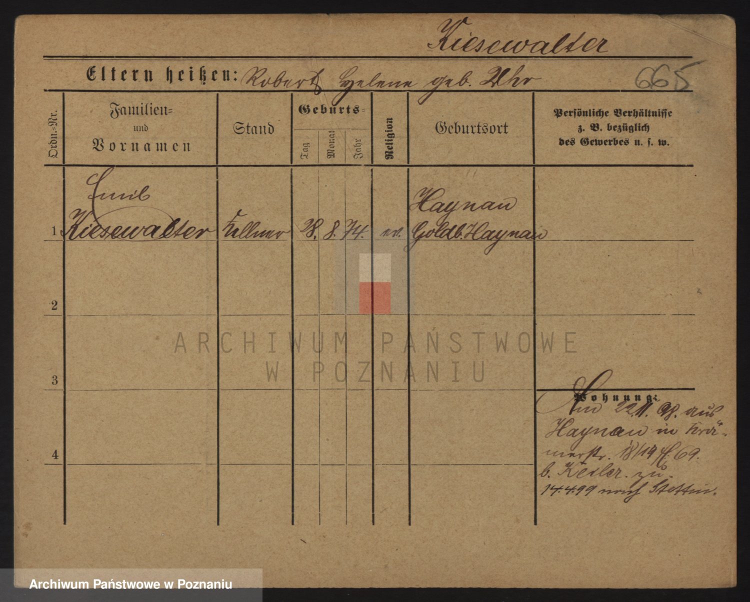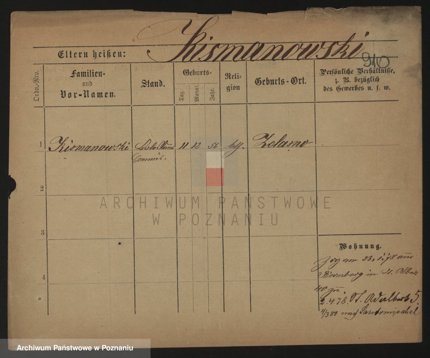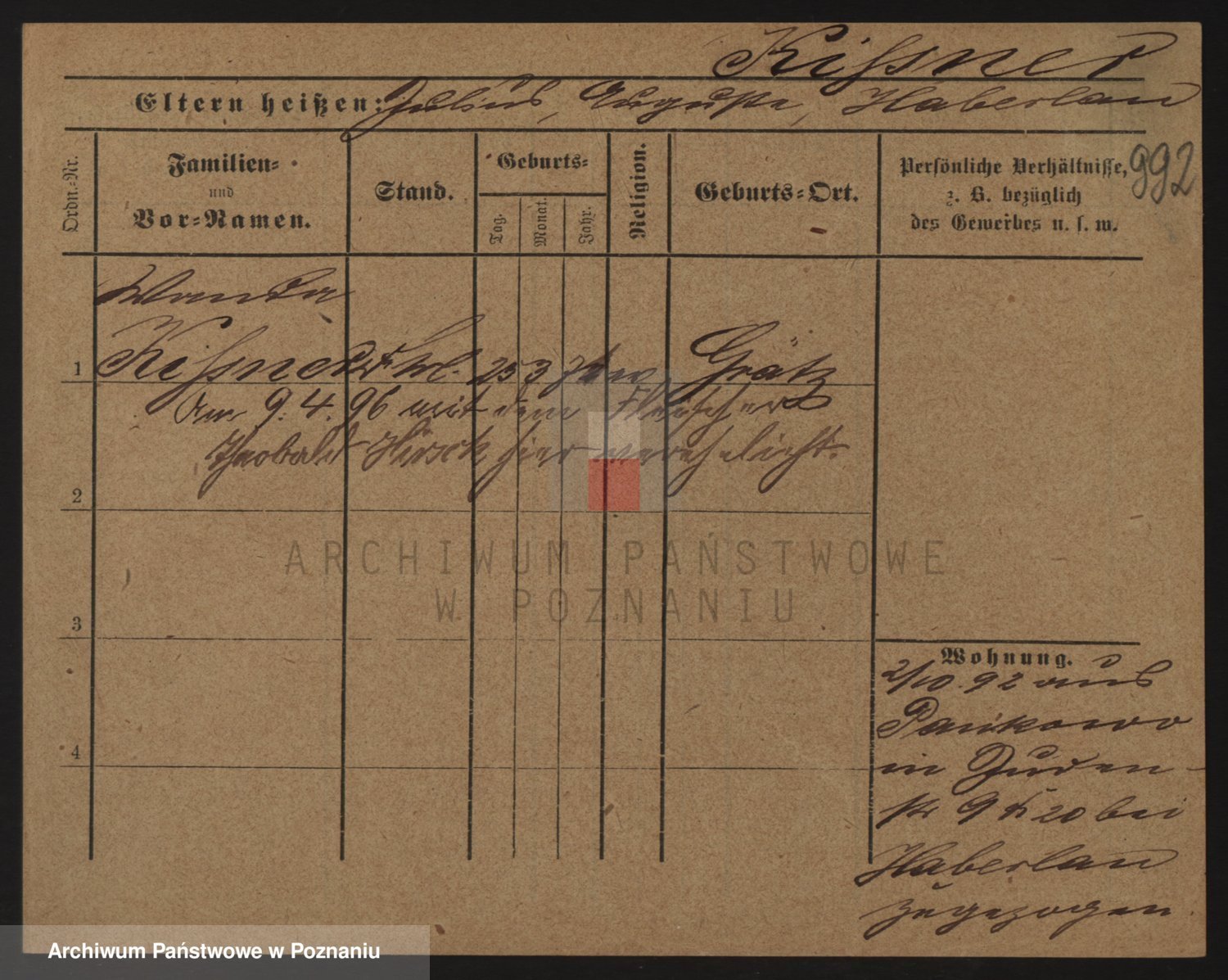 Podgląd karty osobowej dostępny jest po kliknięciu na nazwisko lub ikonkę karty. Można dokonywać powiększenia (ikony na górze) lub przechodzić między kolejnymi skanami (strzałki po bokach).