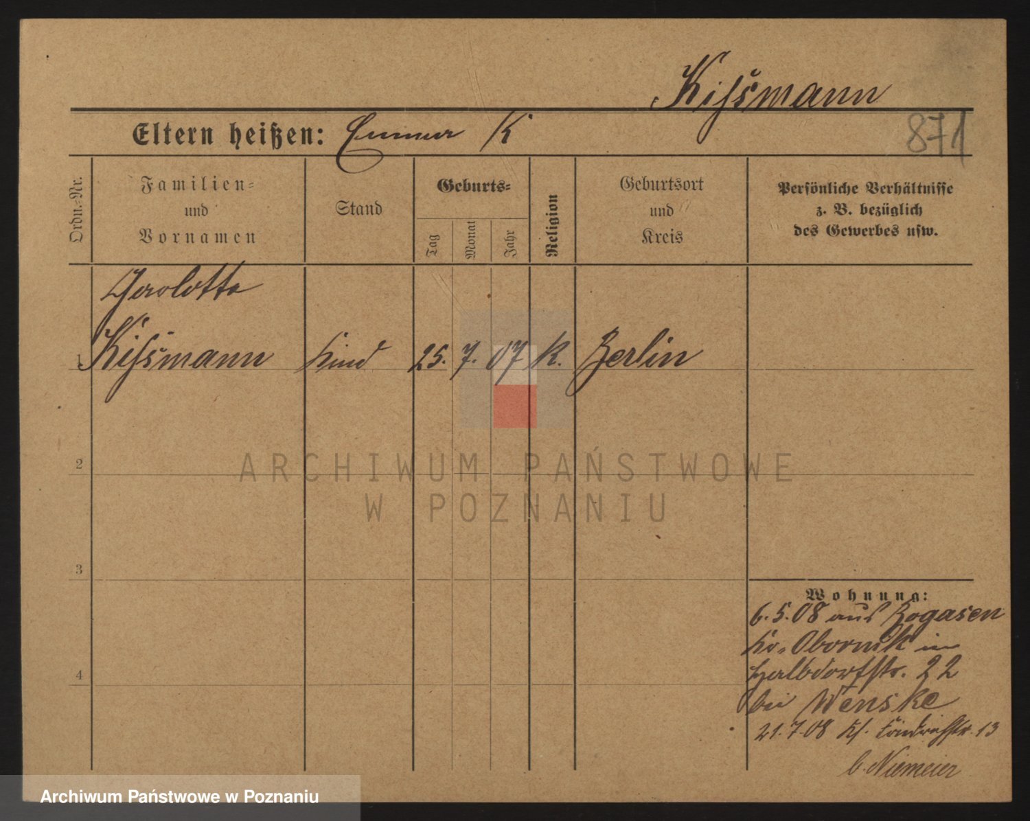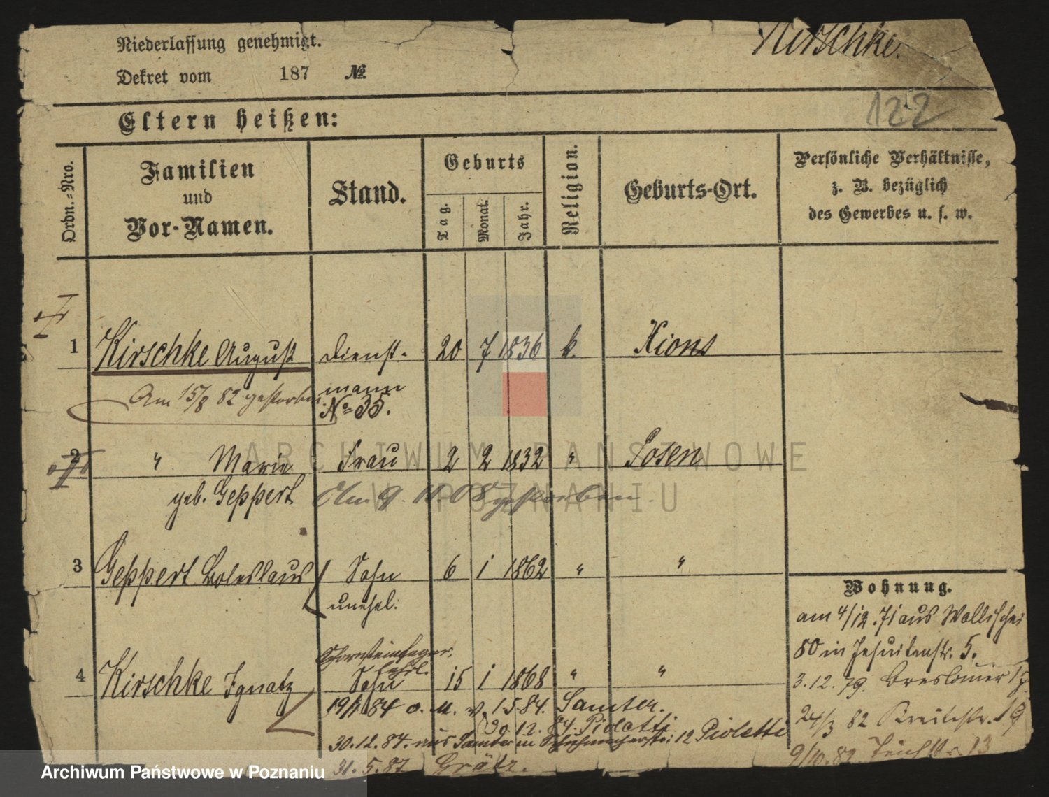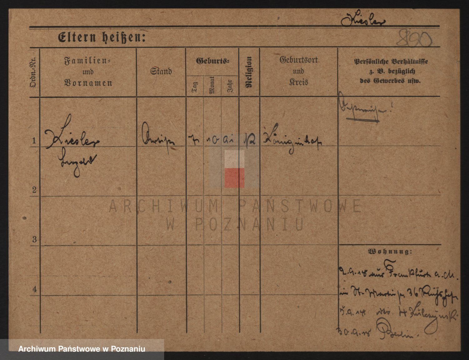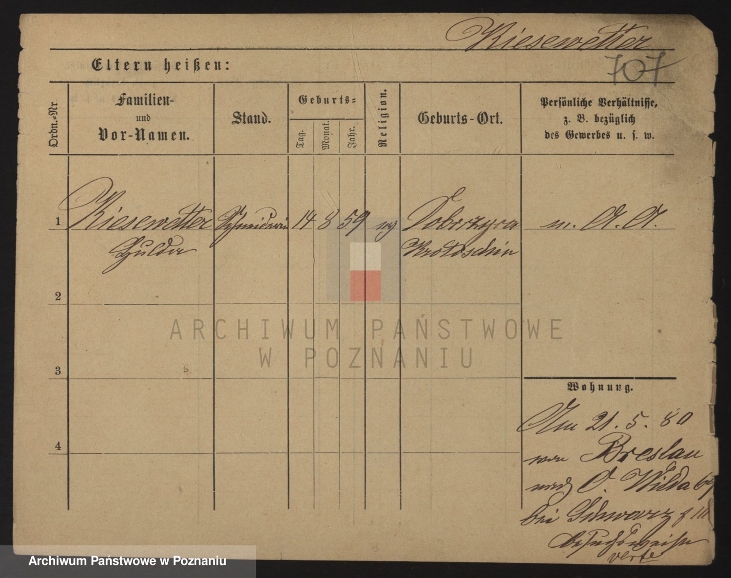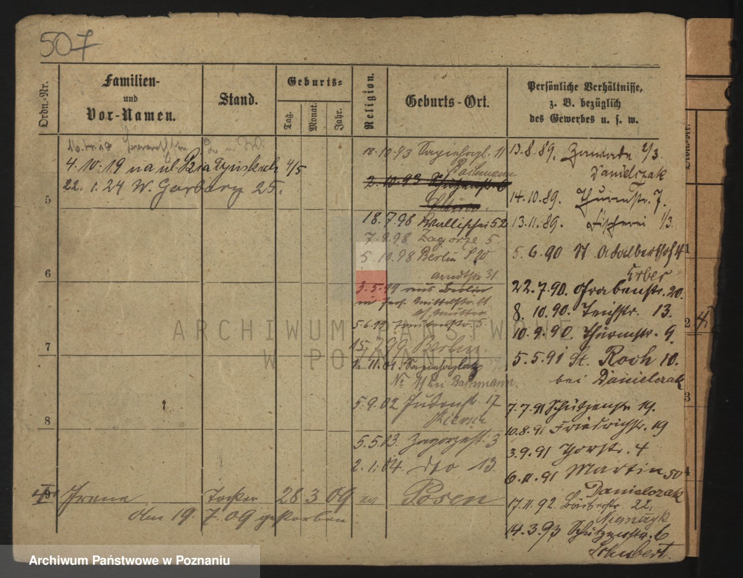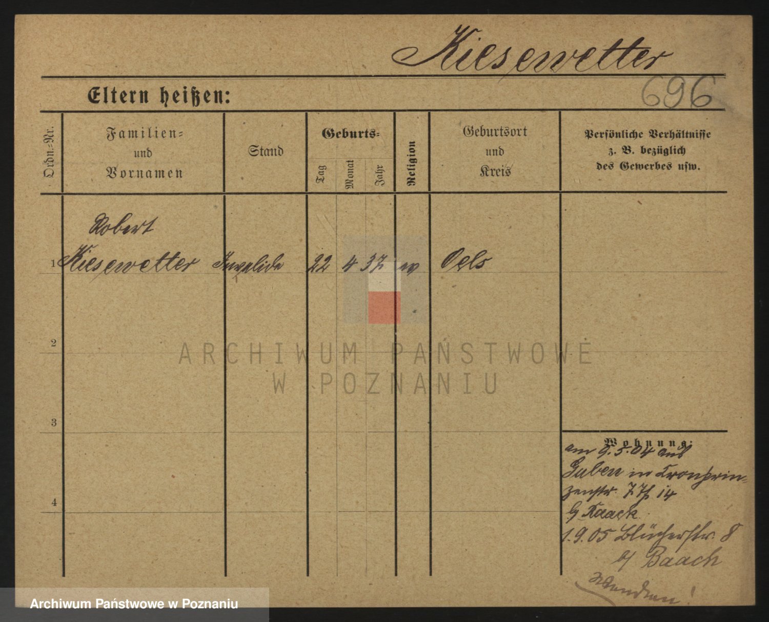 Podgląd karty osobowej dostępny jest po kliknięciu na nazwisko lub ikonkę karty. Można dokonywać powiększenia (ikony na górze) lub przechodzić między kolejnymi skanami (strzałki po bokach).