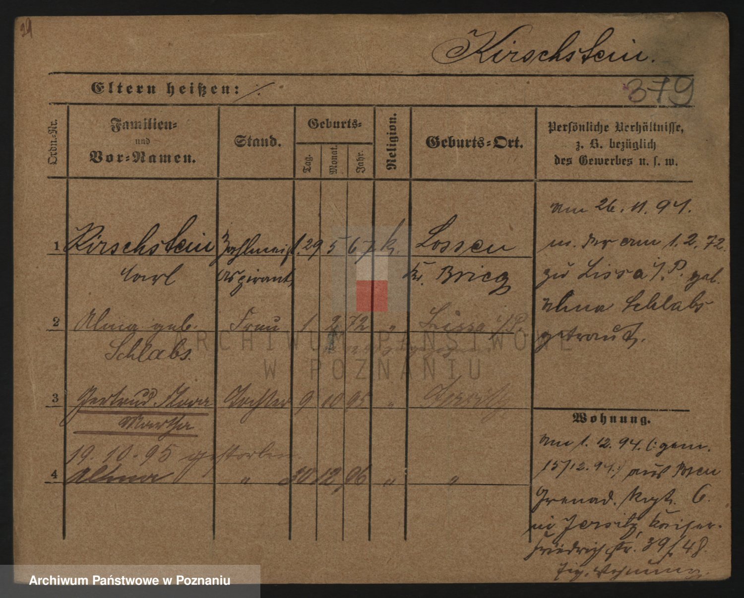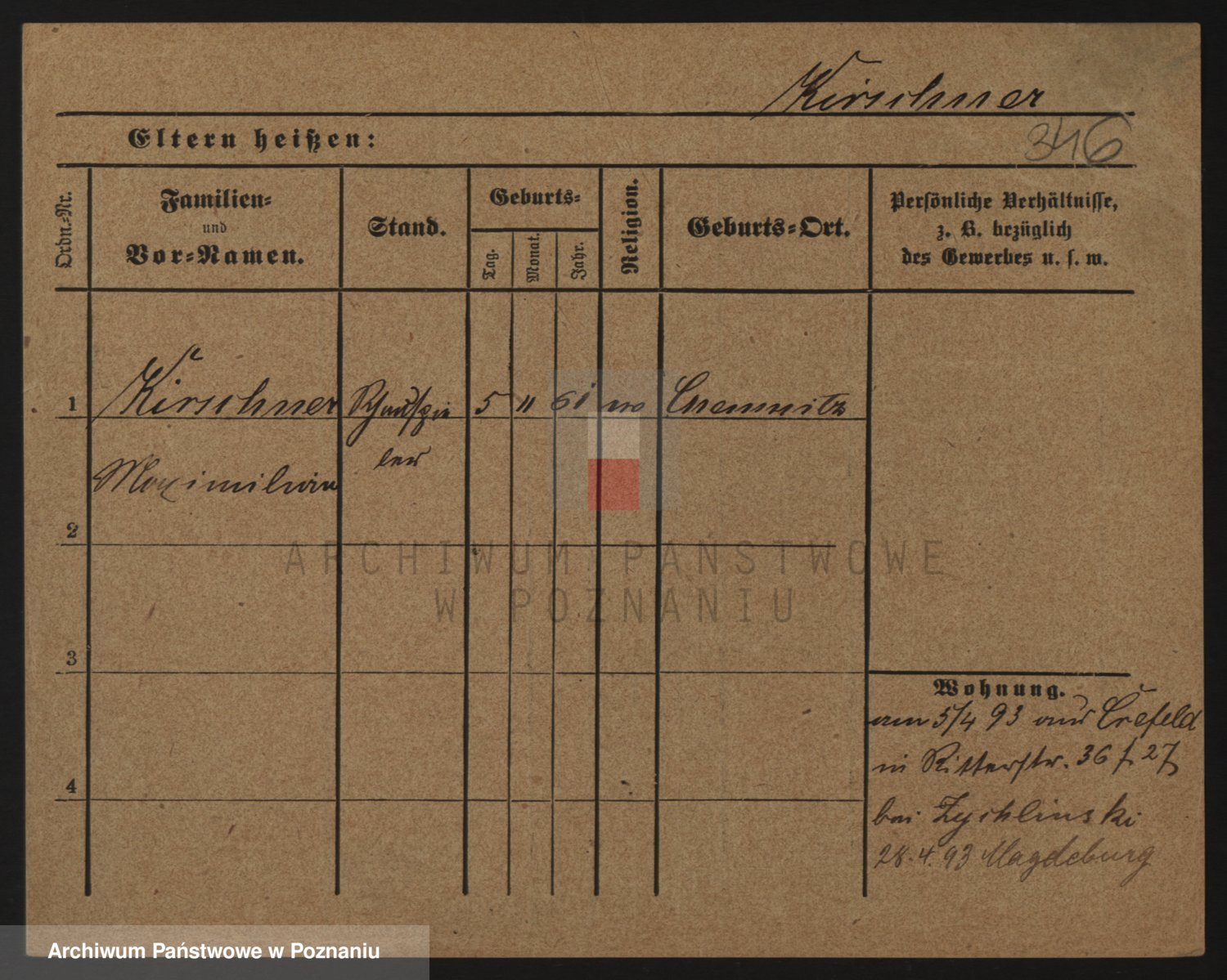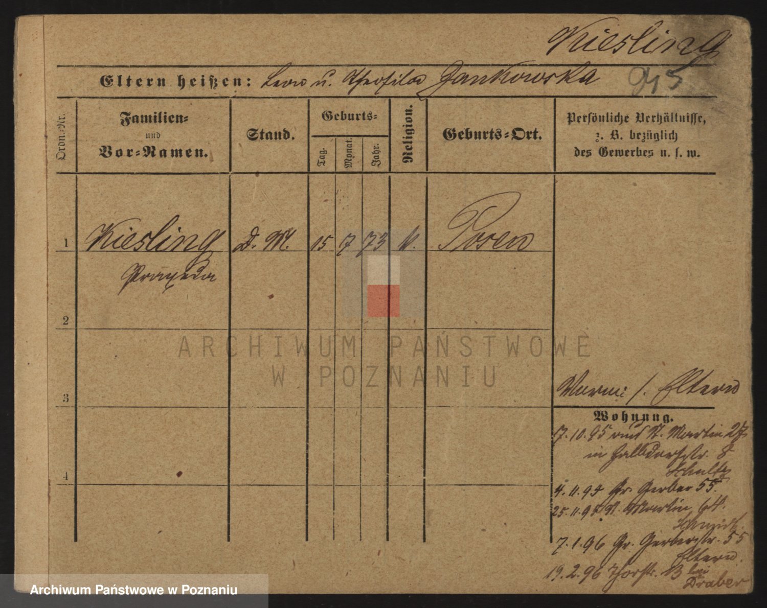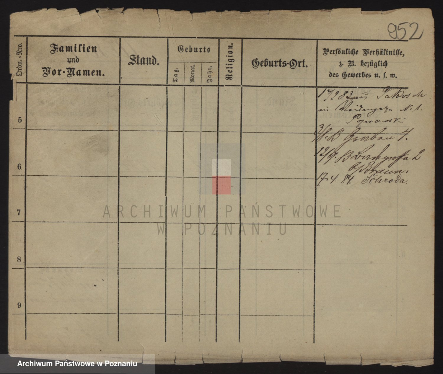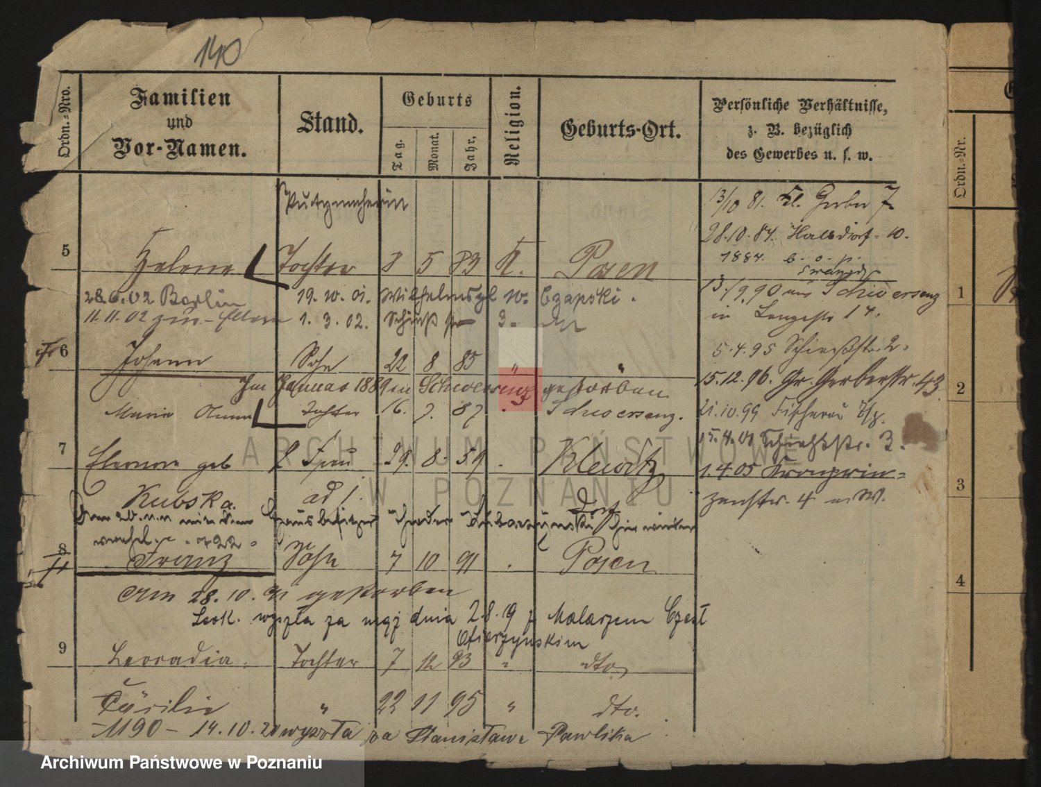 Podgląd karty osobowej dostępny jest po kliknięciu na nazwisko lub ikonkę karty. Można dokonywać powiększenia (ikony na górze) lub przechodzić między kolejnymi skanami (strzałki po bokach).